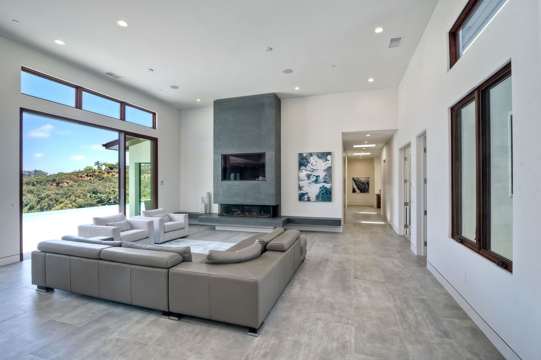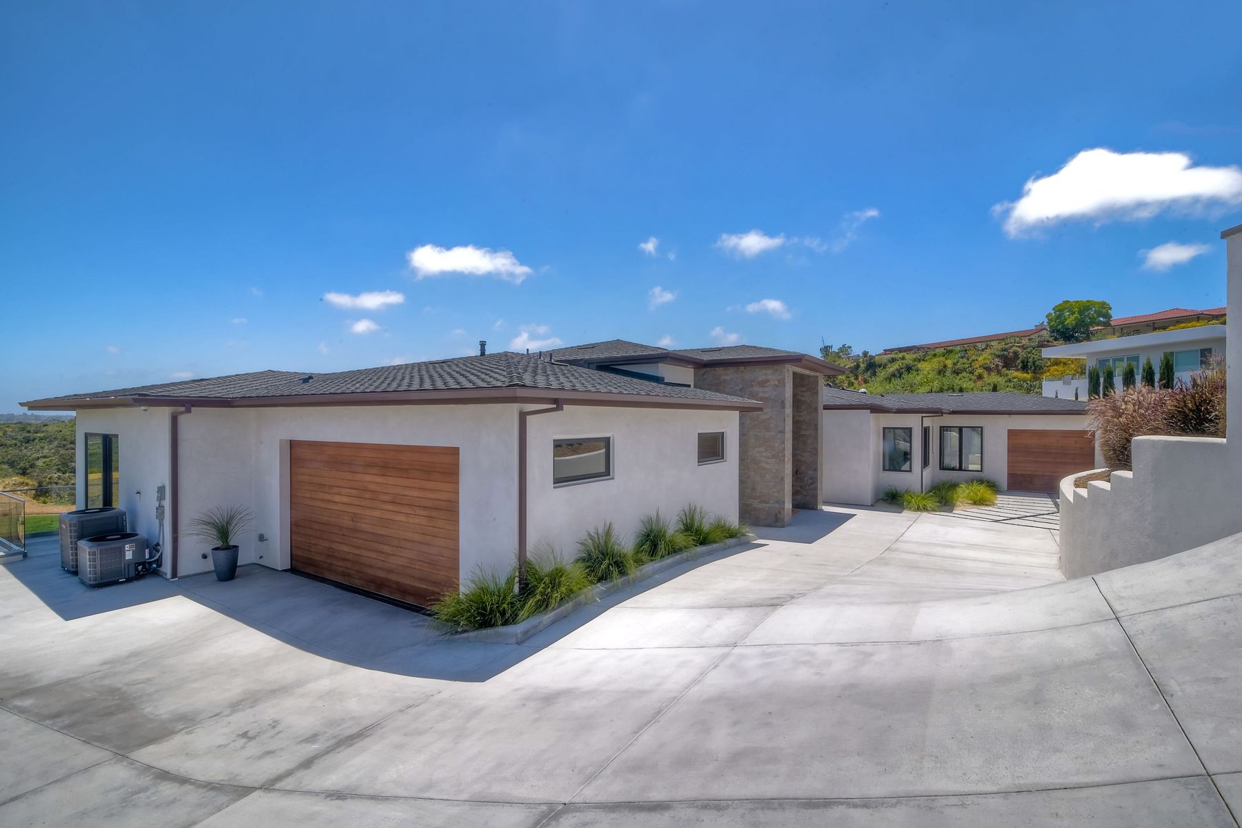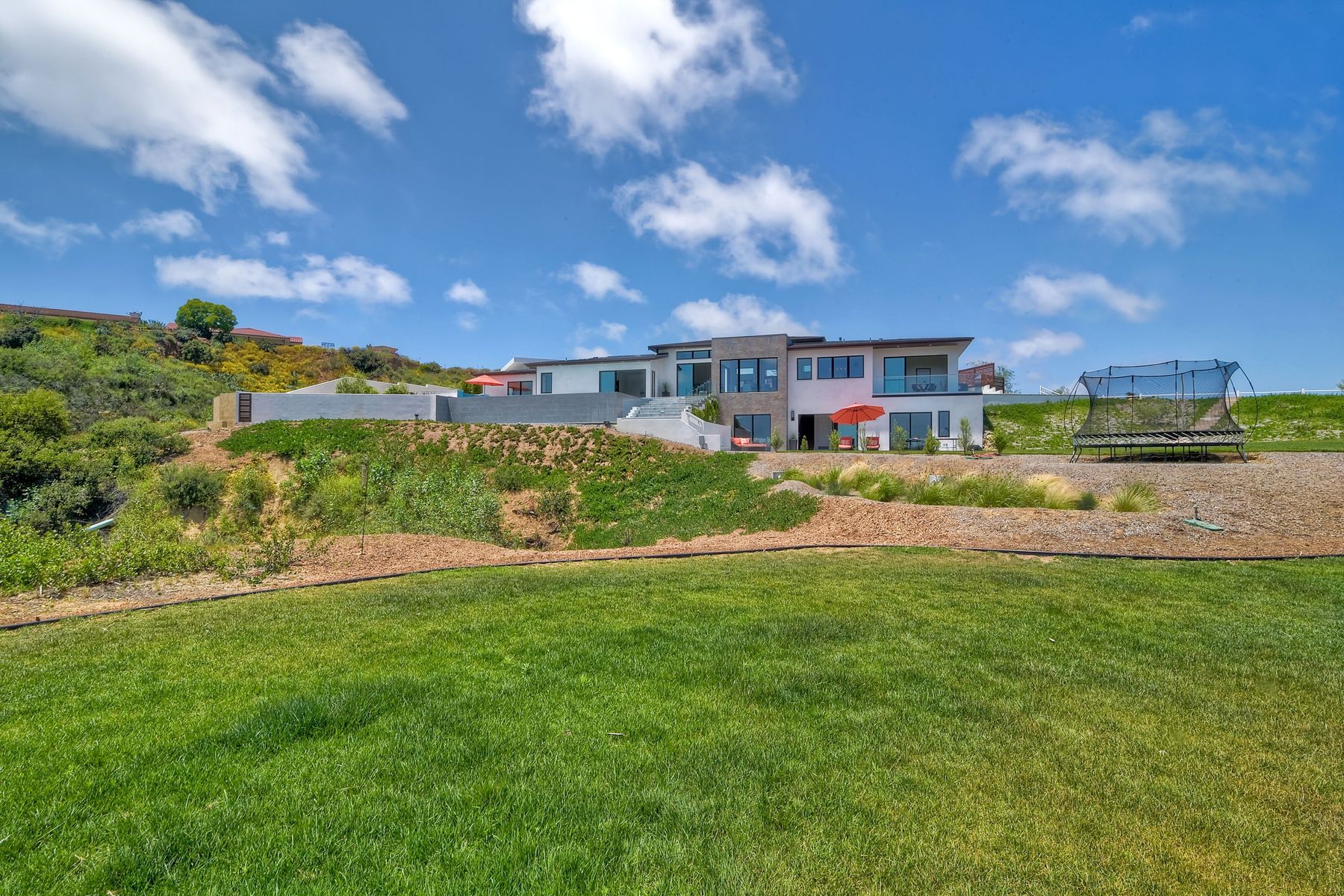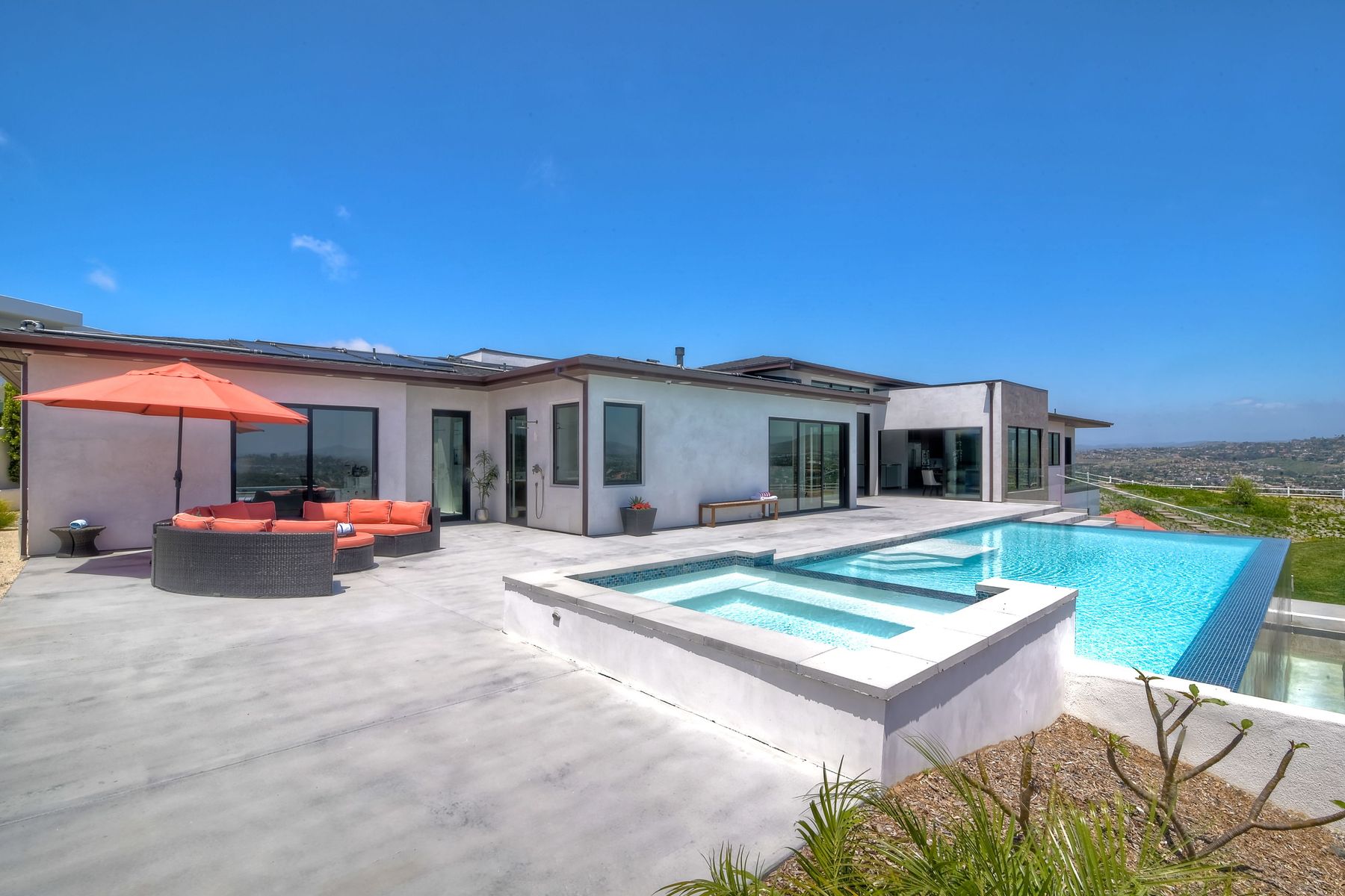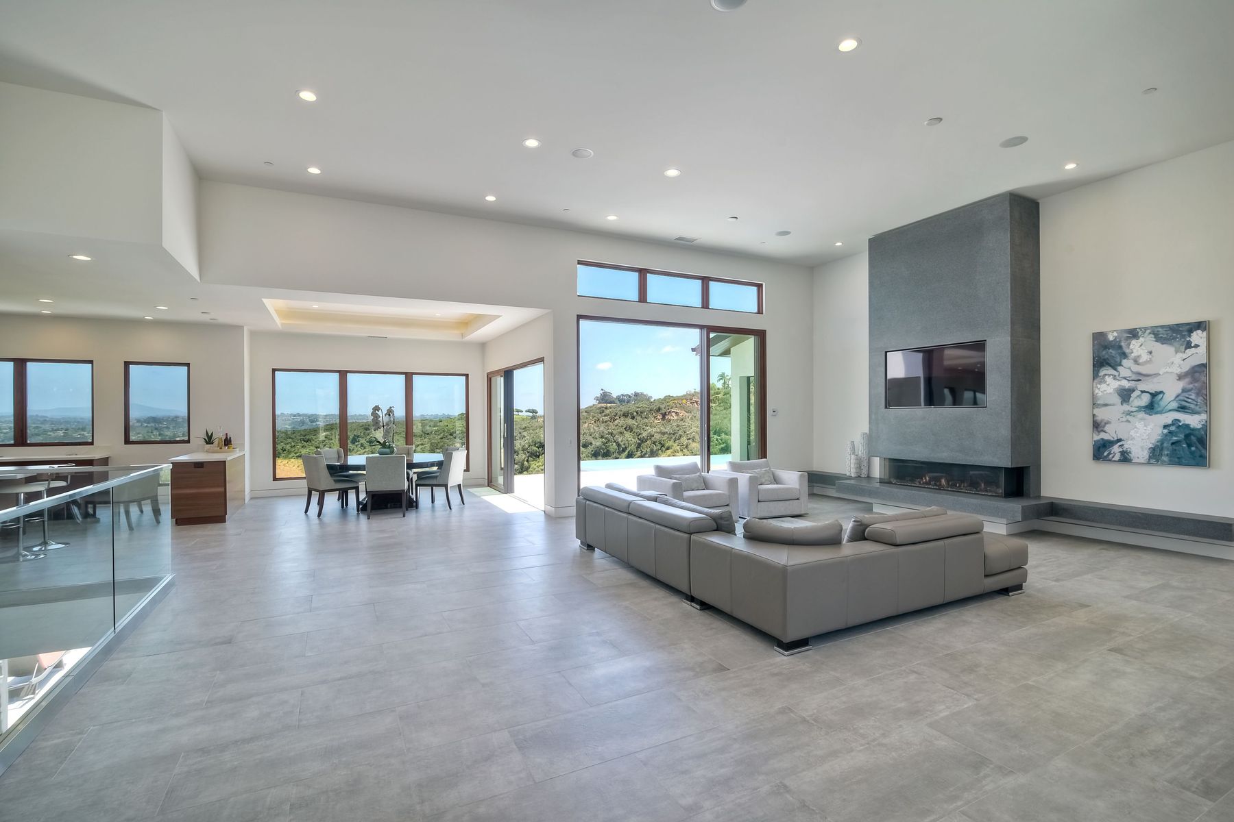 **** TOP OF THE HILL NEW MODERN HOME WITH COMPLETE PRIVACY*** Located on 6.39 acres with Panoramic canyon, mountain, golf course and city lights view in this "One of a Kind" newly constructed custom home! Best location in Encinitas with close proximity to beach, shopping, restaurants and Fwy. On a private street at the end of the cul-de-sac! Stunning modern design home with all main living rooms on one level with most rooms accessing the outside expansive patio and infinity pool! Video on YouTube!