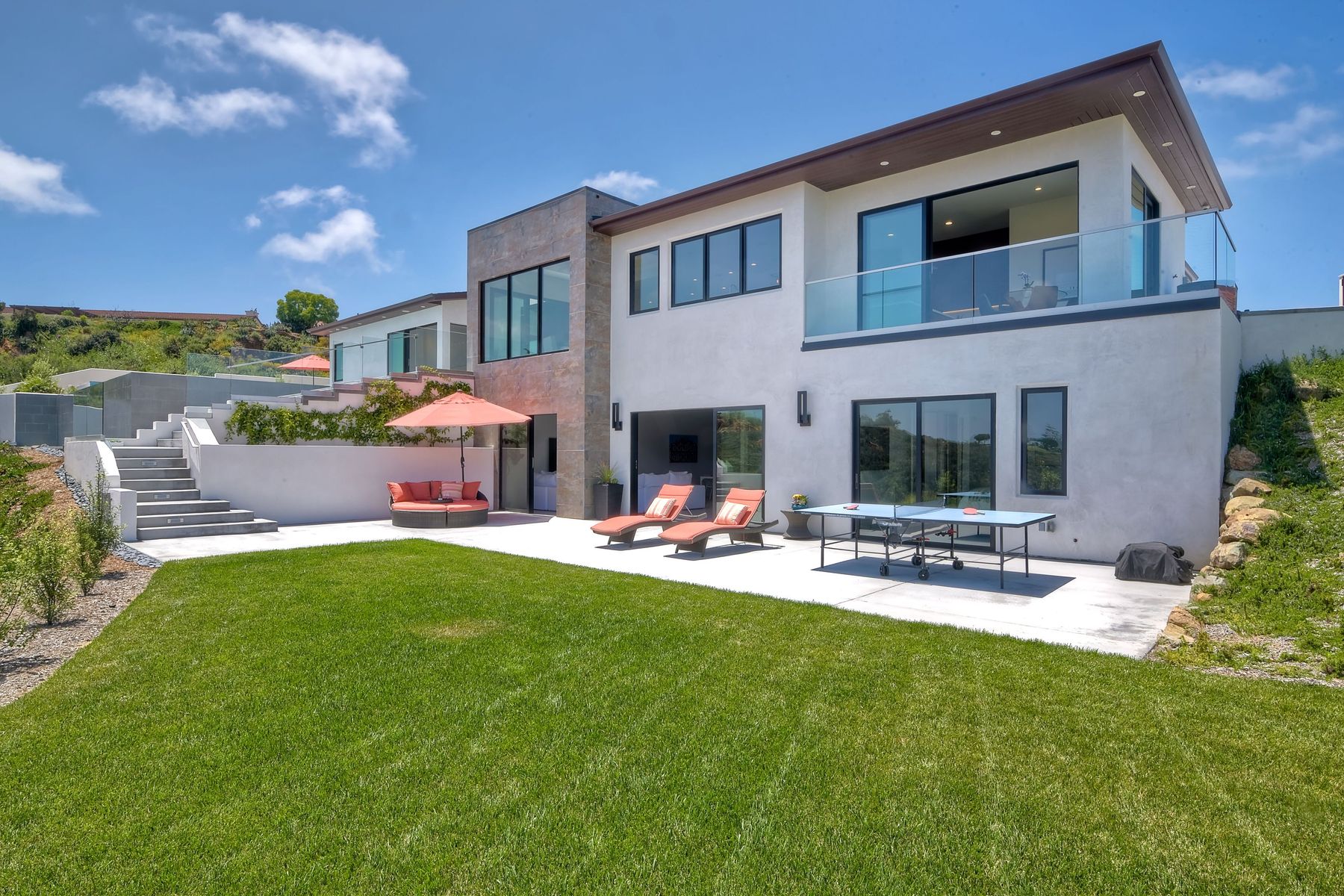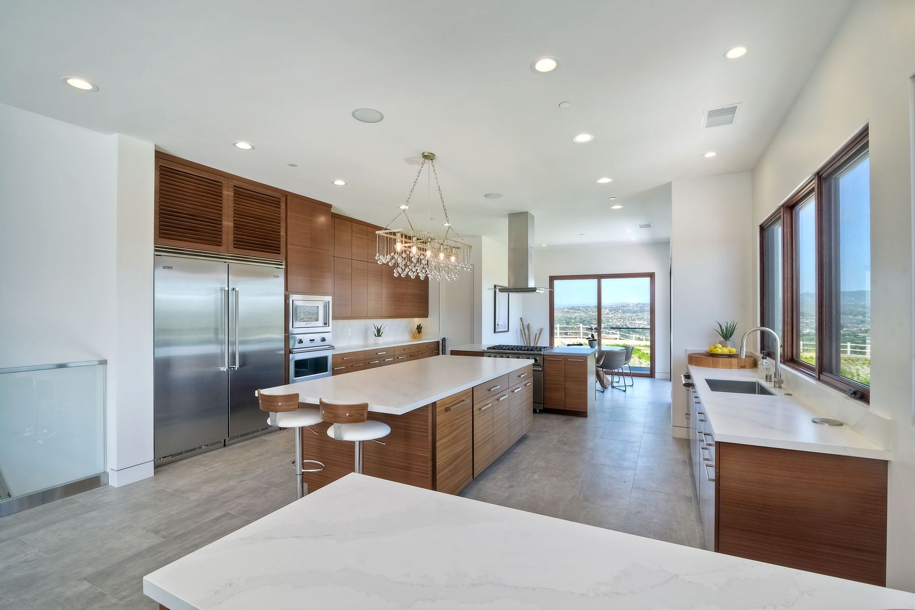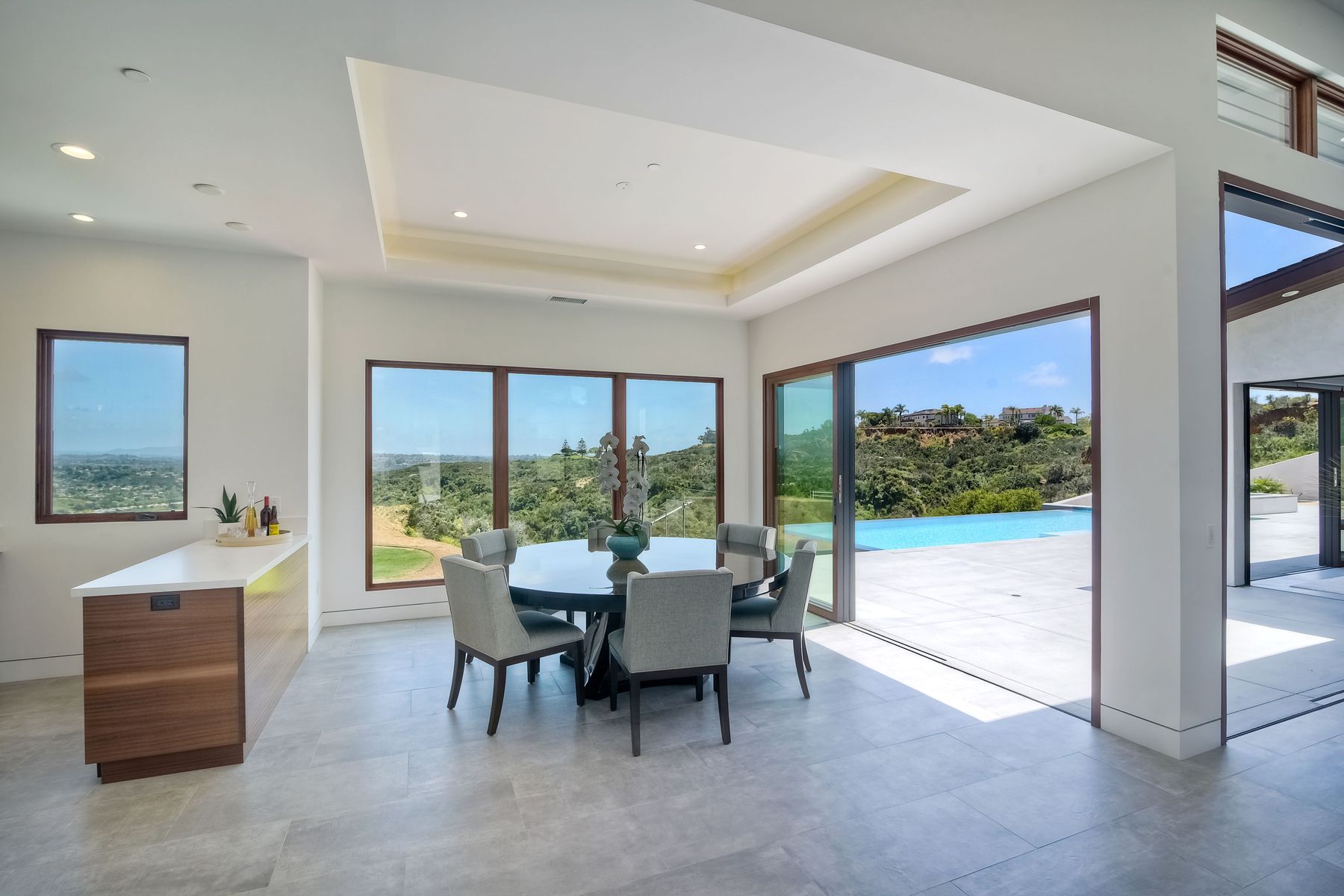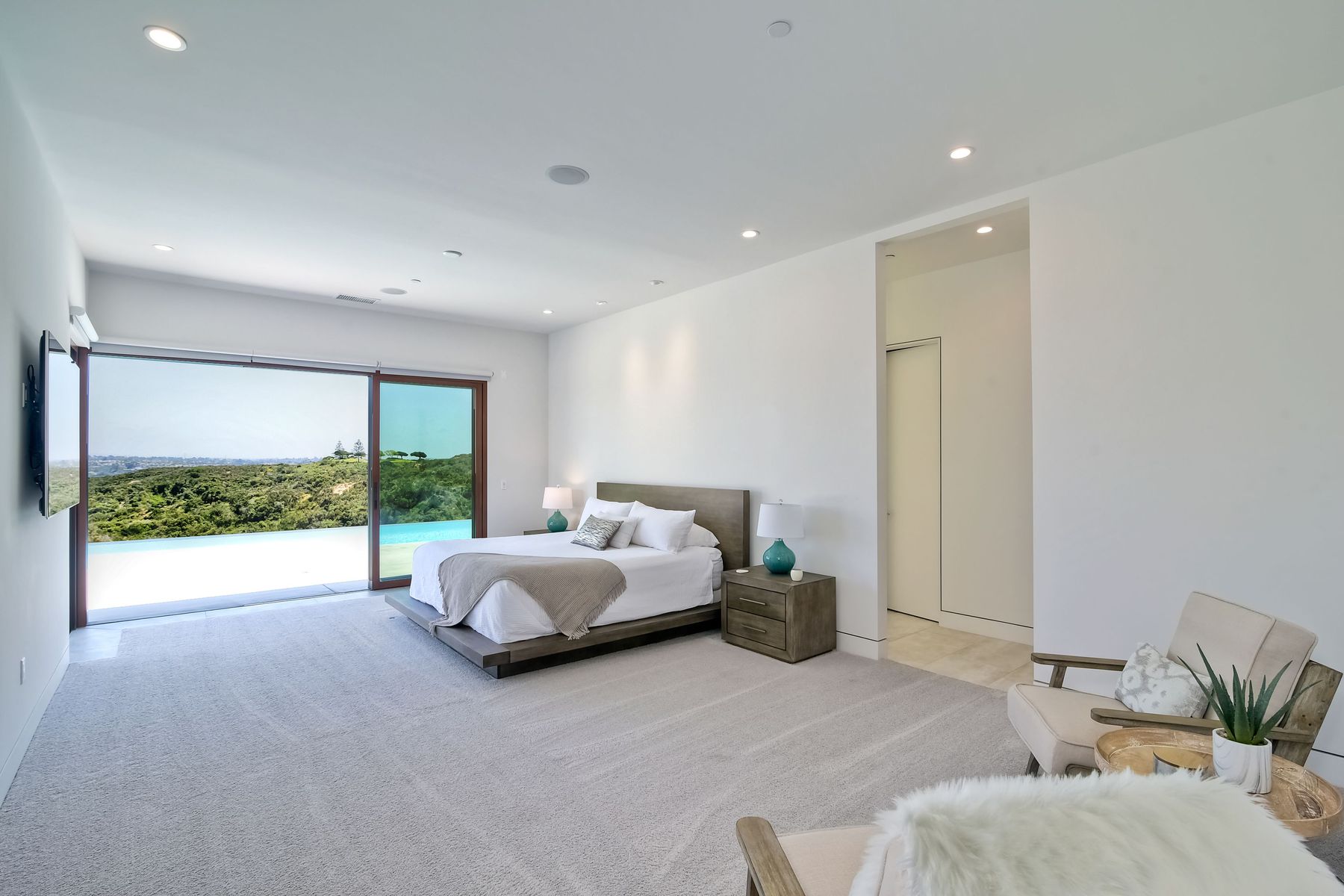 **** TOP OF THE HILL NEW MODERN HOME WITH COMPLETE PRIVACY*** Located on 6.39 acres with Panoramic canyon, mountain, golf course and city lights view in this "One of a Kind" newly constructed custom home! Best location in Encinitas with close proximity to beach, shopping, restaurants and Fwy. On a private street at the end of the cul-de-sac! Stunning modern design home with all main living rooms on one level with most rooms accessing the outside expansive patio and infinity pool! Video on YouTube!