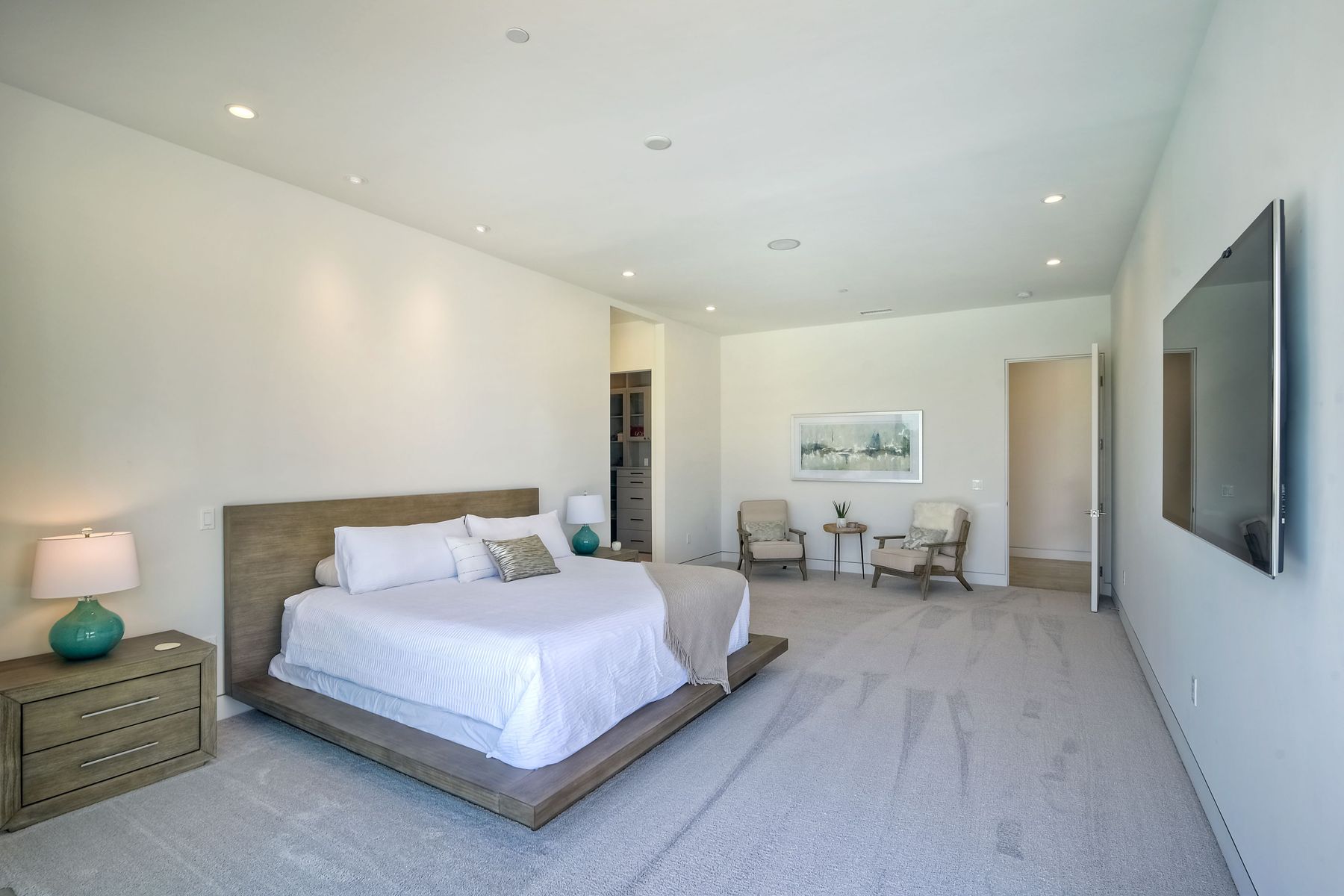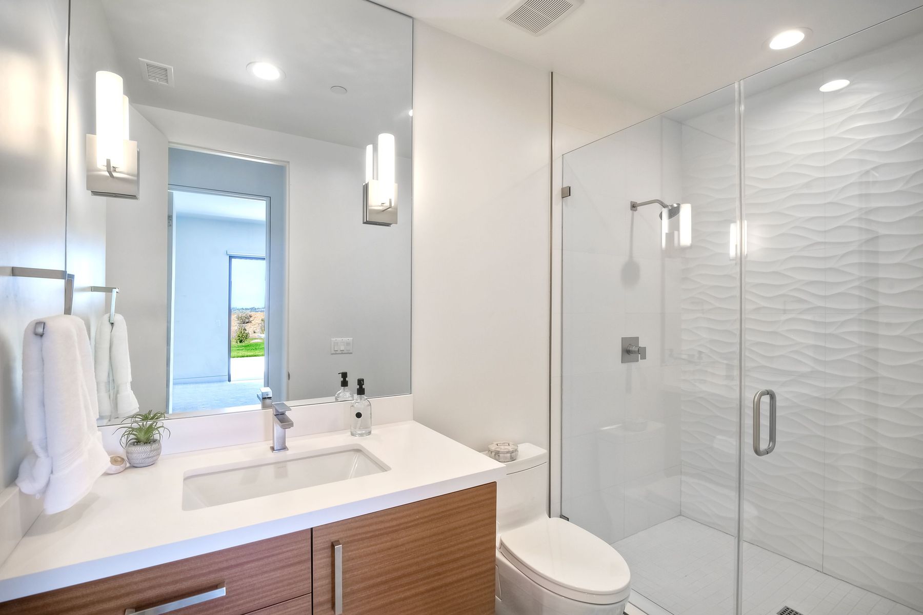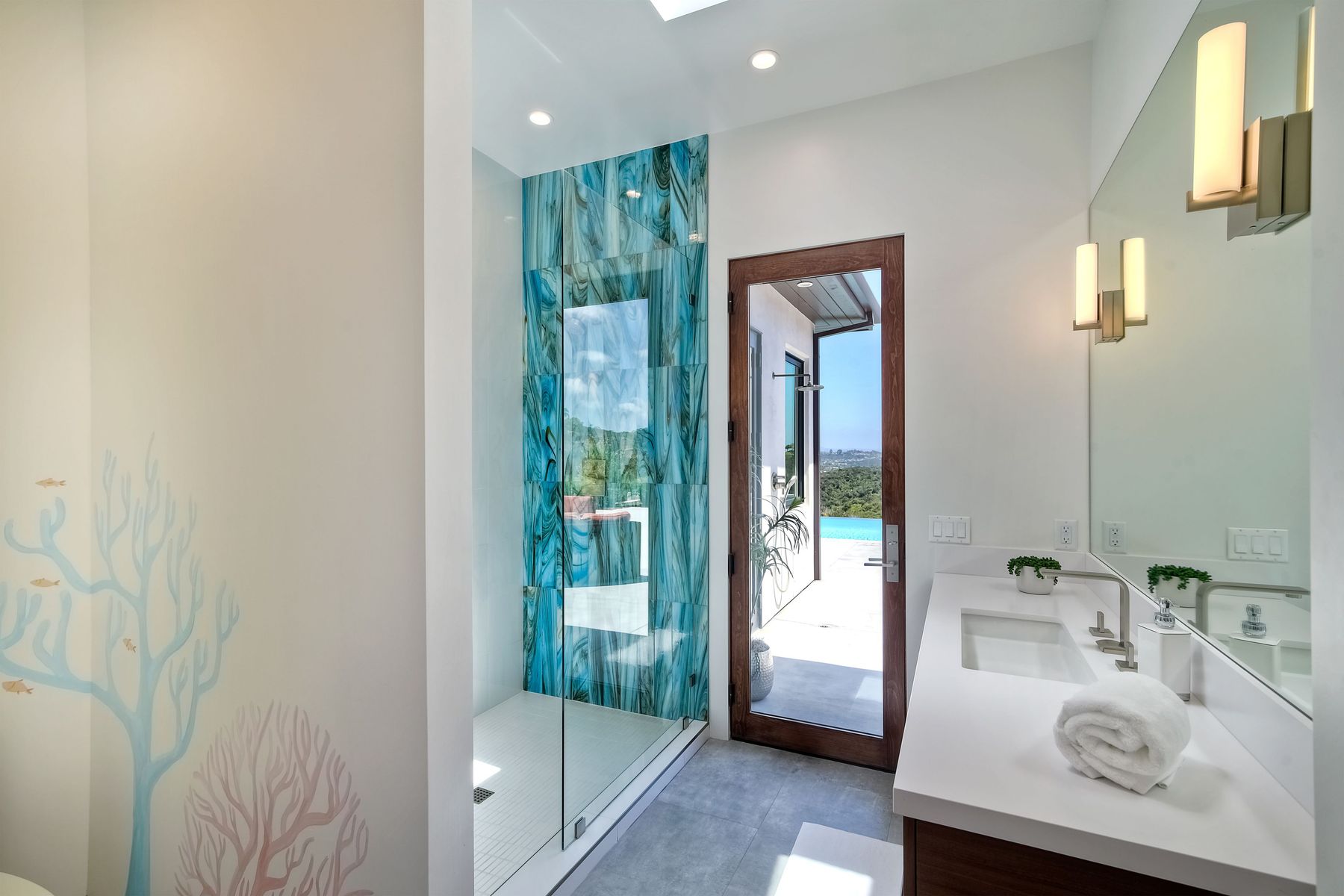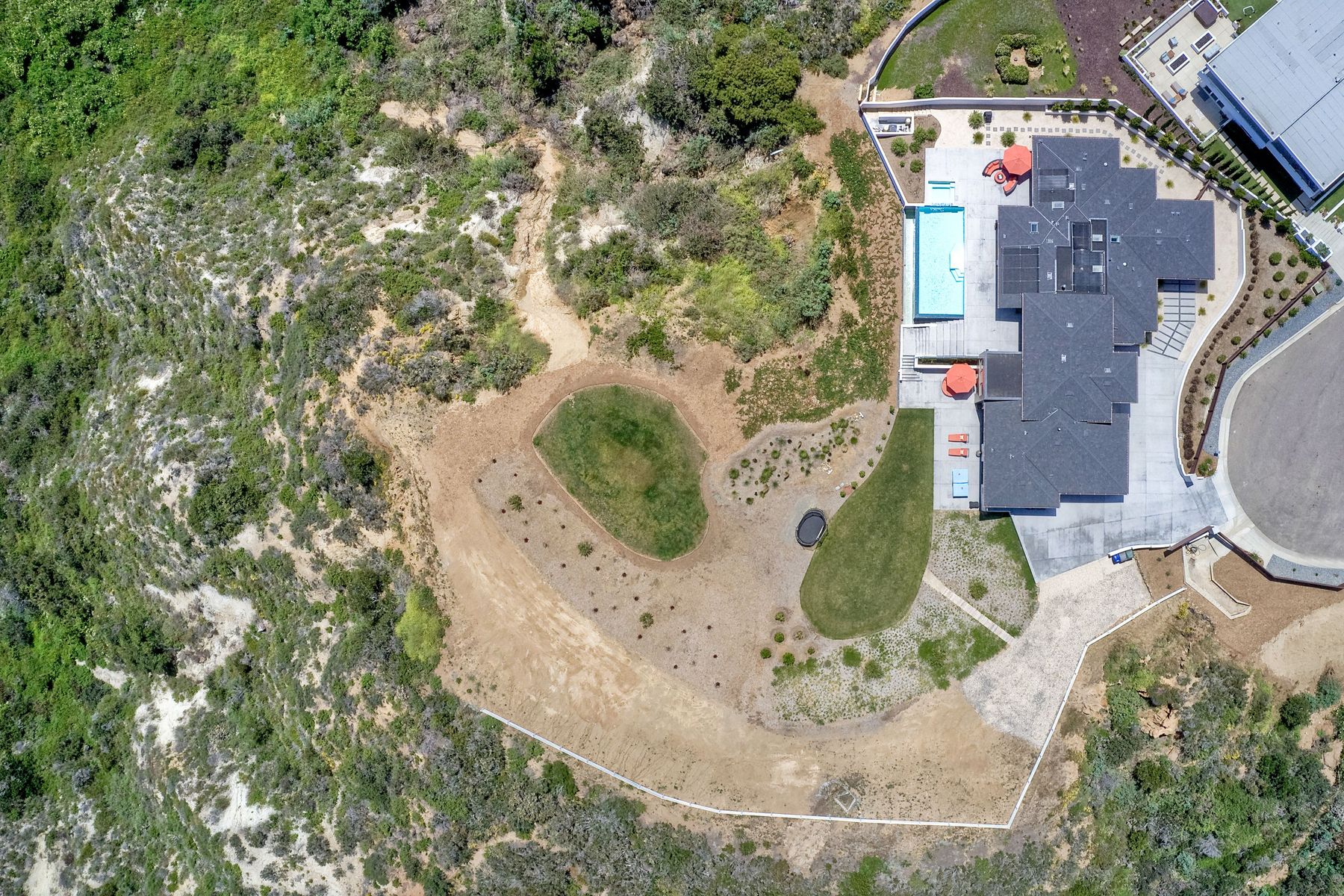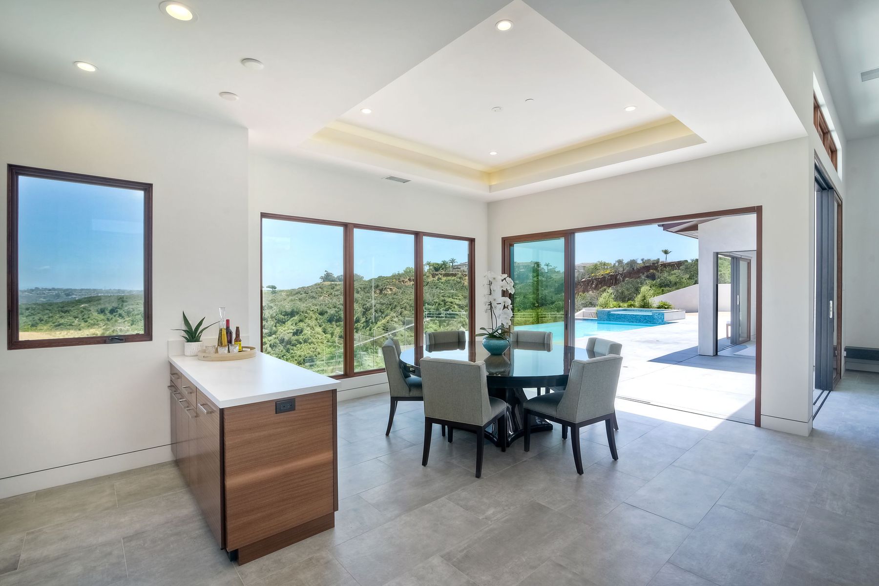 **** TOP OF THE HILL NEW MODERN HOME WITH COMPLETE PRIVACY*** Located on 6.39 acres with Panoramic canyon, mountain, golf course and city lights view in this "One of a Kind" newly constructed custom home! Best location in Encinitas with close proximity to beach, shopping, restaurants and Fwy. On a private street at the end of the cul-de-sac! Stunning modern design home with all main living rooms on one level with most rooms accessing the outside expansive patio and infinity pool! Video on YouTube!