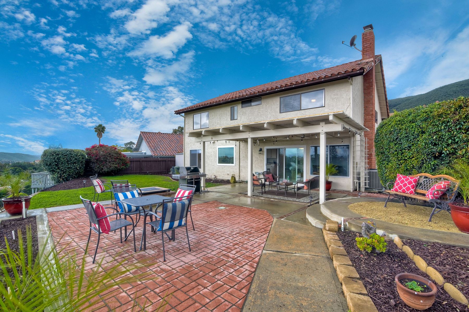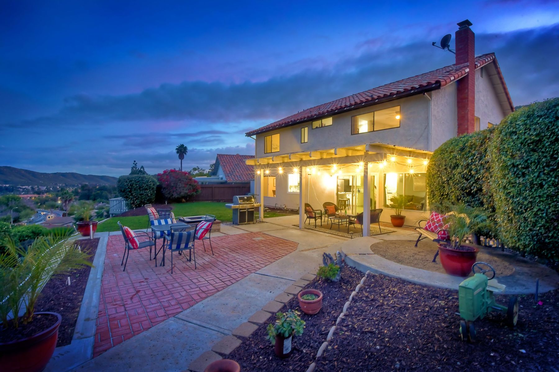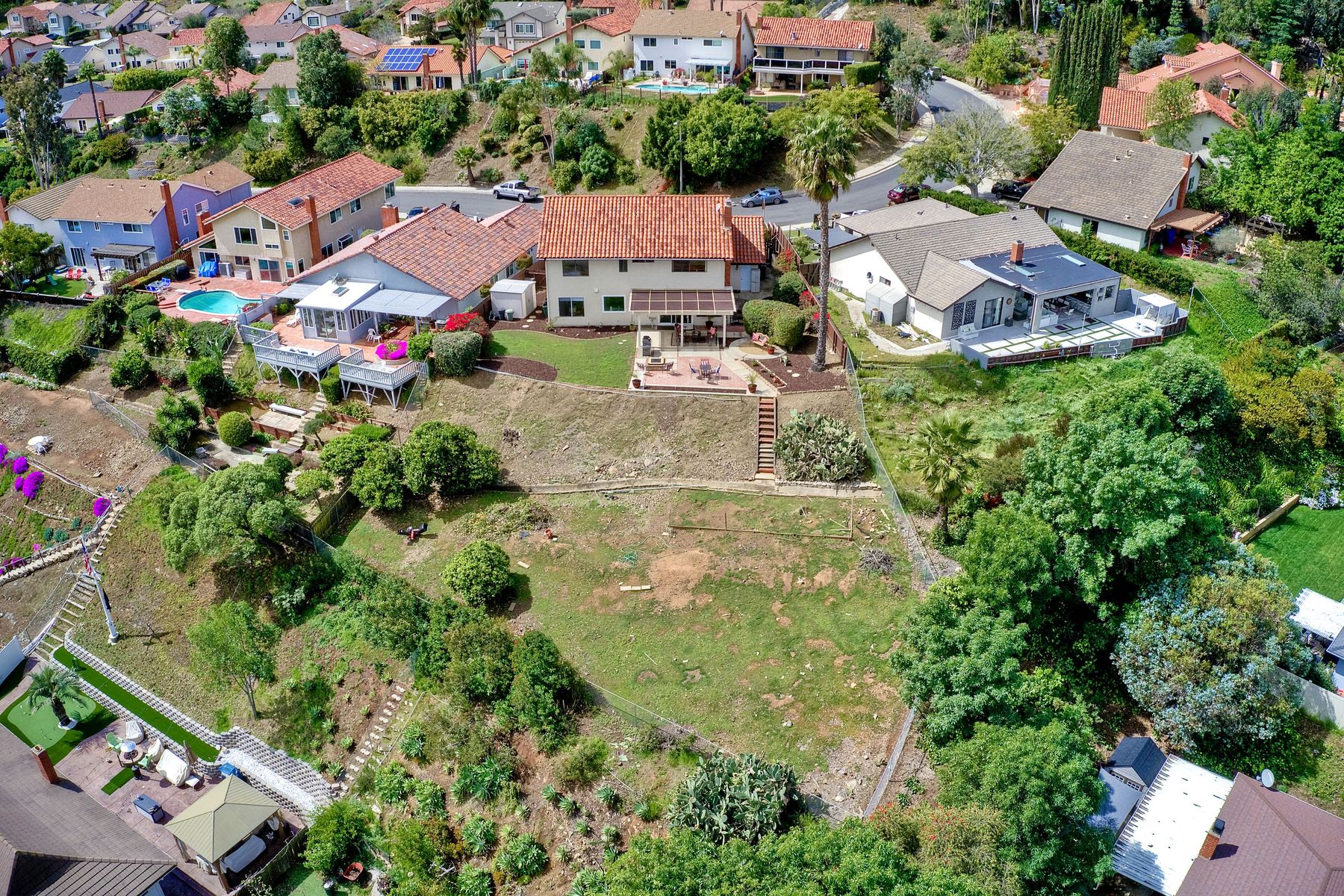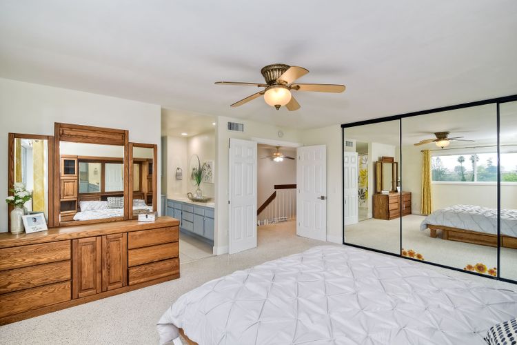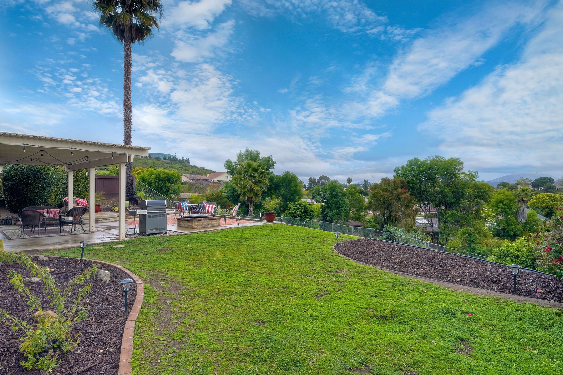AVAILABLE TO BE SHOWN! One of the most stunning and private unobstructed VIEW lots in the area. Panoramic views all the way to Mount Woodson. An entertainers dream home. The awesome open floor plan has many recent upgrades including Newer Heating & AC, kitchen sink & counters, stainless appliances, updated lighting fixtures, fresh paint and smooth ceilings which make this home move in ready. Includes a three car garage with extra parking on a quiet island street. There is definitely ADU potential here. A fabulous home for entertaining family & friends. Enjoy unobstructed Panoramic Views from a private lot which includes a play area with fruit trees & a water conserving irrigation system. This spacious & bright home features four bedrooms, formal living room & formal dining room. The recently updated kitchen has lots of cabinets & counter space with newer recessed lighting, quartz counters, tile back splash, deep basin stainless sink & faucet, stove hood & stainless appliances. The family room features a beautiful gas or wood burning fireplace & dry bar area. There are smooth ceilings, fresh paint, many bathroom upgrades, many newer six panel doors & baseboards and so much more that makes this home move in ready. The master suite has plenty of closet space. All bathrooms have recently been professionally upgraded. Other amenities include an indoor laundry room, tile floors downstairs, ceiling fans, newly painted interior walls, over sized three car garage with a newer door & opener. Energy efficient amenities include a newer HVAC system, low flow faucets & several newer dual pane windows. There is also a storage shed which conveys. Located in a family-oriented neighborhood, this amazing home is conveniently nestled in the Westwind subdivision which is near two award winning Poway Unified Elementary Schools & an updated neighborhood park. A great location for commuting, shopping & dining at several nearby Carmel Mountain Ranch shopping centers. Highway 56 and I-15 are also nearby with travel times of only 15 minutes to the beach & 25 minutes to downtown San Diego. This wonderful home has no Mello Roos or HOA Fees. The washer, dryer & refrigerator are negotiable.