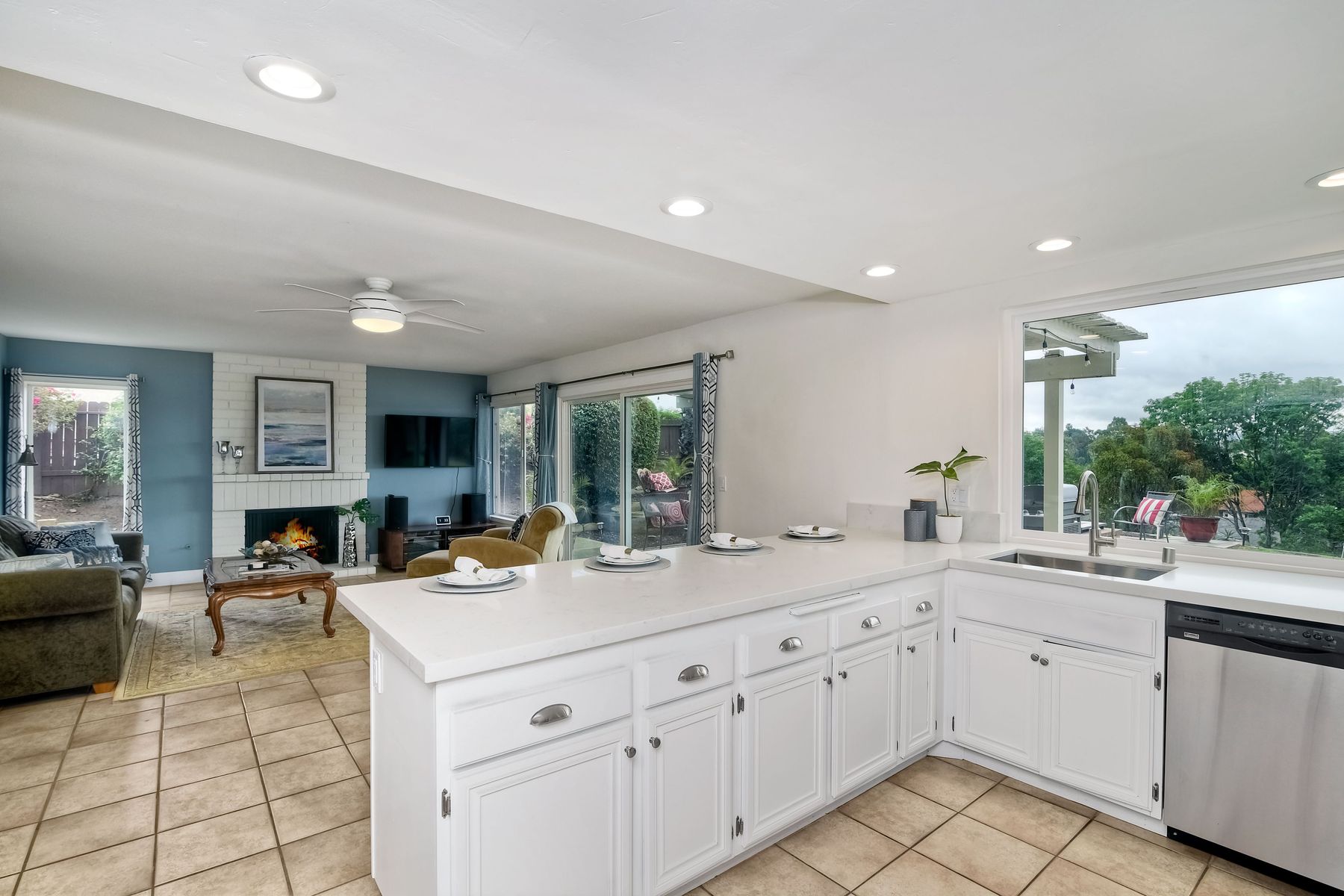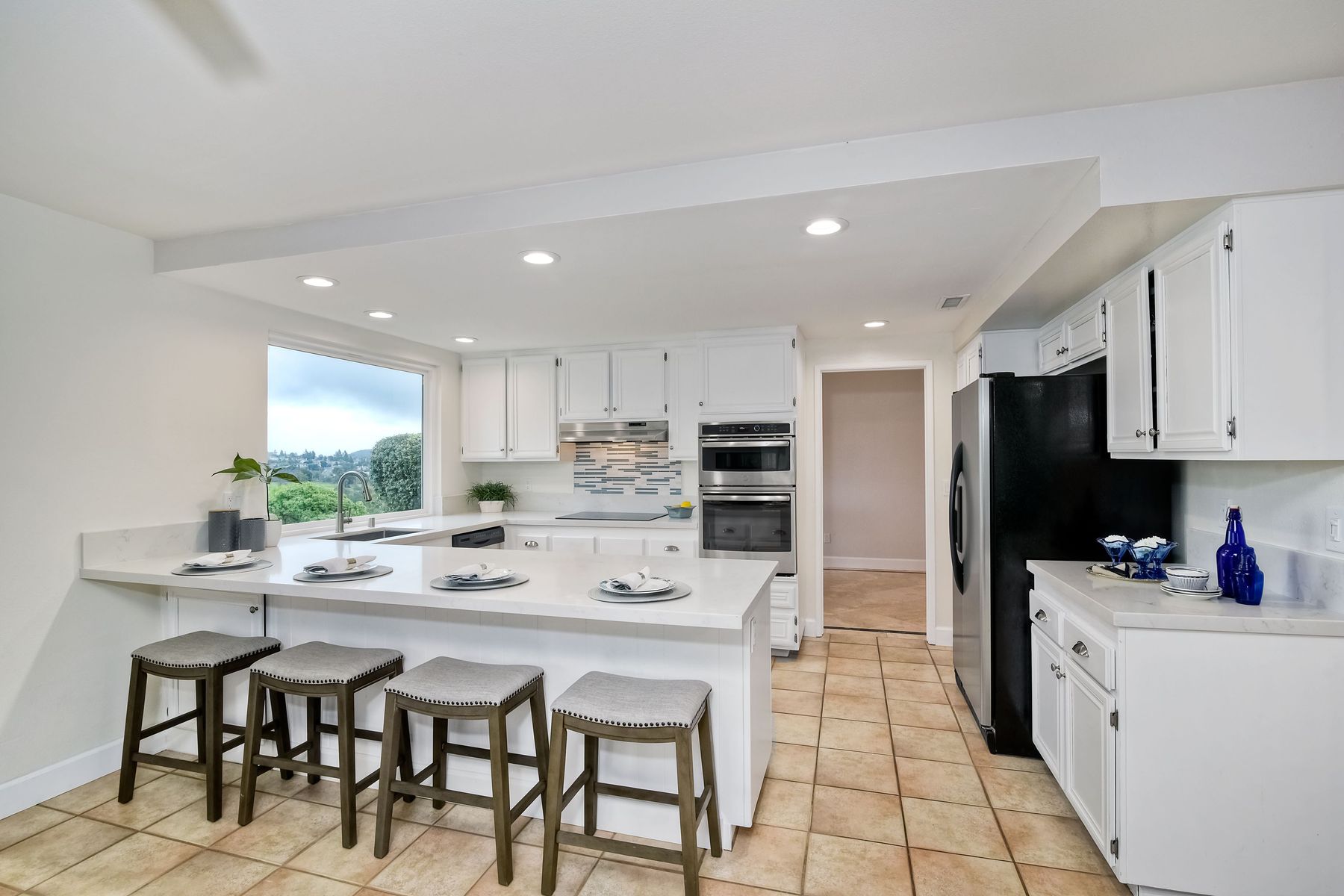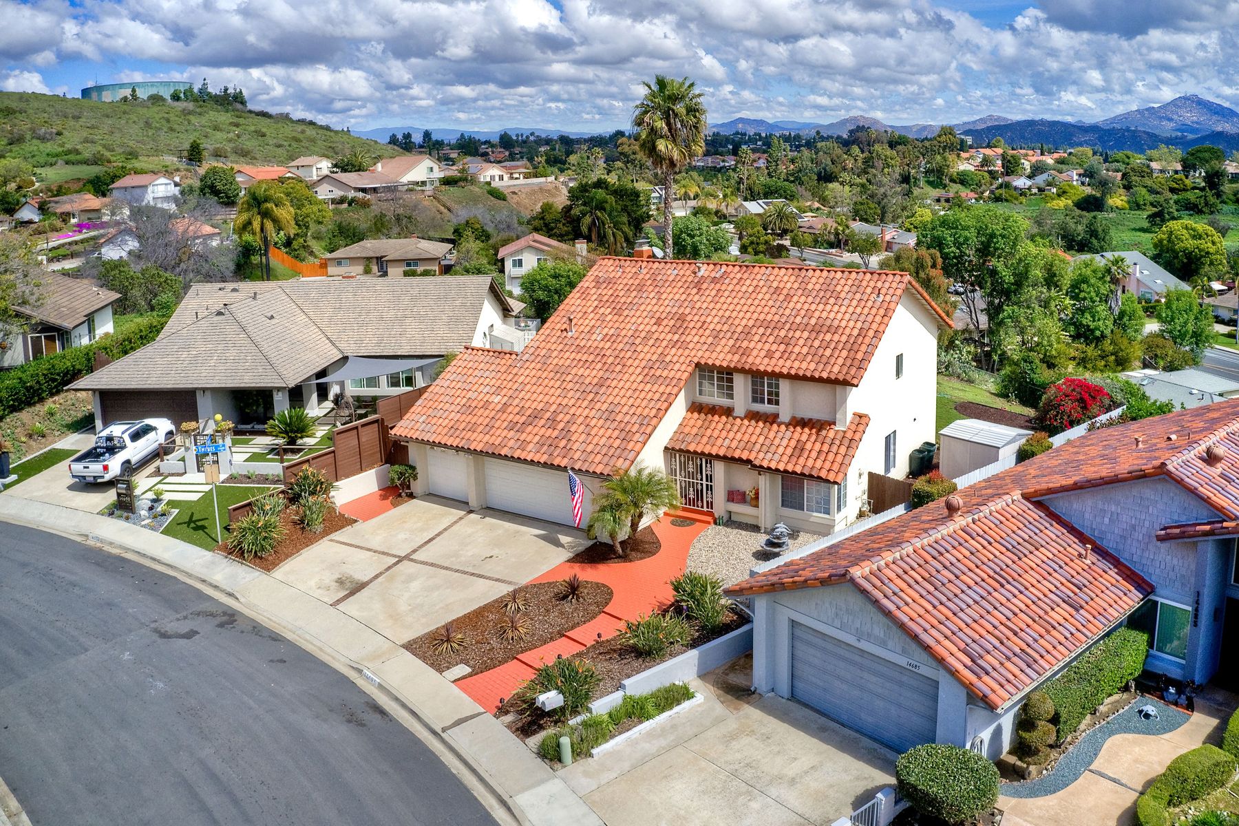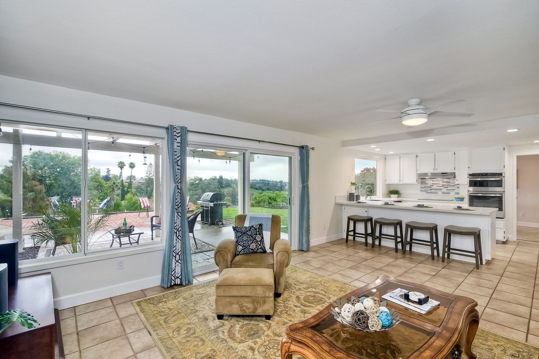 AVAILABLE TO BE SHOWN! One of the most stunning and private unobstructed VIEW lots in the area. Panoramic views all the way to Mount Woodson. An entertainers dream home. The awesome open floor plan has many recent upgrades including Newer Heating & AC, kitchen sink & counters, stainless appliances, updated lighting fixtures, fresh paint and smooth ceilings which make this home move in ready. Includes a three car garage with extra parking on a quiet island street. There is definitely ADU potential here. A fabulous home for entertaining family & friends. Enjoy unobstructed Panoramic Views from a private lot which includes a play area with fruit trees & a water conserving irrigation system. This spacious & bright home features four bedrooms, formal living room & formal dining room. The recently updated kitchen has lots of cabinets & counter space with newer recessed lighting, quartz counters, tile back splash, deep basin stainless sink & faucet, stove hood & stainless appliances. The family room features a beautiful gas or wood burning fireplace & dry bar area. There are smooth ceilings, fresh paint, many bathroom upgrades, many newer six panel doors & baseboards and so much more that makes this home move in ready. The master suite has plenty of closet space. All bathrooms have recently been professionally upgraded. Other amenities include an indoor laundry room, tile floors downstairs, ceiling fans, newly painted interior walls, over sized three car garage with a newer door & opener. Energy efficient amenities include a newer HVAC system, low flow faucets & several newer dual pane windows. There is also a storage shed which conveys. Located in a family-oriented neighborhood, this amazing home is conveniently nestled in the Westwind subdivision which is near two award winning Poway Unified Elementary Schools & an updated neighborhood park. A great location for commuting, shopping & dining at several nearby Carmel Mountain Ranch shopping centers. Highway 56 and I-15 are also nearby with travel times of only 15 minutes to the beach & 25 minutes to downtown San Diego. This wonderful home has no Mello Roos or HOA Fees. The washer, dryer & refrigerator are negotiable.