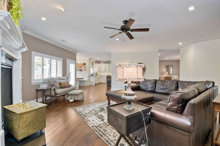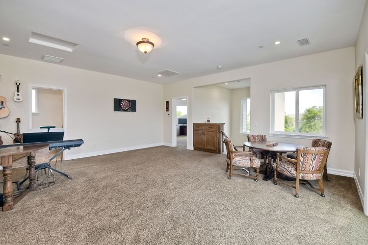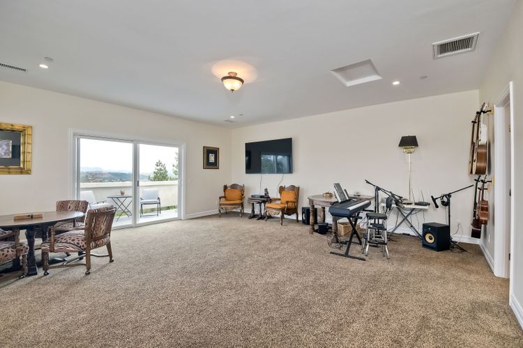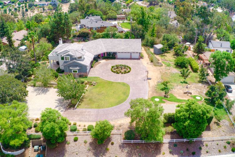 Amazing Price on this Beautiful Custom Craftsman style home with panoramic views, lives like a single story and located on a 1+ acre lot in the quaint community of The Summit. Pride of ownership is evident in this 4 year young, built by the builder as his own home with extensive upgrades - a beautiful expansive porch, a circular driveway and 5 car garage (2 car & 3 car), EV hookups, a pull through garage and a huge RV parking area. Upstairs is a private guest quarters with a large family room/office and balcony, separate bedroom and full bath – Perfect for an ADU. The chef's dream kitchen with 48” Viking Gas Range, Thermador Towers Refrigerator & Freezer, gorgeous Alaska White granite countertop slabs, utility sink, soft-close custom cabinetry with lighting. The Master suite with en-suite bath features beautiful finishes and a huge walk-in closet. Other features include a built-in wine rack, wine frig., huge laundry/hobby room with desk & work area. Beautiful flooring choices throughout the home include stone flooring, porcelain tile, engineered wood and designer carpet. The Estate grounds include a variety of fruit trees: grapefruit, orange, lemon, plum, apricot, apple and avocado. Also enjoy playing Horseshoes and the expansive lawn entrance area.