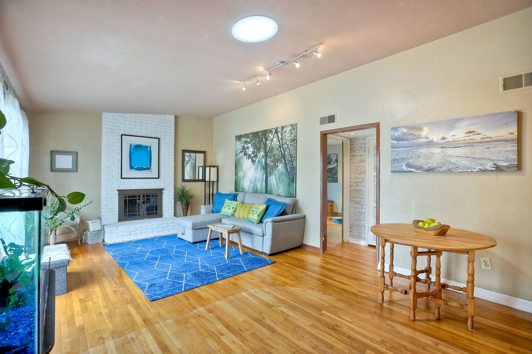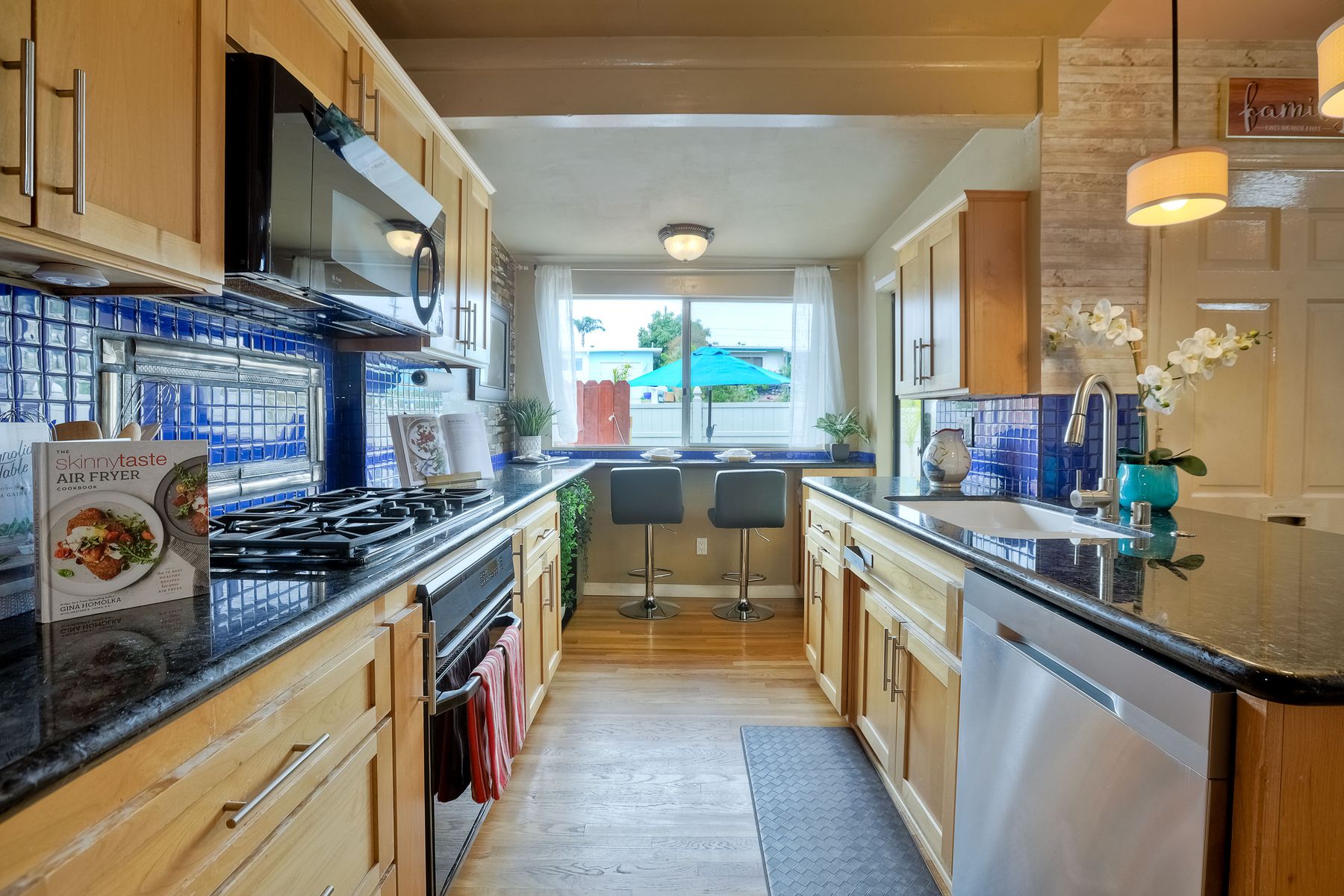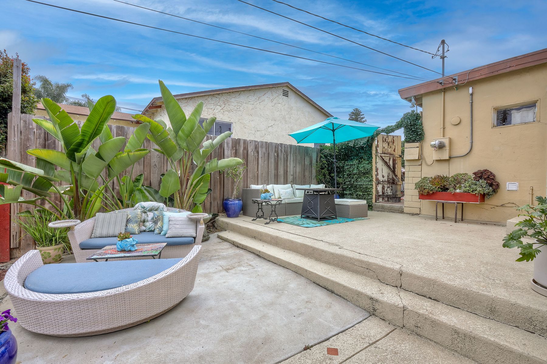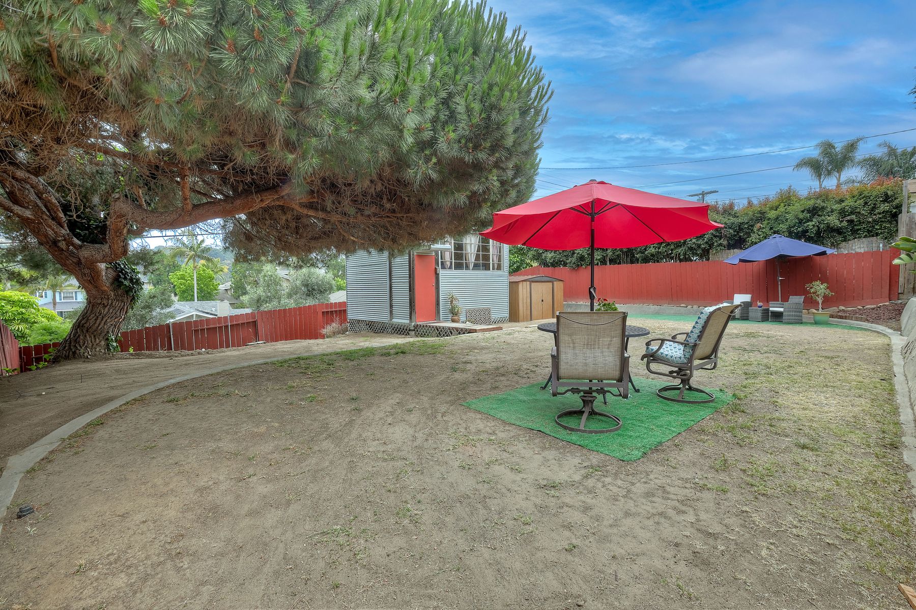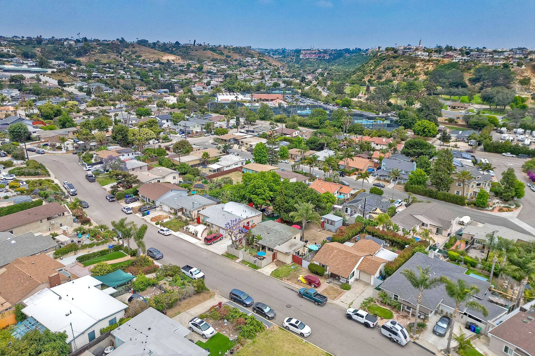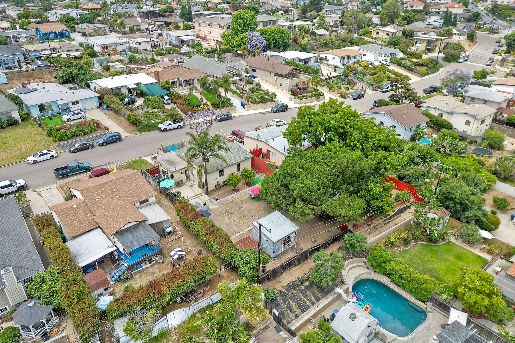 Fantastic opportunity to own this charming beach home in the highly desired area of Bay Park. Featuring vaulted ceilings, beautiful original hardwood floors throughout, brick fireplace and an Additional 12x14 DETACHED unit -currently used as a home gym but can be an office or multipurpose room. Plenty of space in this amazing backyard to add an ADU & Jr ADU, a pool and enjoy the view! 891 sq ft does NOT include the 3rd bedroom. The 3rd bedroom is currently the converted 1 car garage (not permitted). It can be used as an office or den and total sq ft would be approx 1100 sq ft . Additional features are the recently remodeled kitchen and brand New fenced front yard with pavers for more inviting outdoor private living. Close to the Mission Bay, Sea World, Old Town all shopping and easy freeway access. Build up or add on!