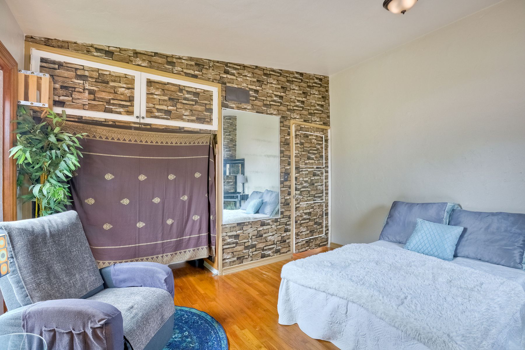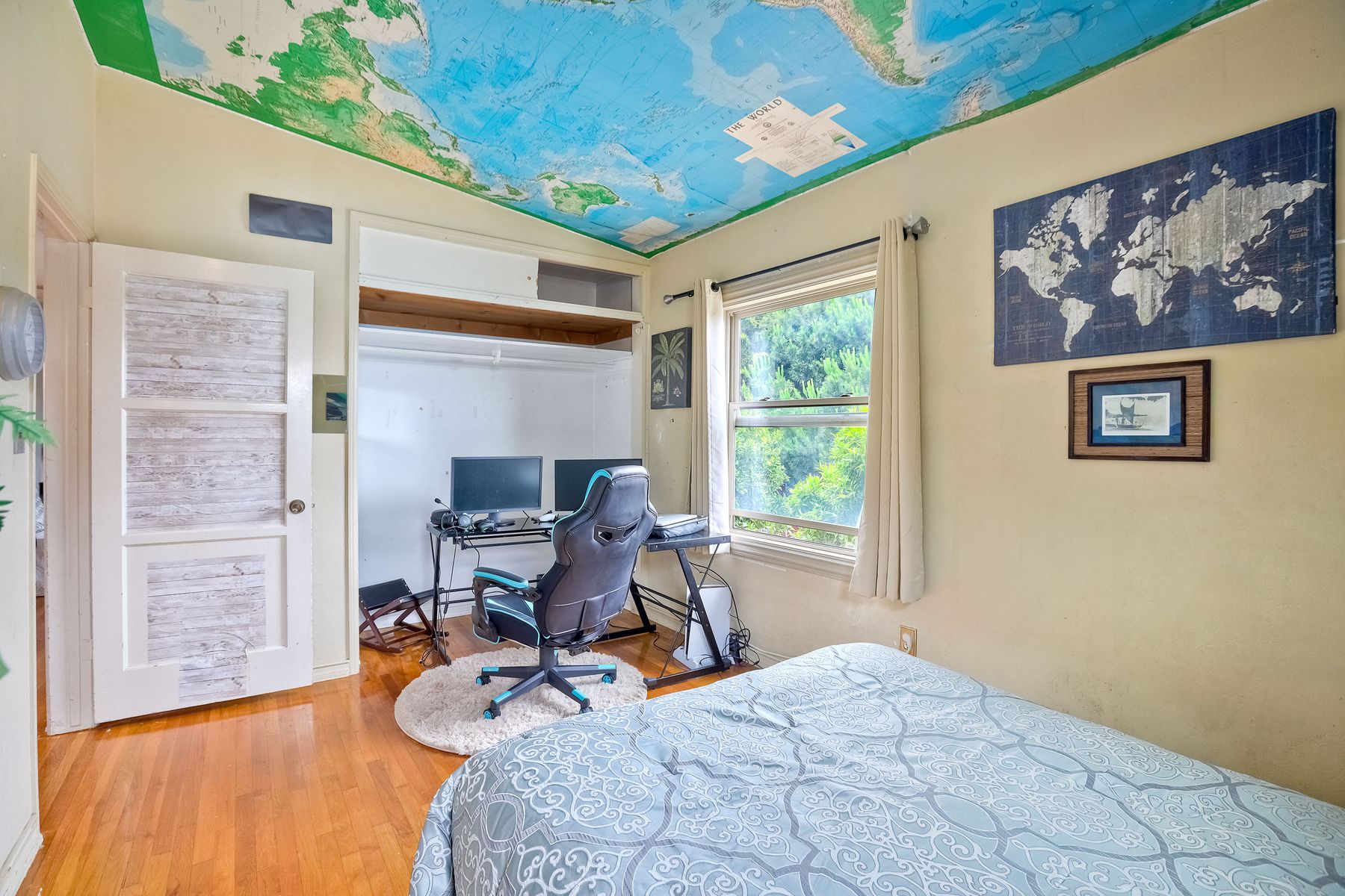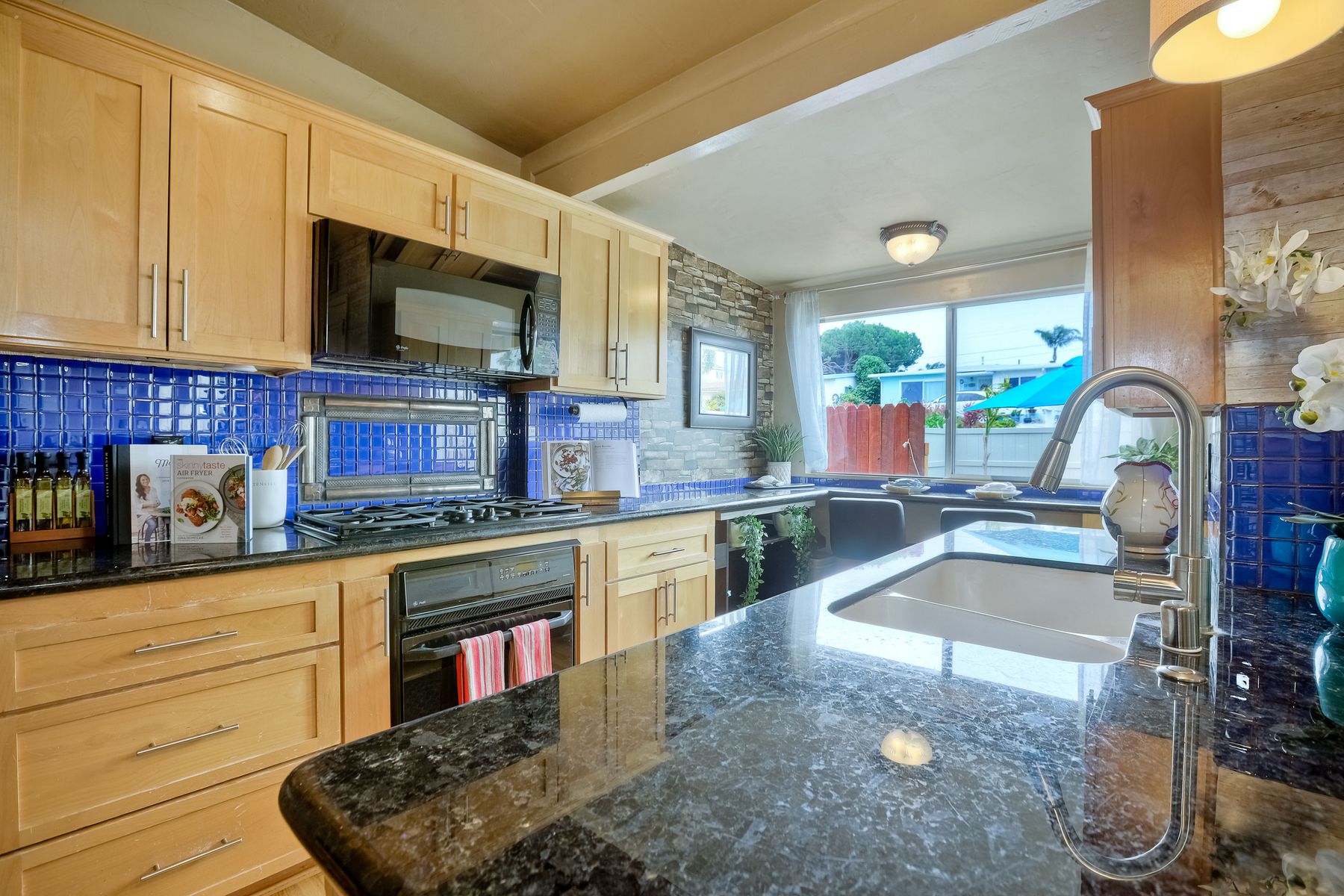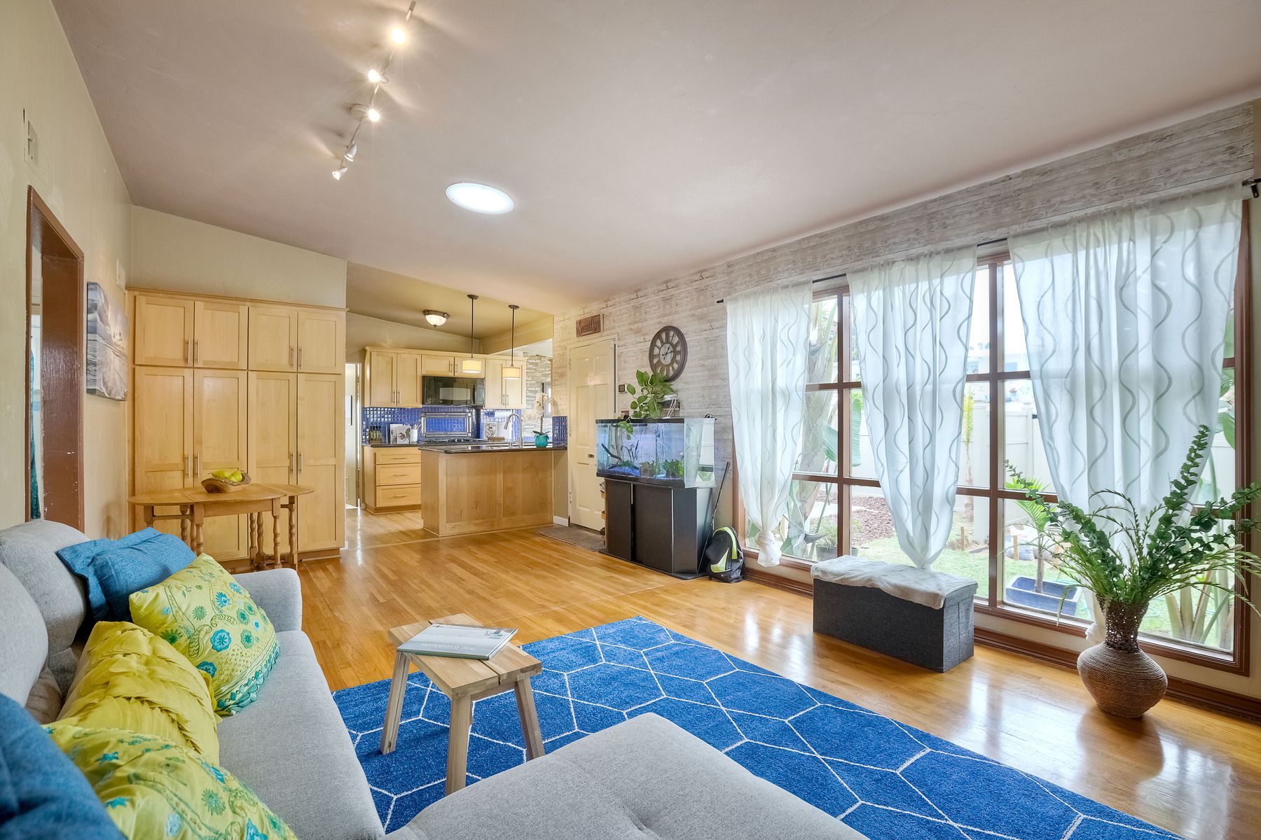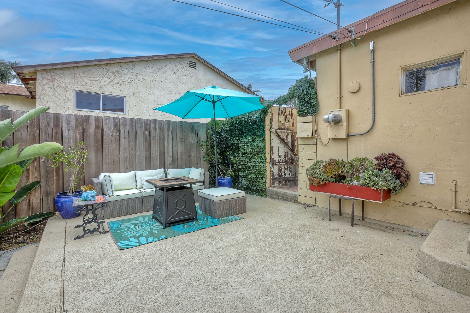 Fantastic opportunity to own this charming beach home in the highly desired area of Bay Park. Featuring vaulted ceilings, beautiful original hardwood floors throughout, brick fireplace and an Additional 12x14 DETACHED unit -currently used as a home gym but can be an office or multipurpose room. Plenty of space in this amazing backyard to add an ADU & Jr ADU, a pool and enjoy the view! 891 sq ft does NOT include the 3rd bedroom. The 3rd bedroom is currently the converted 1 car garage (not permitted). It can be used as an office or den and total sq ft would be approx 1100 sq ft . Additional features are the recently remodeled kitchen and brand New fenced front yard with pavers for more inviting outdoor private living. Close to the Mission Bay, Sea World, Old Town all shopping and easy freeway access. Build up or add on!