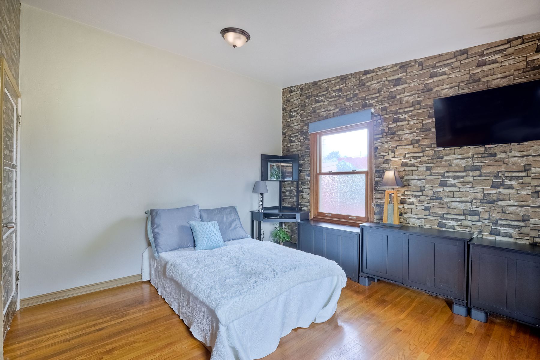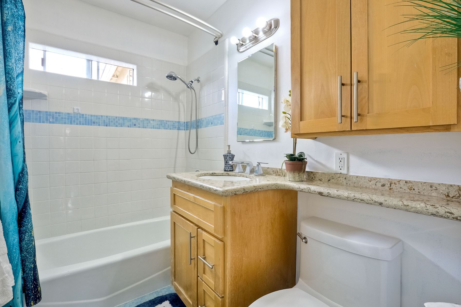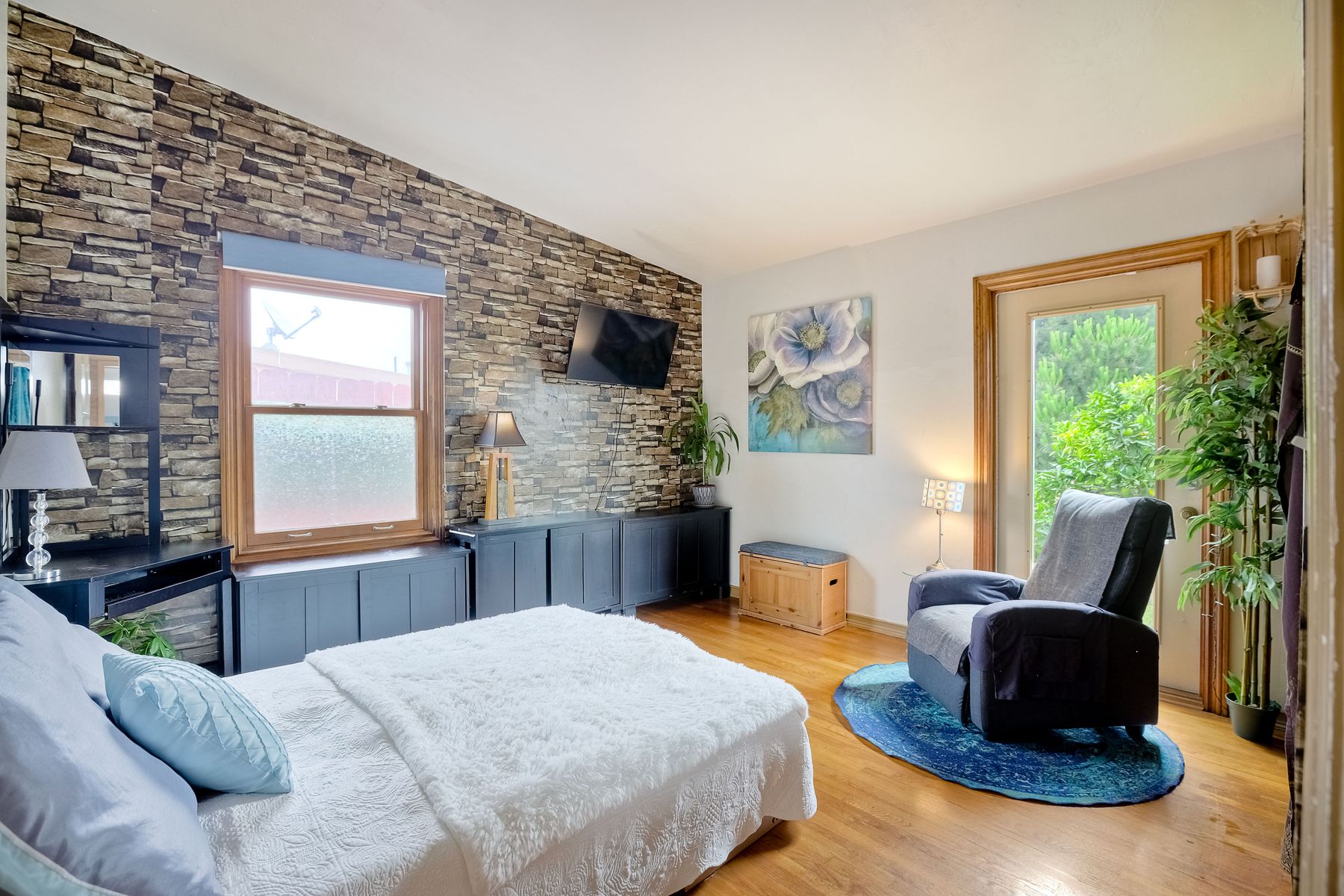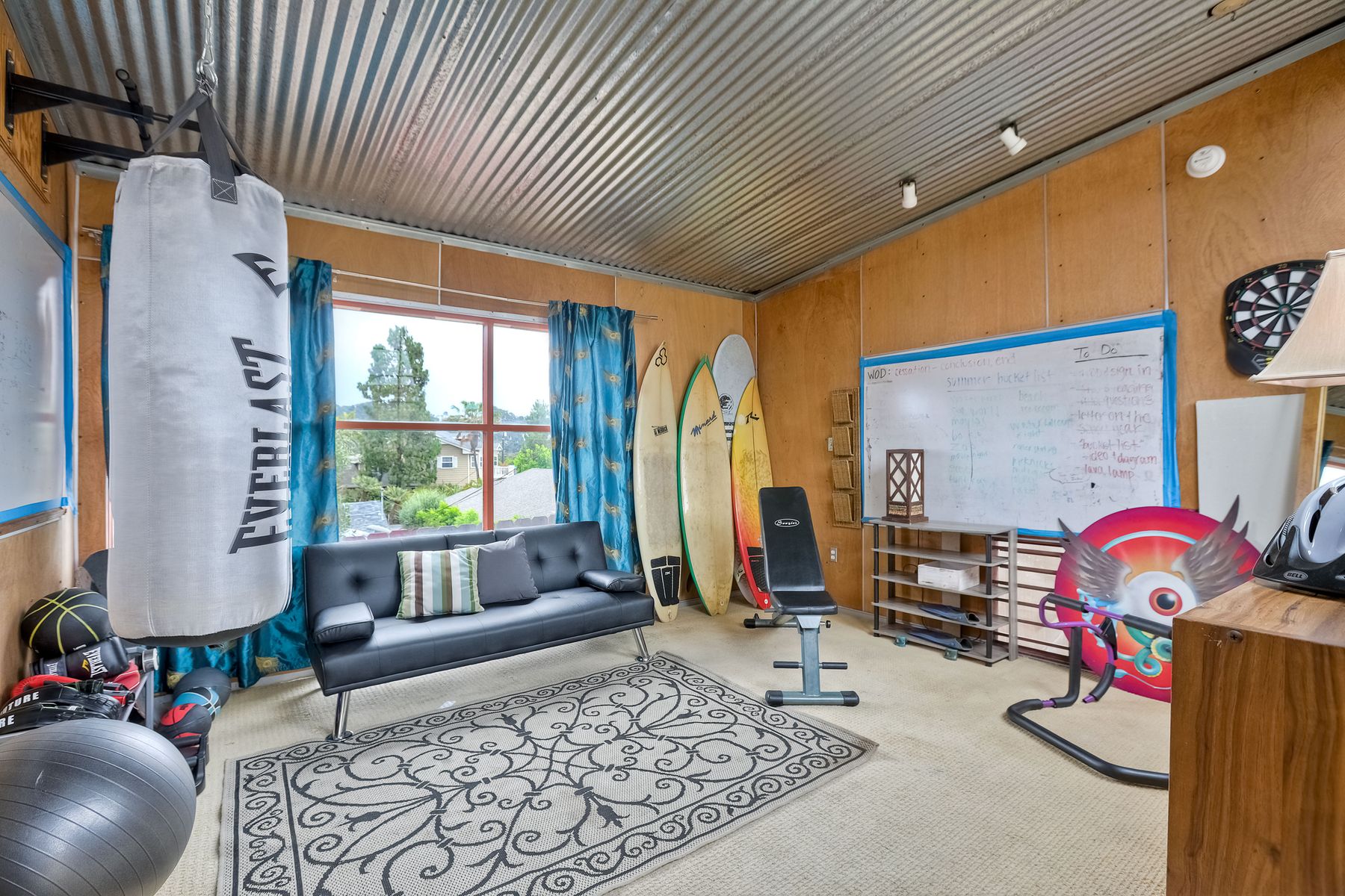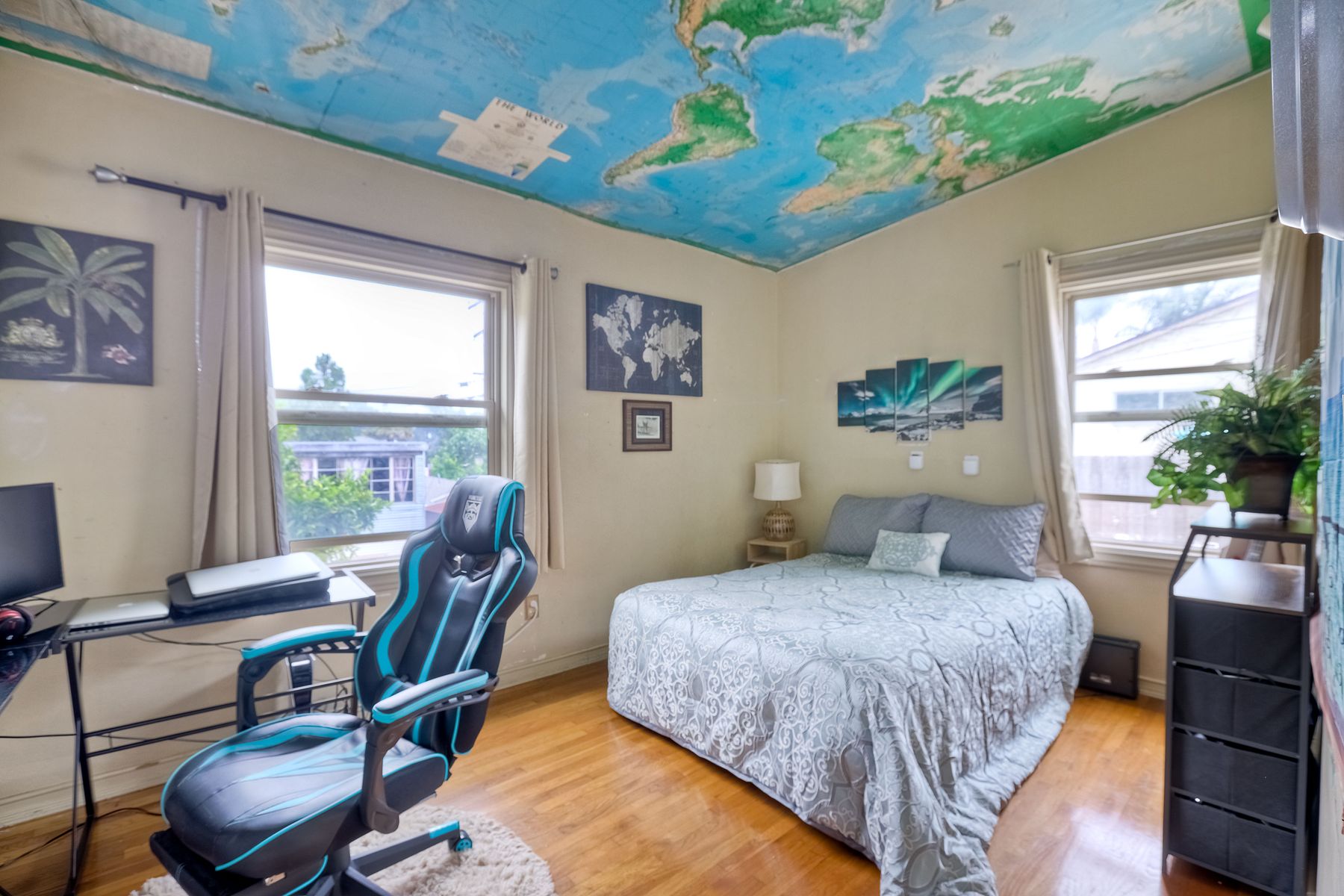 Fantastic opportunity to own this charming beach home in the highly desired area of Bay Park. Featuring vaulted ceilings, beautiful original hardwood floors throughout, brick fireplace and an Additional 12x14 DETACHED unit -currently used as a home gym but can be an office or multipurpose room. Plenty of space in this amazing backyard to add an ADU & Jr ADU, a pool and enjoy the view! 891 sq ft does NOT include the 3rd bedroom. The 3rd bedroom is currently the converted 1 car garage (not permitted). It can be used as an office or den and total sq ft would be approx 1100 sq ft . Additional features are the recently remodeled kitchen and brand New fenced front yard with pavers for more inviting outdoor private living. Close to the Mission Bay, Sea World, Old Town all shopping and easy freeway access. Build up or add on!