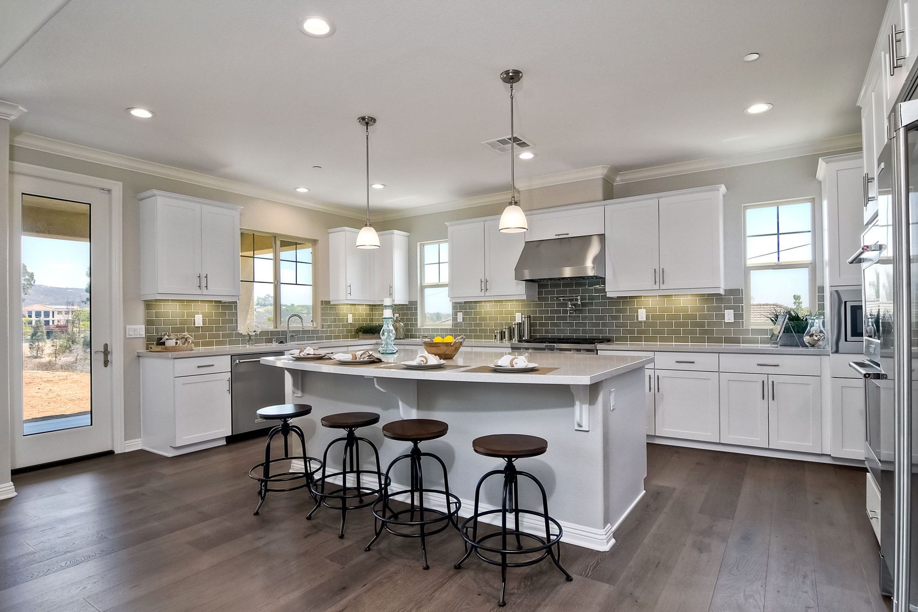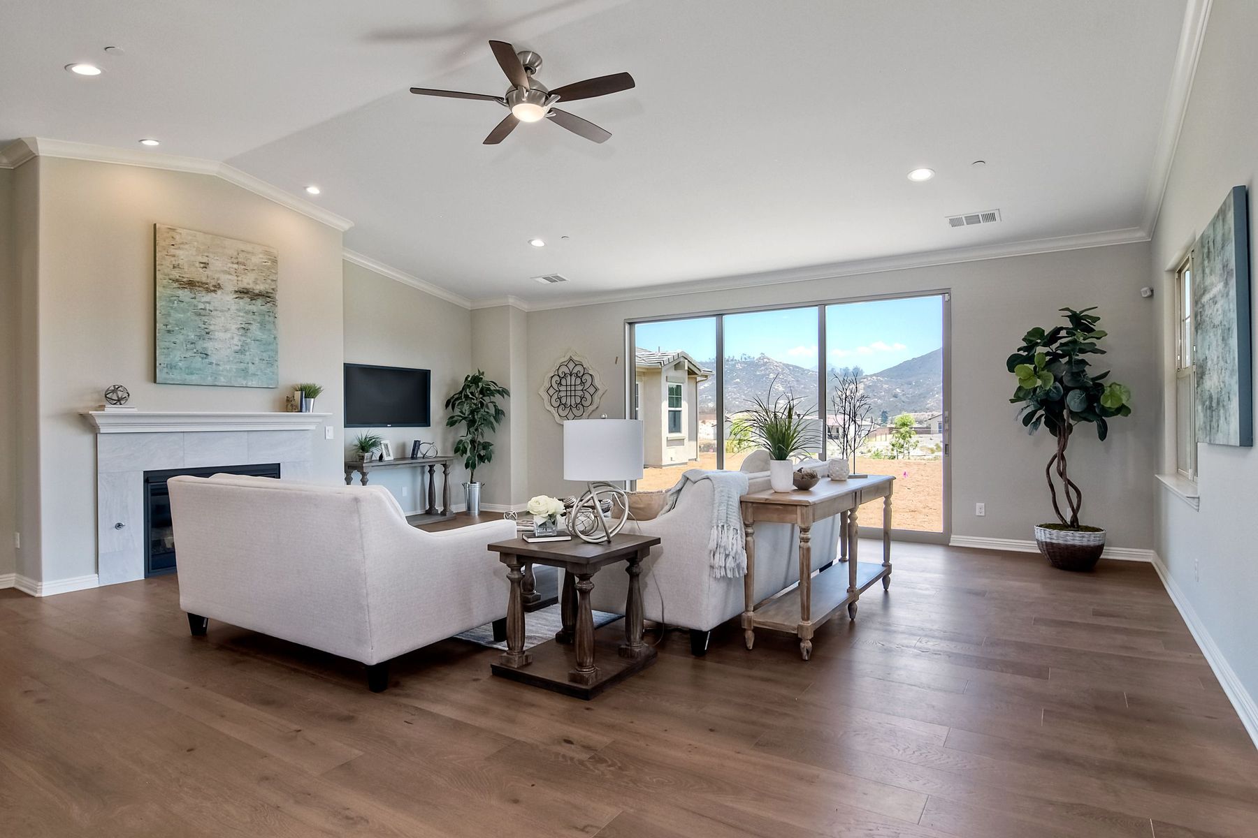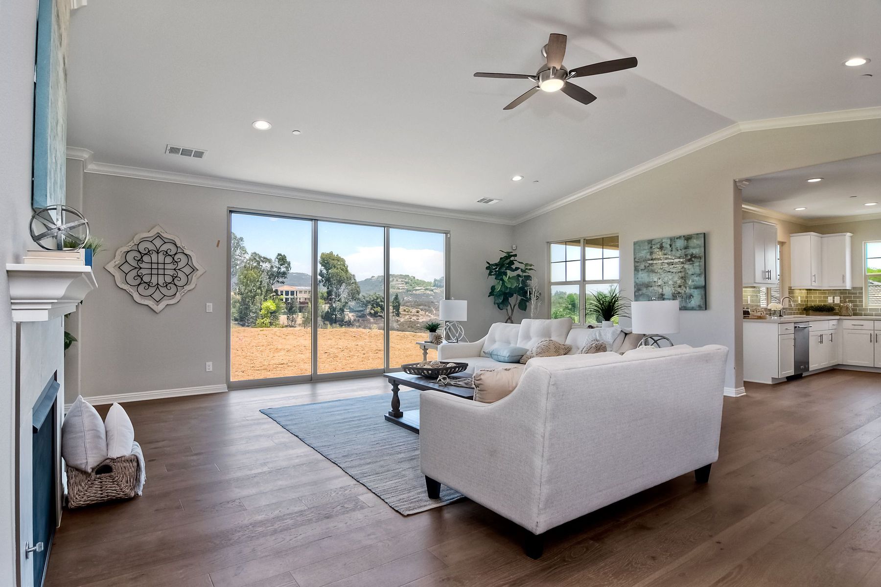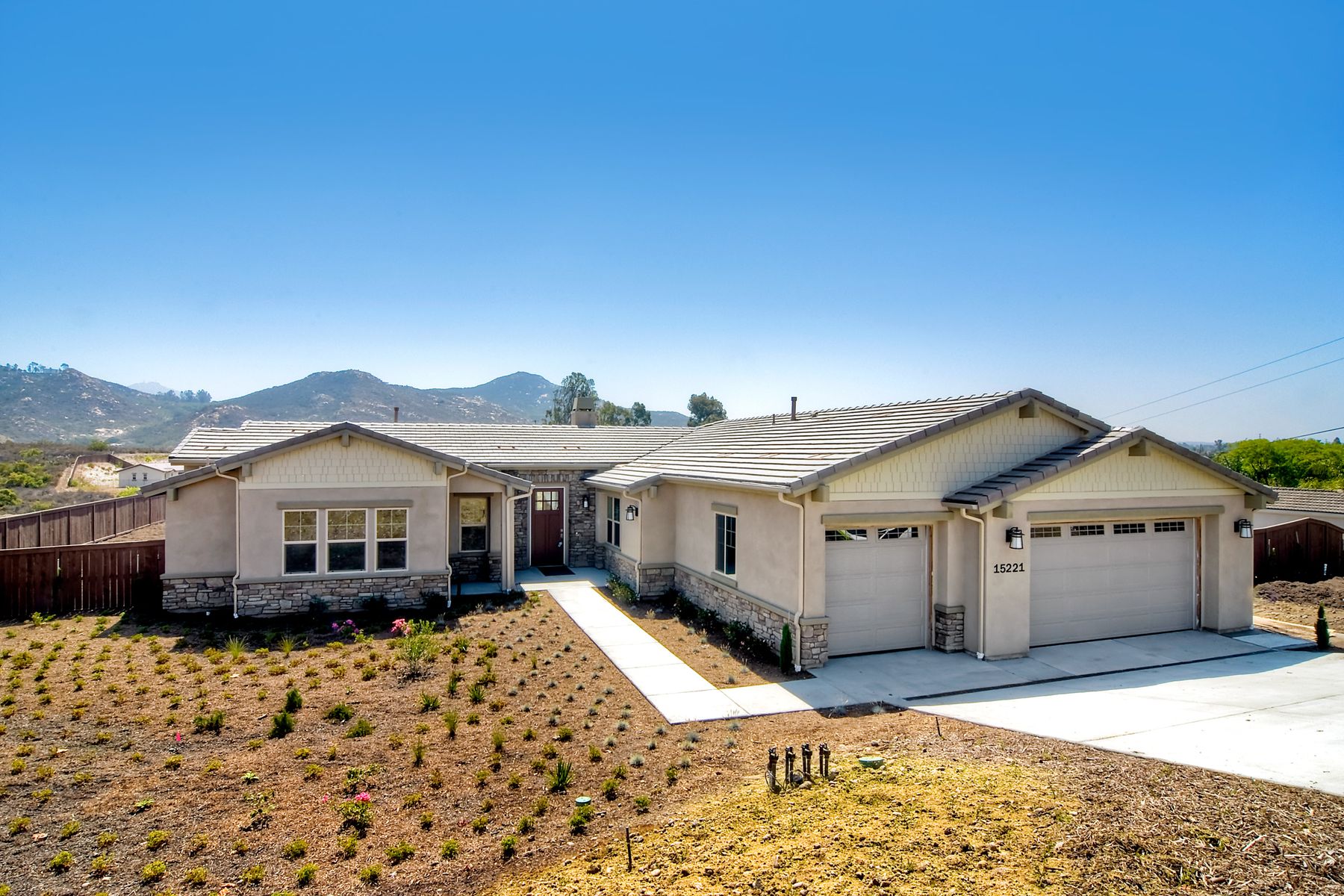 Single Level New Construction! Amazing View and Pool Size Lots! 2.6kw 8 Panel Solar Photovoltaic (PV) System Included, Kitchen features stainless appliances, walk in pantry, built in 64 inch Refrigerator, double ovens, large center island with casual dining area and built in wine storage and wine chiller. 3 Car Garages, High Volume Ceilings! This lot features a large backyard pad area! Room for Elaborate Backyard and Substantial Outdoor Living Space! No Mello Roos, Move in Ready! Ask about incentives. Butler Pantry with Wine Room, Upgraded with Engineered Hardwood Floors. In the Poway School District! Plenty of room for pool and outdoor living spaces, tankless water heater, Open floorplan, High Ceilings, Canyon Views. Solar paid in full and included. Choice of Poway or RB High per PUSD website.