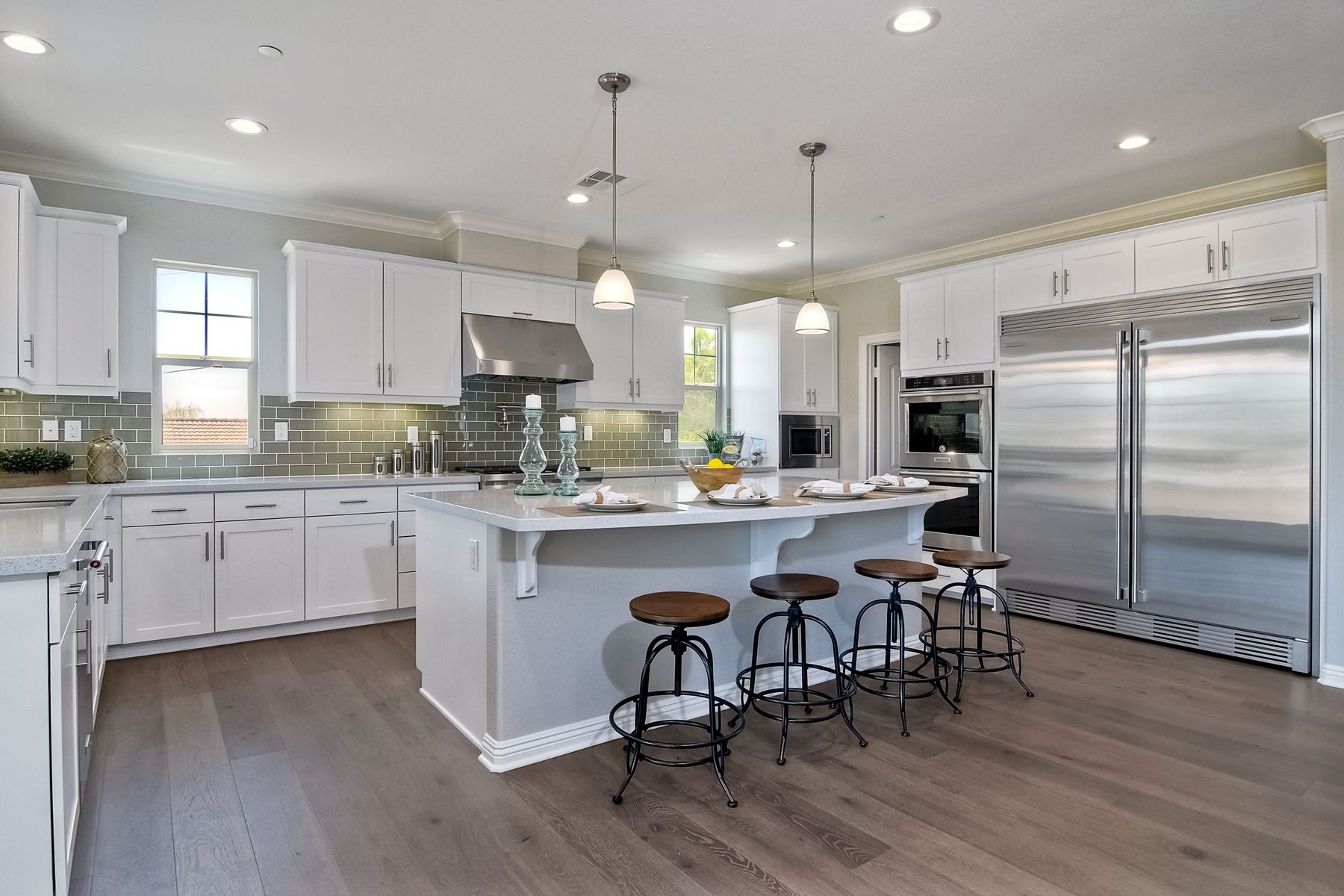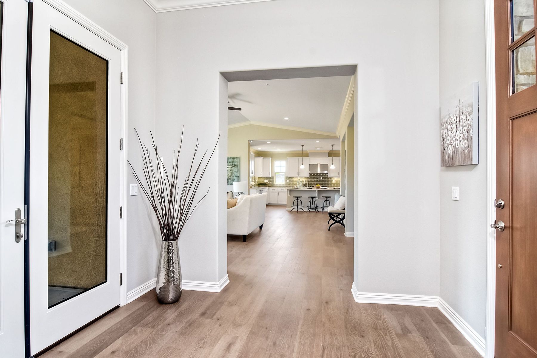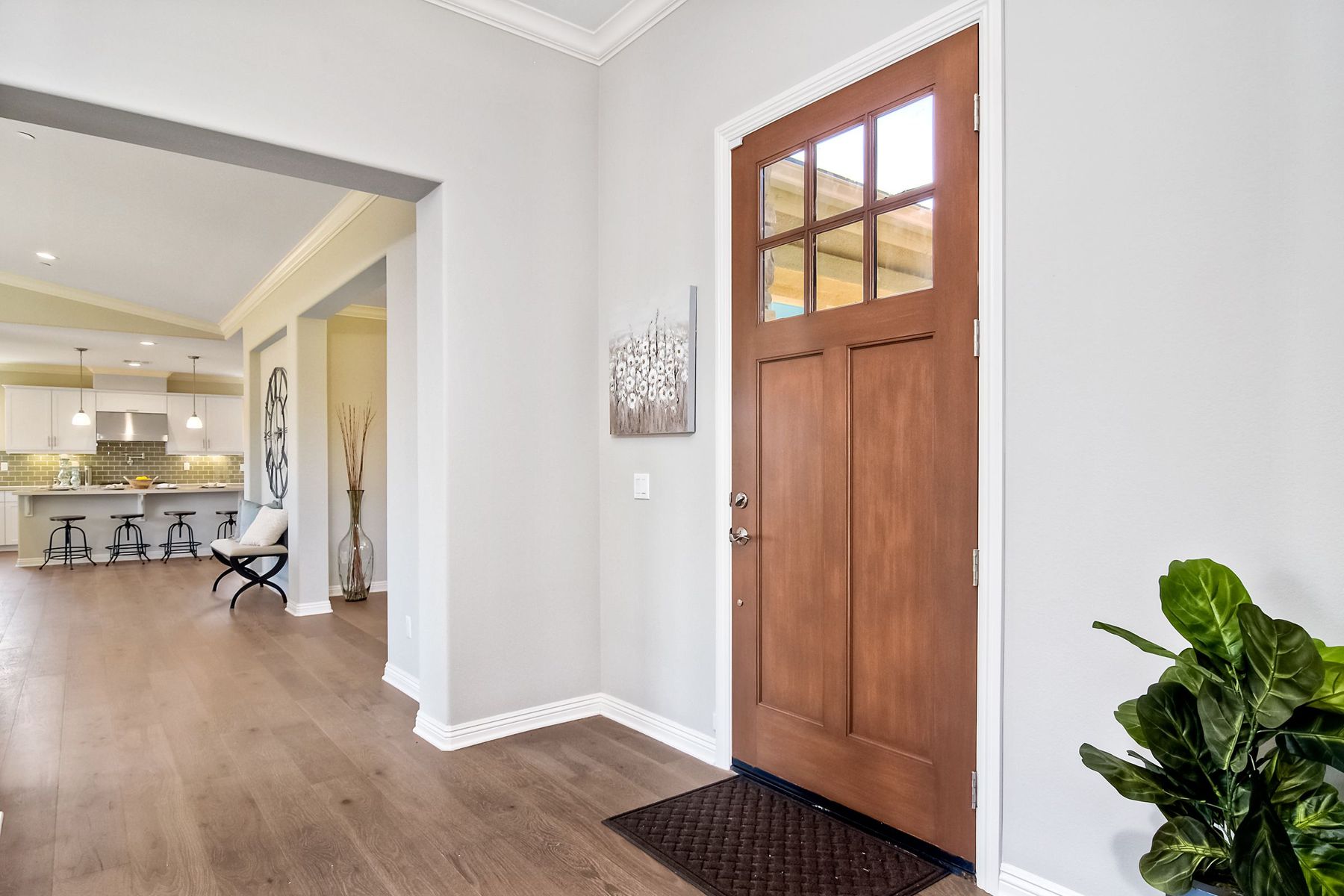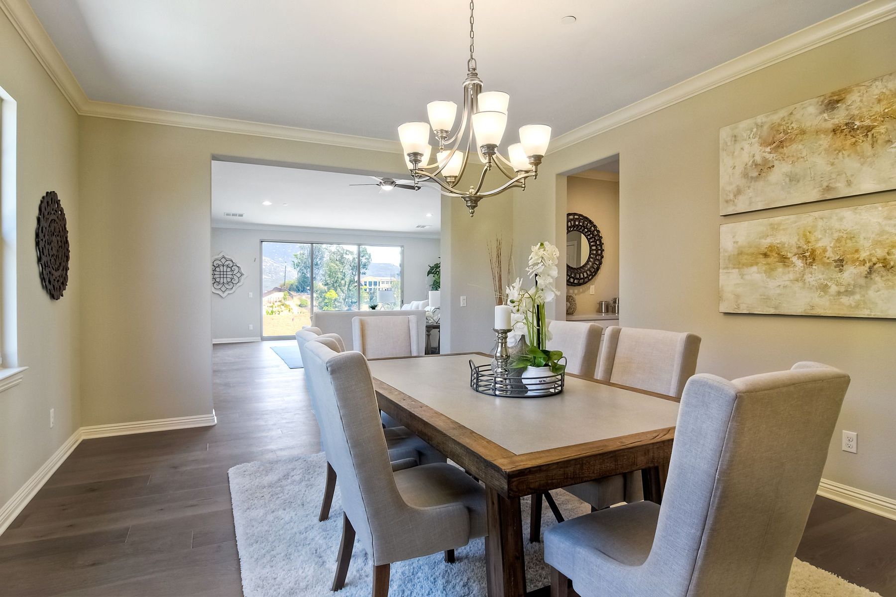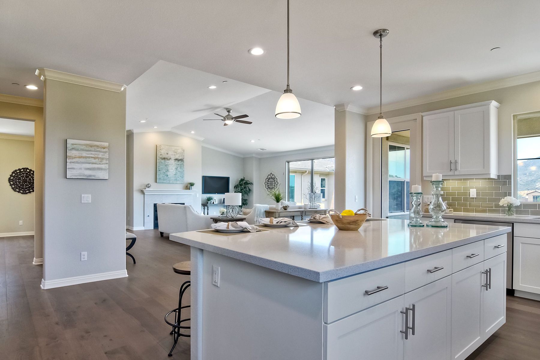 Single Level New Construction! Amazing View and Pool Size Lots! 2.6kw 8 Panel Solar Photovoltaic (PV) System Included, Kitchen features stainless appliances, walk in pantry, built in 64 inch Refrigerator, double ovens, large center island with casual dining area and built in wine storage and wine chiller. 3 Car Garages, High Volume Ceilings! This lot features a large backyard pad area! Room for Elaborate Backyard and Substantial Outdoor Living Space! No Mello Roos, Move in Ready! Ask about incentives. Butler Pantry with Wine Room, Upgraded with Engineered Hardwood Floors. In the Poway School District! Plenty of room for pool and outdoor living spaces, tankless water heater, Open floorplan, High Ceilings, Canyon Views. Solar paid in full and included. Choice of Poway or RB High per PUSD website.