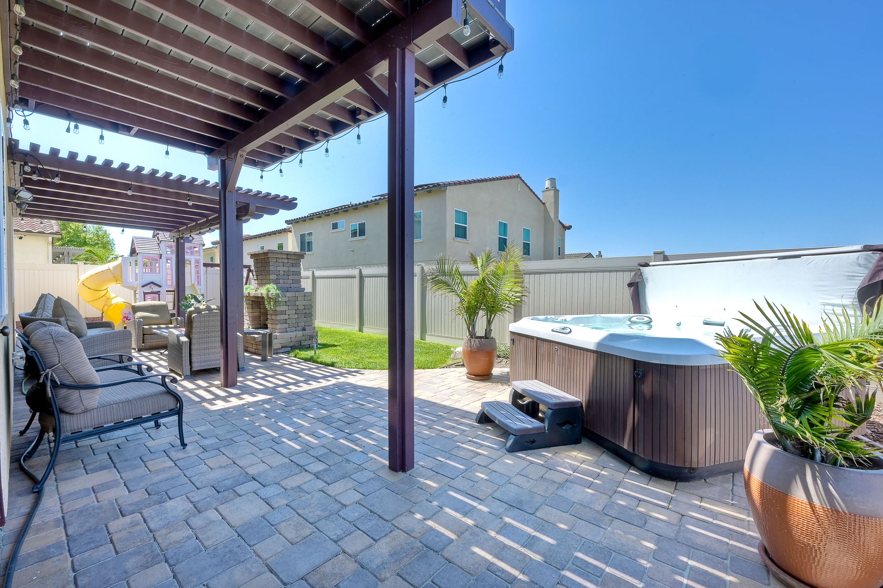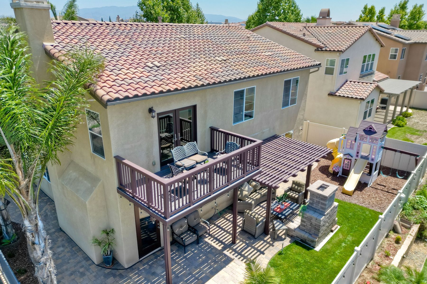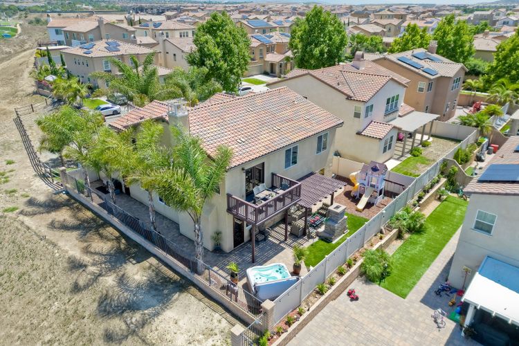 Beautifully Maintained 5-Bedroom Home in Desirable Montecito with Canyon, Mountain, and Ocean VIEWS! VIEWS from almost every Window! FULL BED and BATH on Entry Level! CORNER LOT in a CUL DE SAC! GORGEOUS Backyard with PAVERS, 2 PERGOLA, SPA, CUSTOM FIREPLACE, and KIDS PLAY STRUCTURE! Spacious Master Bedroom with TWO WALK-IN CLOSETS and OVERSIZED BALCONY with VIEWS! GRANITE Counters throughout and Tons of Cabinets in Kitchen! FULL Laundry Located UPSTAIRS! BEST FLOORPLAN!