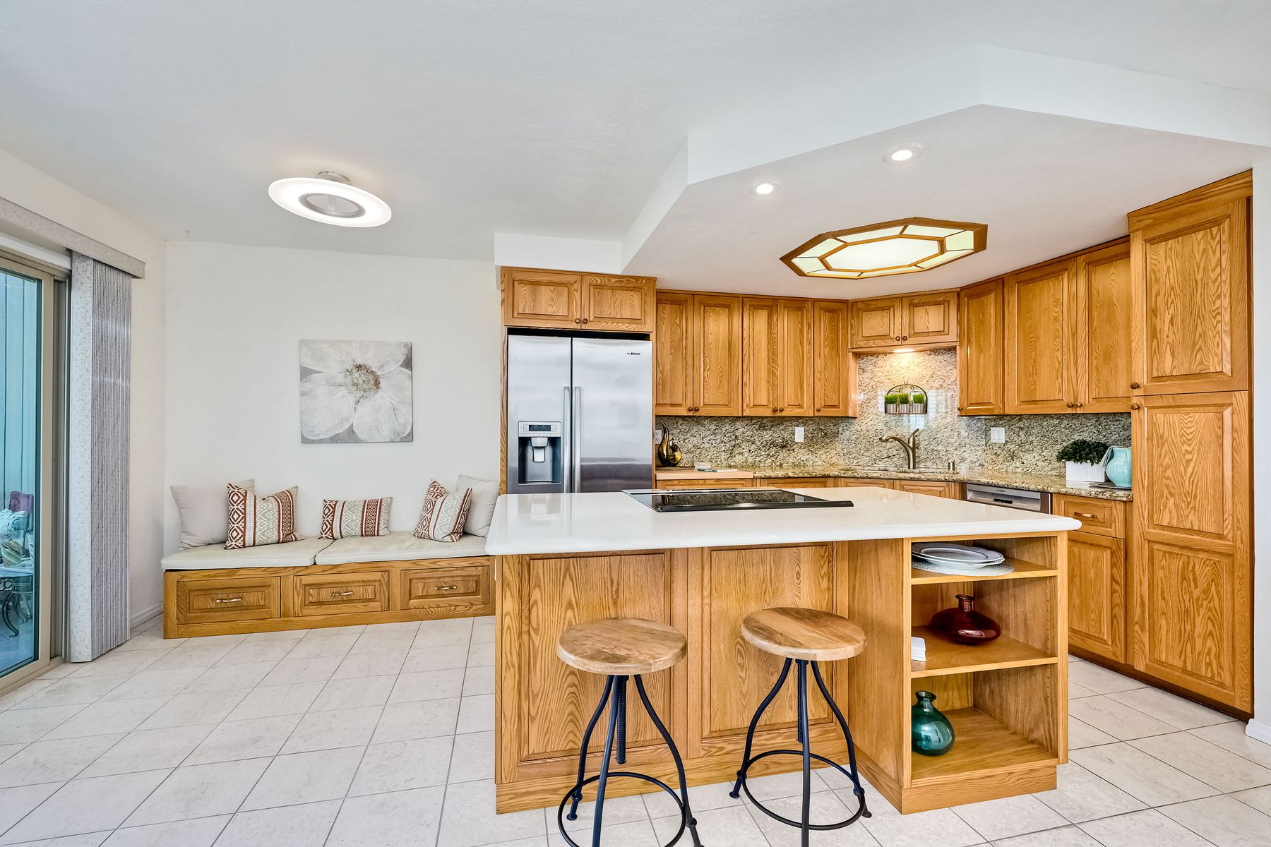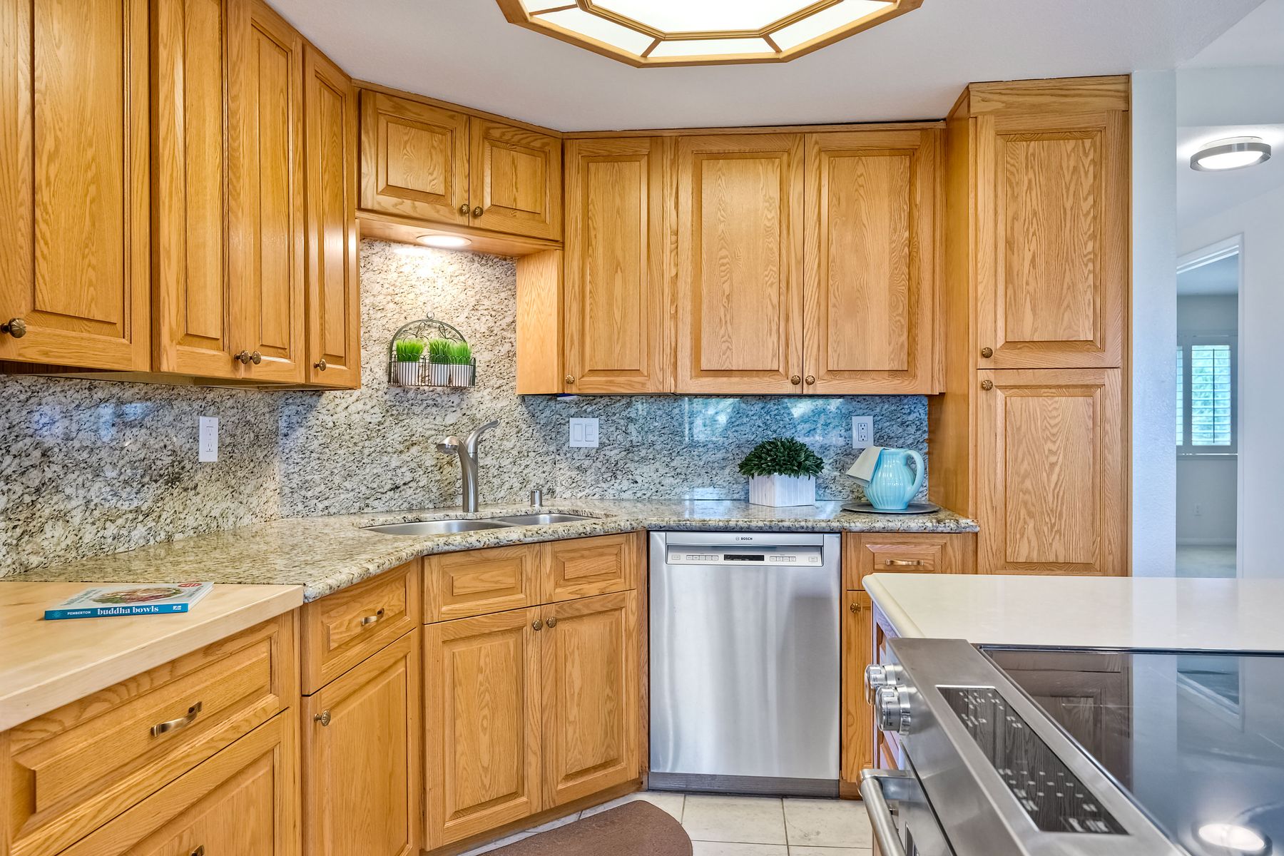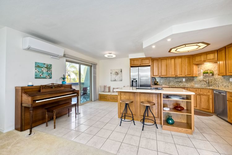 Price Improvement! Bask in ocean views and cool breezes from the sun-shaded, privacy-screened balcony of this beautifully upgraded and spacious 2 bedroom, 2 bathroom top floor corner unit condo. This prime unit features a fully remodeled kitchen with top of the line appliances. At 1,000 sq. ft. it is the largest floor plan in the complex and additionally distinguishes itself with a new Daikon A/C and heating mini-split, a full-size washer and dryer, 2 dedicated parking spaces, and 2 separate ample storage closets with built-in shelving which can accommodate bikes, surf boards, and much more. The grounds are serene and spa-like, with a common area featuring a waterfall, deck with ocean view, lush landscape, and beautiful walkways. Enjoy the closeness to famous Encinitas beaches, restaurants, shopping, and much more. Offered on a range between $799,000 and $845,000.