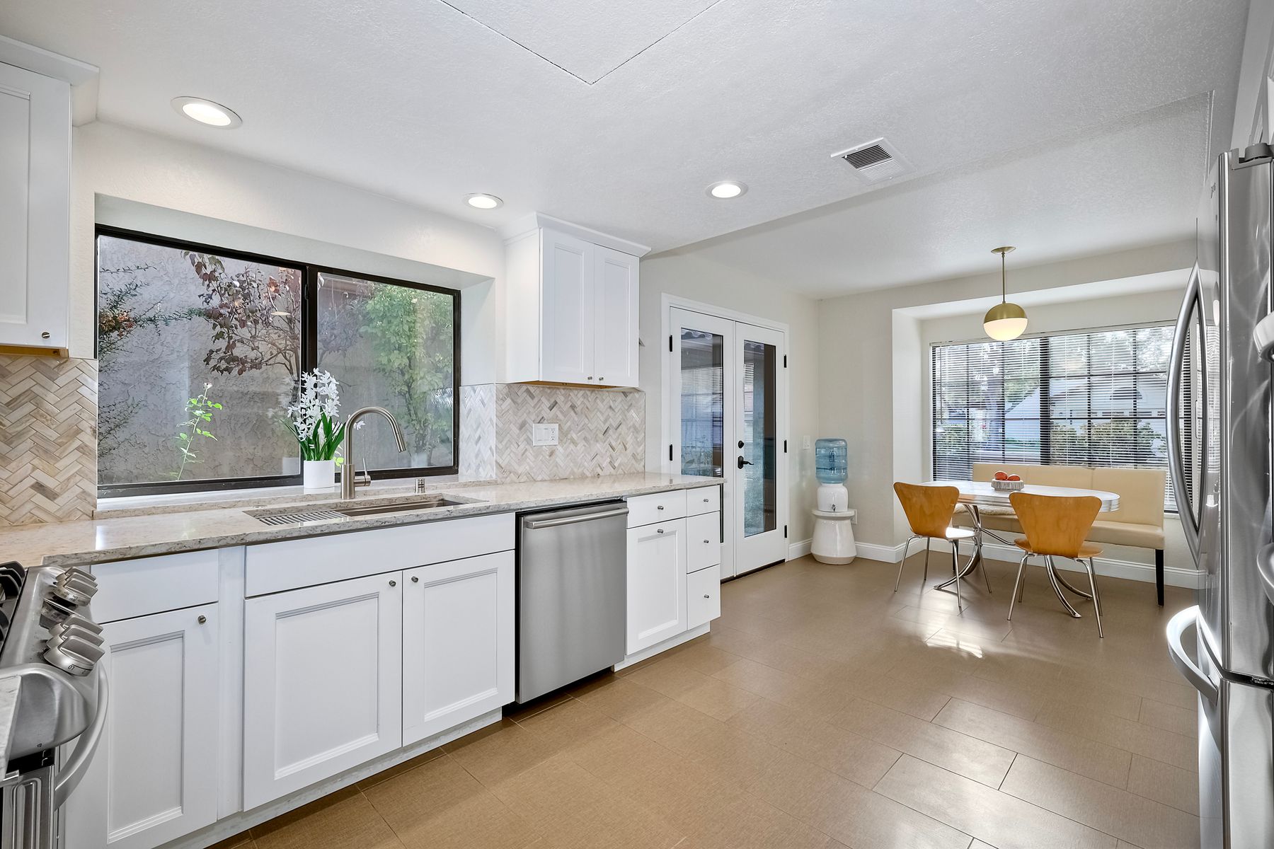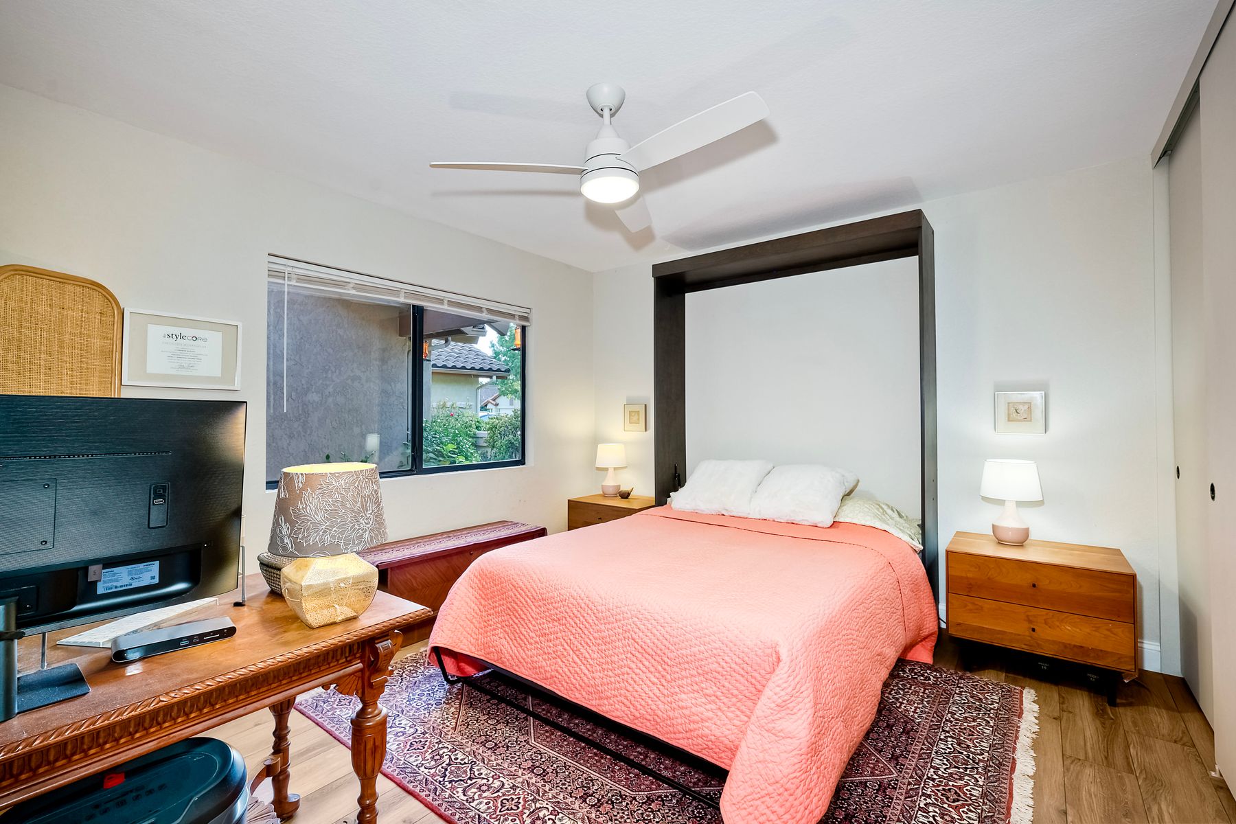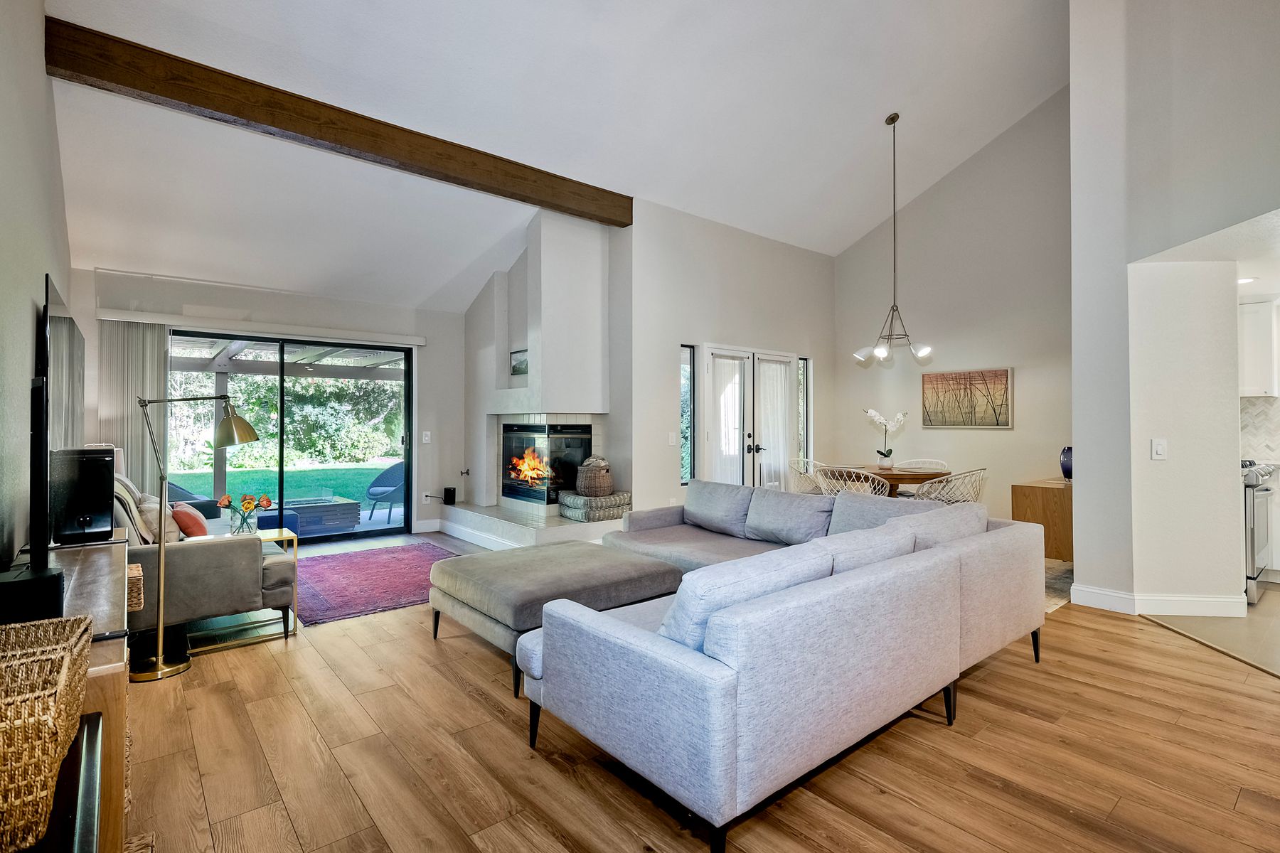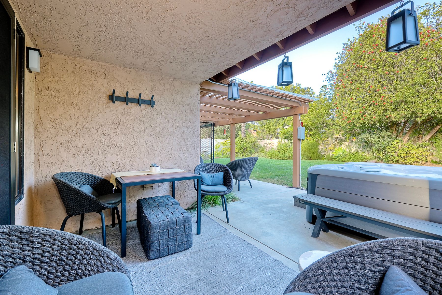 Home back on market no fault of seller or home. Beautifully updated home in the Las Floras community of Bernardo Heights! Walking through the front entry you appreciate the wood beamed vaulted ceiling, statement fireplace, stunning LVP floors and sightlines to the inviting backyard. The dining room is open to the living room, offering a contemporary chandelier and french doors to the covered patio. The magazine ready kitchen is full of natural light with stainless steel appliances, extensive premium white cabinetry, complimentary tile backsplash, and a spacious eat in area. The master suite retreat has a vaulted ceiling, walk in closet and sliding glass doors to the covered patio. The spa-like bath includes a double vanity, large tiled shower and stand alone deep soaker tub. The generous second bedroom’s murphy bed expands its versatility and the beautifully appointed hall bath is easily accessible. The backyard’s covered patio facilitates indoor/outdoor living. The surrounding yard is private and calm with full vinyl fencing, more than 60 mature flowering plants that bloom at various times throughout the year, fruit trees and green grass. A hot tub/spa completes this park-like yard and is negotiable. Located in the Distinguished Poway Unified School District and offering access to the Bernardo Heights Community Center amenities; a fitness center, pools, tennis and pickleball courts, etc. In addition, there is a second pool and club facility within walking distance to the home. Near Lucido Park, shopping, restaurants and easy freeway access. An extensive list of home improvements has been attached to this listing.