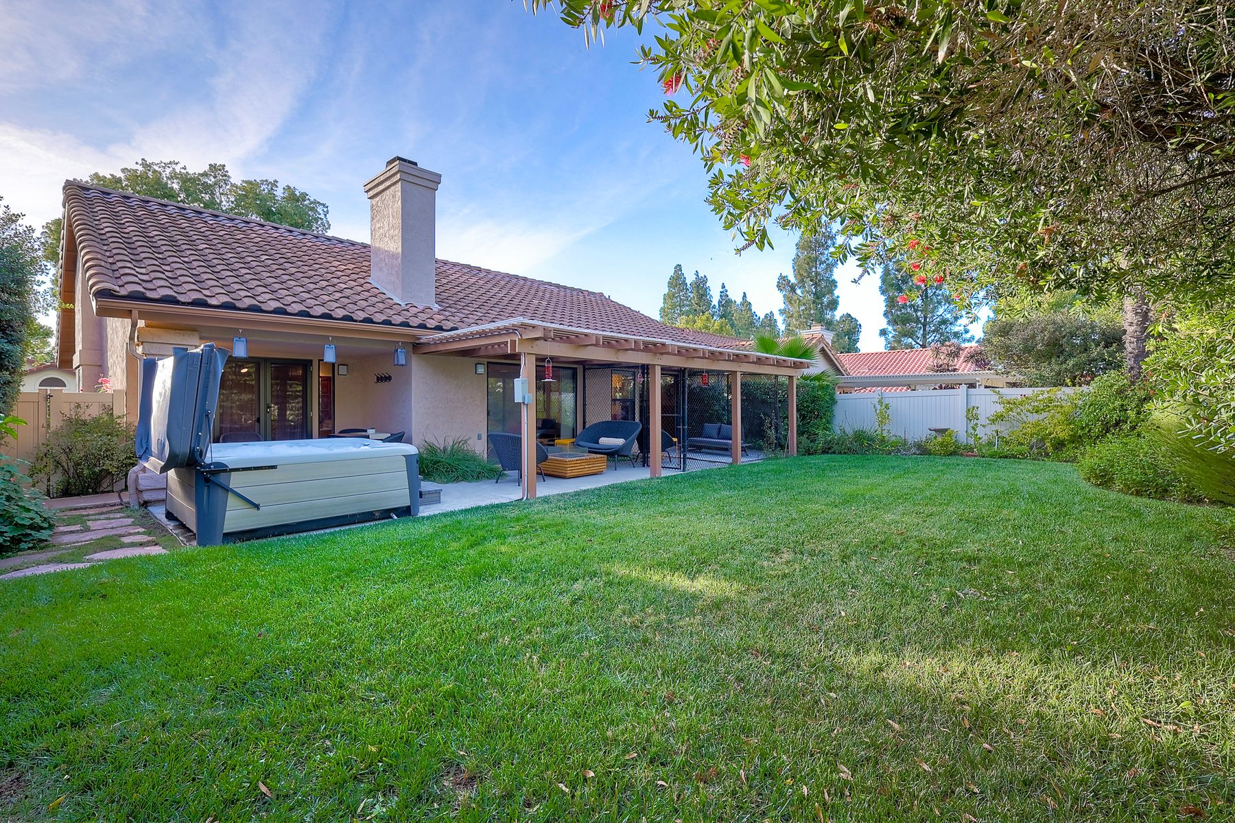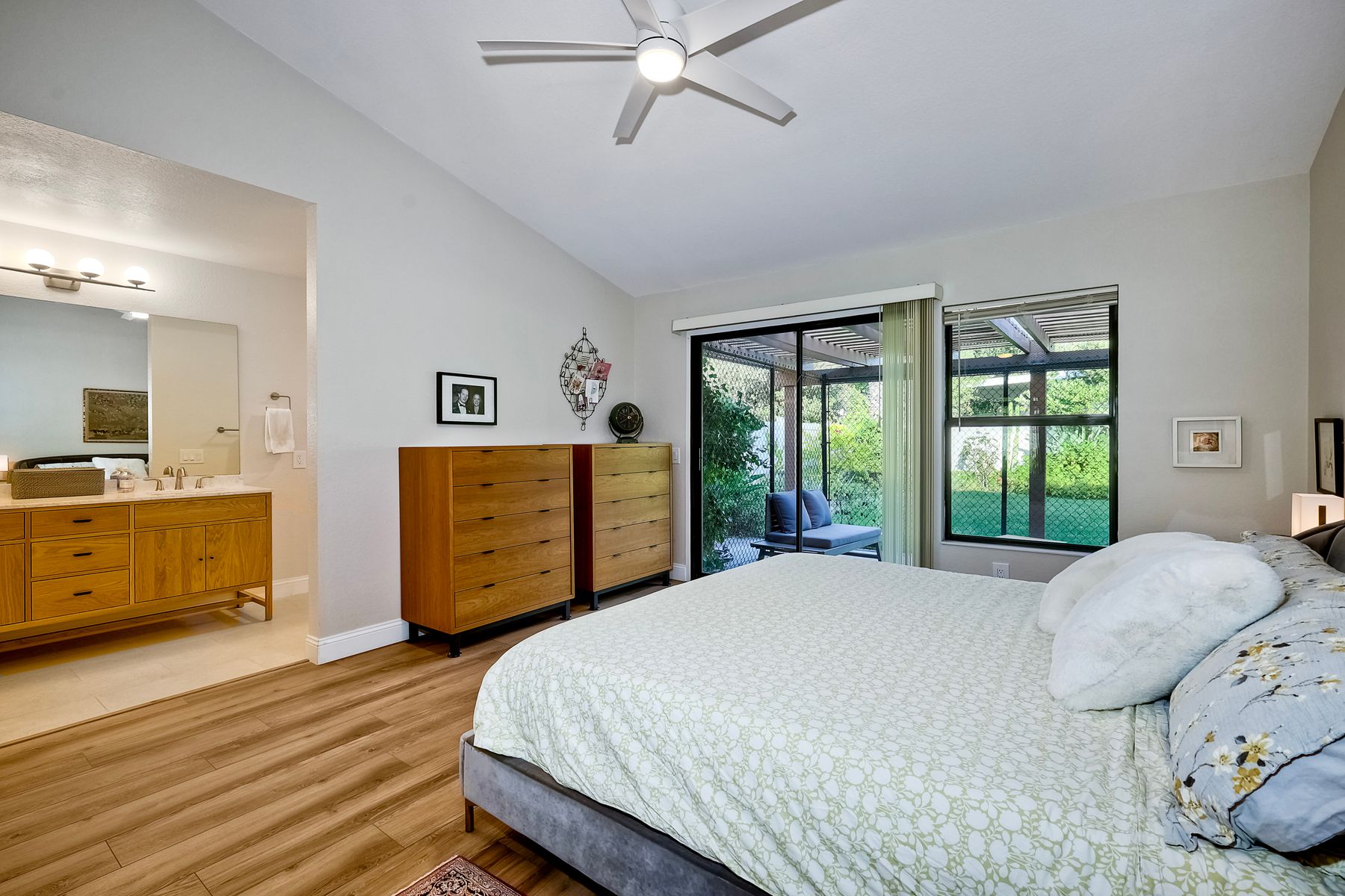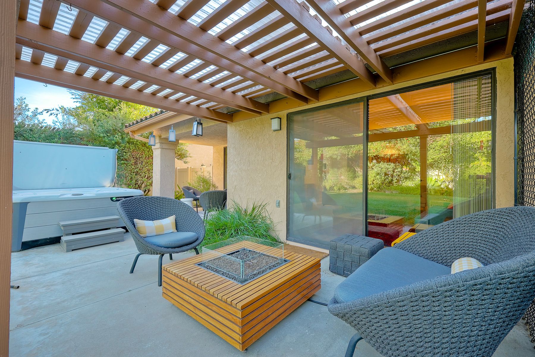 Home back on market no fault of seller or home. Beautifully updated home in the Las Floras community of Bernardo Heights! Walking through the front entry you appreciate the wood beamed vaulted ceiling, statement fireplace, stunning LVP floors and sightlines to the inviting backyard. The dining room is open to the living room, offering a contemporary chandelier and french doors to the covered patio. The magazine ready kitchen is full of natural light with stainless steel appliances, extensive premium white cabinetry, complimentary tile backsplash, and a spacious eat in area. The master suite retreat has a vaulted ceiling, walk in closet and sliding glass doors to the covered patio. The spa-like bath includes a double vanity, large tiled shower and stand alone deep soaker tub. The generous second bedroom’s murphy bed expands its versatility and the beautifully appointed hall bath is easily accessible. The backyard’s covered patio facilitates indoor/outdoor living. The surrounding yard is private and calm with full vinyl fencing, more than 60 mature flowering plants that bloom at various times throughout the year, fruit trees and green grass. A hot tub/spa completes this park-like yard and is negotiable. Located in the Distinguished Poway Unified School District and offering access to the Bernardo Heights Community Center amenities; a fitness center, pools, tennis and pickleball courts, etc. In addition, there is a second pool and club facility within walking distance to the home. Near Lucido Park, shopping, restaurants and easy freeway access. An extensive list of home improvements has been attached to this listing.