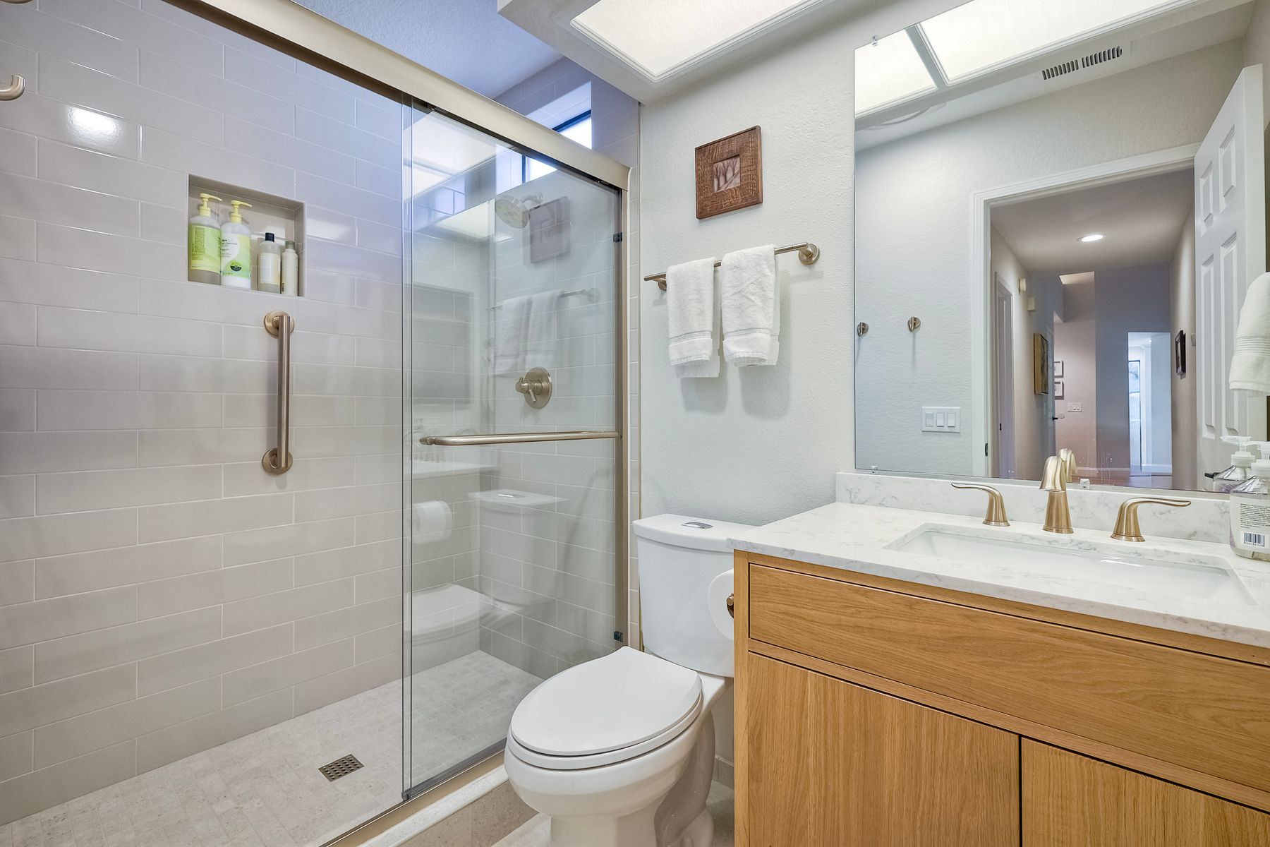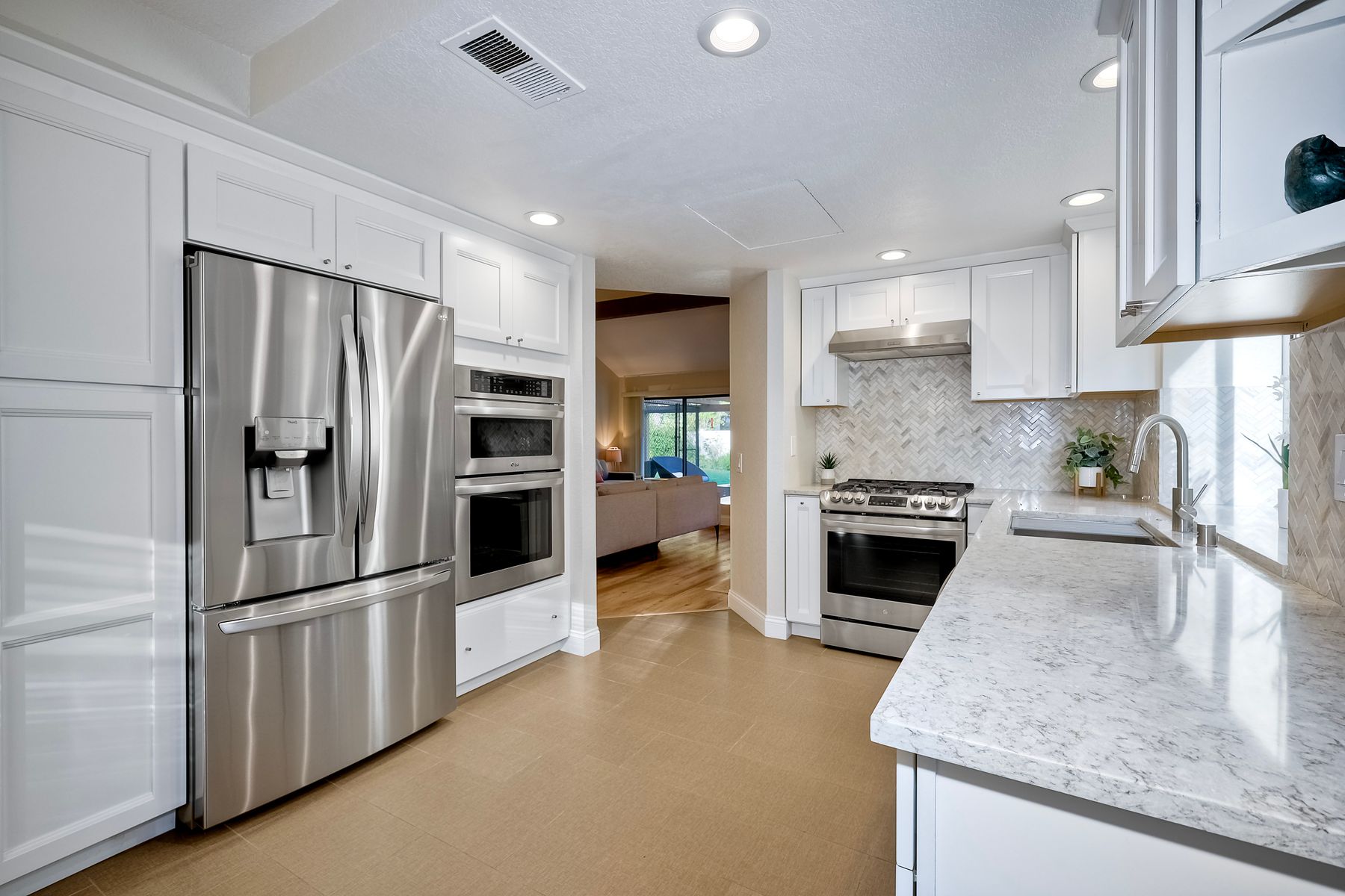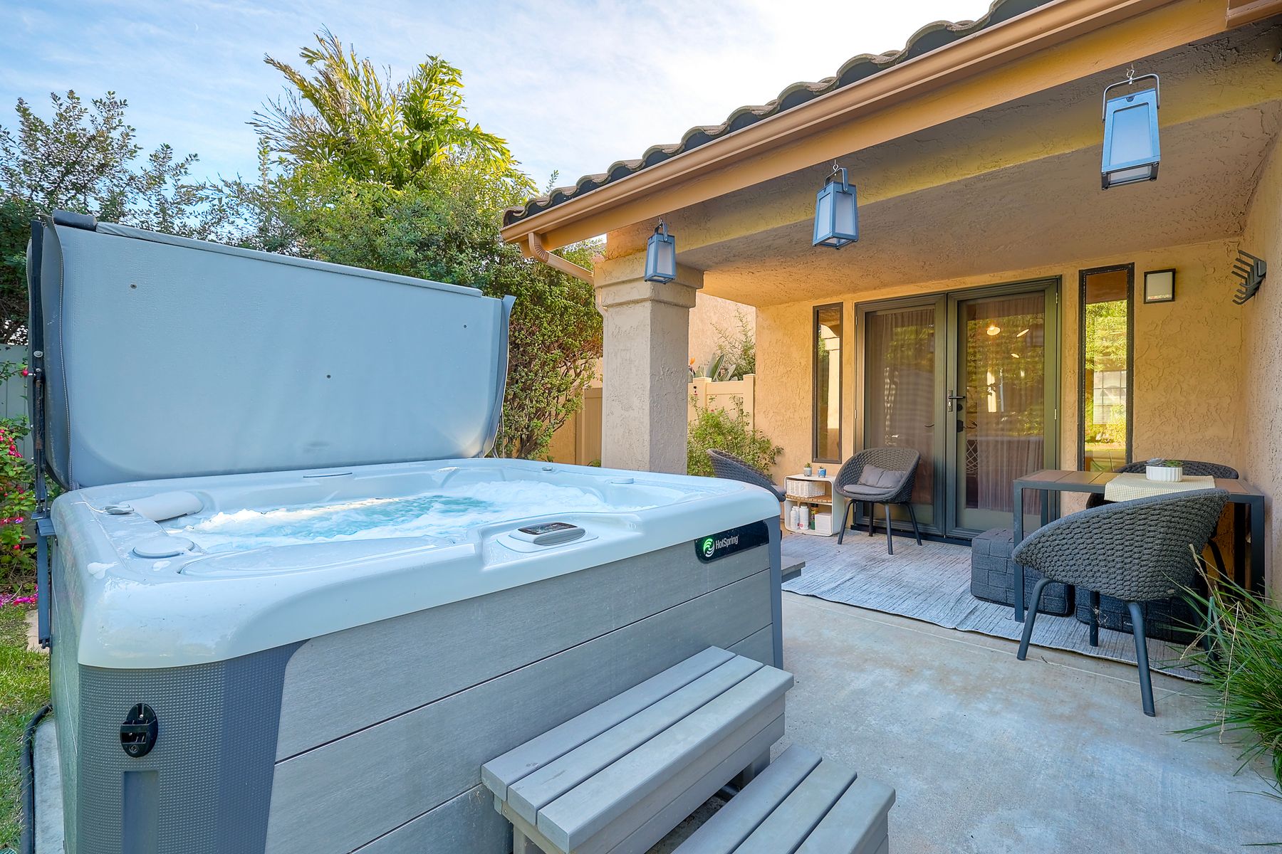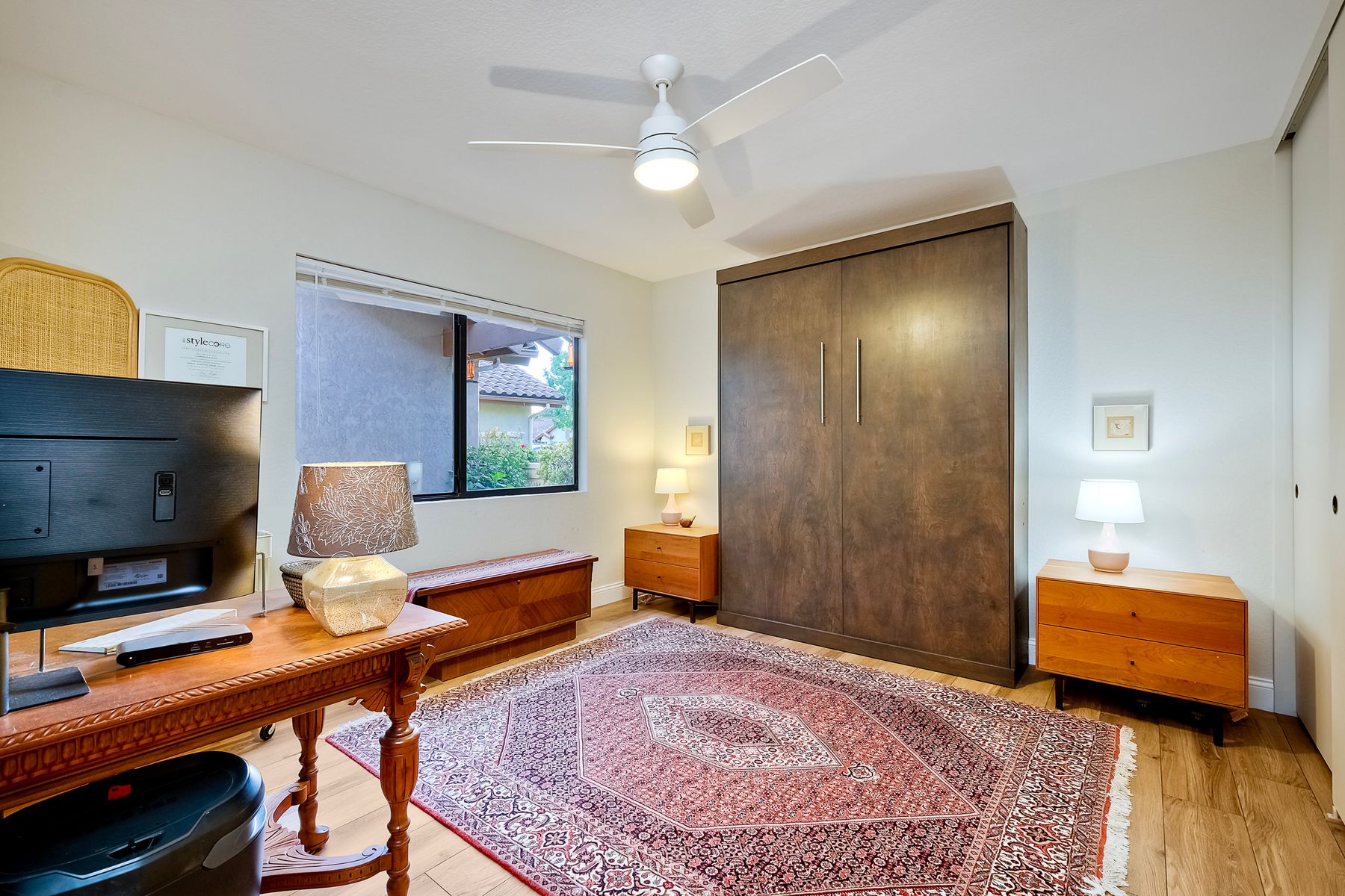 Home back on market no fault of seller or home. Beautifully updated home in the Las Floras community of Bernardo Heights! Walking through the front entry you appreciate the wood beamed vaulted ceiling, statement fireplace, stunning LVP floors and sightlines to the inviting backyard. The dining room is open to the living room, offering a contemporary chandelier and french doors to the covered patio. The magazine ready kitchen is full of natural light with stainless steel appliances, extensive premium white cabinetry, complimentary tile backsplash, and a spacious eat in area. The master suite retreat has a vaulted ceiling, walk in closet and sliding glass doors to the covered patio. The spa-like bath includes a double vanity, large tiled shower and stand alone deep soaker tub. The generous second bedroom’s murphy bed expands its versatility and the beautifully appointed hall bath is easily accessible. The backyard’s covered patio facilitates indoor/outdoor living. The surrounding yard is private and calm with full vinyl fencing, more than 60 mature flowering plants that bloom at various times throughout the year, fruit trees and green grass. A hot tub/spa completes this park-like yard and is negotiable. Located in the Distinguished Poway Unified School District and offering access to the Bernardo Heights Community Center amenities; a fitness center, pools, tennis and pickleball courts, etc. In addition, there is a second pool and club facility within walking distance to the home. Near Lucido Park, shopping, restaurants and easy freeway access. An extensive list of home improvements has been attached to this listing.