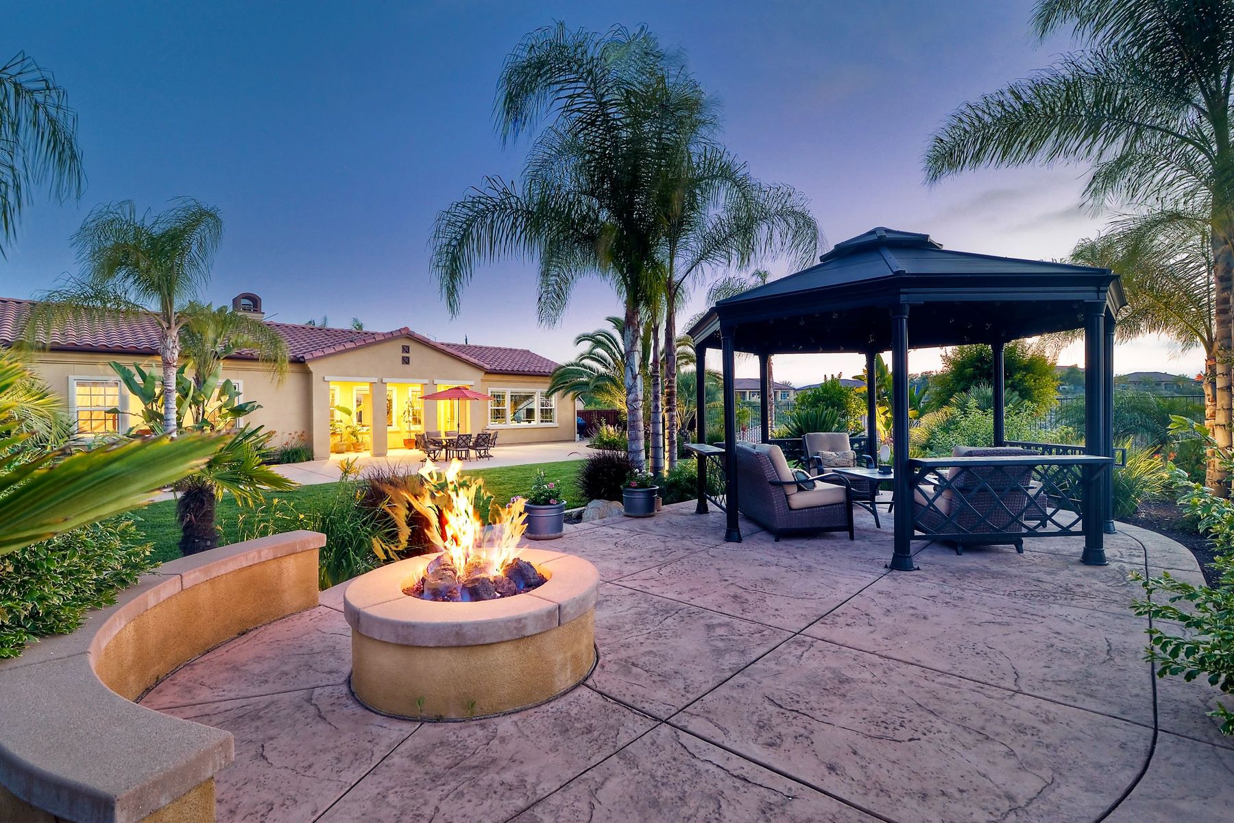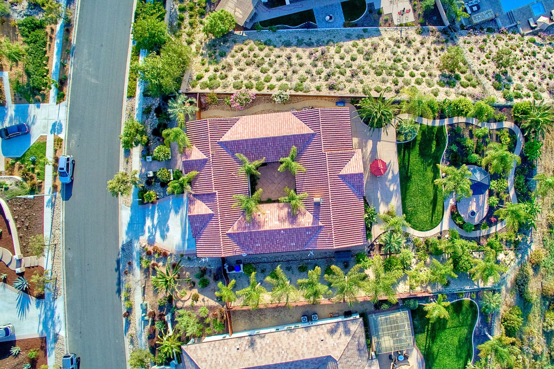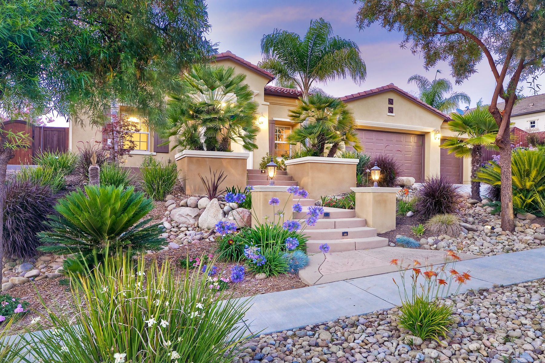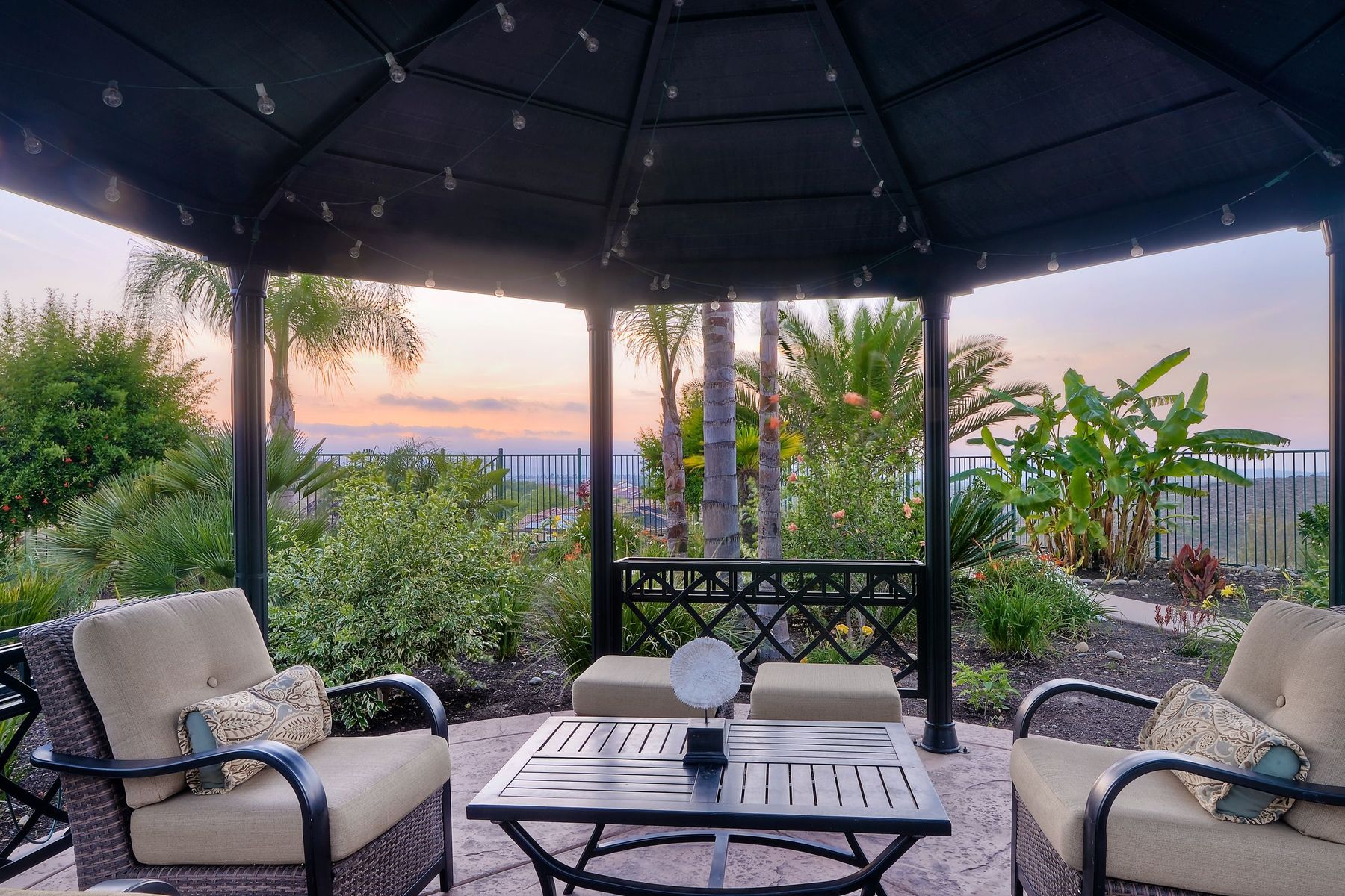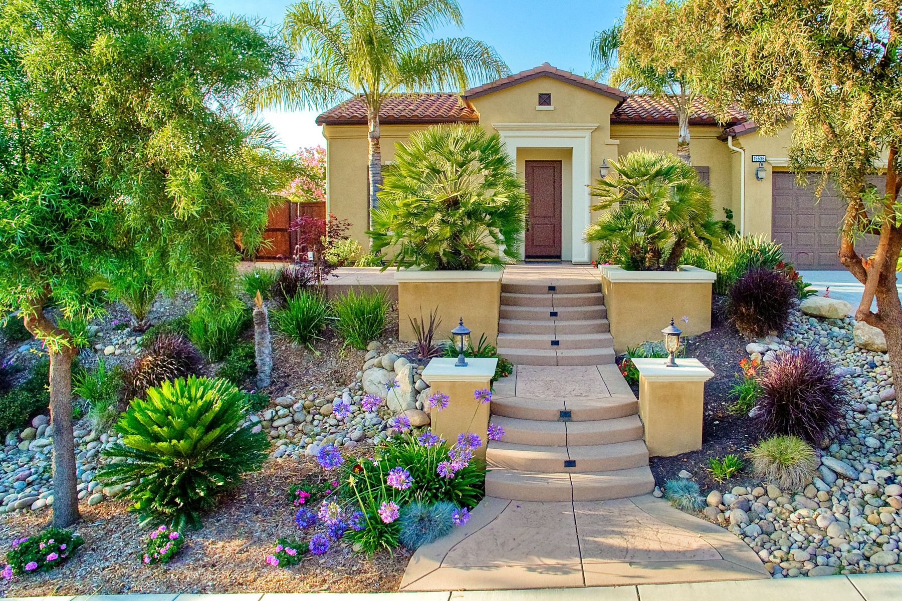 Absolutely gorgeous! Single Level, courtyard floor plan with premium, elevated, panoramic view lot! What more needs to be said? Lots more! You are home, in this stunning Tuscan-inspired single level beauty surrounded by a tropical oasis. Truly a one of a kind property! Highly upgraded, spacious living spaces throughout with large master suite and 3 additional en suite bedrooms and baths. Exceptional tropical landscaped backyard is truly paradise! Nothing left to do but move in! Single level at its best. This beautiful home is impeccable in every way. Amazing curb appeal. The rich Tuscan-inspired exterior color palette, impressive portico front door, stamped concrete steps with lighting and lush tropical landscape with dry riverbed provide an inkling of what’s to come. Step in to the dramatic rotunda entry and sprawling hallway featuring rich hardwood floors to open and bright, spacious living/dining areas. The entire property surrounds a beautiful exterior courtyard featuring mature rose bushes and patio. Perfect for a focal fountain or garden, bringing the outside in. The expansive, highly upgraded gourmet kitchen comes fully equipped with high-end stainless steel appliances (Wolf 6-burner professional stove top, oven and microwave; Sub Zero refrigerator and wine fridge), extra-large center island with plenty of room for pull up seating, gorgeous slab granite counter tops accompanied by designer metallic-finished tile backsplash, built-in desk, butler’s pantry, walk-in pantry, large eat-in area, pendant lighting, lots of cabinetry storage and entertainment wet bar with stainless sink and glassed cabinetry. This impressive kitchen looks out to one of the most beautiful tropical backyards; exceptionally planned, planted and cared for. Oversized family room appointed with built-in entertainment center, raised hearth fire place with Tuscan surround and ceiling fan looks out to courtyard and backyard with French doors to both. Large master suite looks out to its own tropical sanctuary. French door to backyard. When opened wonderful breezes come in to this serene and soothing retreat. Plenty of room for a sitting area, ceiling fan and upgraded carpet. Sparkling master bath features designer tiled, oversized shower, large tub surround, counter tops and floor. Separate double sink areas, vanity with large walk-in closet. Storage. Storage. Storage. This home has lots of it! Large, tucked away laundry room with sink, extensive cabinetry, easy access to all bedrooms and tile floors. Spectacular backyard is an understatement. The tropical paradise features over 30 palms and panoramic views all around with tranquil riverbed water feature. You feel like you are on top of the world! Exceptionally planted, mature growth and extremely lush and private. A true sanctuary with gazebo focal point, large, partially covered patio with overhead lighting; wired for outdoor ceiling fans and raised patio, hardscaped curved pathways surrounding lush lawn area and gorgeous green and flowering plantings, DG curved path on side as well as large additional side yard featuring ½ dozen mature fruit trees and raised vegetable garden. The seller is a “green thumb” and it shows. Enjoy this stunning garden and tropical paradise! 3-car garage. Award winning Poway Schools.