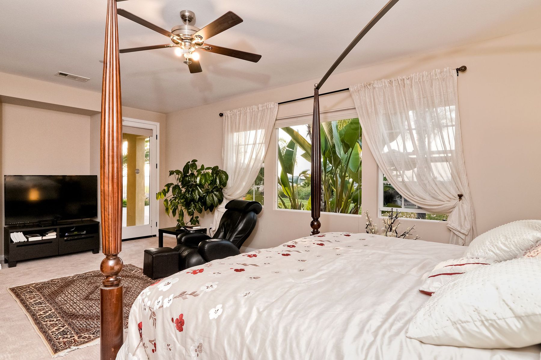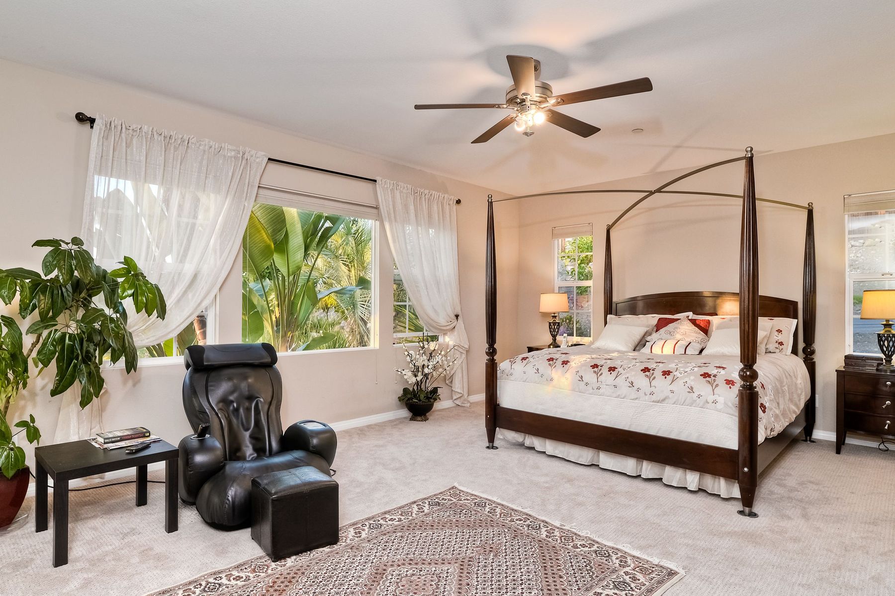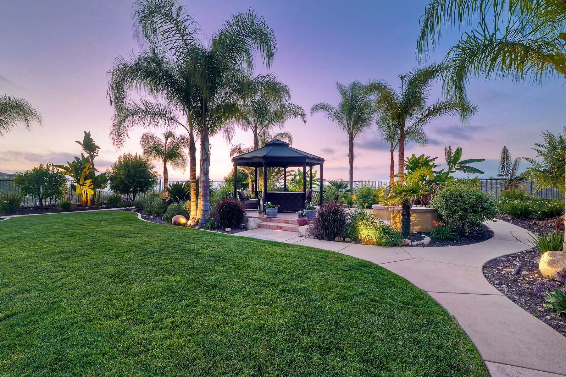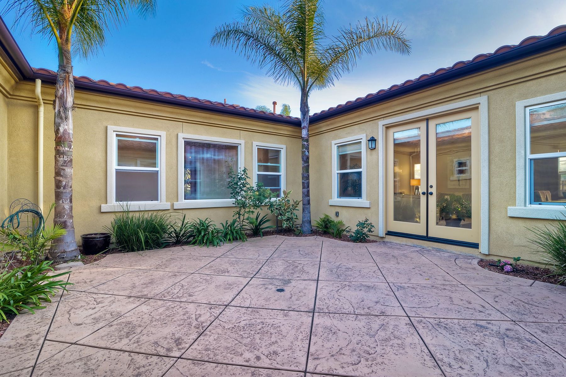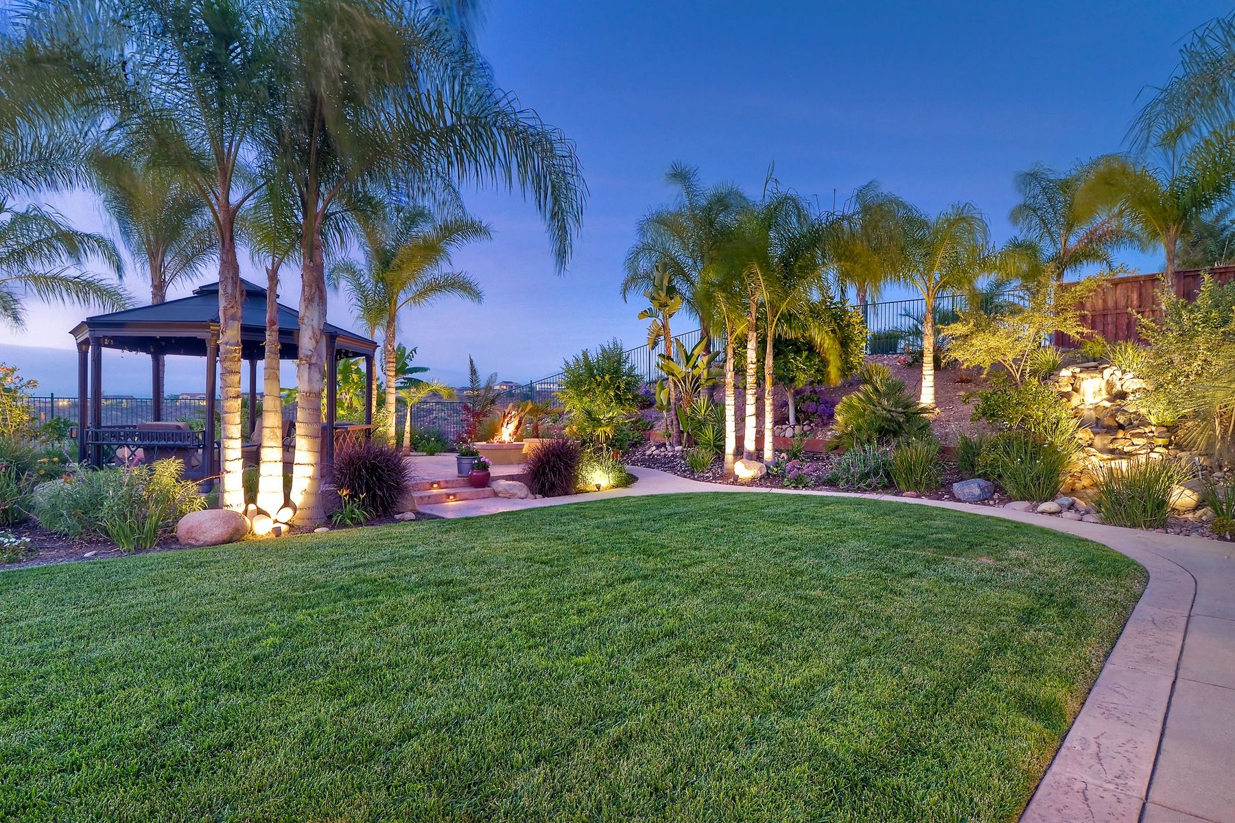 Absolutely gorgeous! Single Level, courtyard floor plan with premium, elevated, panoramic view lot! What more needs to be said? Lots more! You are home, in this stunning Tuscan-inspired single level beauty surrounded by a tropical oasis. Truly a one of a kind property! Highly upgraded, spacious living spaces throughout with large master suite and 3 additional en suite bedrooms and baths. Exceptional tropical landscaped backyard is truly paradise! Nothing left to do but move in! Single level at its best. This beautiful home is impeccable in every way. Amazing curb appeal. The rich Tuscan-inspired exterior color palette, impressive portico front door, stamped concrete steps with lighting and lush tropical landscape with dry riverbed provide an inkling of what’s to come. Step in to the dramatic rotunda entry and sprawling hallway featuring rich hardwood floors to open and bright, spacious living/dining areas. The entire property surrounds a beautiful exterior courtyard featuring mature rose bushes and patio. Perfect for a focal fountain or garden, bringing the outside in. The expansive, highly upgraded gourmet kitchen comes fully equipped with high-end stainless steel appliances (Wolf 6-burner professional stove top, oven and microwave; Sub Zero refrigerator and wine fridge), extra-large center island with plenty of room for pull up seating, gorgeous slab granite counter tops accompanied by designer metallic-finished tile backsplash, built-in desk, butler’s pantry, walk-in pantry, large eat-in area, pendant lighting, lots of cabinetry storage and entertainment wet bar with stainless sink and glassed cabinetry. This impressive kitchen looks out to one of the most beautiful tropical backyards; exceptionally planned, planted and cared for. Oversized family room appointed with built-in entertainment center, raised hearth fire place with Tuscan surround and ceiling fan looks out to courtyard and backyard with French doors to both. Large master suite looks out to its own tropical sanctuary. French door to backyard. When opened wonderful breezes come in to this serene and soothing retreat. Plenty of room for a sitting area, ceiling fan and upgraded carpet. Sparkling master bath features designer tiled, oversized shower, large tub surround, counter tops and floor. Separate double sink areas, vanity with large walk-in closet. Storage. Storage. Storage. This home has lots of it! Large, tucked away laundry room with sink, extensive cabinetry, easy access to all bedrooms and tile floors. Spectacular backyard is an understatement. The tropical paradise features over 30 palms and panoramic views all around with tranquil riverbed water feature. You feel like you are on top of the world! Exceptionally planted, mature growth and extremely lush and private. A true sanctuary with gazebo focal point, large, partially covered patio with overhead lighting; wired for outdoor ceiling fans and raised patio, hardscaped curved pathways surrounding lush lawn area and gorgeous green and flowering plantings, DG curved path on side as well as large additional side yard featuring ½ dozen mature fruit trees and raised vegetable garden. The seller is a “green thumb” and it shows. Enjoy this stunning garden and tropical paradise! 3-car garage. Award winning Poway Schools.