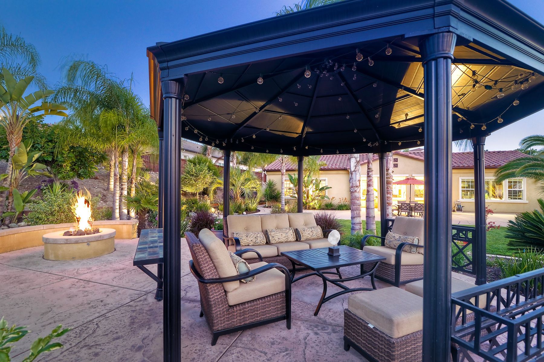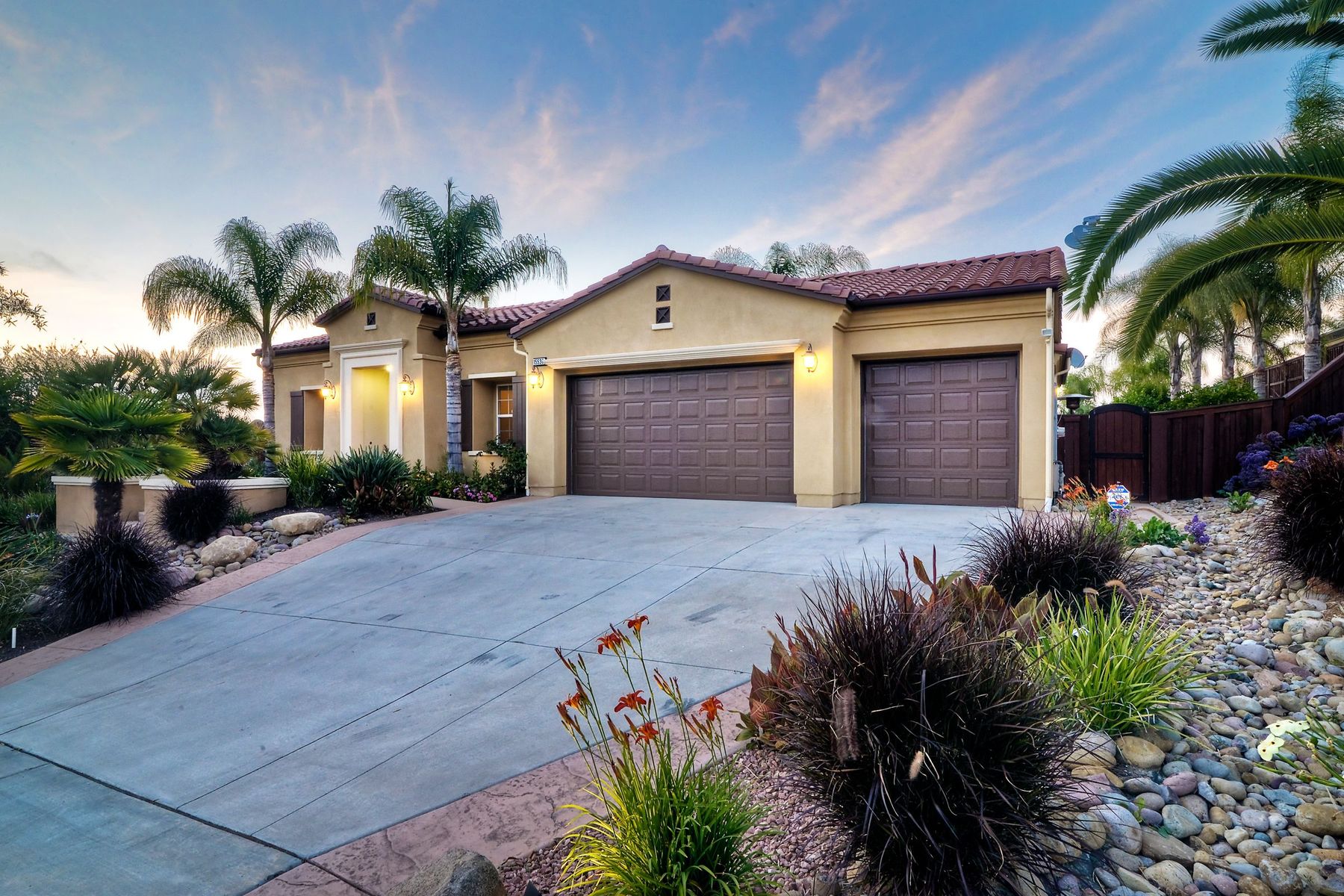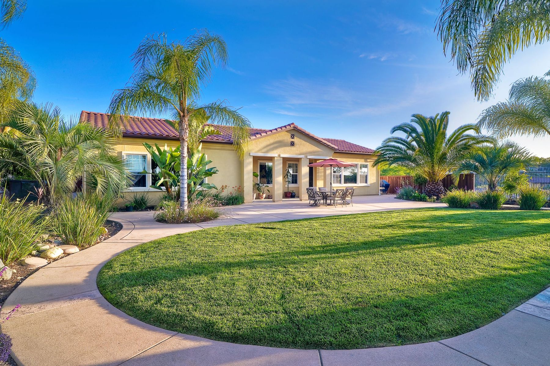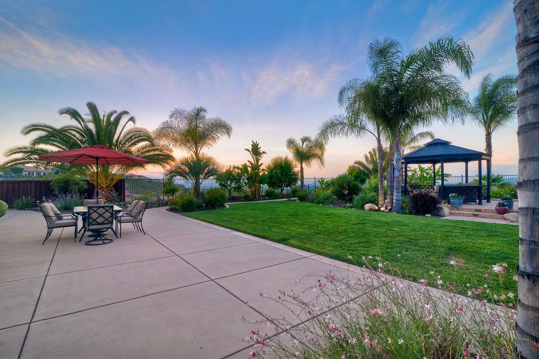 Absolutely gorgeous! Single Level, courtyard floor plan with premium, elevated, panoramic view lot! What more needs to be said? Lots more! You are home, in this stunning Tuscan-inspired single level beauty surrounded by a tropical oasis. Truly a one of a kind property! Highly upgraded, spacious living spaces throughout with large master suite and 3 additional en suite bedrooms and baths. Exceptional tropical landscaped backyard is truly paradise! Nothing left to do but move in! Single level at its best. This beautiful home is impeccable in every way. Amazing curb appeal. The rich Tuscan-inspired exterior color palette, impressive portico front door, stamped concrete steps with lighting and lush tropical landscape with dry riverbed provide an inkling of what’s to come. Step in to the dramatic rotunda entry and sprawling hallway featuring rich hardwood floors to open and bright, spacious living/dining areas. The entire property surrounds a beautiful exterior courtyard featuring mature rose bushes and patio. Perfect for a focal fountain or garden, bringing the outside in. The expansive, highly upgraded gourmet kitchen comes fully equipped with high-end stainless steel appliances (Wolf 6-burner professional stove top, oven and microwave; Sub Zero refrigerator and wine fridge), extra-large center island with plenty of room for pull up seating, gorgeous slab granite counter tops accompanied by designer metallic-finished tile backsplash, built-in desk, butler’s pantry, walk-in pantry, large eat-in area, pendant lighting, lots of cabinetry storage and entertainment wet bar with stainless sink and glassed cabinetry. This impressive kitchen looks out to one of the most beautiful tropical backyards; exceptionally planned, planted and cared for. Oversized family room appointed with built-in entertainment center, raised hearth fire place with Tuscan surround and ceiling fan looks out to courtyard and backyard with French doors to both. Large master suite looks out to its own tropical sanctuary. French door to backyard. When opened wonderful breezes come in to this serene and soothing retreat. Plenty of room for a sitting area, ceiling fan and upgraded carpet. Sparkling master bath features designer tiled, oversized shower, large tub surround, counter tops and floor. Separate double sink areas, vanity with large walk-in closet. Storage. Storage. Storage. This home has lots of it! Large, tucked away laundry room with sink, extensive cabinetry, easy access to all bedrooms and tile floors. Spectacular backyard is an understatement. The tropical paradise features over 30 palms and panoramic views all around with tranquil riverbed water feature. You feel like you are on top of the world! Exceptionally planted, mature growth and extremely lush and private. A true sanctuary with gazebo focal point, large, partially covered patio with overhead lighting; wired for outdoor ceiling fans and raised patio, hardscaped curved pathways surrounding lush lawn area and gorgeous green and flowering plantings, DG curved path on side as well as large additional side yard featuring ½ dozen mature fruit trees and raised vegetable garden. The seller is a “green thumb” and it shows. Enjoy this stunning garden and tropical paradise! 3-car garage. Award winning Poway Schools.