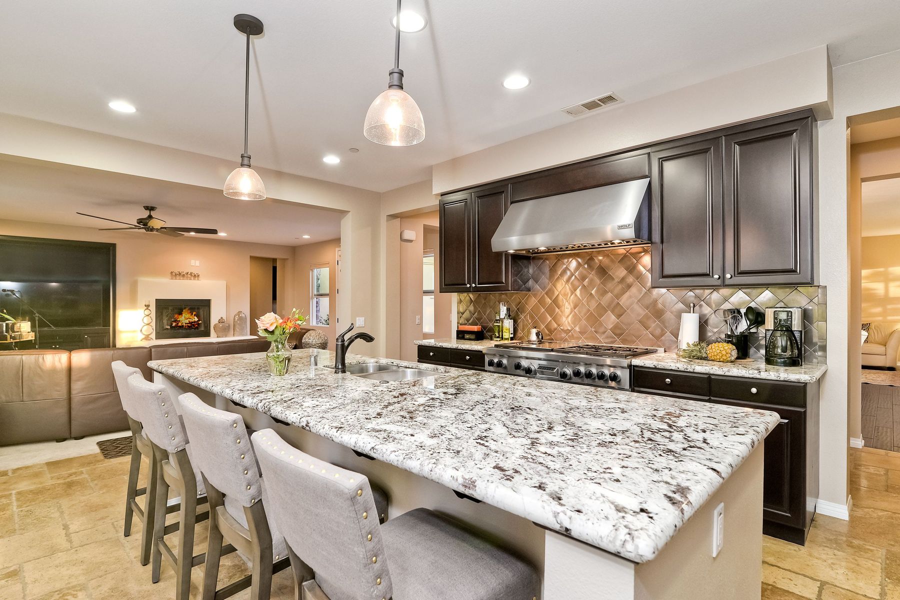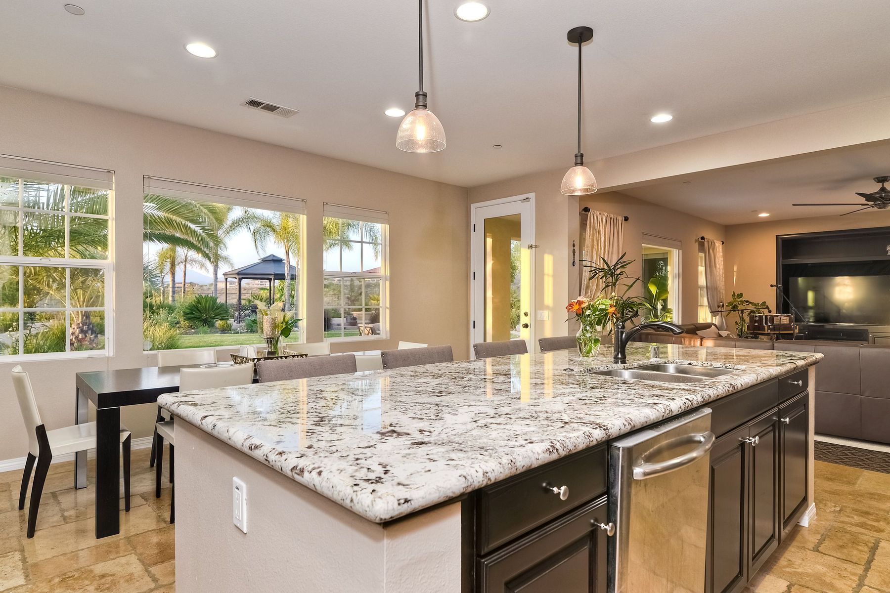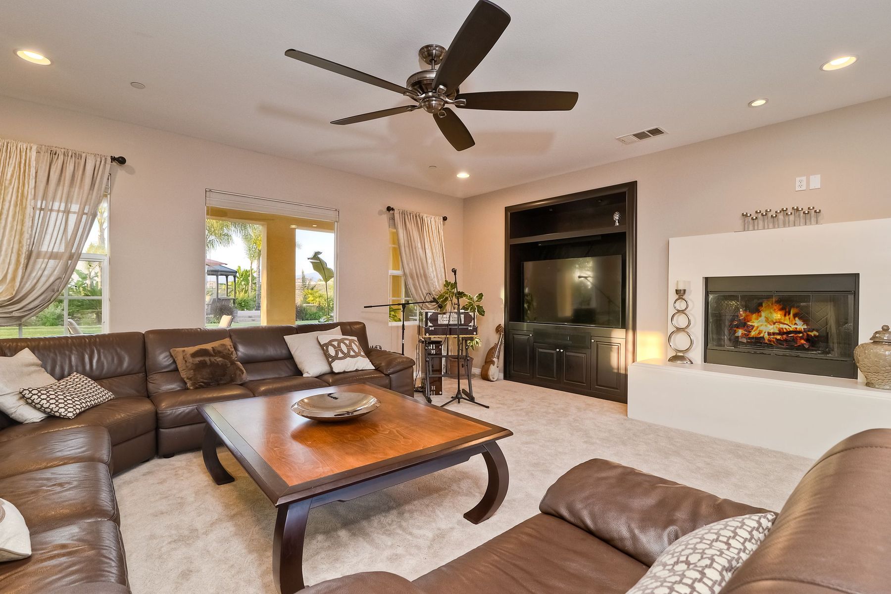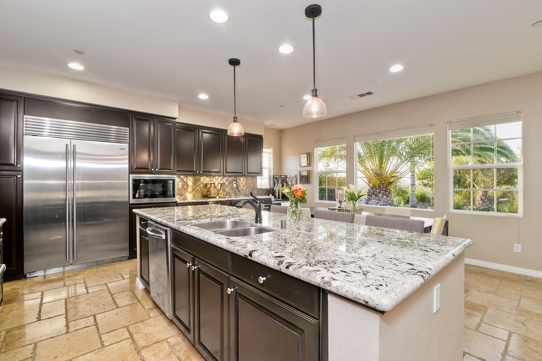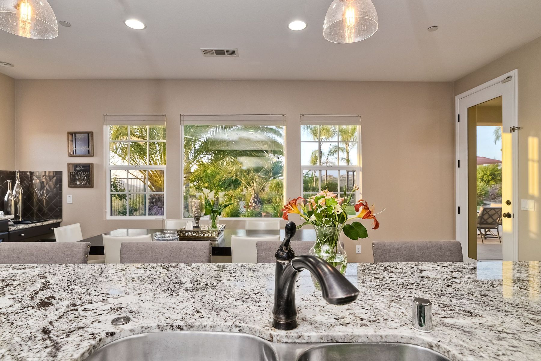 Absolutely gorgeous! Single Level, courtyard floor plan with premium, elevated, panoramic view lot! What more needs to be said? Lots more! You are home, in this stunning Tuscan-inspired single level beauty surrounded by a tropical oasis. Truly a one of a kind property! Highly upgraded, spacious living spaces throughout with large master suite and 3 additional en suite bedrooms and baths. Exceptional tropical landscaped backyard is truly paradise! Nothing left to do but move in! Single level at its best. This beautiful home is impeccable in every way. Amazing curb appeal. The rich Tuscan-inspired exterior color palette, impressive portico front door, stamped concrete steps with lighting and lush tropical landscape with dry riverbed provide an inkling of what’s to come. Step in to the dramatic rotunda entry and sprawling hallway featuring rich hardwood floors to open and bright, spacious living/dining areas. The entire property surrounds a beautiful exterior courtyard featuring mature rose bushes and patio. Perfect for a focal fountain or garden, bringing the outside in. The expansive, highly upgraded gourmet kitchen comes fully equipped with high-end stainless steel appliances (Wolf 6-burner professional stove top, oven and microwave; Sub Zero refrigerator and wine fridge), extra-large center island with plenty of room for pull up seating, gorgeous slab granite counter tops accompanied by designer metallic-finished tile backsplash, built-in desk, butler’s pantry, walk-in pantry, large eat-in area, pendant lighting, lots of cabinetry storage and entertainment wet bar with stainless sink and glassed cabinetry. This impressive kitchen looks out to one of the most beautiful tropical backyards; exceptionally planned, planted and cared for. Oversized family room appointed with built-in entertainment center, raised hearth fire place with Tuscan surround and ceiling fan looks out to courtyard and backyard with French doors to both. Large master suite looks out to its own tropical sanctuary. French door to backyard. When opened wonderful breezes come in to this serene and soothing retreat. Plenty of room for a sitting area, ceiling fan and upgraded carpet. Sparkling master bath features designer tiled, oversized shower, large tub surround, counter tops and floor. Separate double sink areas, vanity with large walk-in closet. Storage. Storage. Storage. This home has lots of it! Large, tucked away laundry room with sink, extensive cabinetry, easy access to all bedrooms and tile floors. Spectacular backyard is an understatement. The tropical paradise features over 30 palms and panoramic views all around with tranquil riverbed water feature. You feel like you are on top of the world! Exceptionally planted, mature growth and extremely lush and private. A true sanctuary with gazebo focal point, large, partially covered patio with overhead lighting; wired for outdoor ceiling fans and raised patio, hardscaped curved pathways surrounding lush lawn area and gorgeous green and flowering plantings, DG curved path on side as well as large additional side yard featuring ½ dozen mature fruit trees and raised vegetable garden. The seller is a “green thumb” and it shows. Enjoy this stunning garden and tropical paradise! 3-car garage. Award winning Poway Schools.