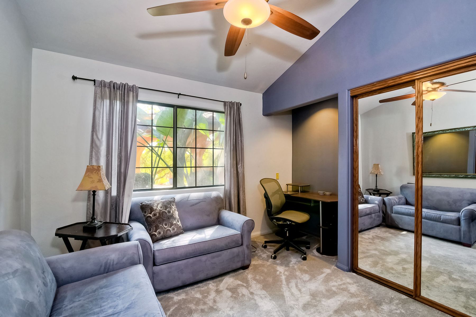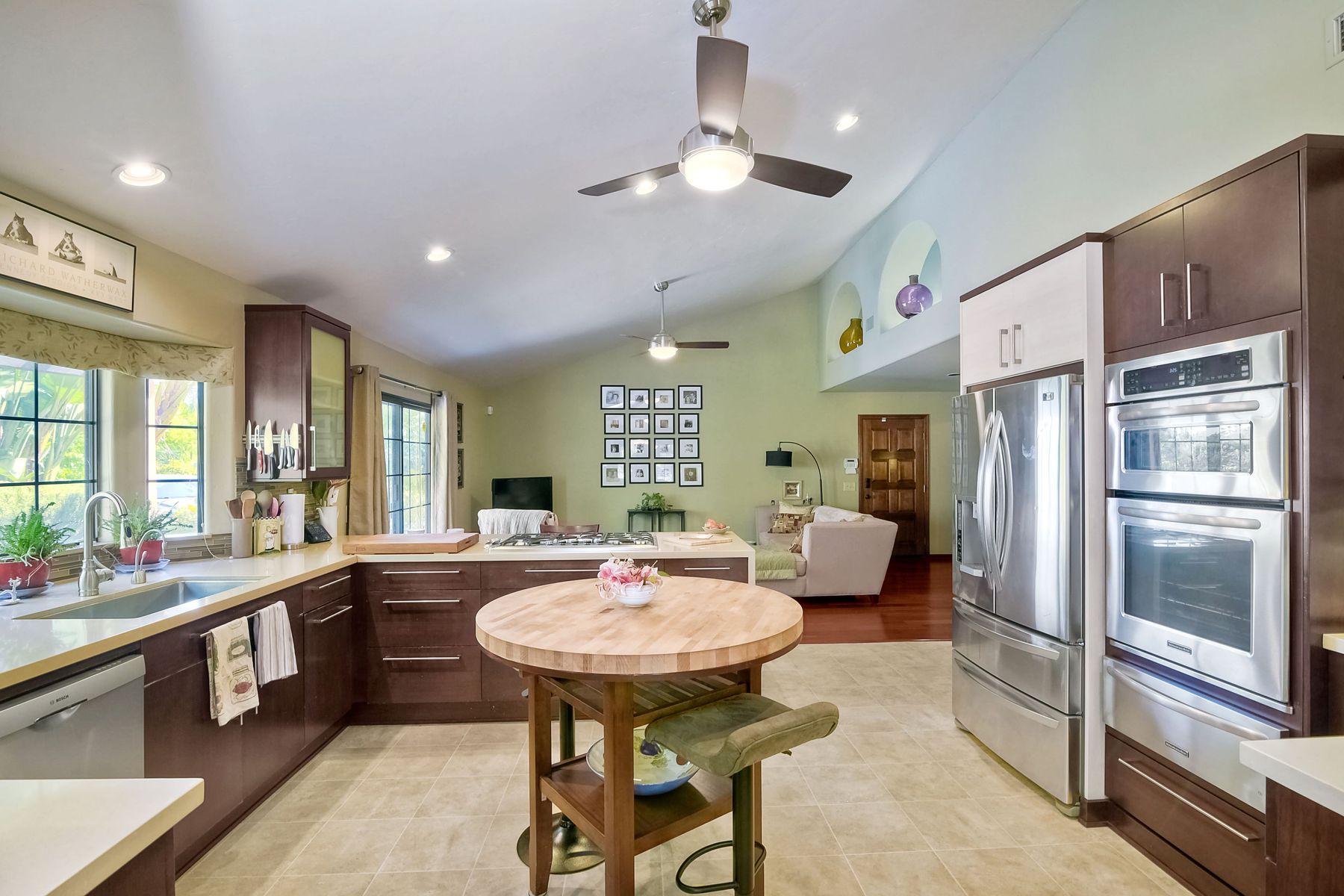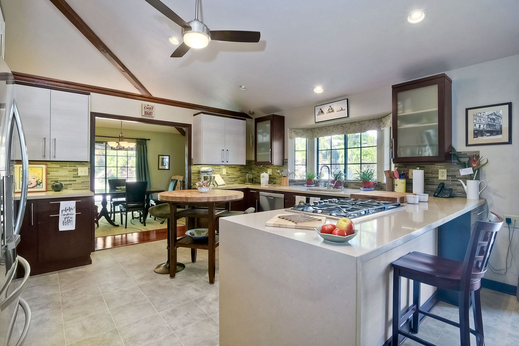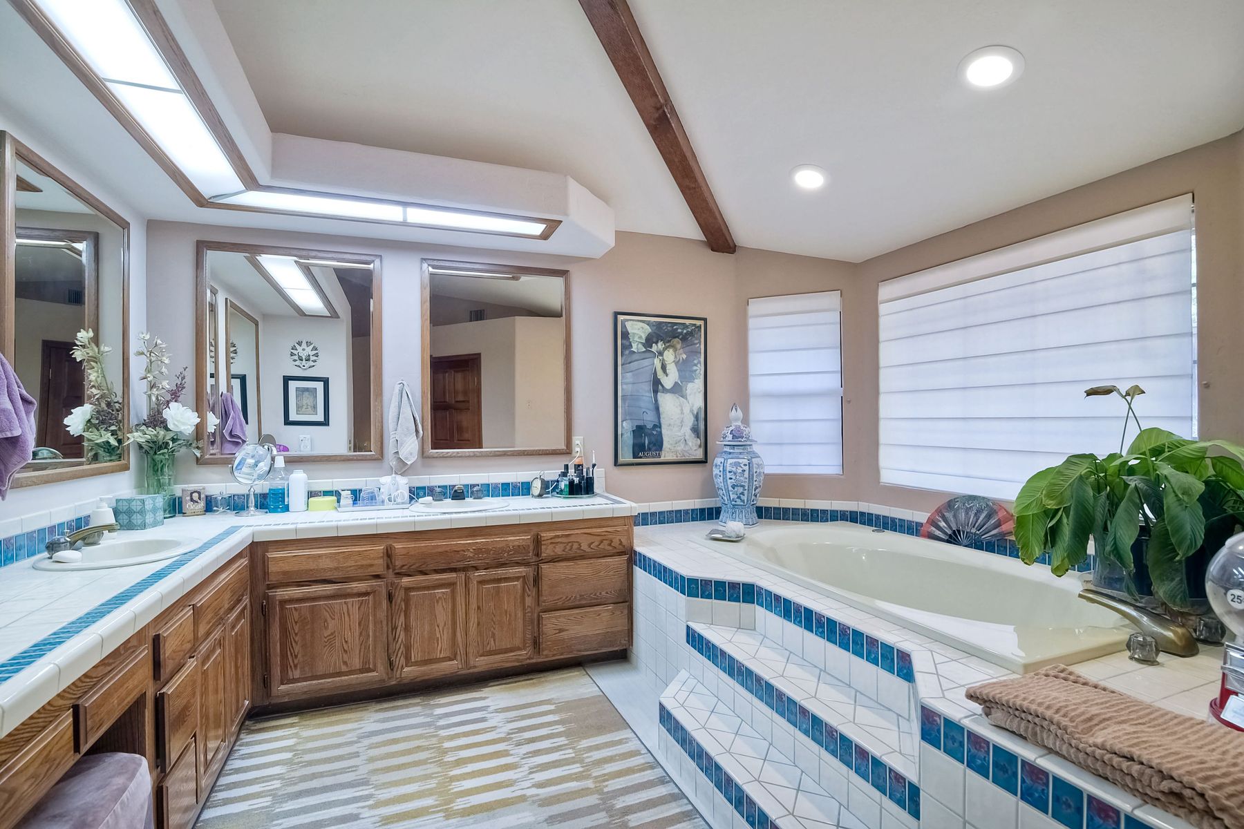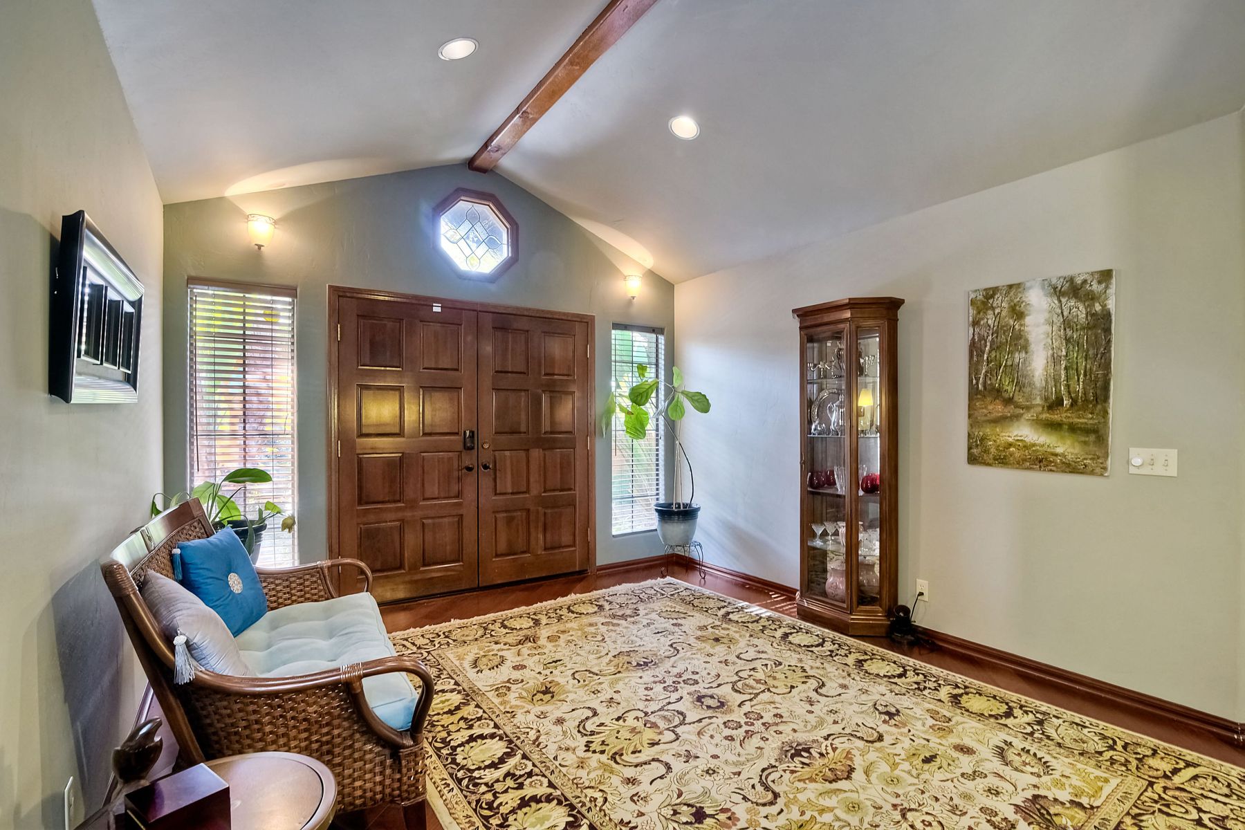 Hidden in the Vista foothills this single story home offers 2874 sf. 3 bedrooms, 3 baths, 3 car att. garage, and PAID Solar! Extra room off garage w it’s own outside entrance perfect for home office, crafts, workout area etc. Please see supplement Wrap around courtyards create a feeling of old world charm yet modern living. The front courtyard entry has beautiful double doors that open to an expansive foyer where the wings of the home lead to various living areas. One wing leads to the large family room and newly remodeled kitchen. A large walk-in pantry and expansive counter top, designer cabinets and stainless appliances make ease of work. The formal dining area off the kitchen has vaulted ceiling and sliding doors to the outside where a beautiful screened atrium is located. Screens designed to “pop out”. The formal living room features recessed lighting, beautiful fireplace and walk-in wet bar area. Home has a reverse osmosis system. This area is perfect for formal entertaining while either the atrium or pergola off kitchen is great for casual dining. The two auxiliary bedrooms are ample size - one of which is used as a den/office complete with pull-down Murphy bed. The expansive main suite and bath features an on-suite area, large vanity with double sinks, roman tub, walk-in shower and private commode area. The generous walk-in closet is anyone’s dream! Pull out drawers and oodles of hanging space. Boasting an abundance of natural light the home has vaulted ceiling, skylights and ceiling fans in most rooms. Plenty of room for RV. This hidden treasure is close to services/amenities uniquely designed and inviting.