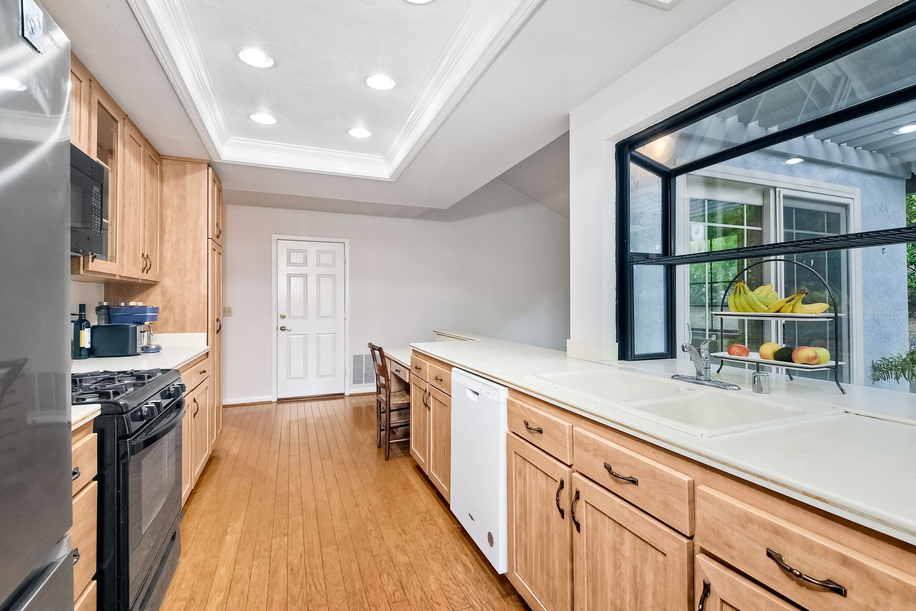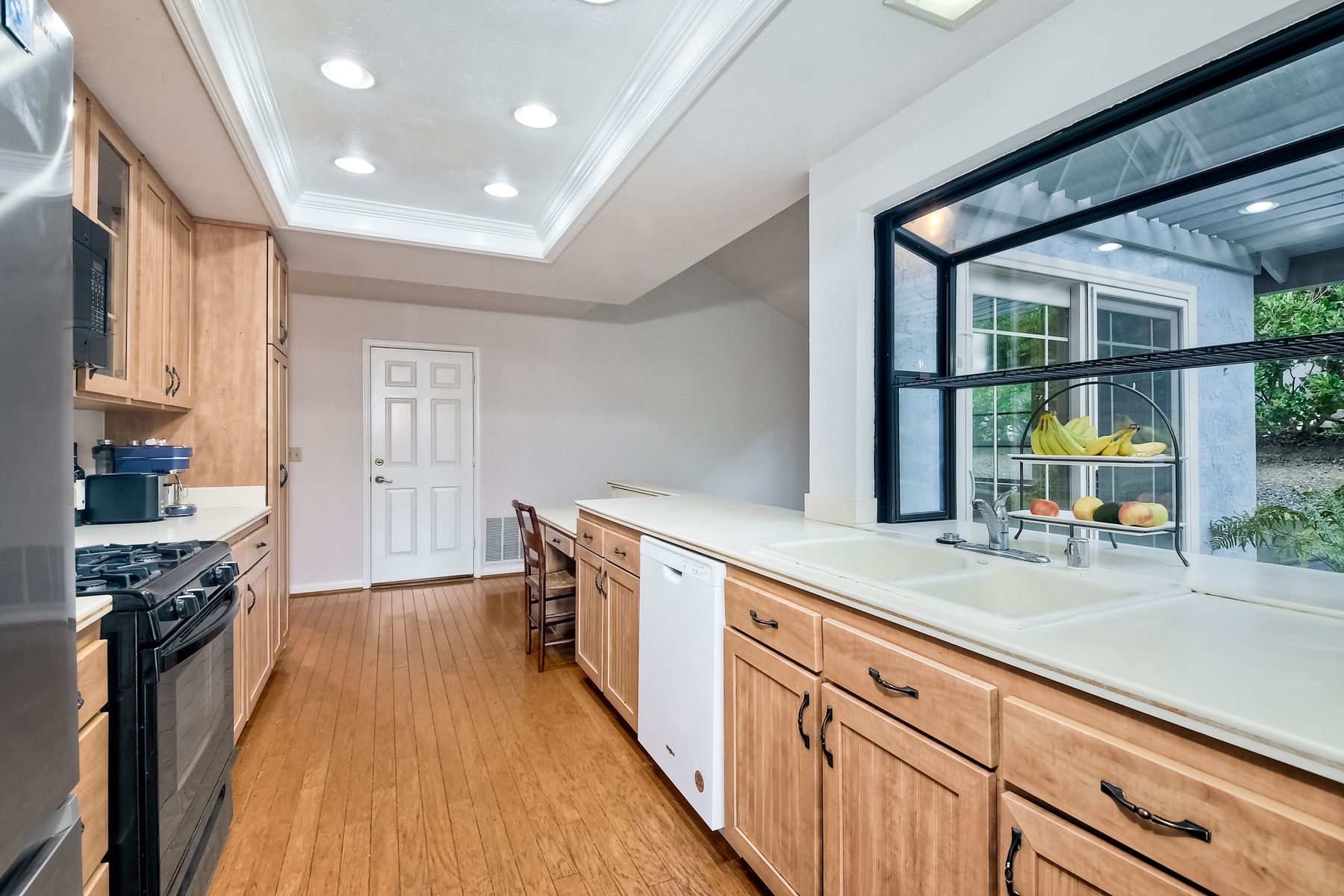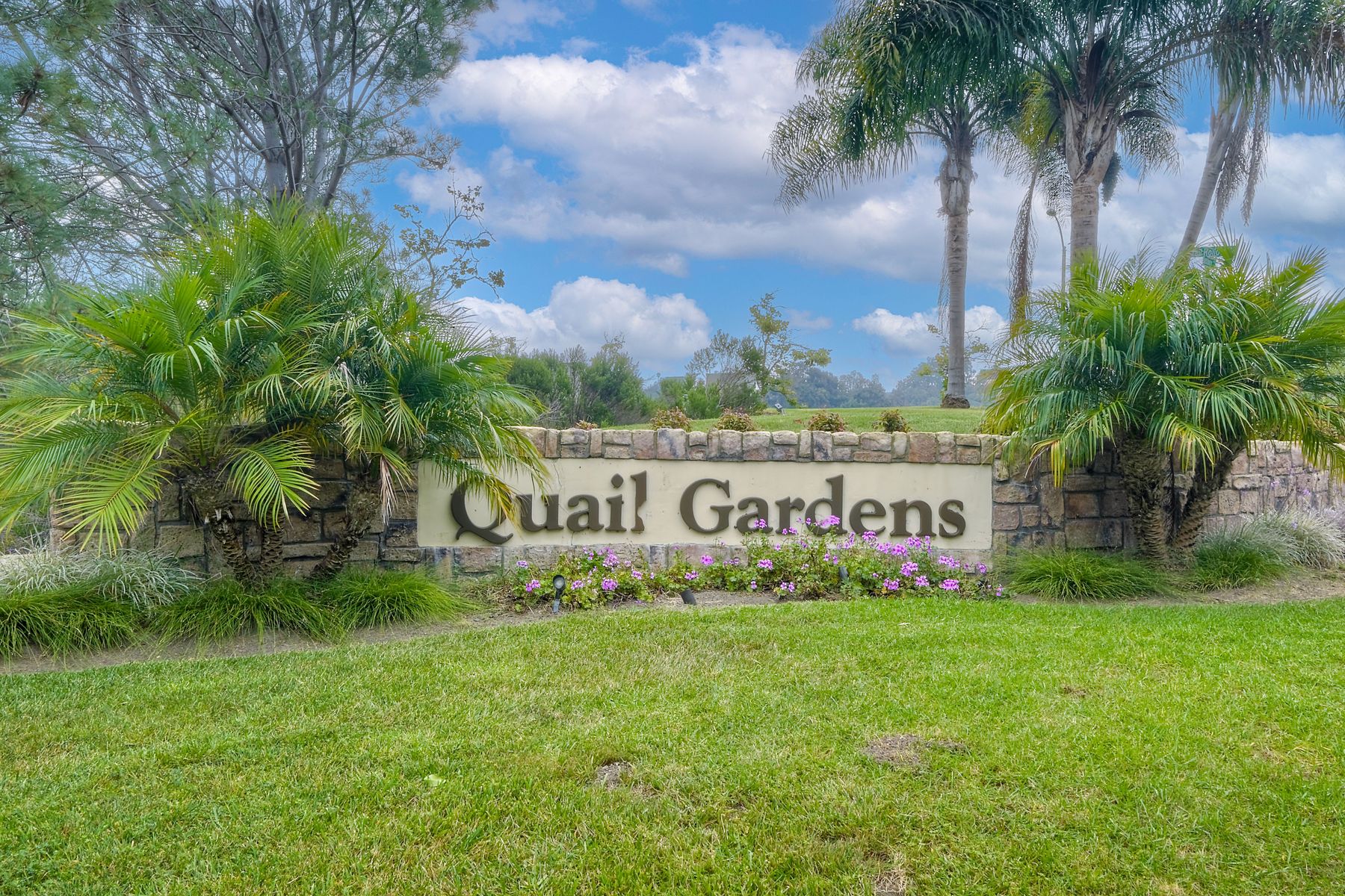 The best kept secret of Quail Gardens offers a cozy, single level, Canyon view home that rarely comes on the market. Bring your own ideas and remodeling concepts as this home has great bones to make it your own. This adorable Plan 1 home has a large living room, and dining room area off the kitchen that can lead you to the tranquil, quiet backyard. Also a separate breakfast area/den off the kitchen and main patio. The primary bedroom is on the canyon view side to enjoy the Eastern morning sun. Beautiful mature trees in the front yard and backyard including avocado trees, Orange and lemon trees. New carpet throughout, and freshly painted. Newer Roof, and newer water heater. Close to Indian Head Trails , and approximately 2 miles to the Blue Pacific and downtown Leucadia. This cute home is Located on a quiet street, with plenty of guest parking. Close to the Forum shops, Encinitas and Carlsbad state beaches, 5 freeway and downtown Leucadia. Award winning Encinitas schools. Low HOA, and no Mello-Roos. Make yourself at home!