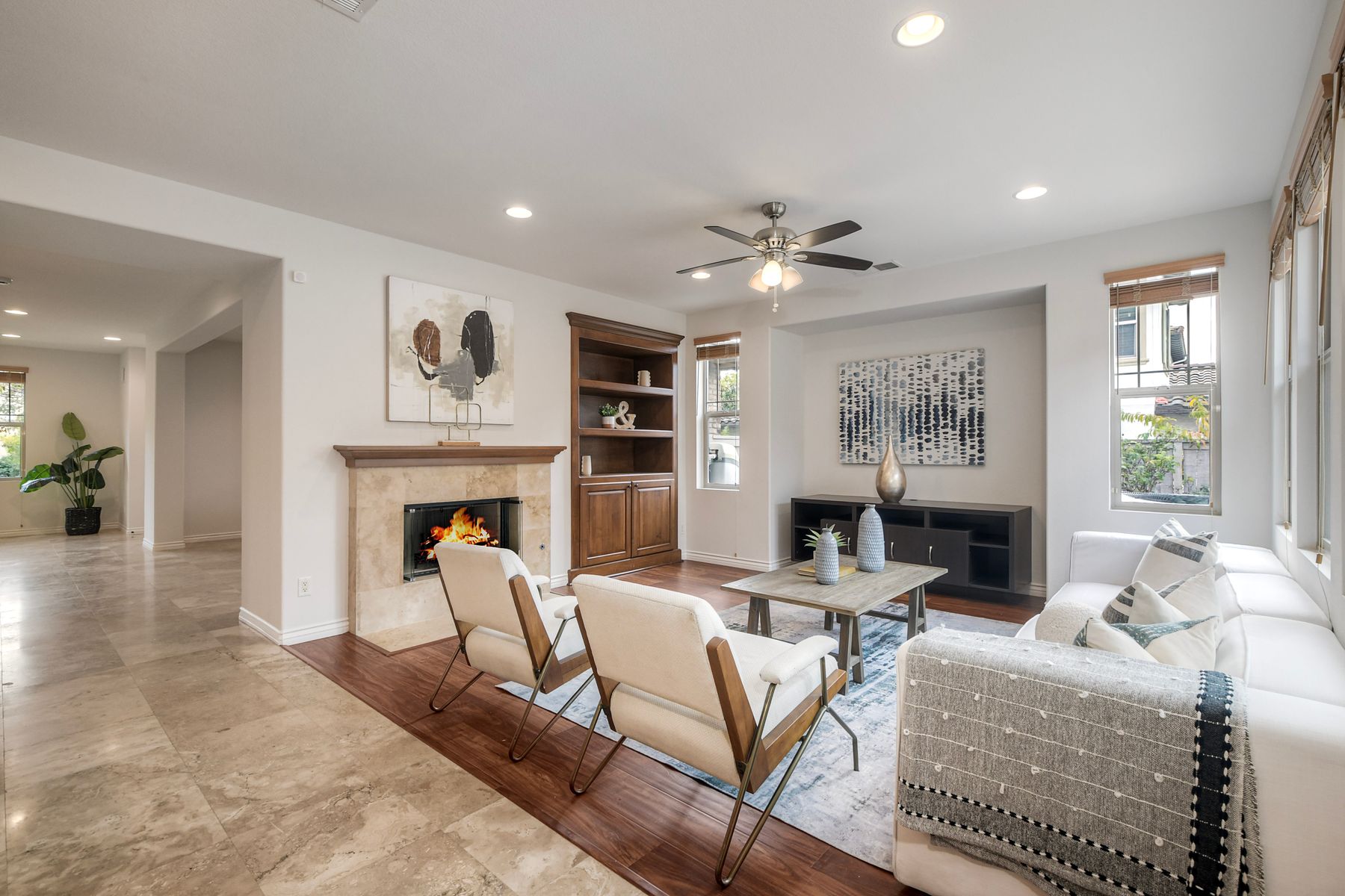 Location, Location, Location! Welcome home to this beautiful end-unit twin home in the heart of Del Sur. One of San Diego’s most sought-after family communities! With fully owned solar and tons of natural sunlight all day long, this home has everything you’ve been looking for. You’ll love being just a short walk to top-rated schools, 7 parks and several pools, and shopping....all right in your neighborhood! The spacious floor plan offers both a large family room and a separate living room, giving everyone plenty of space to spread out. The family room is perfect for relaxing, movie nights, or hanging out with friends. The dining room easily fits the whole family for meals and gatherings. The open-concept kitchen and living area make everyday life easy and fun. The kitchen features granite countertops, stainless steel appliances, upgraded cabinets, and plenty of storage, plus a cozy breakfast nook for casual meals. The living room is bright, comfortable, and great for family time or entertaining guests. Upstairs, you’ll find three bedrooms plus a built-in desk area, perfect for homework or working from home. The primary suite has great views, a spacious bathroom with dual sinks, separate shower and soaking tub, and a walk-in closet. The two additional bedrooms are just the right size for kids, guests, or a playroom. Home has a Ecowater RO filter system, newer tankless water heater, Ring alarm system and is Electric car ready! Step outside to your private backyard, a perfect spot for barbecues, playing with the kids, or letting pets run around. The low-maintenance yard includes both grassy and paved areas for easy outdoor living. This is a must see home!