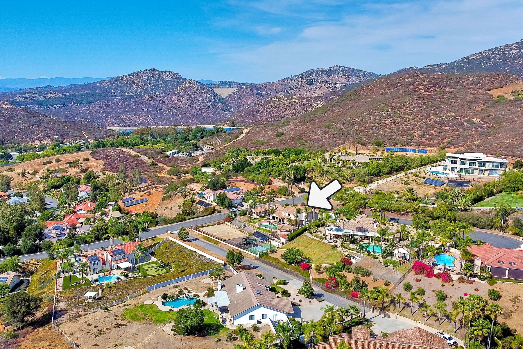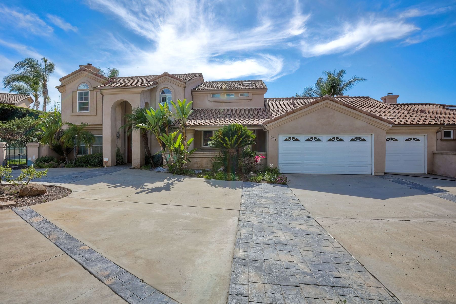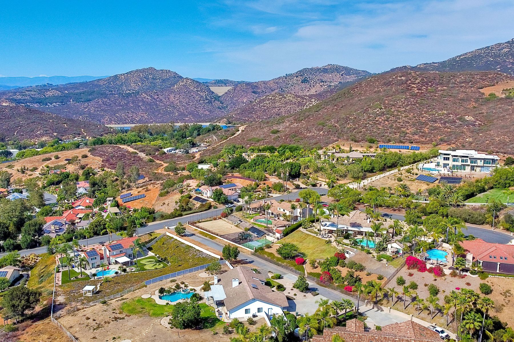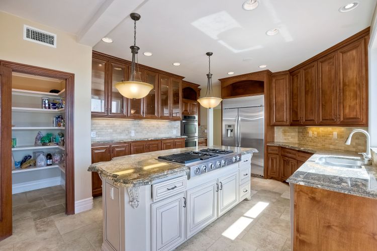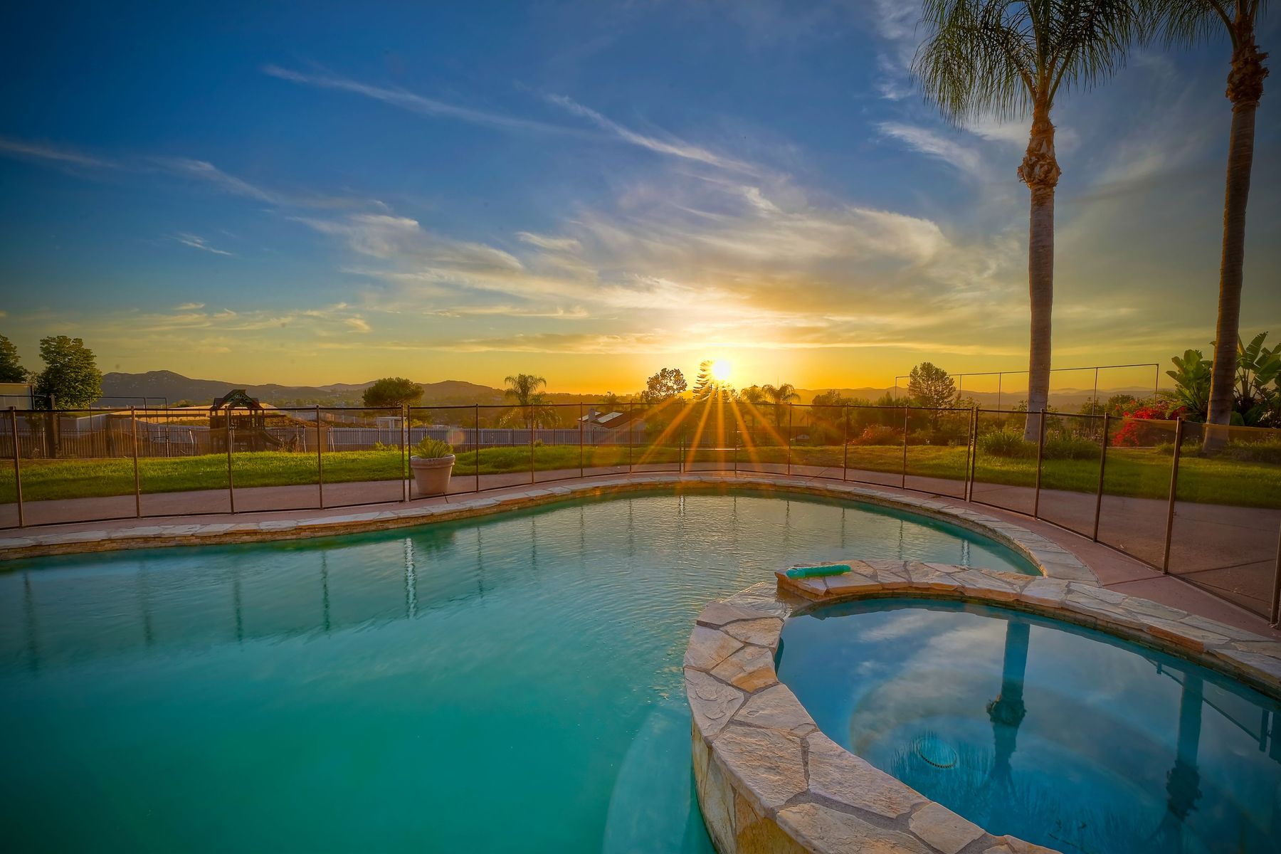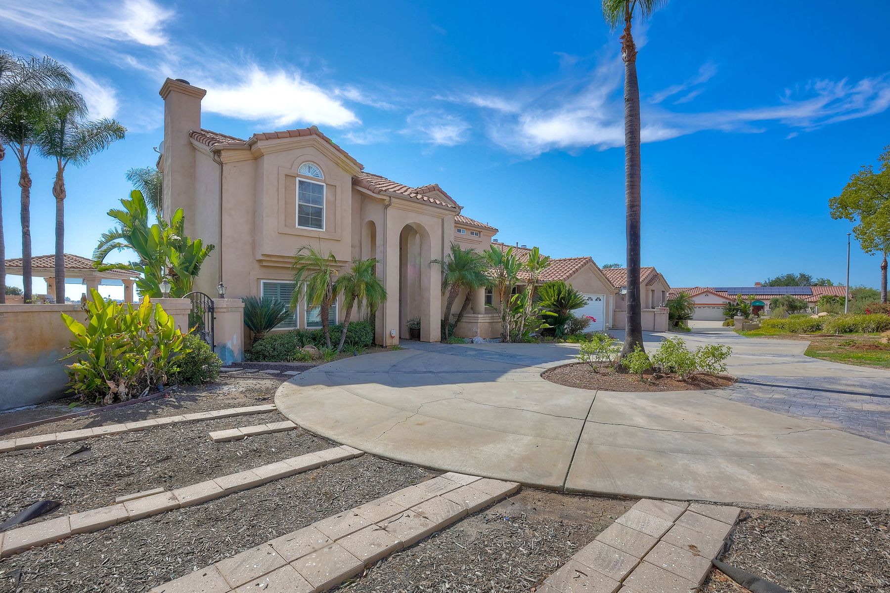 Luxury home with outstanding sunset views. Lovely neighborhood of Bridlewood Lakeside. Over 40,000 sq ft lot, includes basketball court, soccer field, play area with built in ground level trampoline and play swing set. Swimming pool with jacuzzi protected by security fencing. Relax in the oversized backyard patio with BBQ grill, fridge, sink with plenty of counter space. Guest home has it's own private entrance, along with full kitchen, dining area, laundry rm, one bedroom and it's own living room with french doors and private covered patio. Long private driveway, with grand entrance through the custom glass with iron double doors. Formal living with fire place and custom built cabinetry. Formal dining room has view of the lovely backyard with sitting areas. Downstairs office has custom built cabinets and desk. Large living room has bar area with fridge along with built in cabinets for your oversized TV. Shutters and crown molding throughout. All this and a highly rated Poway Unified school district