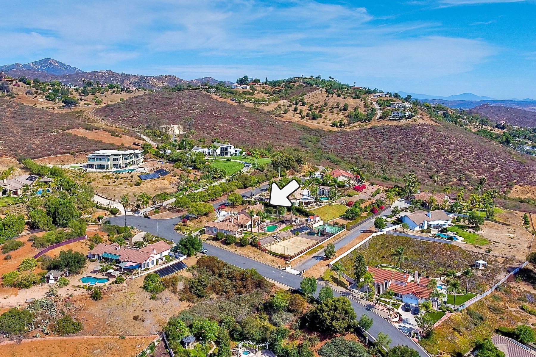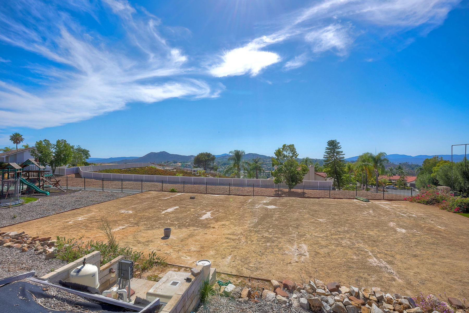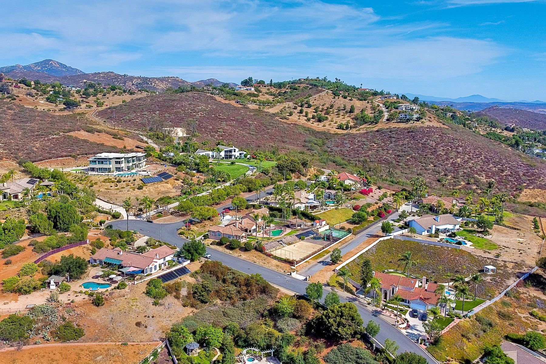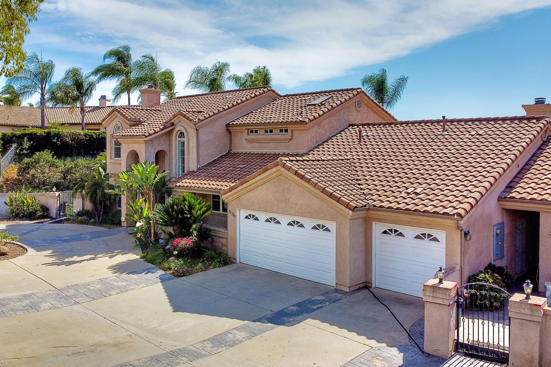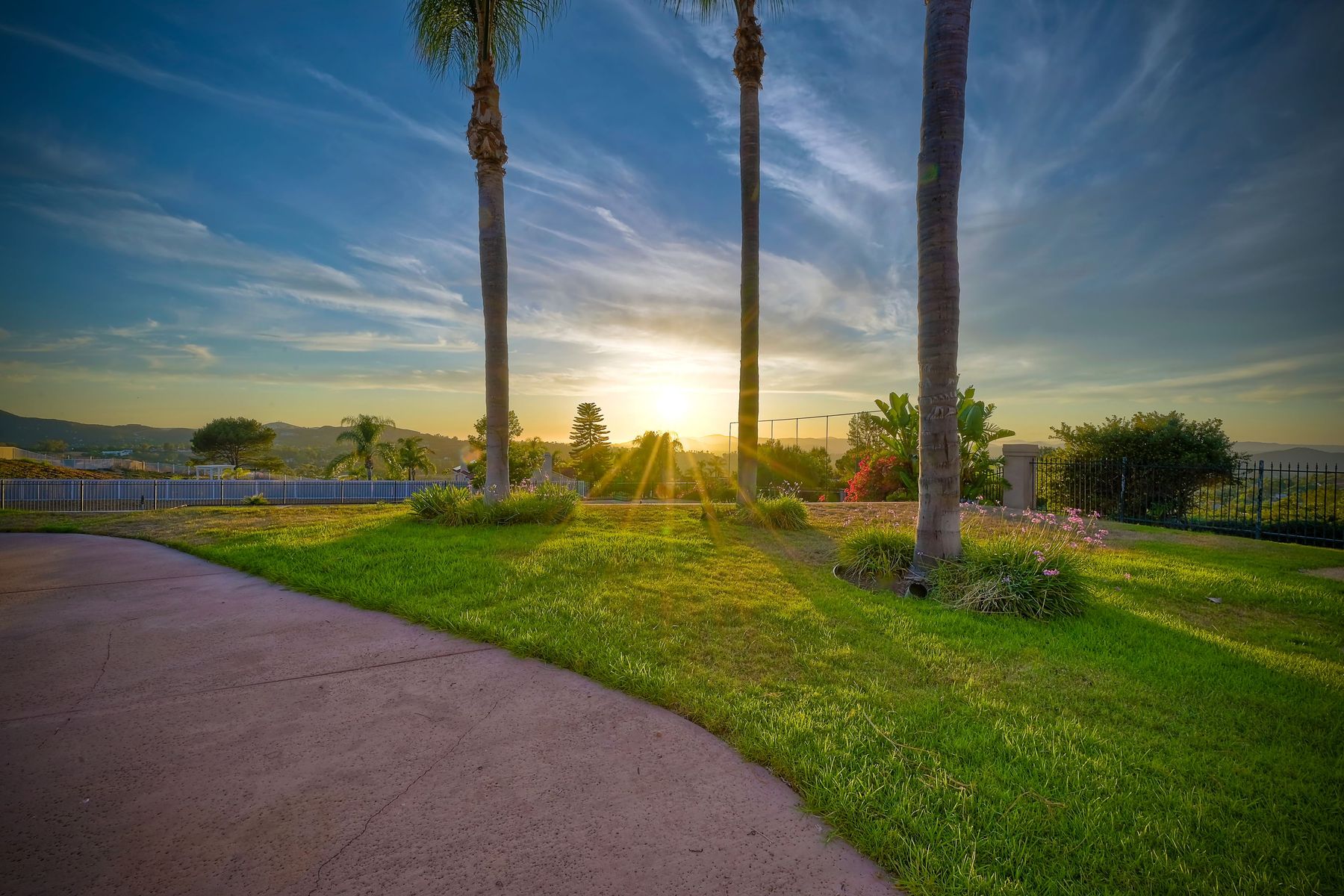 Luxury home with outstanding sunset views. Lovely neighborhood of Bridlewood Lakeside. Over 40,000 sq ft lot, includes basketball court, soccer field, play area with built in ground level trampoline and play swing set. Swimming pool with jacuzzi protected by security fencing. Relax in the oversized backyard patio with BBQ grill, fridge, sink with plenty of counter space. Guest home has it's own private entrance, along with full kitchen, dining area, laundry rm, one bedroom and it's own living room with french doors and private covered patio. Long private driveway, with grand entrance through the custom glass with iron double doors. Formal living with fire place and custom built cabinetry. Formal dining room has view of the lovely backyard with sitting areas. Downstairs office has custom built cabinets and desk. Large living room has bar area with fridge along with built in cabinets for your oversized TV. Shutters and crown molding throughout. All this and a highly rated Poway Unified school district