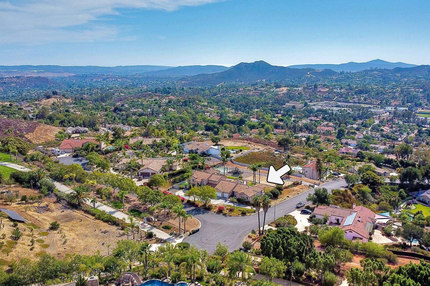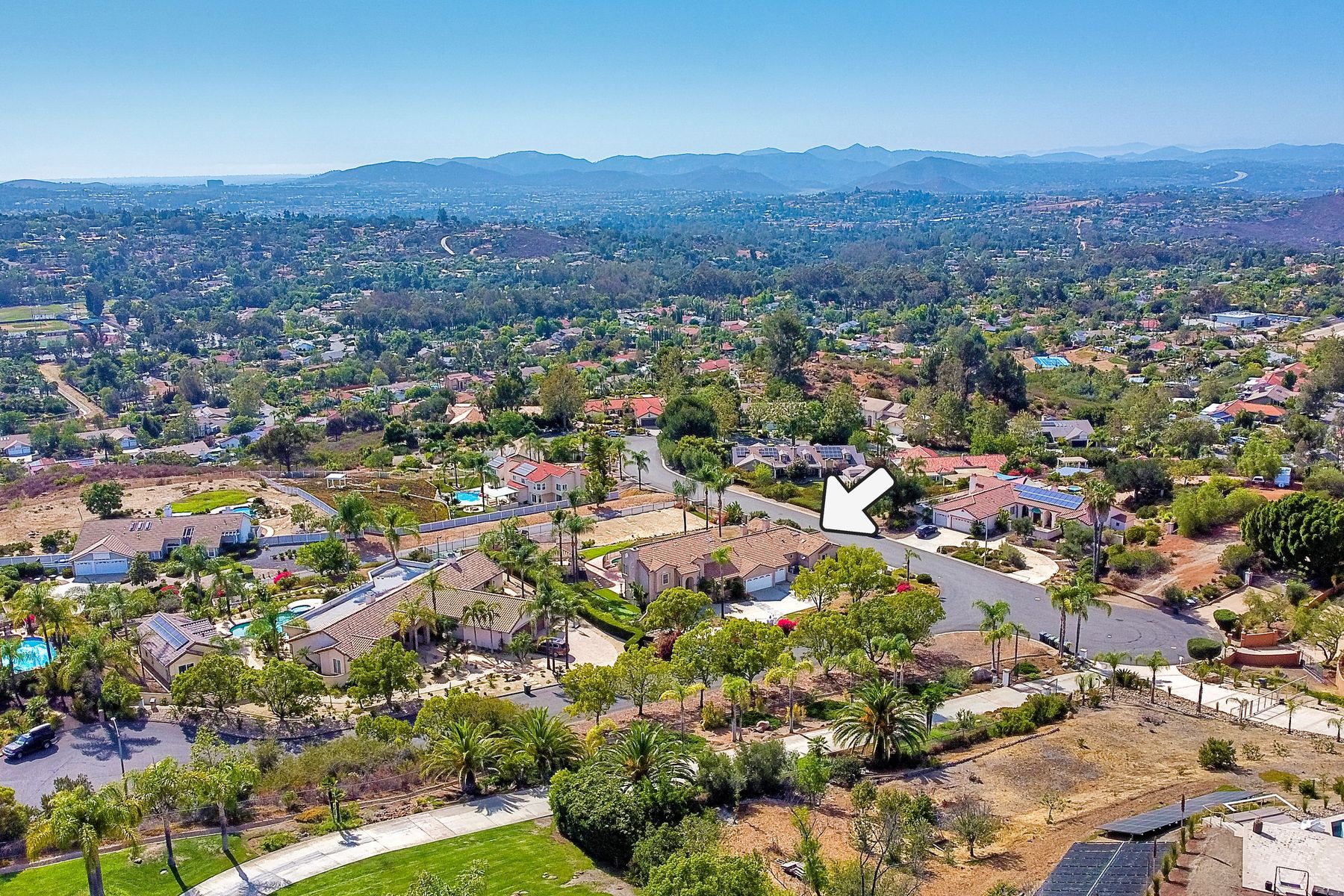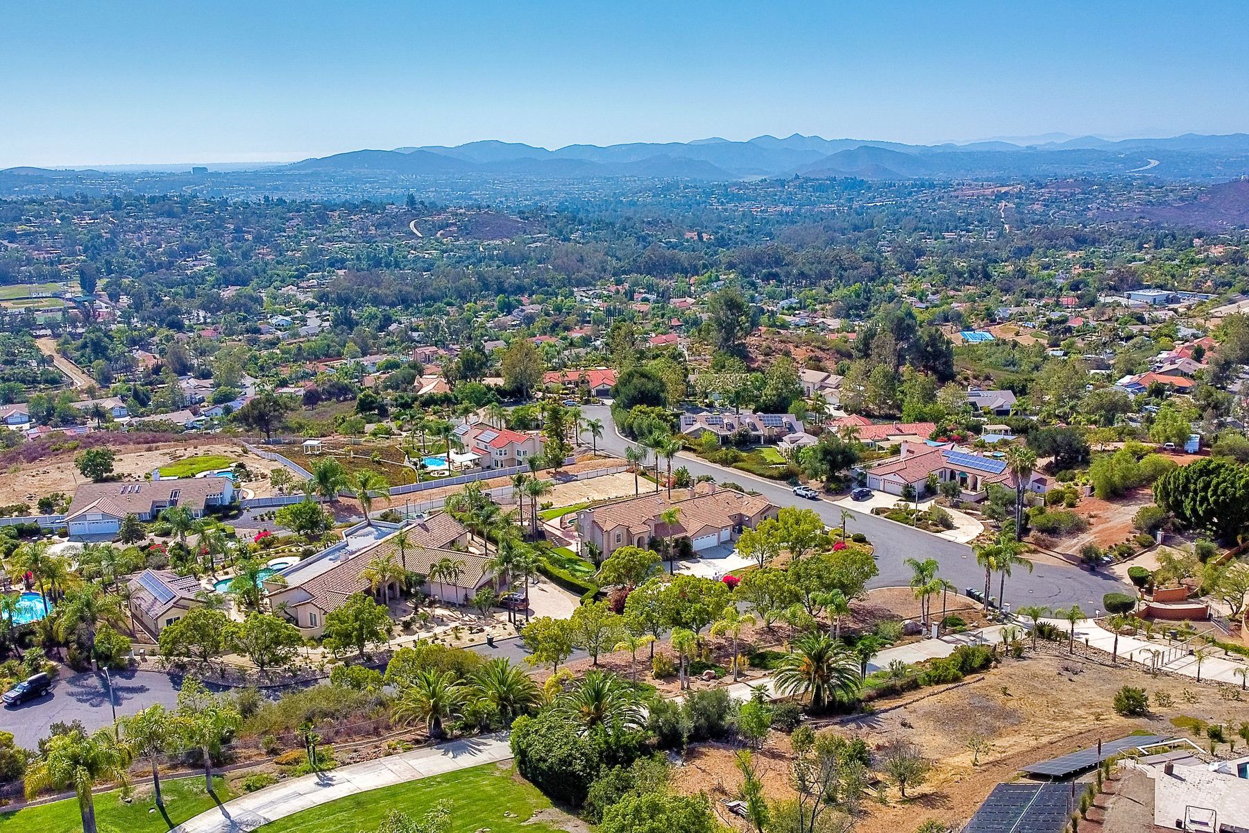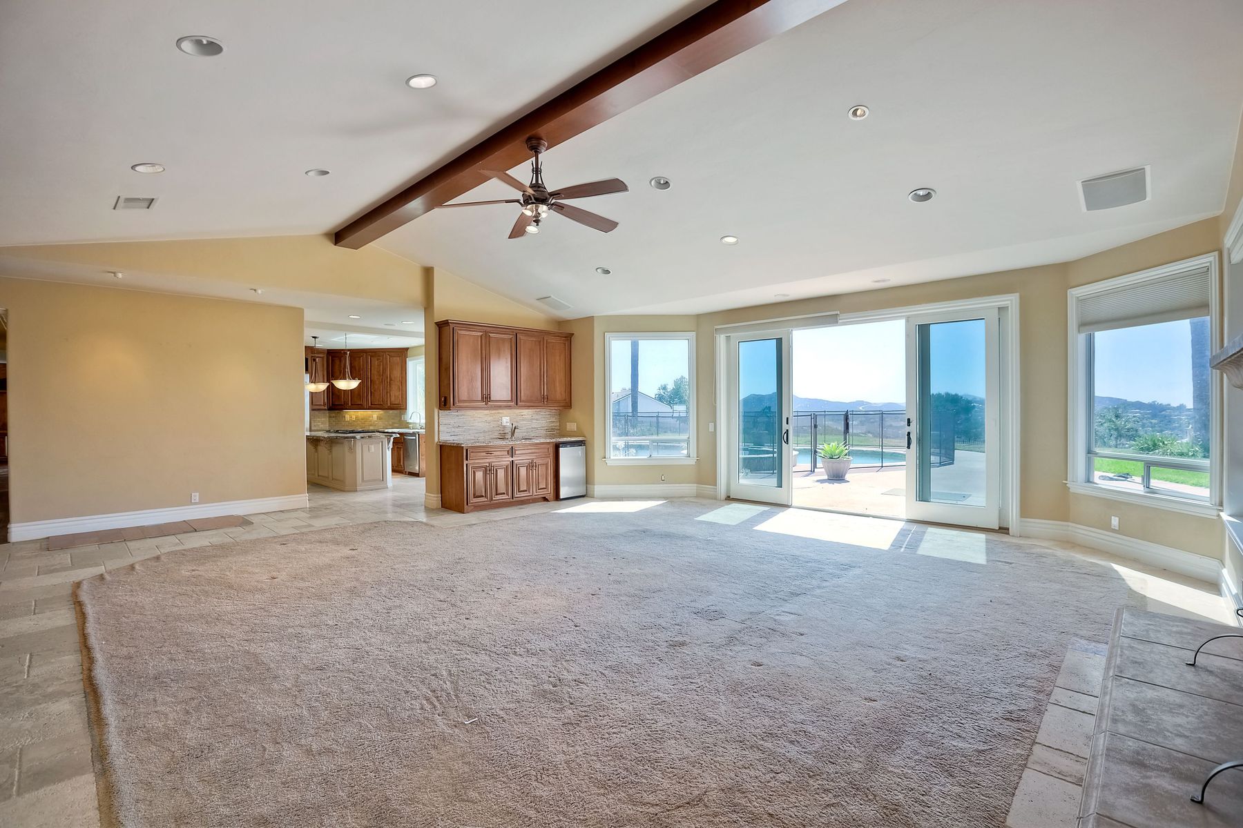 Luxury home with outstanding sunset views. Lovely neighborhood of Bridlewood Lakeside. Over 40,000 sq ft lot, includes basketball court, soccer field, play area with built in ground level trampoline and play swing set. Swimming pool with jacuzzi protected by security fencing. Relax in the oversized backyard patio with BBQ grill, fridge, sink with plenty of counter space. Guest home has it's own private entrance, along with full kitchen, dining area, laundry rm, one bedroom and it's own living room with french doors and private covered patio. Long private driveway, with grand entrance through the custom glass with iron double doors. Formal living with fire place and custom built cabinetry. Formal dining room has view of the lovely backyard with sitting areas. Downstairs office has custom built cabinets and desk. Large living room has bar area with fridge along with built in cabinets for your oversized TV. Shutters and crown molding throughout. All this and a highly rated Poway Unified school district