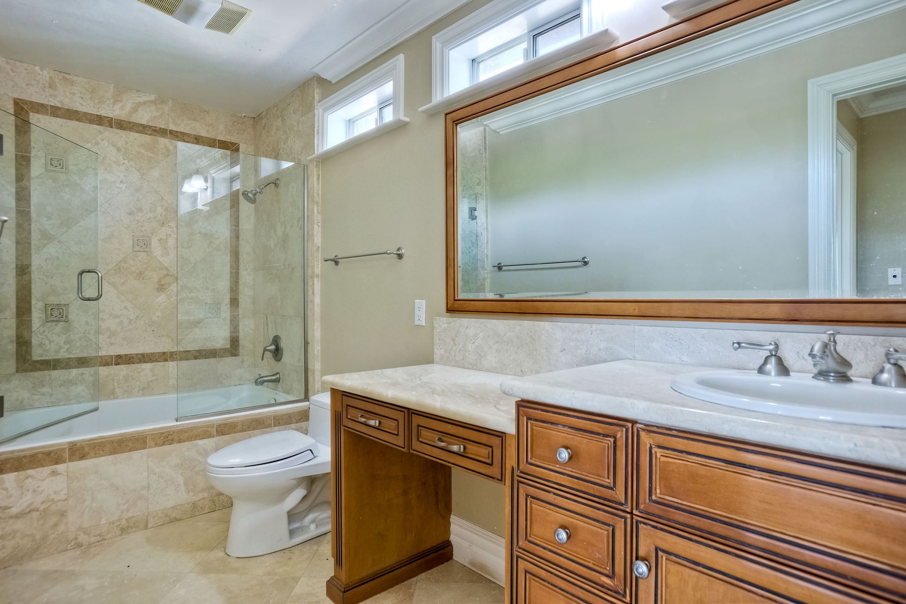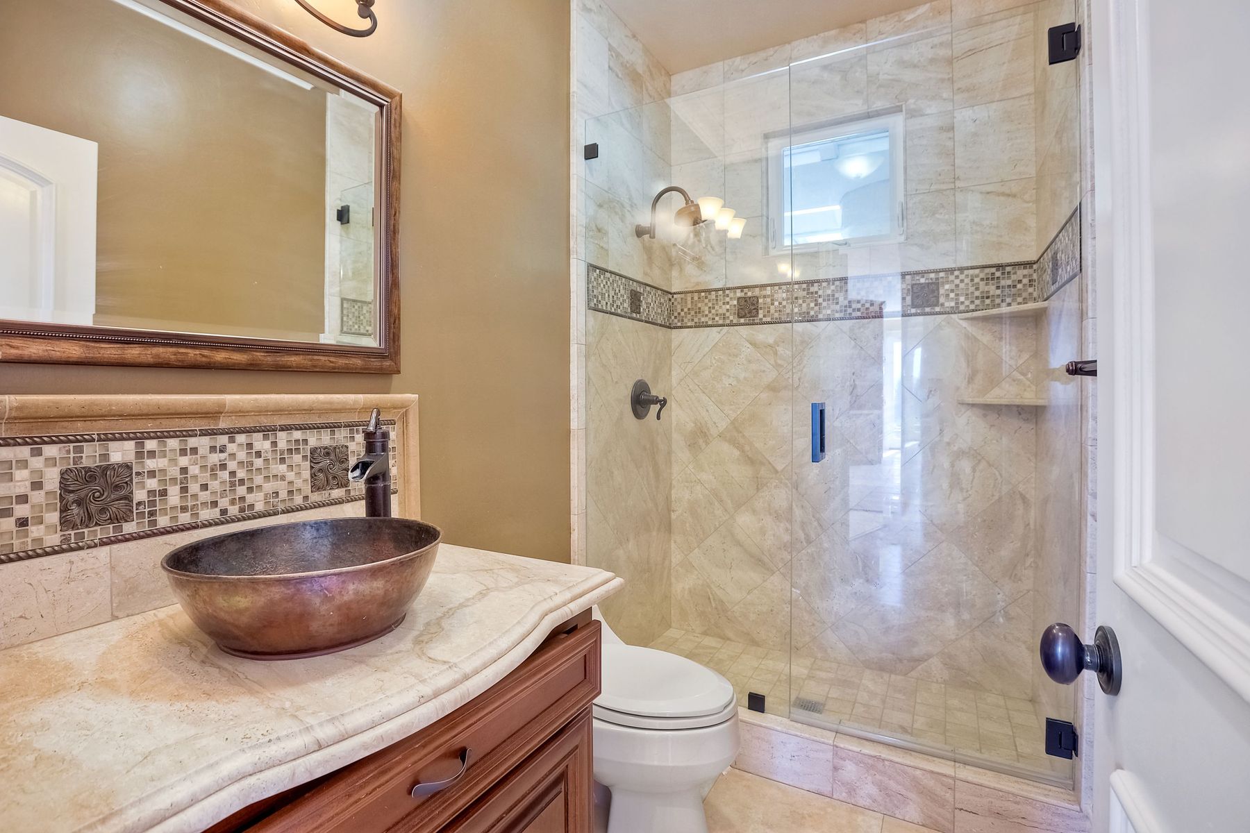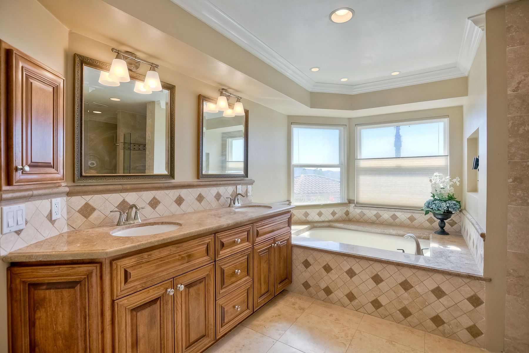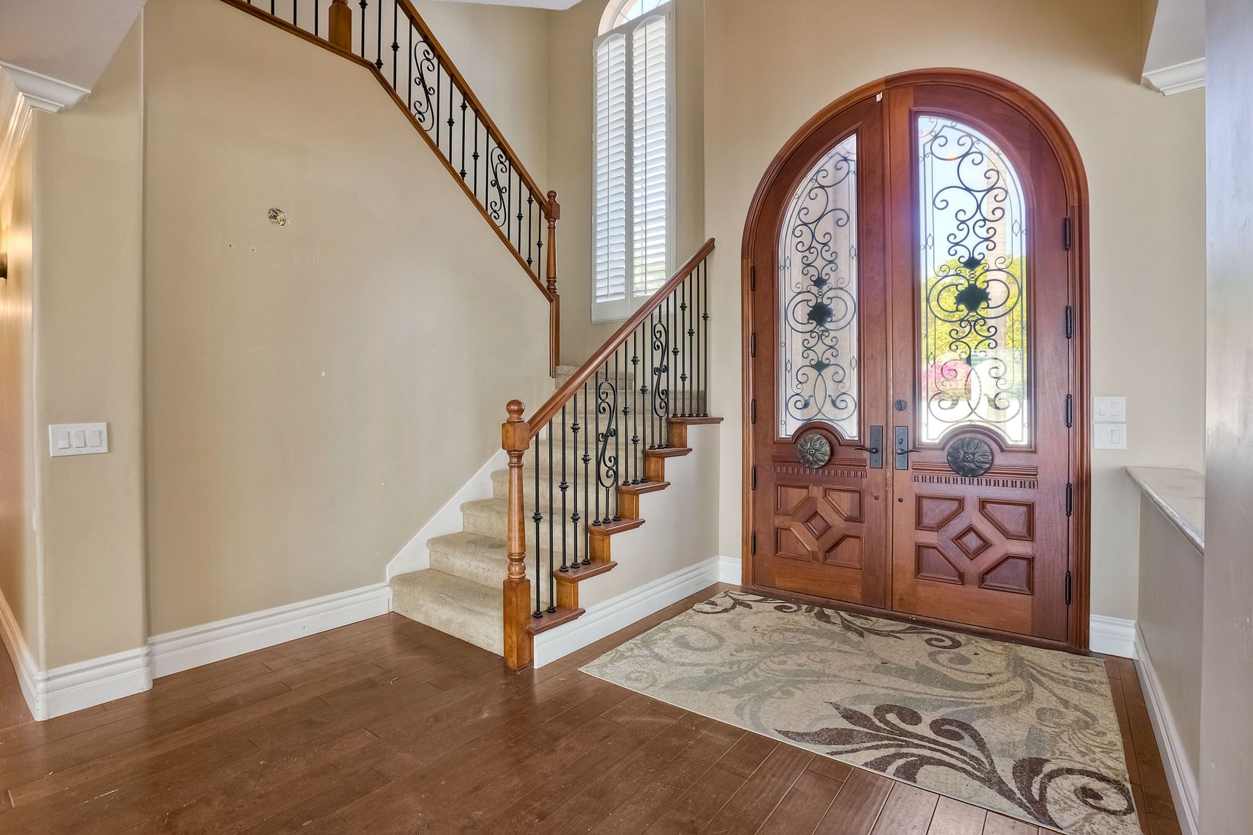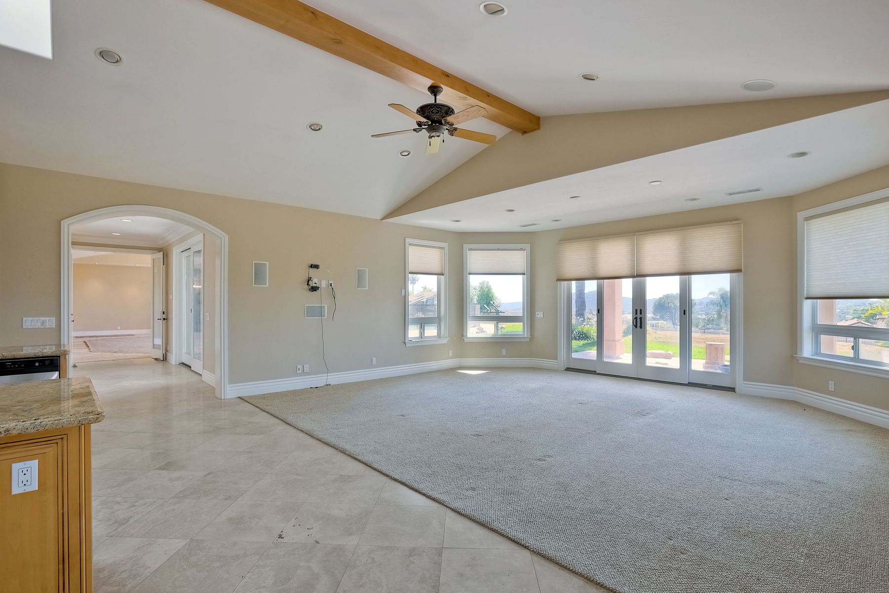 Luxury home with outstanding sunset views. Lovely neighborhood of Bridlewood Lakeside. Over 40,000 sq ft lot, includes basketball court, soccer field, play area with built in ground level trampoline and play swing set. Swimming pool with jacuzzi protected by security fencing. Relax in the oversized backyard patio with BBQ grill, fridge, sink with plenty of counter space. Guest home has it's own private entrance, along with full kitchen, dining area, laundry rm, one bedroom and it's own living room with french doors and private covered patio. Long private driveway, with grand entrance through the custom glass with iron double doors. Formal living with fire place and custom built cabinetry. Formal dining room has view of the lovely backyard with sitting areas. Downstairs office has custom built cabinets and desk. Large living room has bar area with fridge along with built in cabinets for your oversized TV. Shutters and crown molding throughout. All this and a highly rated Poway Unified school district