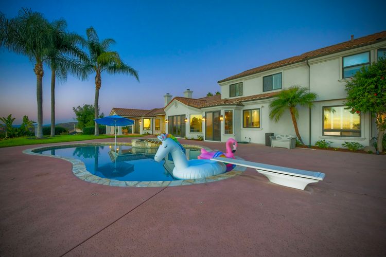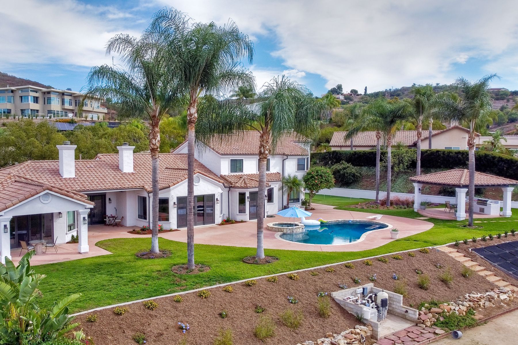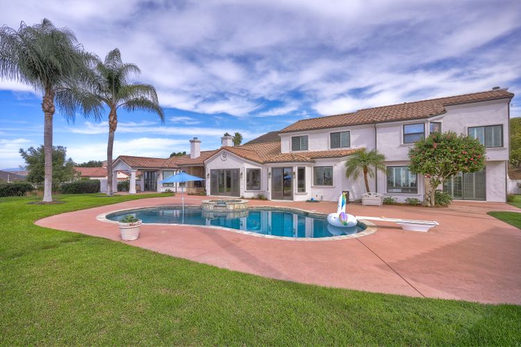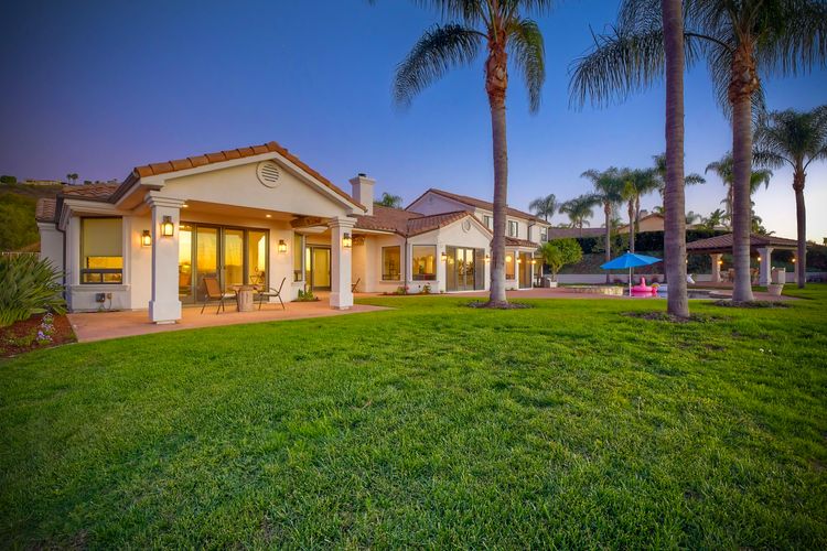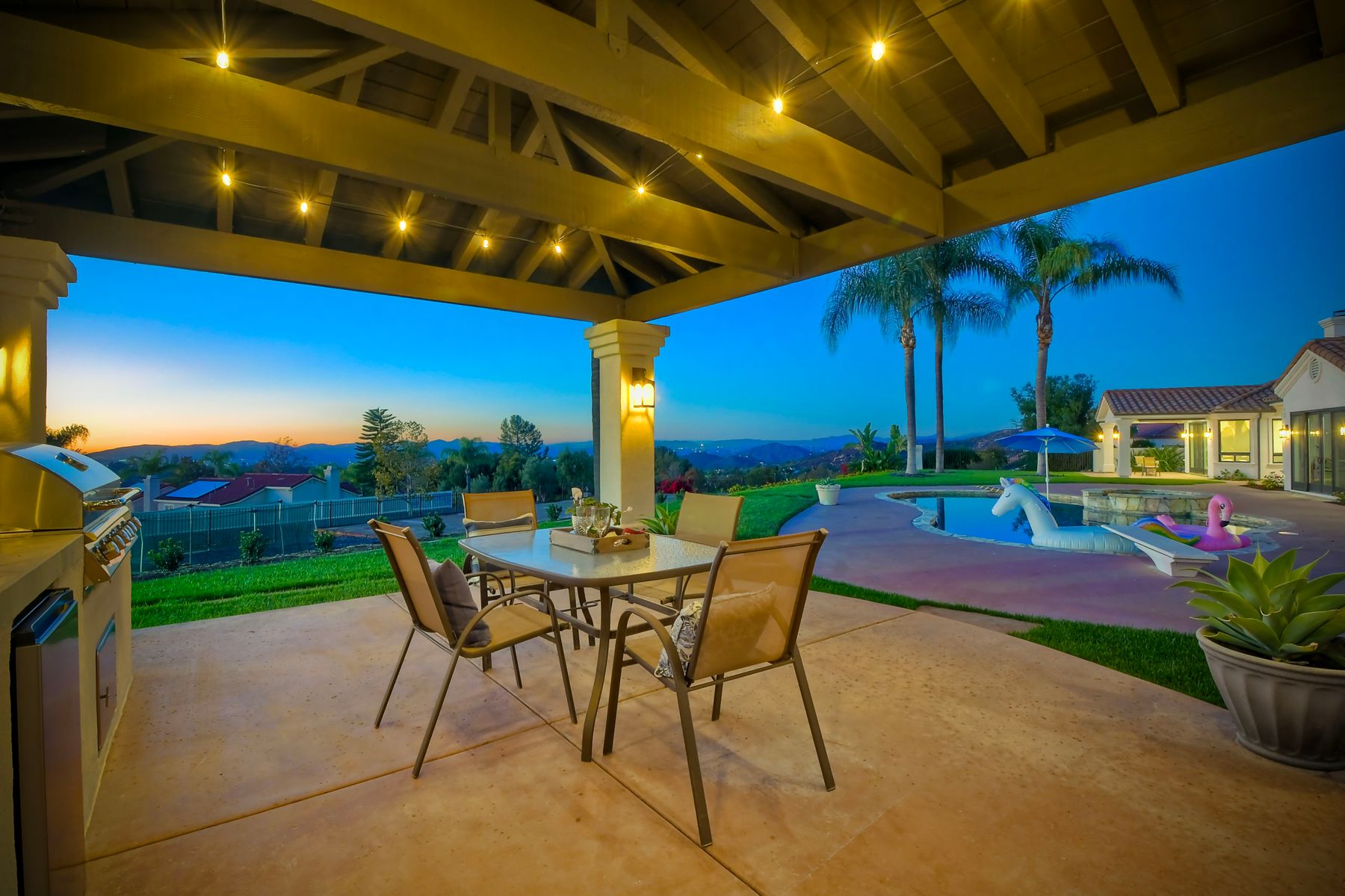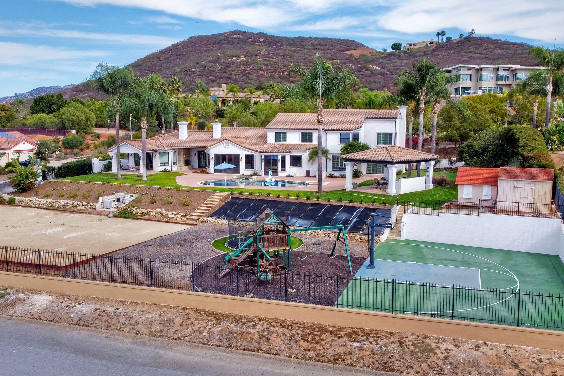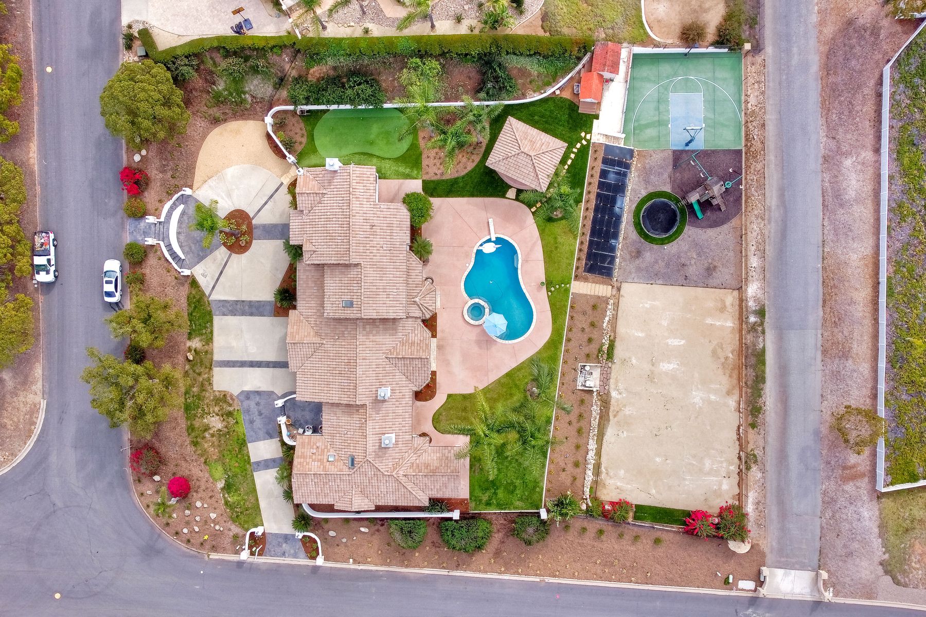 Luxury, re-modeled home with outstanding sunset views! Lovely neighborhood of Bridlewood Lakeside. Over 40,000 sq ft lot, includes basketball court, play area with built in ground level trampoline and play swing set. Swimming pool with jacuzzi. Relax in the oversized backyard patio with BBQ grill, fridge, sink and plenty of counter space. Long private driveway. Grand entrance through the iron double doors with custom glass. Formal living with fireplace. Formal dining room has view of the beautiful, serene backyard with multiple sitting areas. Downstairs office has custom built cabinets and desk. Shutters and crown molding throughout. GUEST HOME has its own private entrance, along with full kitchen, dining area, laundry room, one bedroom and its own living room with French doors and private covered patio. RECENT IMPROVEMENTS INCLUDE: EXTERIOR: The front and back yards have been professionally designed and landscaped! Sealed and stained the stamped concrete in the driveway. NEW Marathon grass installed. Upgraded irrigation system to include 36 NEW automatic sprinkler valves and NEW electronic sprinkler control panel. Installed 29 NEW exterior lights-10 column and 19 wall mounts. Pressure washed the roof and replaced or repaired all roof tiles which were damaged. Had the roof inspected by a roofing contractor. POOL: Installed a NEW glass pebble finish in the pool and installed two NEW LED lights in the pool and spa. Installed NEW mastic around the pools edge. In the PAVILLION: Installed a NEW 48 inch Bull BBQ and NEW designer tile countertop and backsplash!. Installed NEW cafe lighting. NEW refrigerator (on order). INTERIOR: Professionally painted interior and exterior! NEW top of the line wood flooring installed throughout the home! NEW designer paint colors throughout. NEW granite countertop on the island in the kitchen. NEW designer wallpaper in the dining room and powder room. NEW mirrored closet doors in a bedroom and NEW closet shelving in two bedrooms. NEW faucets installed in the kitchen, master bedroom, ADU bathroom and guest bathroom. NEW ceiling fans installed in all 4 bedrooms, plus family room and office! NEW lighting in the dining room, kitchen and bathrooms. One NEW 50 gallon water heater with an additional 5 year warranty purchased. A/C units and heaters were professional serviced and inspected by licensed contractor. Installed three NEW Nest Thermostats and filters. 78 new LED trim lighting installed in all recess cans. All this and a highly rated Poway Unified school district! Please see the attached Improvement list(s) for all upgrades and improvements made to the property within the past few months!