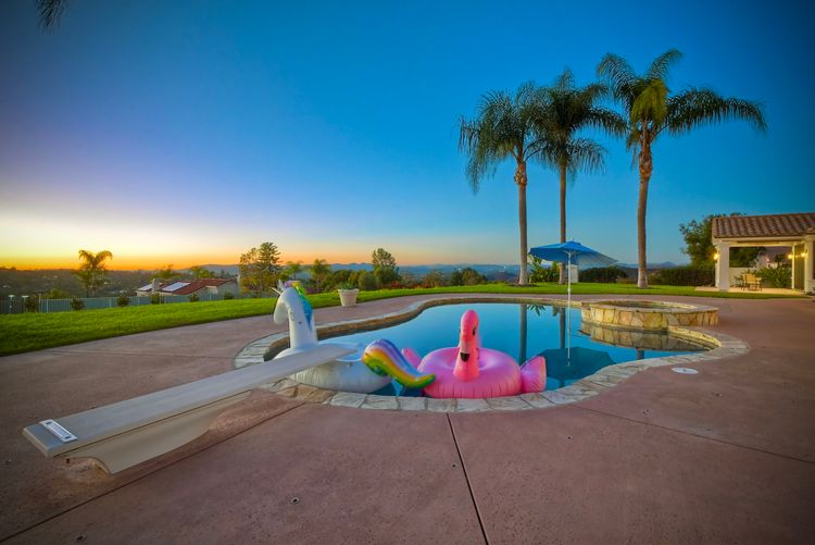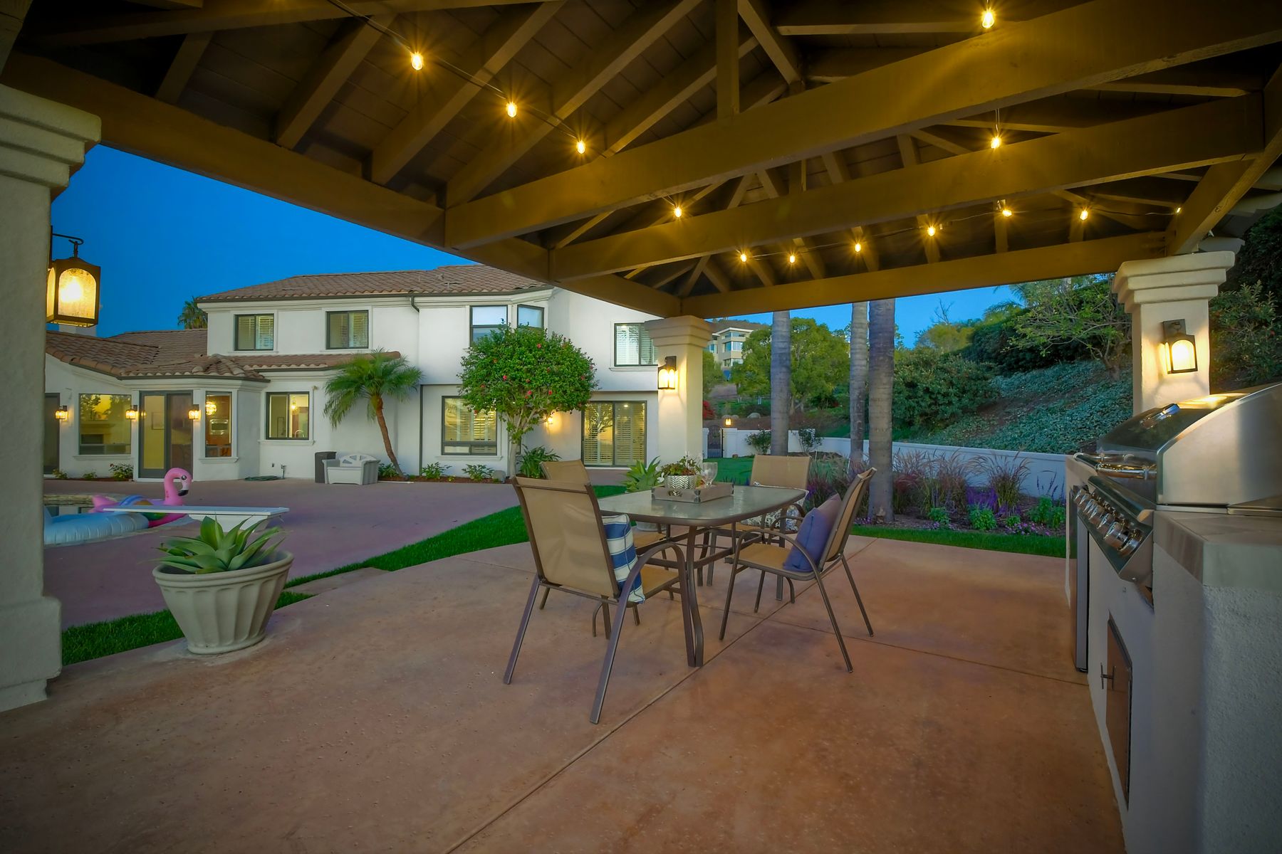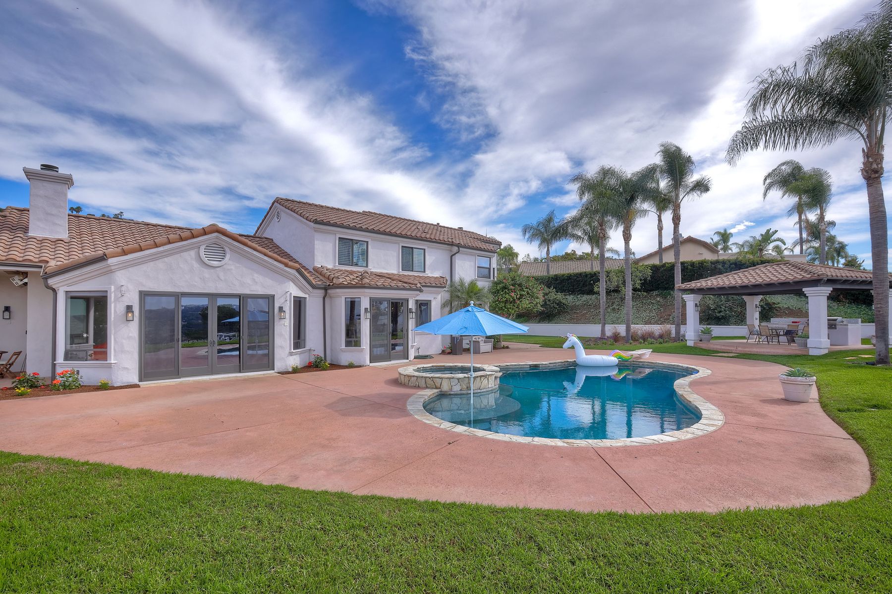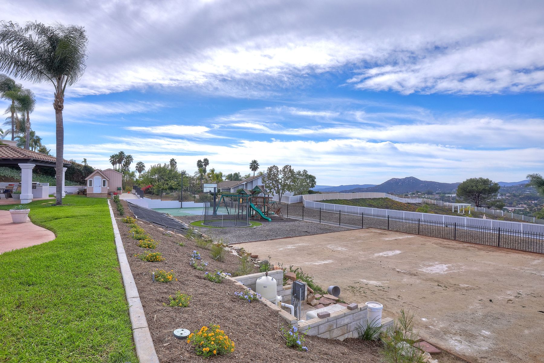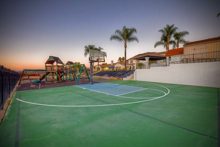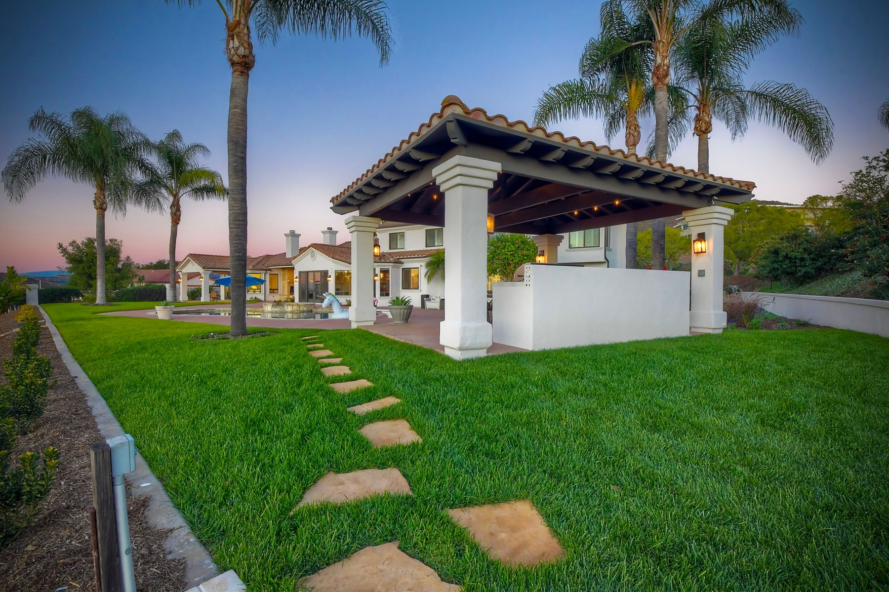 Luxury, re-modeled home with outstanding sunset views! Lovely neighborhood of Bridlewood Lakeside. Over 40,000 sq ft lot, includes basketball court, play area with built in ground level trampoline and play swing set. Swimming pool with jacuzzi. Relax in the oversized backyard patio with BBQ grill, fridge, sink and plenty of counter space. Long private driveway. Grand entrance through the iron double doors with custom glass. Formal living with fireplace. Formal dining room has view of the beautiful, serene backyard with multiple sitting areas. Downstairs office has custom built cabinets and desk. Shutters and crown molding throughout. GUEST HOME has its own private entrance, along with full kitchen, dining area, laundry room, one bedroom and its own living room with French doors and private covered patio. RECENT IMPROVEMENTS INCLUDE: EXTERIOR: The front and back yards have been professionally designed and landscaped! Sealed and stained the stamped concrete in the driveway. NEW Marathon grass installed. Upgraded irrigation system to include 36 NEW automatic sprinkler valves and NEW electronic sprinkler control panel. Installed 29 NEW exterior lights-10 column and 19 wall mounts. Pressure washed the roof and replaced or repaired all roof tiles which were damaged. Had the roof inspected by a roofing contractor. POOL: Installed a NEW glass pebble finish in the pool and installed two NEW LED lights in the pool and spa. Installed NEW mastic around the pools edge. In the PAVILLION: Installed a NEW 48 inch Bull BBQ and NEW designer tile countertop and backsplash!. Installed NEW cafe lighting. NEW refrigerator (on order). INTERIOR: Professionally painted interior and exterior! NEW top of the line wood flooring installed throughout the home! NEW designer paint colors throughout. NEW granite countertop on the island in the kitchen. NEW designer wallpaper in the dining room and powder room. NEW mirrored closet doors in a bedroom and NEW closet shelving in two bedrooms. NEW faucets installed in the kitchen, master bedroom, ADU bathroom and guest bathroom. NEW ceiling fans installed in all 4 bedrooms, plus family room and office! NEW lighting in the dining room, kitchen and bathrooms. One NEW 50 gallon water heater with an additional 5 year warranty purchased. A/C units and heaters were professional serviced and inspected by licensed contractor. Installed three NEW Nest Thermostats and filters. 78 new LED trim lighting installed in all recess cans. All this and a highly rated Poway Unified school district! Please see the attached Improvement list(s) for all upgrades and improvements made to the property within the past few months!