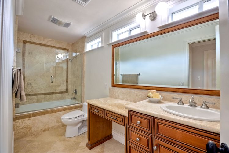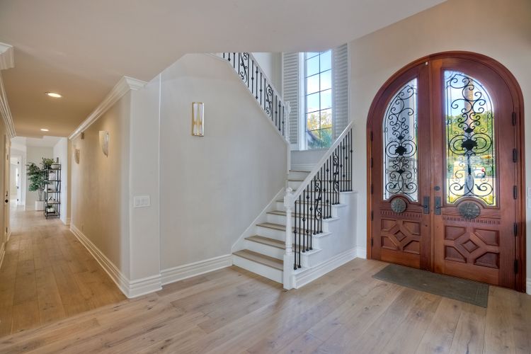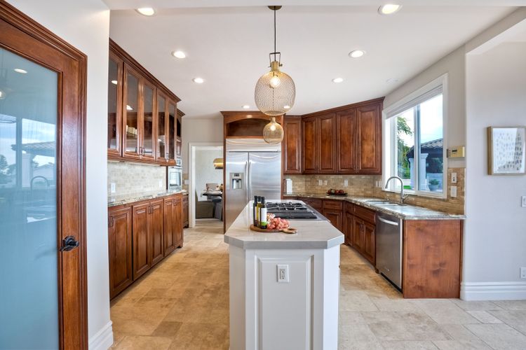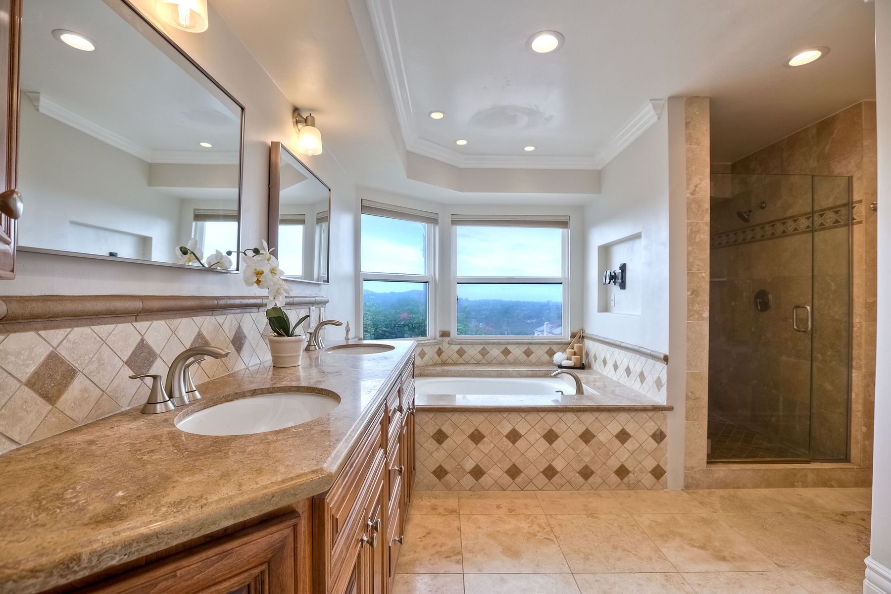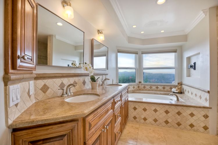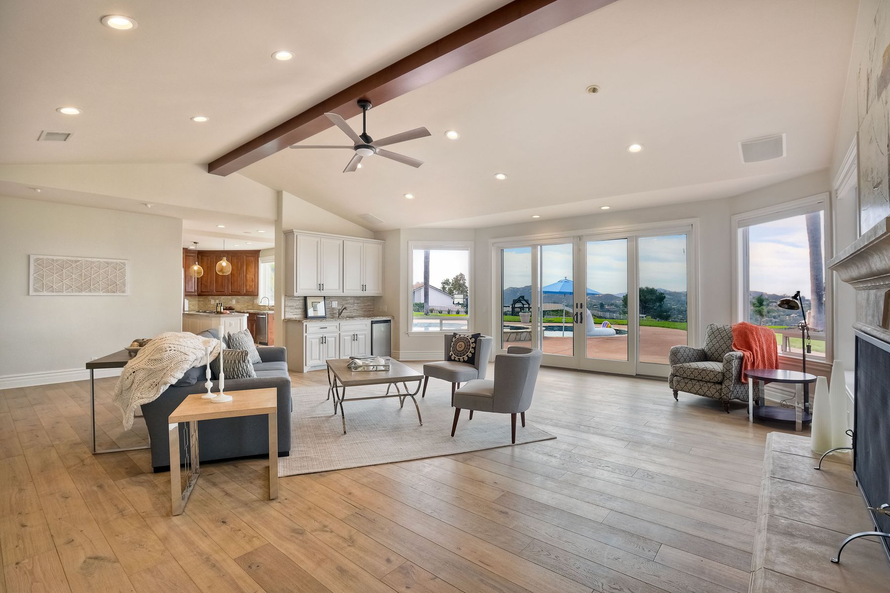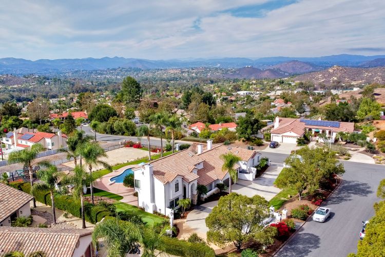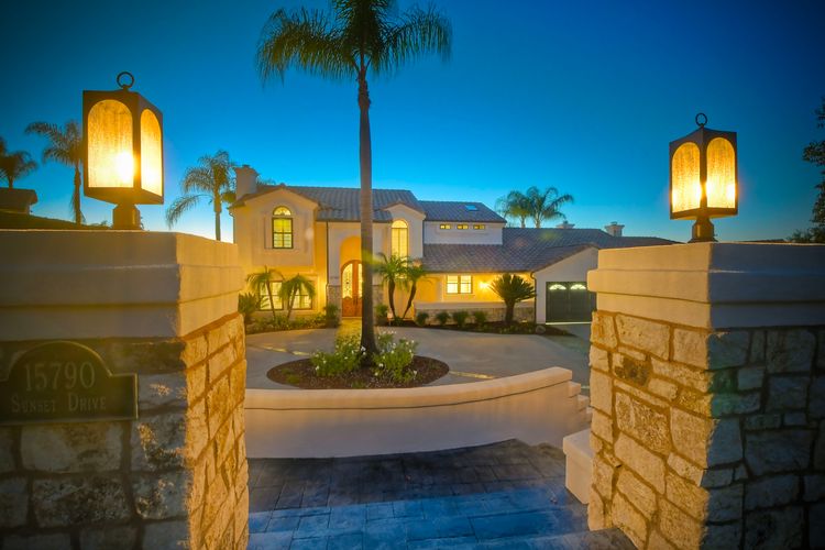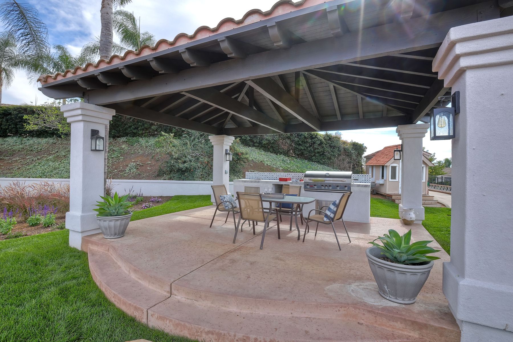 Luxury, re-modeled home with outstanding sunset views! Lovely neighborhood of Bridlewood Lakeside. Over 40,000 sq ft lot, includes basketball court, play area with built in ground level trampoline and play swing set. Swimming pool with jacuzzi. Relax in the oversized backyard patio with BBQ grill, fridge, sink and plenty of counter space. Long private driveway. Grand entrance through the iron double doors with custom glass. Formal living with fireplace. Formal dining room has view of the beautiful, serene backyard with multiple sitting areas. Downstairs office has custom built cabinets and desk. Shutters and crown molding throughout. GUEST HOME has its own private entrance, along with full kitchen, dining area, laundry room, one bedroom and its own living room with French doors and private covered patio. RECENT IMPROVEMENTS INCLUDE: EXTERIOR: The front and back yards have been professionally designed and landscaped! Sealed and stained the stamped concrete in the driveway. NEW Marathon grass installed. Upgraded irrigation system to include 36 NEW automatic sprinkler valves and NEW electronic sprinkler control panel. Installed 29 NEW exterior lights-10 column and 19 wall mounts. Pressure washed the roof and replaced or repaired all roof tiles which were damaged. Had the roof inspected by a roofing contractor. POOL: Installed a NEW glass pebble finish in the pool and installed two NEW LED lights in the pool and spa. Installed NEW mastic around the pools edge. In the PAVILLION: Installed a NEW 48 inch Bull BBQ and NEW designer tile countertop and backsplash!. Installed NEW cafe lighting. NEW refrigerator (on order). INTERIOR: Professionally painted interior and exterior! NEW top of the line wood flooring installed throughout the home! NEW designer paint colors throughout. NEW granite countertop on the island in the kitchen. NEW designer wallpaper in the dining room and powder room. NEW mirrored closet doors in a bedroom and NEW closet shelving in two bedrooms. NEW faucets installed in the kitchen, master bedroom, ADU bathroom and guest bathroom. NEW ceiling fans installed in all 4 bedrooms, plus family room and office! NEW lighting in the dining room, kitchen and bathrooms. One NEW 50 gallon water heater with an additional 5 year warranty purchased. A/C units and heaters were professional serviced and inspected by licensed contractor. Installed three NEW Nest Thermostats and filters. 78 new LED trim lighting installed in all recess cans. All this and a highly rated Poway Unified school district! Please see the attached Improvement list(s) for all upgrades and improvements made to the property within the past few months!