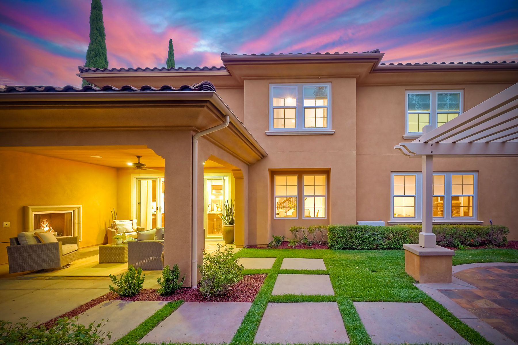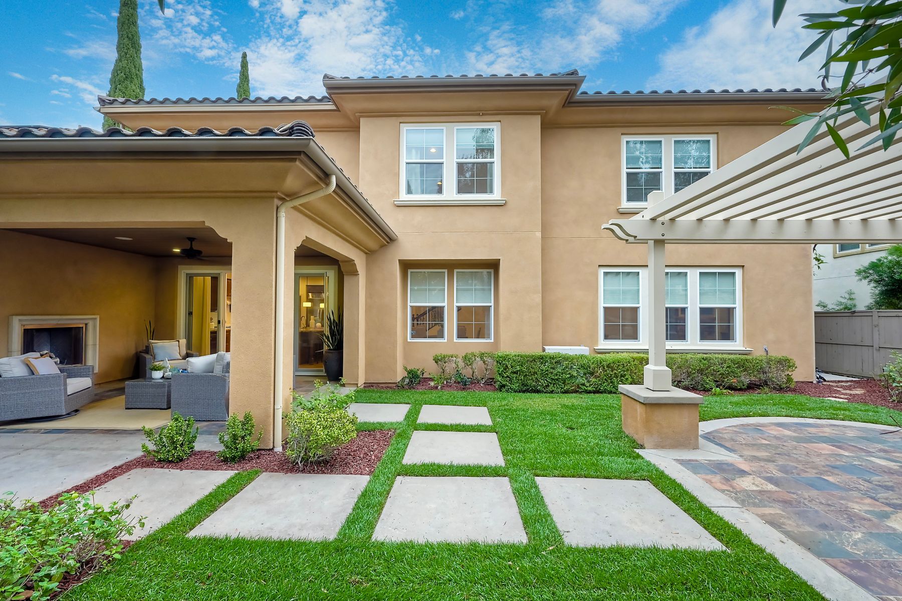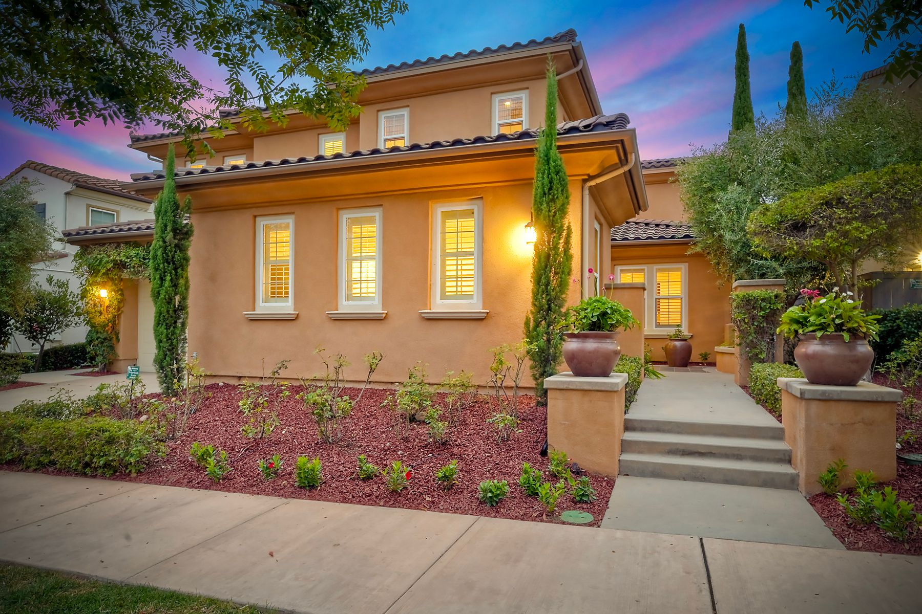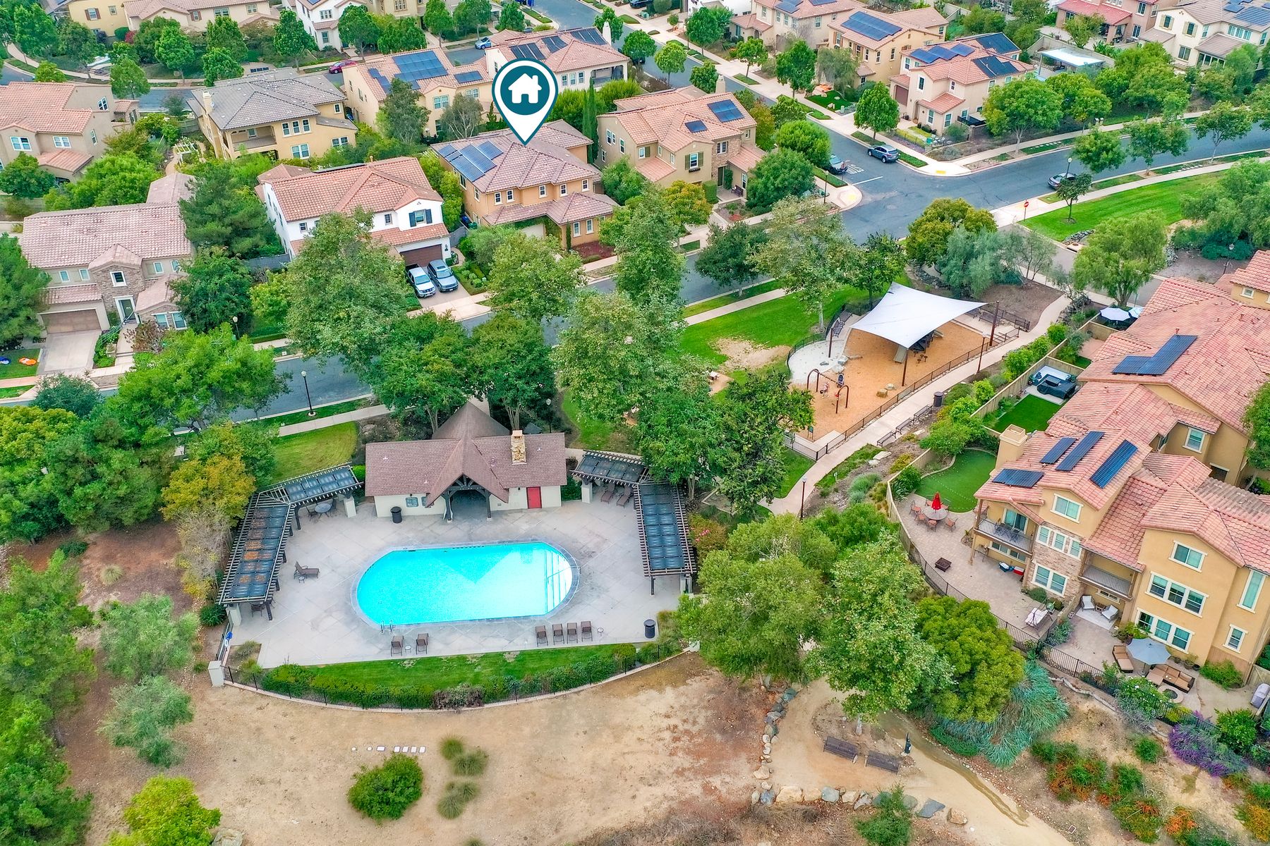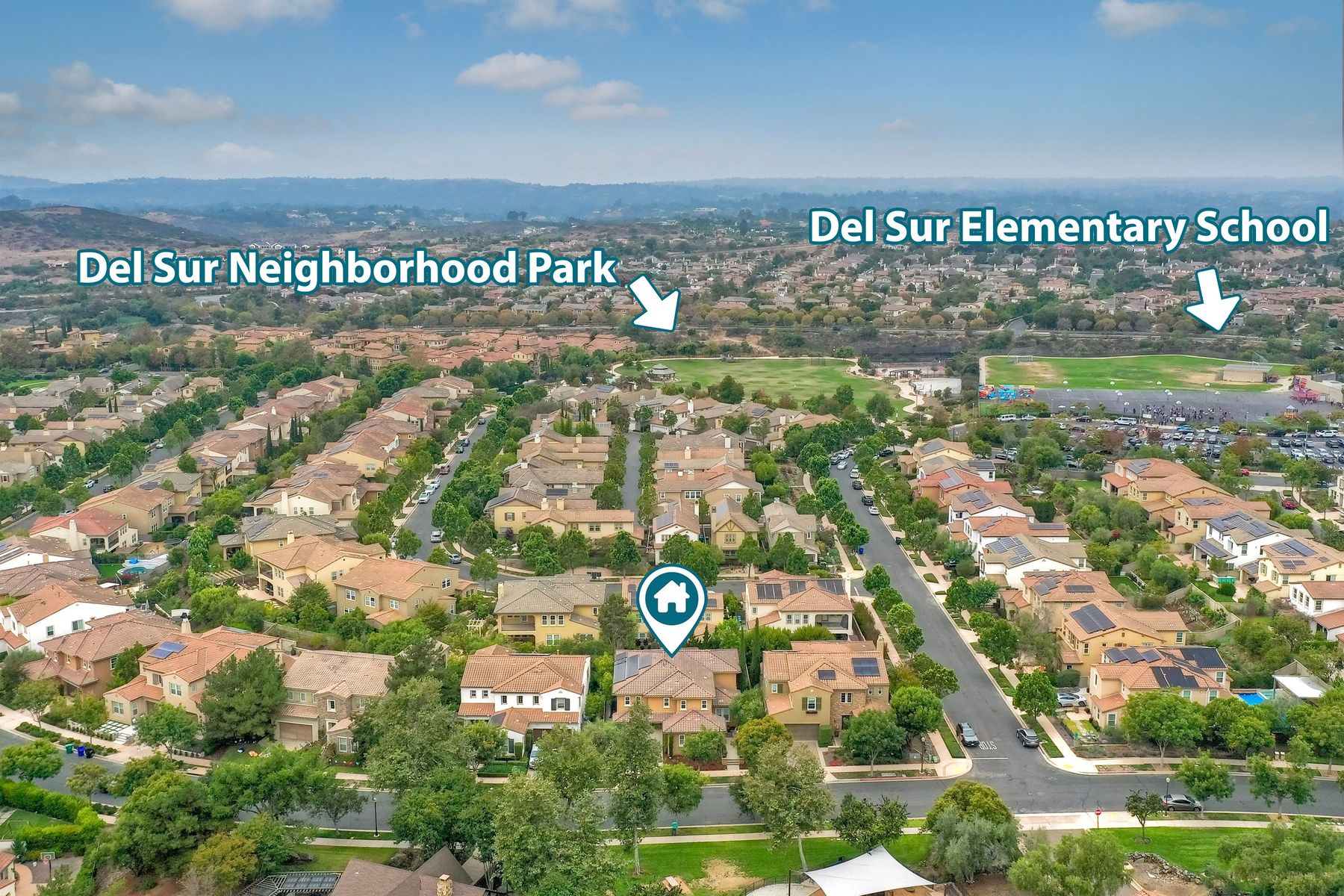 Discover this exquisite former model Presidio Plan 2, featuring an array of elegant designer upgrades and nestled conveniently near the highly-rated Del Sur Elementary School and multiple vibrant neighborhood parks. Embrace eco-friendly living with fully paid solar with battery storage, ensuring efficiency and sustainability. Prime location on a picturesque street with mature trees and landscaping, the home is directly across from Old Stonefield park and pool. The deluxe downstairs in-law suite, perfect for multi-generational living, boasts a private entrance, separate heating and cooling, a versatile retreat area, and a partial kitchen adjacent to the spacious bedroom with an ensuite bathroom. The entertainer's dream kitchen flows seamlessly into the expansive family room, showcasing stunning granite countertops, a generous center island adorned with two stylish pendant lights, a five-burner stove, a walk-in pantry, elegant maple cabinetry, a warming drawer, and all stainless steel appliances, including double ovens and a built-in refrigerator. The Del Sur room enhances the indoor-outdoor lifestyle with a private covered patio off the kitchen, complete with a ceiling fan and a cozy fireplace. The spacious primary bedroom offers a lavish ensuite bathroom & an impressive walk-in closet, while the secondary bedrooms are generously sized, with two featuring walk-in closets. Additional highlights include brand-new carpet, wrought iron stair spindles, an upstairs loft, a tankless water heater, a two-car garage with a sizable extra storage space, a family room fireplace, and central AC. The convenient upstairs laundry room includes a utility sink and cabinets for extra storage. Step outside to a private, beautifully landscaped backyard with a built-in BBQ and a charming covered seating area, complemented by a soothing water feature. Enjoy easy access to shopping, dining, and the highly desirable Del Sur community, which offers solar-heated pools, parks, a skate park, basketball courts, dog parks, playgrounds, and 18 miles of scenic hiking trails. There are multiple community events throughout the year including Del Sur Lights and a Memorial Block party hosted by the Del Sur Community Service council. Residents also benefit from exclusive access to The Ranch House, featuring both indoor and outdoor event spaces. Welcome home to a perfect blend of luxury, convenience, and community!
