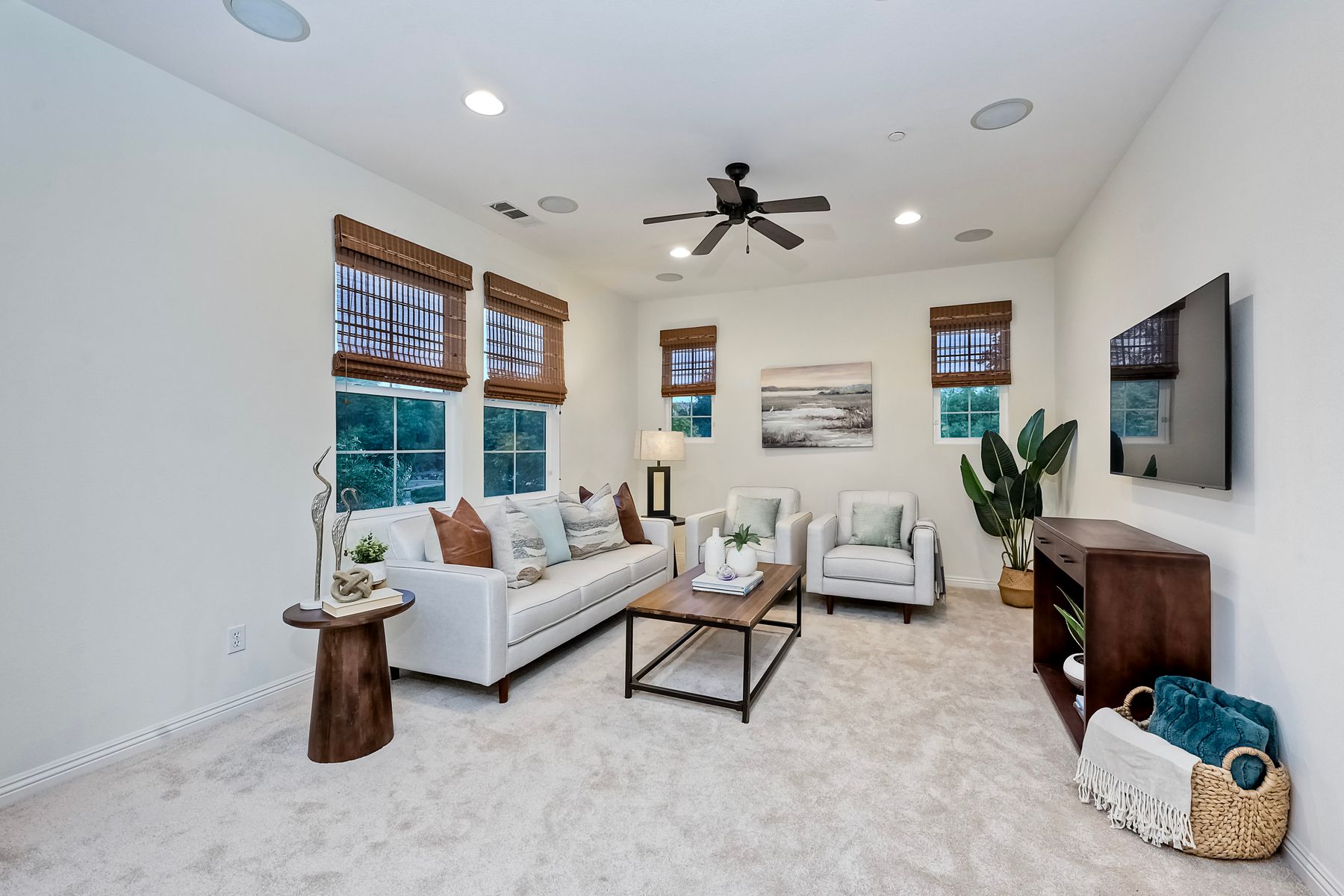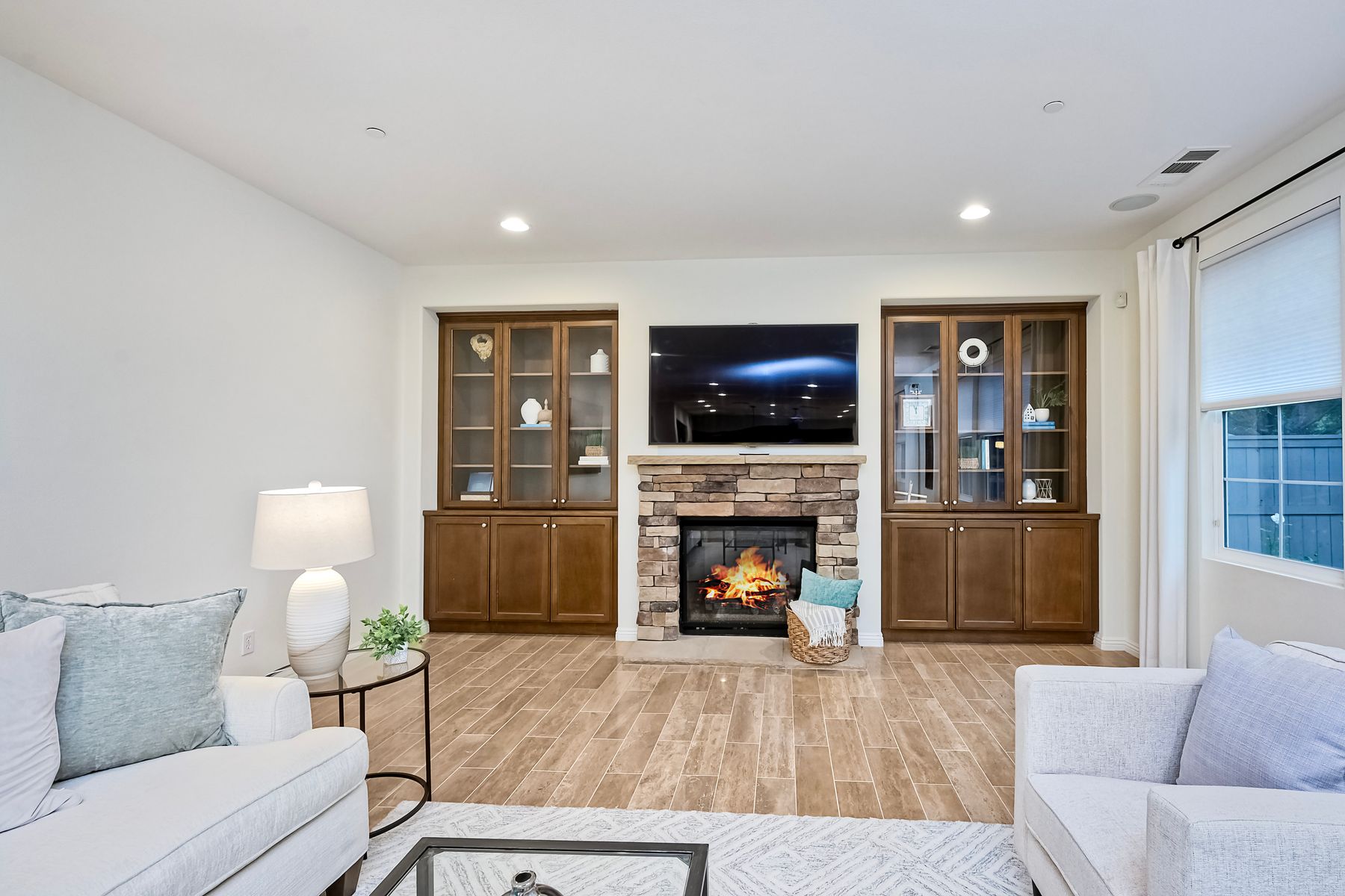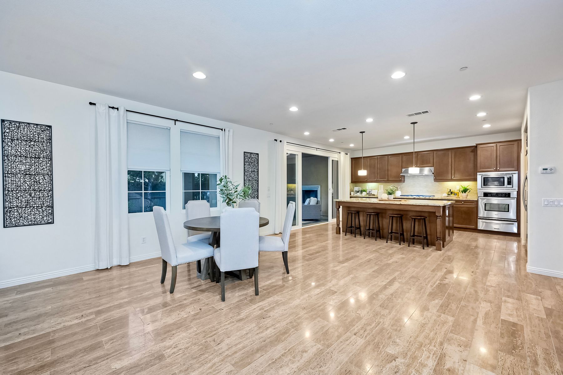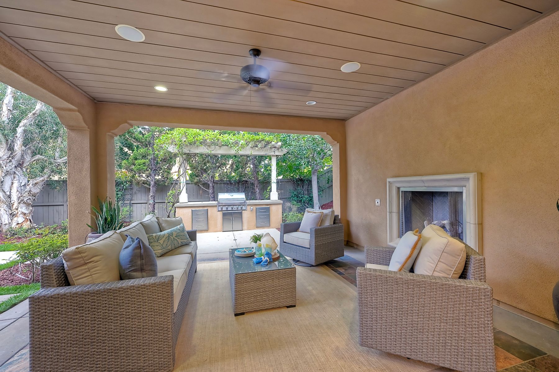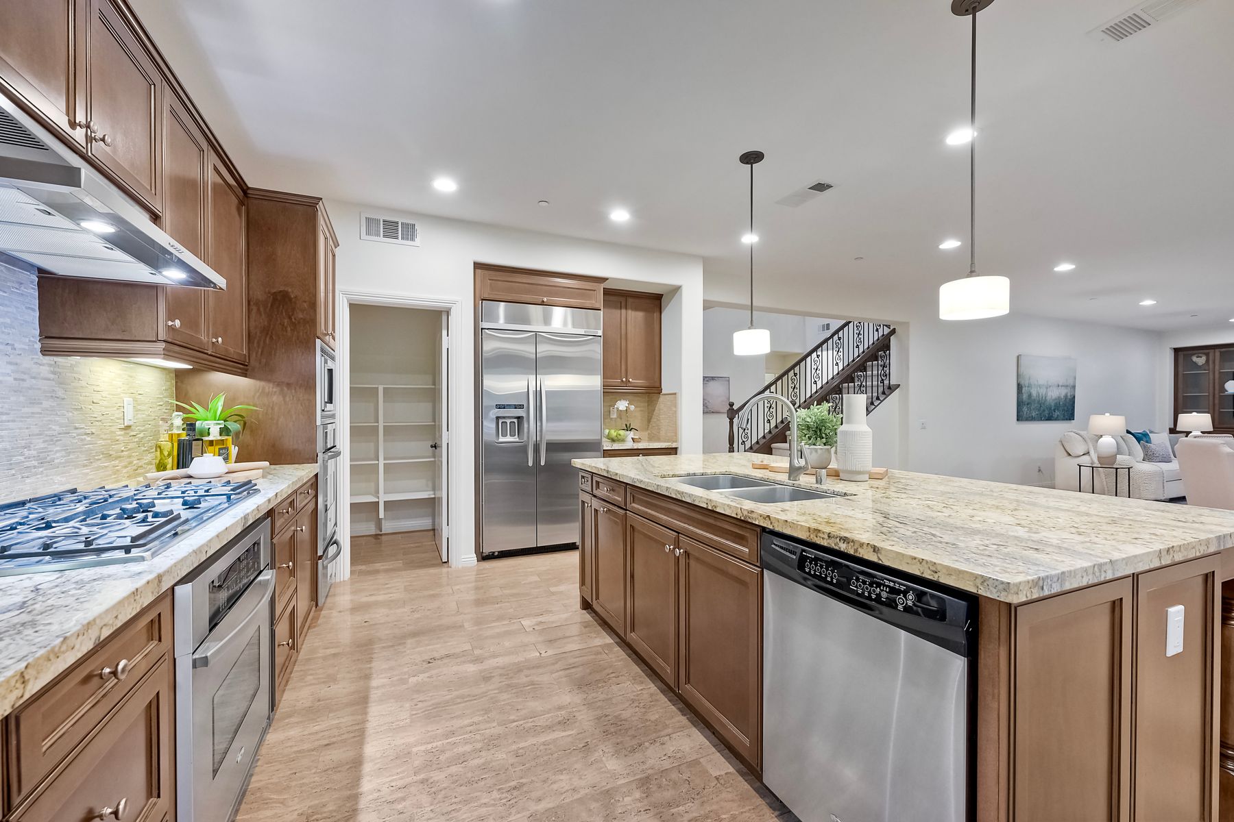 Discover this exquisite former model Presidio Plan 2, featuring an array of elegant designer upgrades and nestled conveniently near the highly-rated Del Sur Elementary School and multiple vibrant neighborhood parks. Embrace eco-friendly living with fully paid solar with battery storage, ensuring efficiency and sustainability. Prime location on a picturesque street with mature trees and landscaping, the home is directly across from Old Stonefield park and pool. The deluxe downstairs in-law suite, perfect for multi-generational living, boasts a private entrance, separate heating and cooling, a versatile retreat area, and a partial kitchen adjacent to the spacious bedroom with an ensuite bathroom. The entertainer's dream kitchen flows seamlessly into the expansive family room, showcasing stunning granite countertops, a generous center island adorned with two stylish pendant lights, a five-burner stove, a walk-in pantry, elegant maple cabinetry, a warming drawer, and all stainless steel appliances, including double ovens and a built-in refrigerator. The Del Sur room enhances the indoor-outdoor lifestyle with a private covered patio off the kitchen, complete with a ceiling fan and a cozy fireplace. The spacious primary bedroom offers a lavish ensuite bathroom & an impressive walk-in closet, while the secondary bedrooms are generously sized, with two featuring walk-in closets. Additional highlights include brand-new carpet, wrought iron stair spindles, an upstairs loft, a tankless water heater, a two-car garage with a sizable extra storage space, a family room fireplace, and central AC. The convenient upstairs laundry room includes a utility sink and cabinets for extra storage. Step outside to a private, beautifully landscaped backyard with a built-in BBQ and a charming covered seating area, complemented by a soothing water feature. Enjoy easy access to shopping, dining, and the highly desirable Del Sur community, which offers solar-heated pools, parks, a skate park, basketball courts, dog parks, playgrounds, and 18 miles of scenic hiking trails. There are multiple community events throughout the year including Del Sur Lights and a Memorial Block party hosted by the Del Sur Community Service council. Residents also benefit from exclusive access to The Ranch House, featuring both indoor and outdoor event spaces. Welcome home to a perfect blend of luxury, convenience, and community!