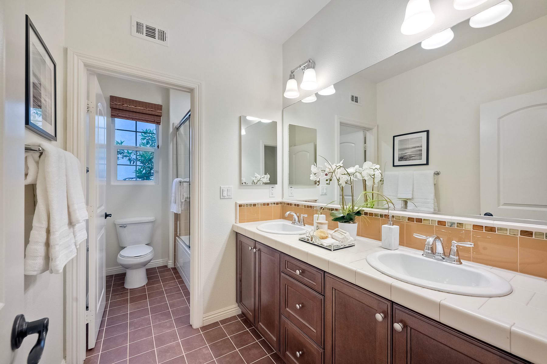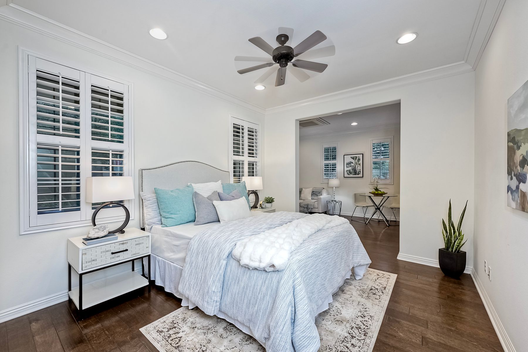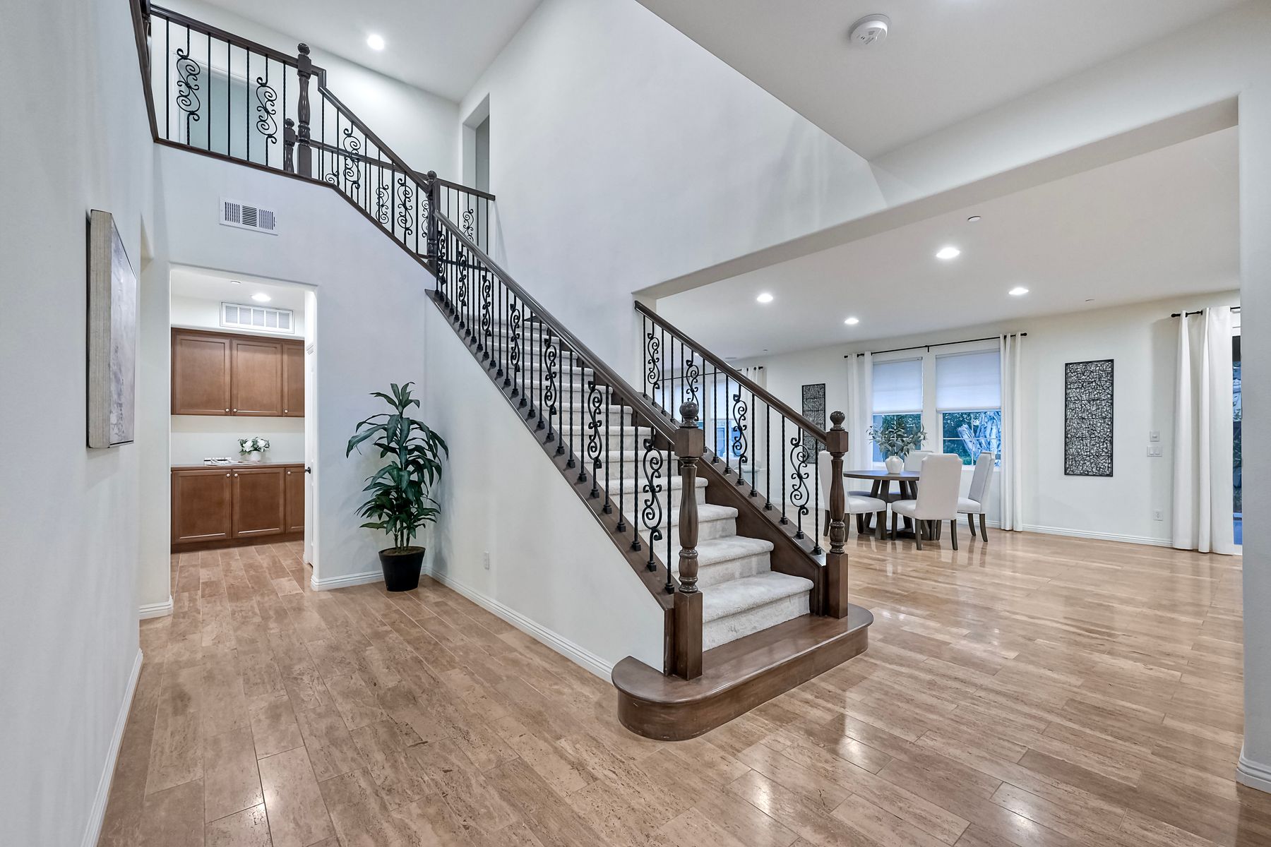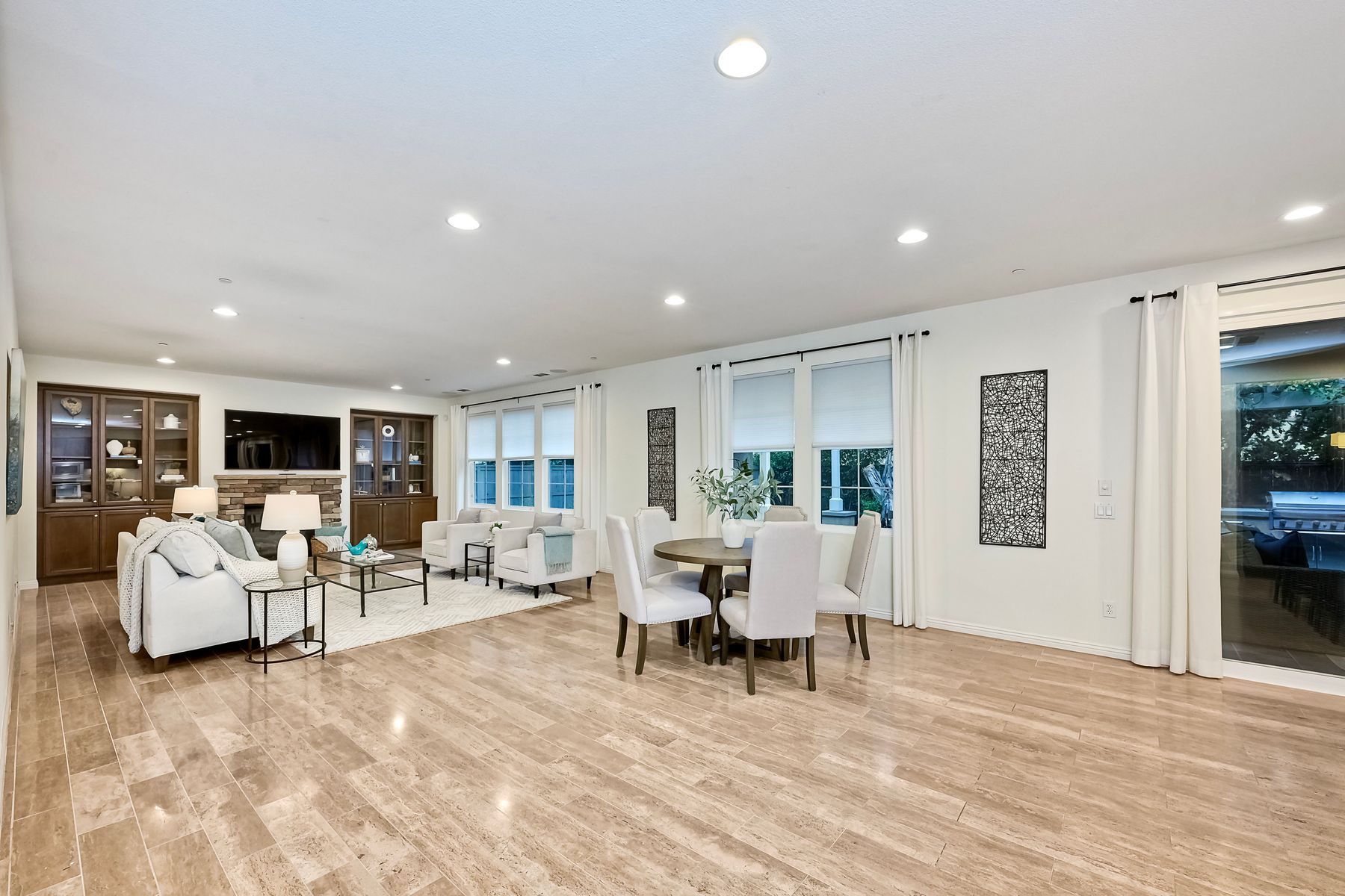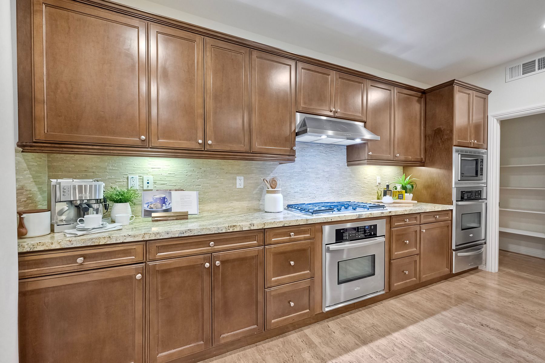 Discover this exquisite former model Presidio Plan 2, featuring an array of elegant designer upgrades and nestled conveniently near the highly-rated Del Sur Elementary School and multiple vibrant neighborhood parks. Embrace eco-friendly living with fully paid solar with battery storage, ensuring efficiency and sustainability. Prime location on a picturesque street with mature trees and landscaping, the home is directly across from Old Stonefield park and pool. The deluxe downstairs in-law suite, perfect for multi-generational living, boasts a private entrance, separate heating and cooling, a versatile retreat area, and a partial kitchen adjacent to the spacious bedroom with an ensuite bathroom. The entertainer's dream kitchen flows seamlessly into the expansive family room, showcasing stunning granite countertops, a generous center island adorned with two stylish pendant lights, a five-burner stove, a walk-in pantry, elegant maple cabinetry, a warming drawer, and all stainless steel appliances, including double ovens and a built-in refrigerator. The Del Sur room enhances the indoor-outdoor lifestyle with a private covered patio off the kitchen, complete with a ceiling fan and a cozy fireplace. The spacious primary bedroom offers a lavish ensuite bathroom & an impressive walk-in closet, while the secondary bedrooms are generously sized, with two featuring walk-in closets. Additional highlights include brand-new carpet, wrought iron stair spindles, an upstairs loft, a tankless water heater, a two-car garage with a sizable extra storage space, a family room fireplace, and central AC. The convenient upstairs laundry room includes a utility sink and cabinets for extra storage. Step outside to a private, beautifully landscaped backyard with a built-in BBQ and a charming covered seating area, complemented by a soothing water feature. Enjoy easy access to shopping, dining, and the highly desirable Del Sur community, which offers solar-heated pools, parks, a skate park, basketball courts, dog parks, playgrounds, and 18 miles of scenic hiking trails. There are multiple community events throughout the year including Del Sur Lights and a Memorial Block party hosted by the Del Sur Community Service council. Residents also benefit from exclusive access to The Ranch House, featuring both indoor and outdoor event spaces. Welcome home to a perfect blend of luxury, convenience, and community!