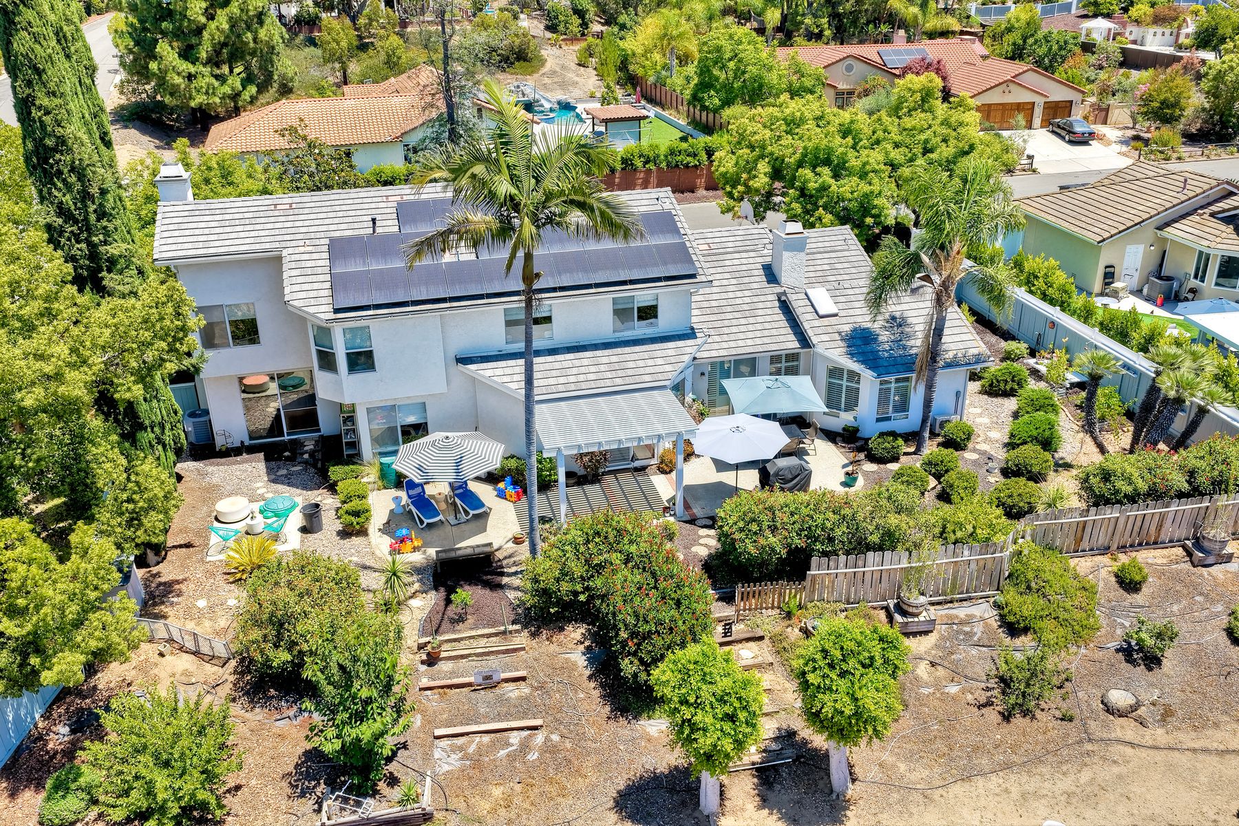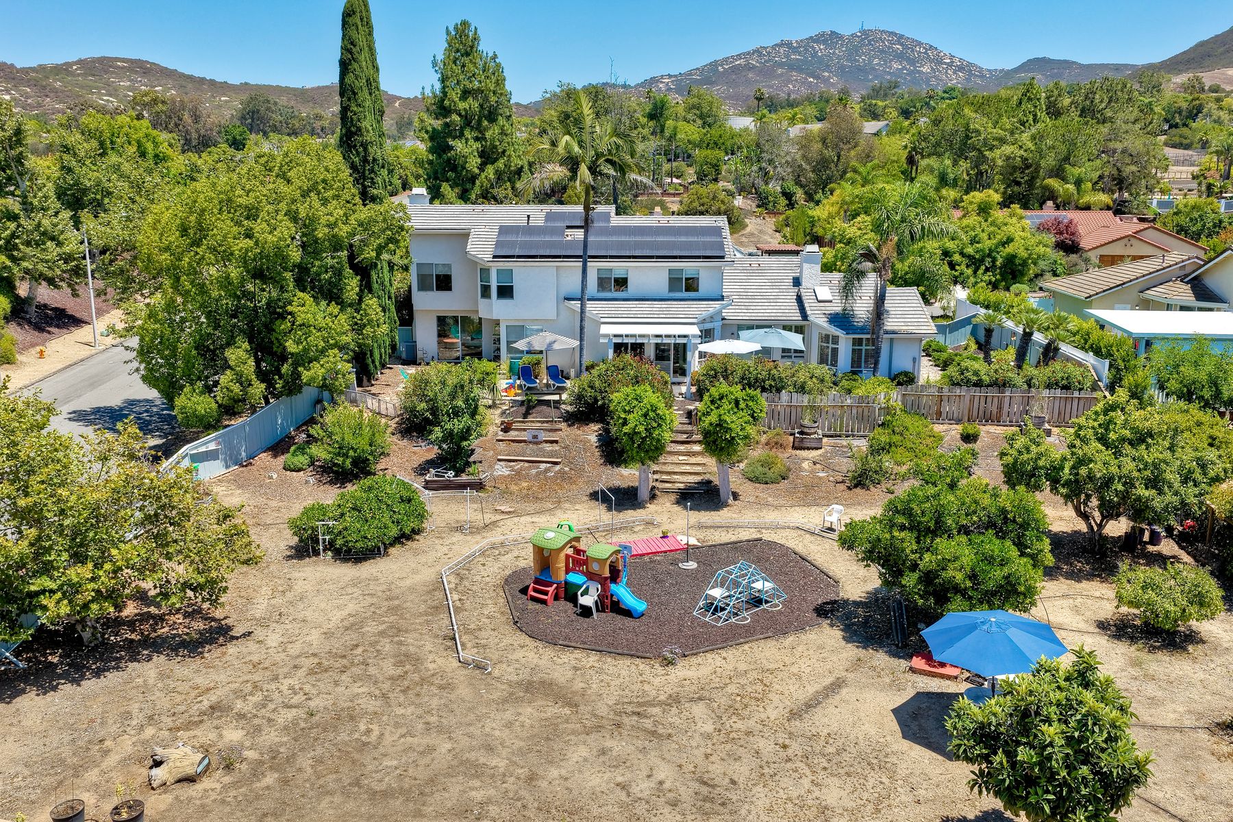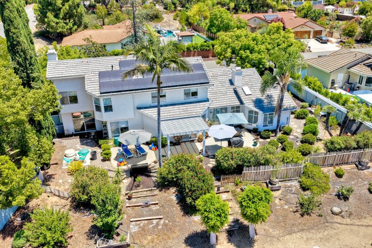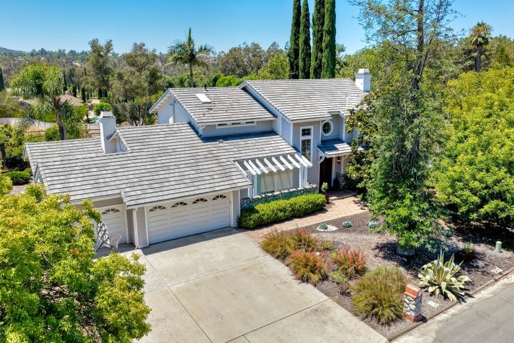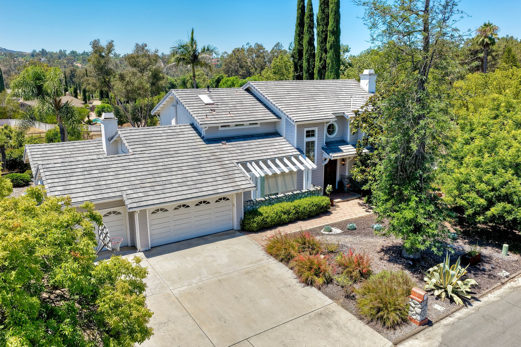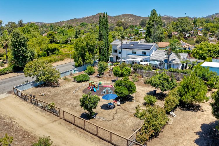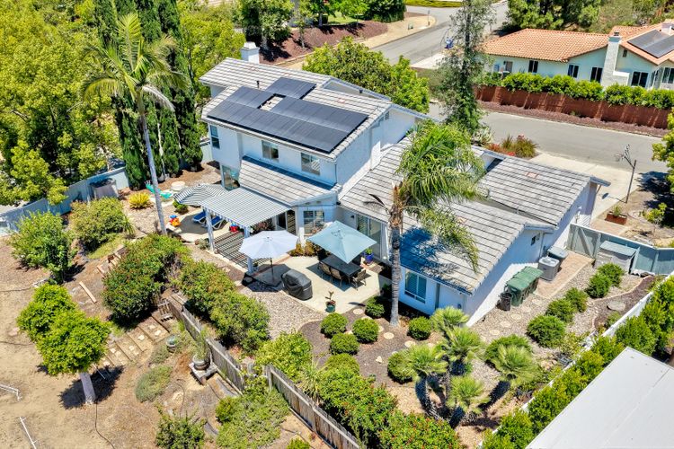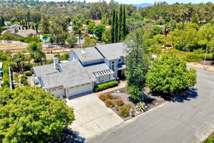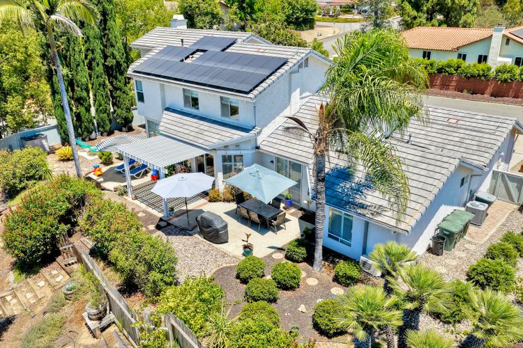 Amazing opportunity to live in this beautiful home in the heart of Bridlewood Lakeside. This stunning home has two full bedrooms and baths downstairs! Home features: fully paid for solar, beautiful cabinetry and corian counters, upgraded wood flooring, kitchen center island, large walk in pantry, vaulted ceilings, copper plumbing, reroofed in 2019, plantation shutters, roman blinds, ceiling fans, alarm system, plus more! Primary bath has large walk in closet, spacious soaking tub and separate shower, dual vanities, and great lighting. This nearly half acre property has amazing views (think 4th of July firework shows), large two tiered lot, multiple fruit trees, corner lot that is walking distance to Lake Poway and Poway High school. No Hoa or mello roos