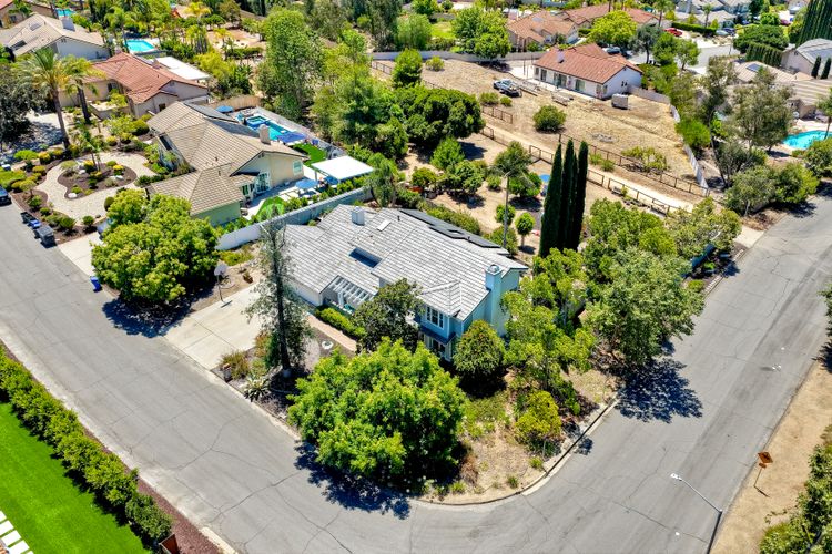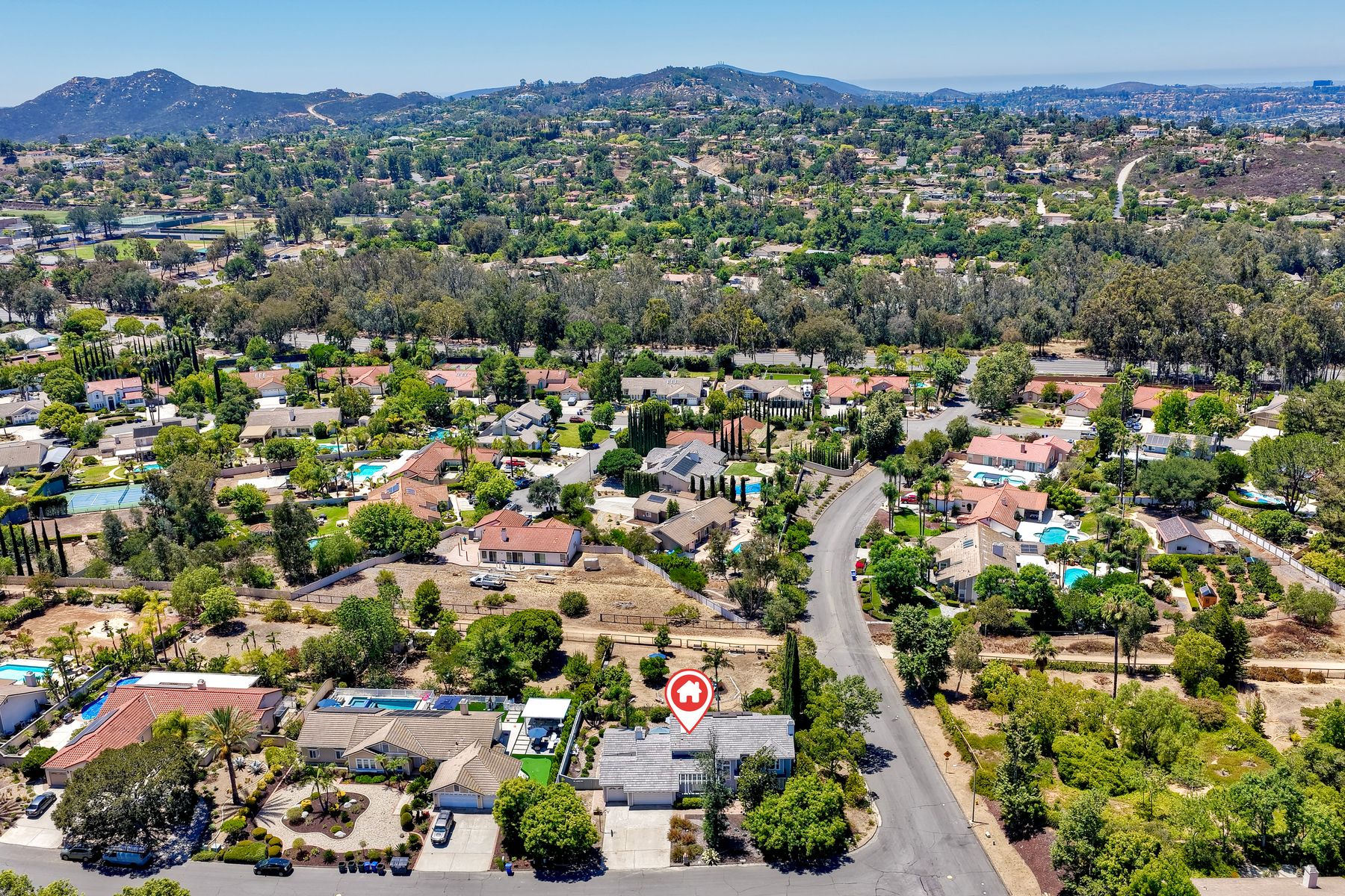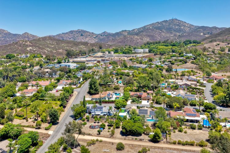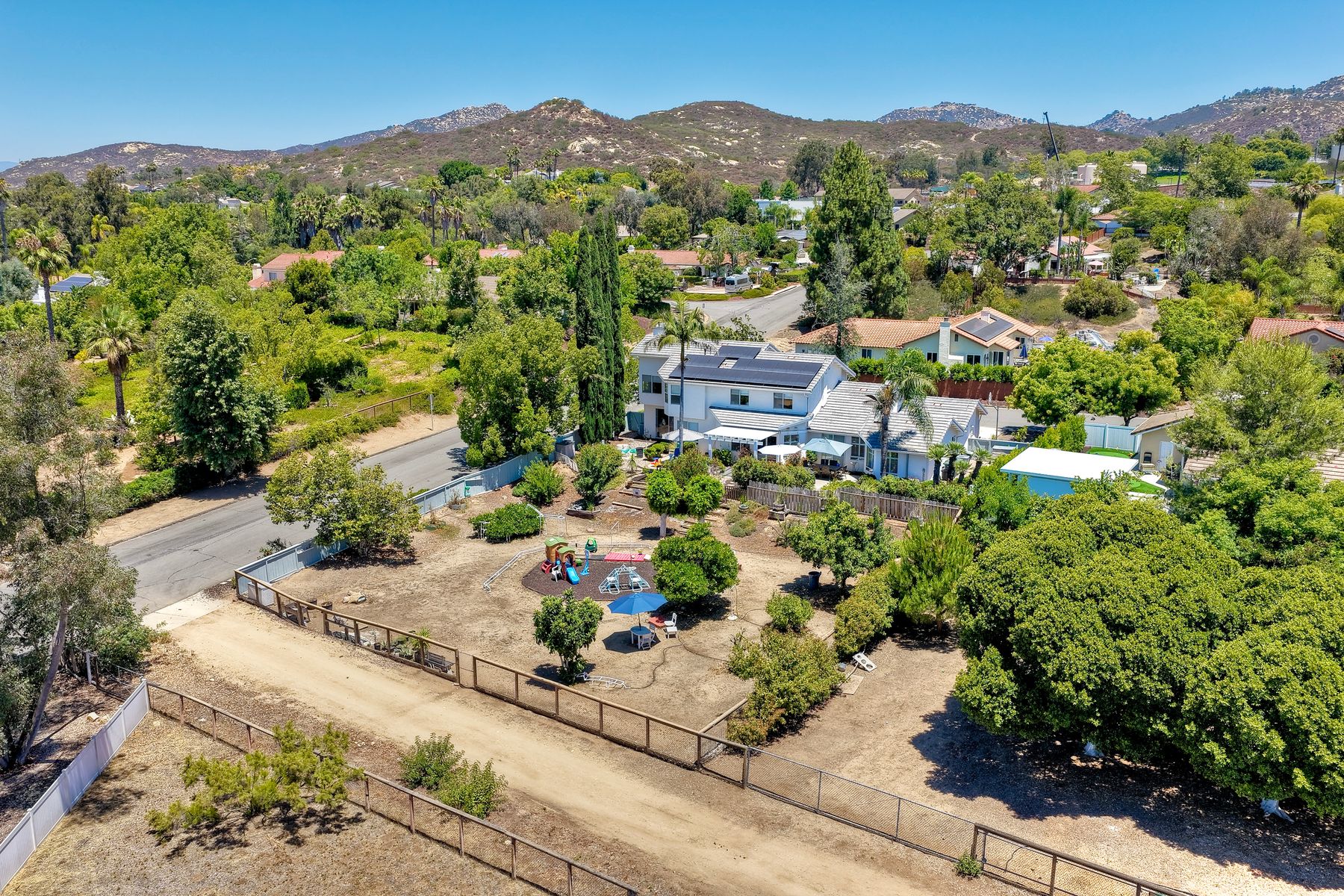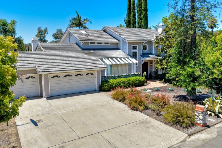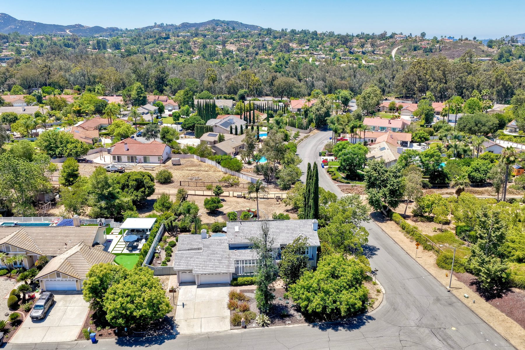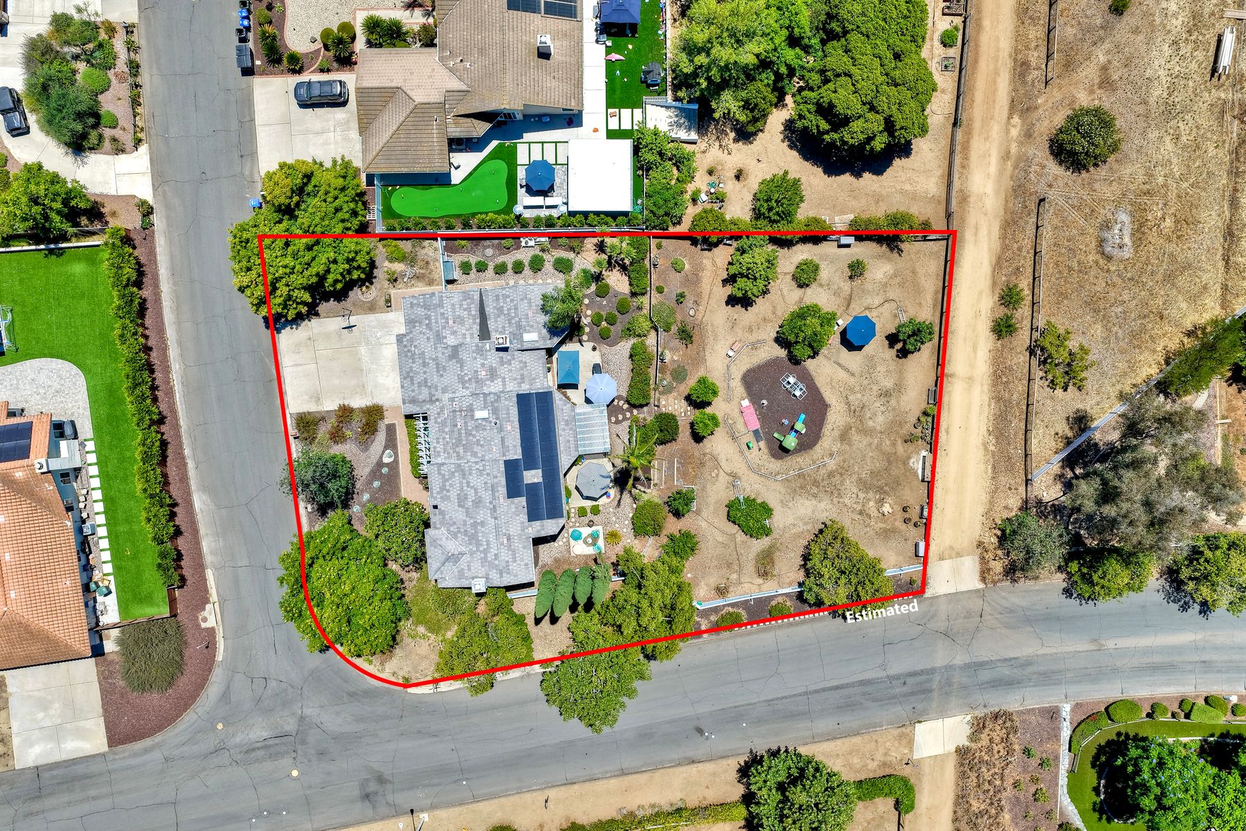 Amazing opportunity to live in this beautiful home in the heart of Bridlewood Lakeside. This stunning home has two full bedrooms and baths downstairs! Home features: fully paid for solar, beautiful cabinetry and corian counters, upgraded wood flooring, kitchen center island, large walk in pantry, vaulted ceilings, copper plumbing, reroofed in 2019, plantation shutters, roman blinds, ceiling fans, alarm system, plus more! Primary bath has large walk in closet, spacious soaking tub and separate shower, dual vanities, and great lighting. This nearly half acre property has amazing views (think 4th of July firework shows), large two tiered lot, multiple fruit trees, corner lot that is walking distance to Lake Poway and Poway High school. No Hoa or mello roos