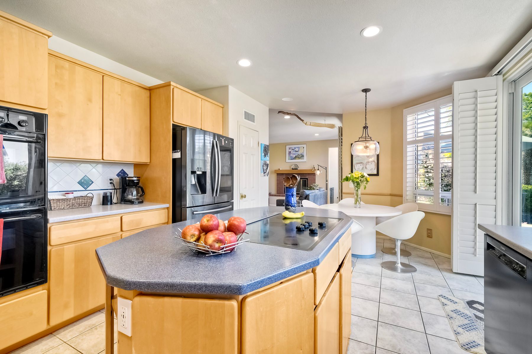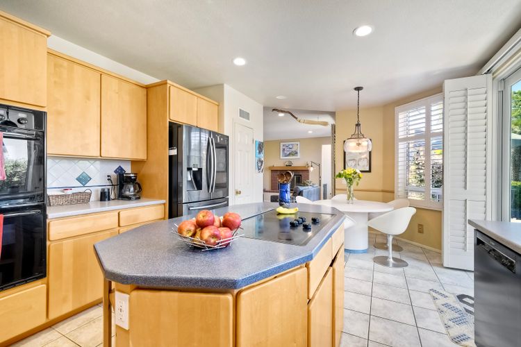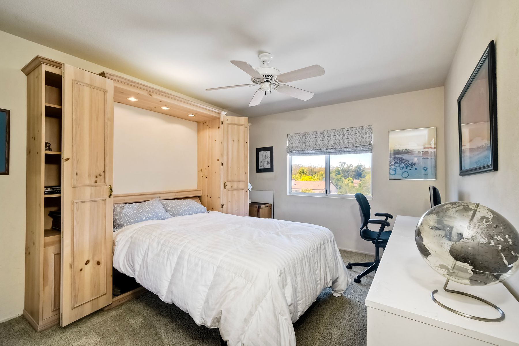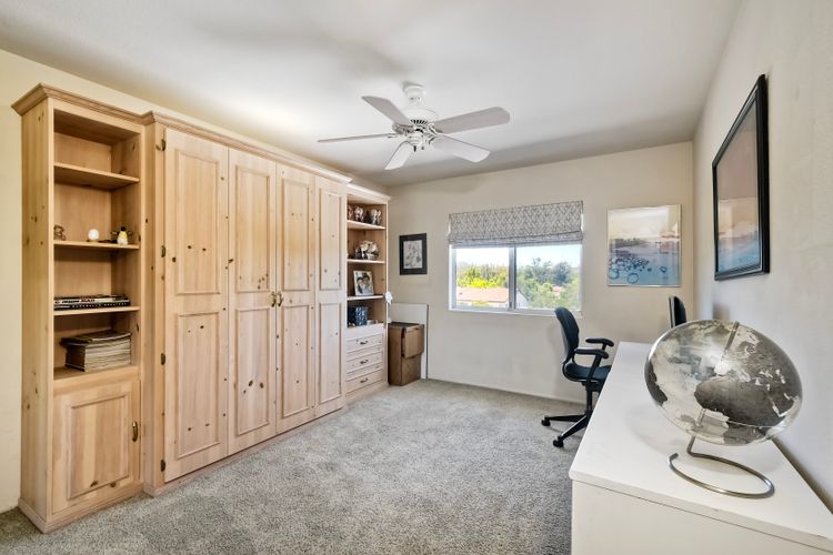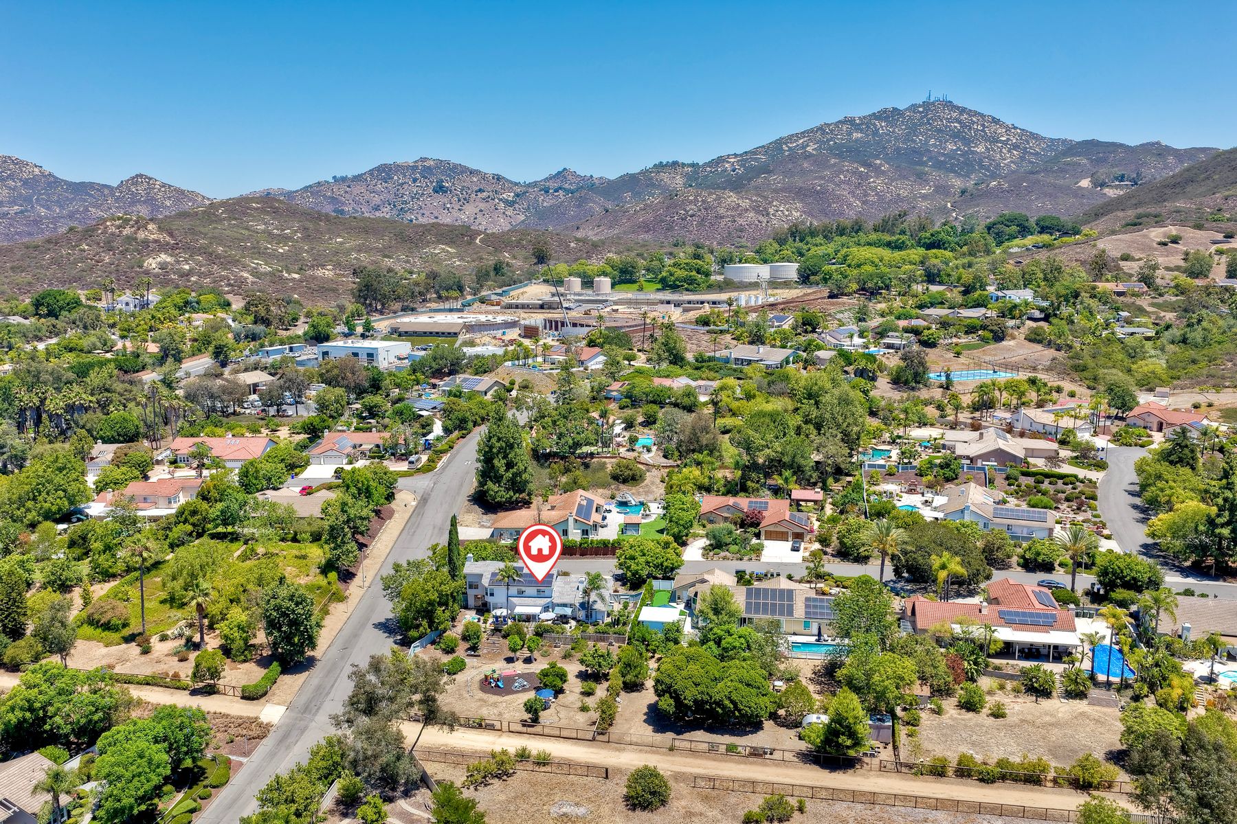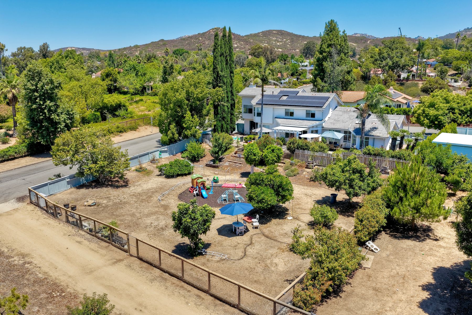 Amazing opportunity to live in this beautiful home in the heart of Bridlewood Lakeside. This stunning home has two full bedrooms and baths downstairs! Home features: fully paid for solar, beautiful cabinetry and corian counters, upgraded wood flooring, kitchen center island, large walk in pantry, vaulted ceilings, copper plumbing, reroofed in 2019, plantation shutters, roman blinds, ceiling fans, alarm system, plus more! Primary bath has large walk in closet, spacious soaking tub and separate shower, dual vanities, and great lighting. This nearly half acre property has amazing views (think 4th of July firework shows), large two tiered lot, multiple fruit trees, corner lot that is walking distance to Lake Poway and Poway High school. No Hoa or mello roos