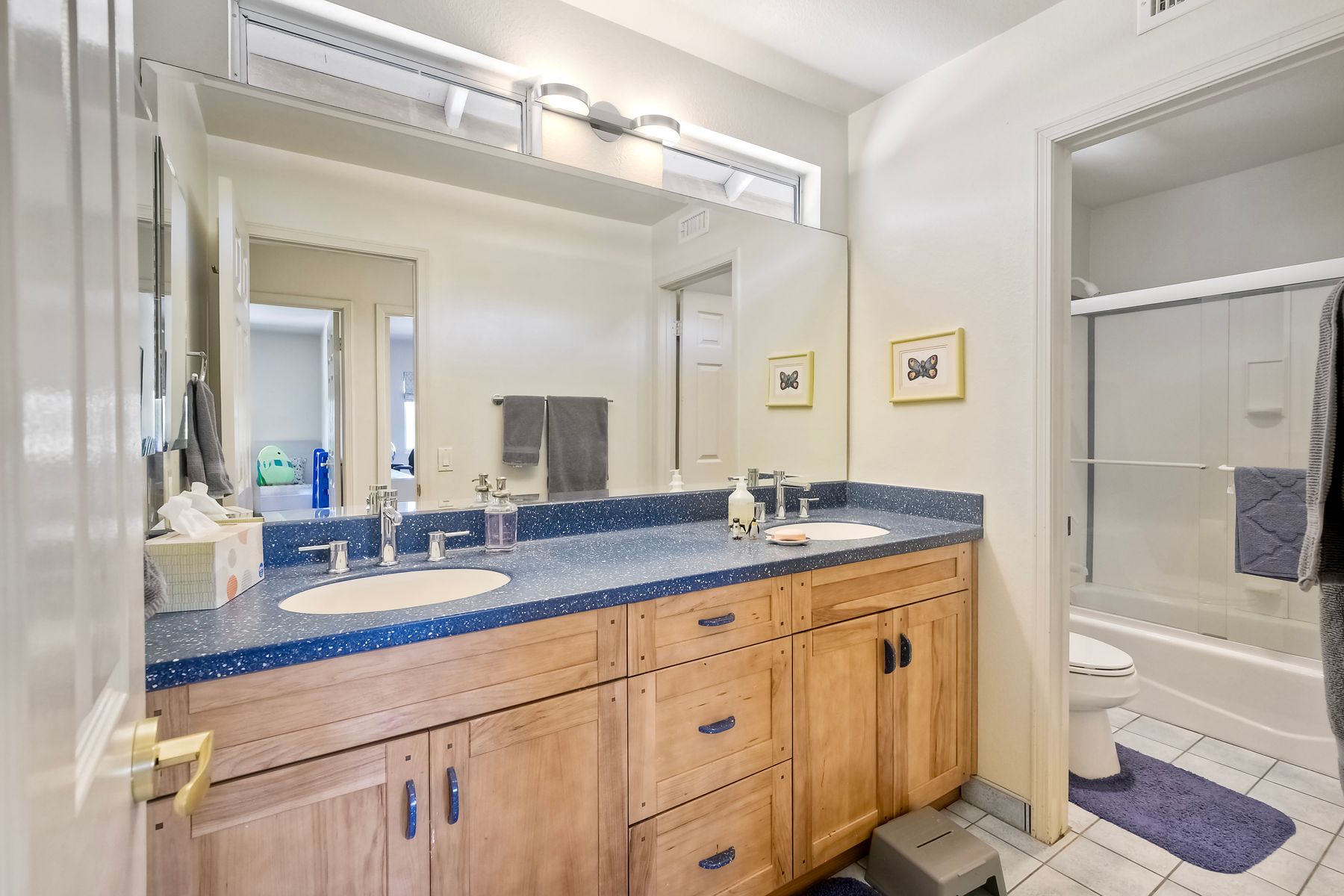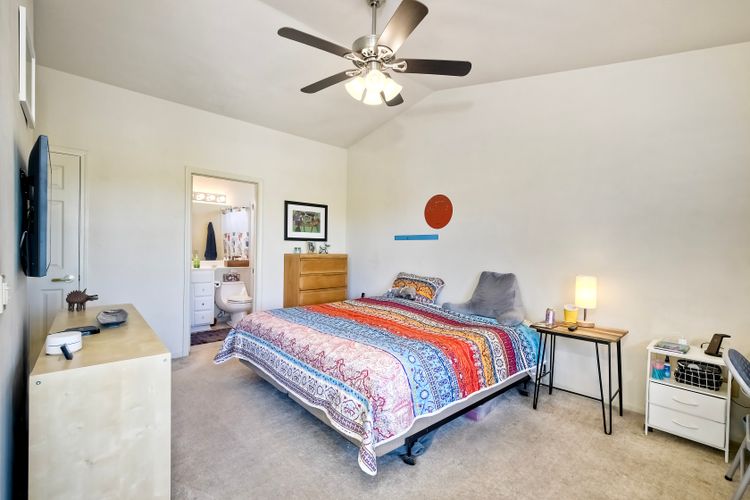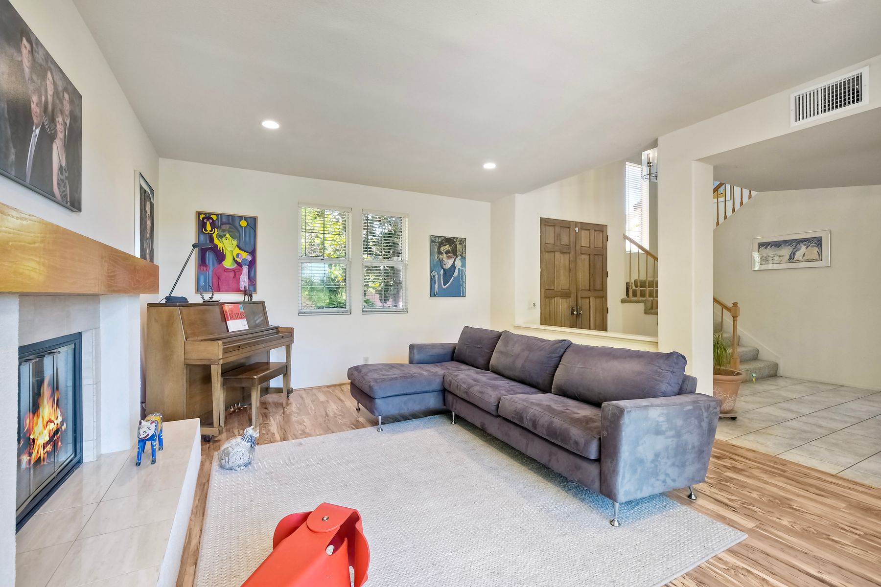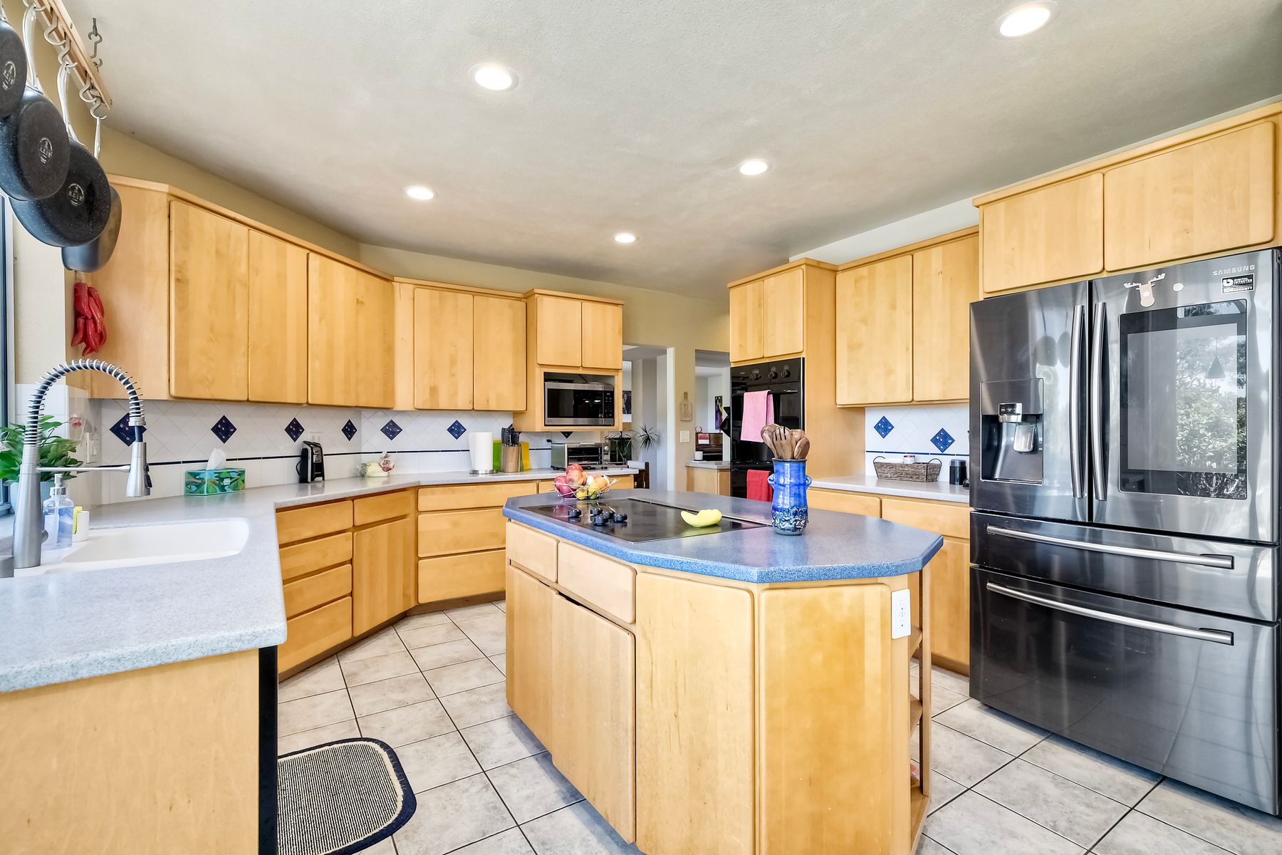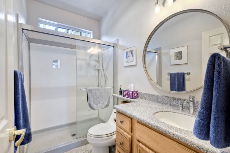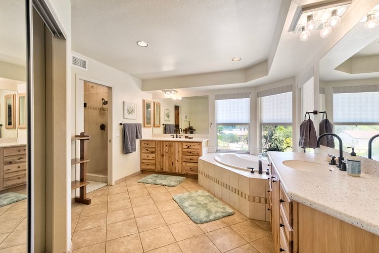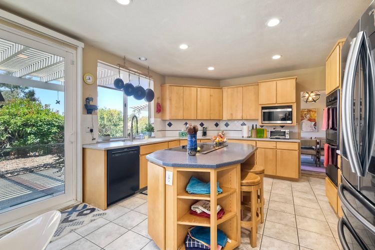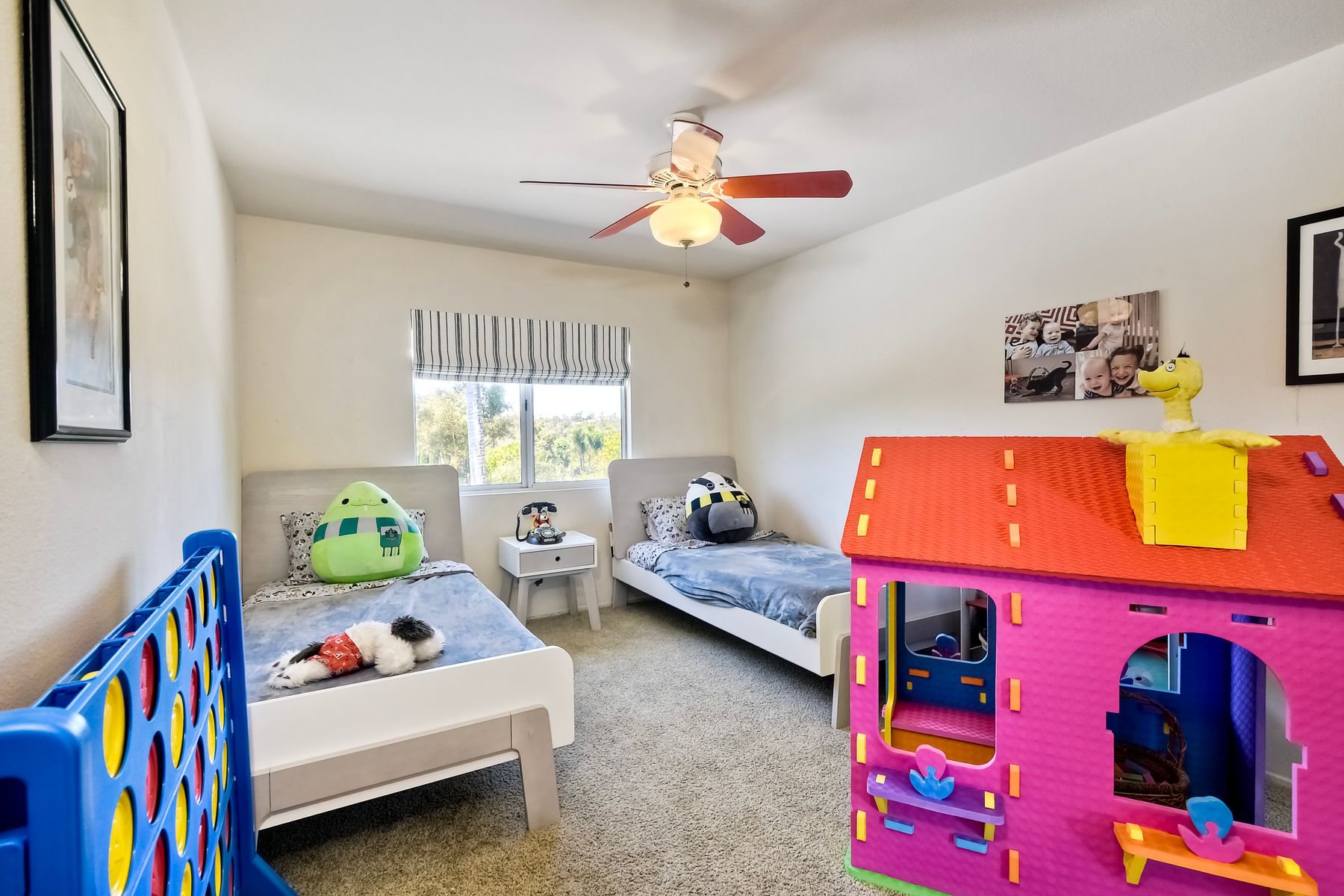 Amazing opportunity to live in this beautiful home in the heart of Bridlewood Lakeside. This stunning home has two full bedrooms and baths downstairs! Home features: fully paid for solar, beautiful cabinetry and corian counters, upgraded wood flooring, kitchen center island, large walk in pantry, vaulted ceilings, copper plumbing, reroofed in 2019, plantation shutters, roman blinds, ceiling fans, alarm system, plus more! Primary bath has large walk in closet, spacious soaking tub and separate shower, dual vanities, and great lighting. This nearly half acre property has amazing views (think 4th of July firework shows), large two tiered lot, multiple fruit trees, corner lot that is walking distance to Lake Poway and Poway High school. No Hoa or mello roos