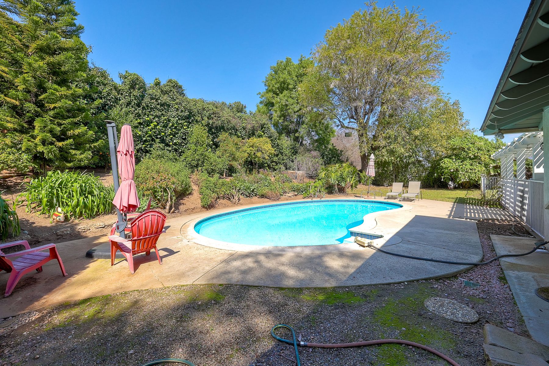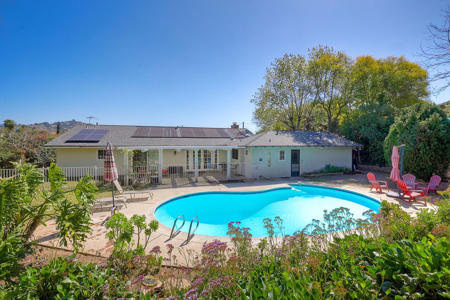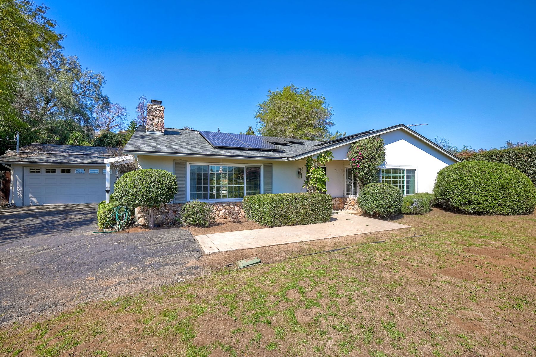 Welcome to this charming single-level home nestled at the end of a quiet cul-de-sac in the unincorporated area of Escondido, San Diego County. This spacious residence boasts 1,910 square feet of living space and sits on an expansive lot of over 15,000 square feet. Located in the highly sought-after LR Green School District, this home offers excellent educational opportunities for growing families. Step inside to discover a well-appointed interior featuring 3 bedrooms and 2.5 bathrooms, offering ample space for comfortable living. The heart of the home is the inviting living area, complete with a great fireplace, perfect for cozy evenings with family and friends. Enjoy the convenience of a newer HVAC system, ensuring year-round comfort. Outside, the property features a sparkling pool and an absolutely charming yard, providing a private oasis for enjoying the California sunshine. With paid solar panels, you can enjoy energy efficiency and lower utility bills. Don't miss the opportunity to make this beautiful home yours. Schedule a showing today!
