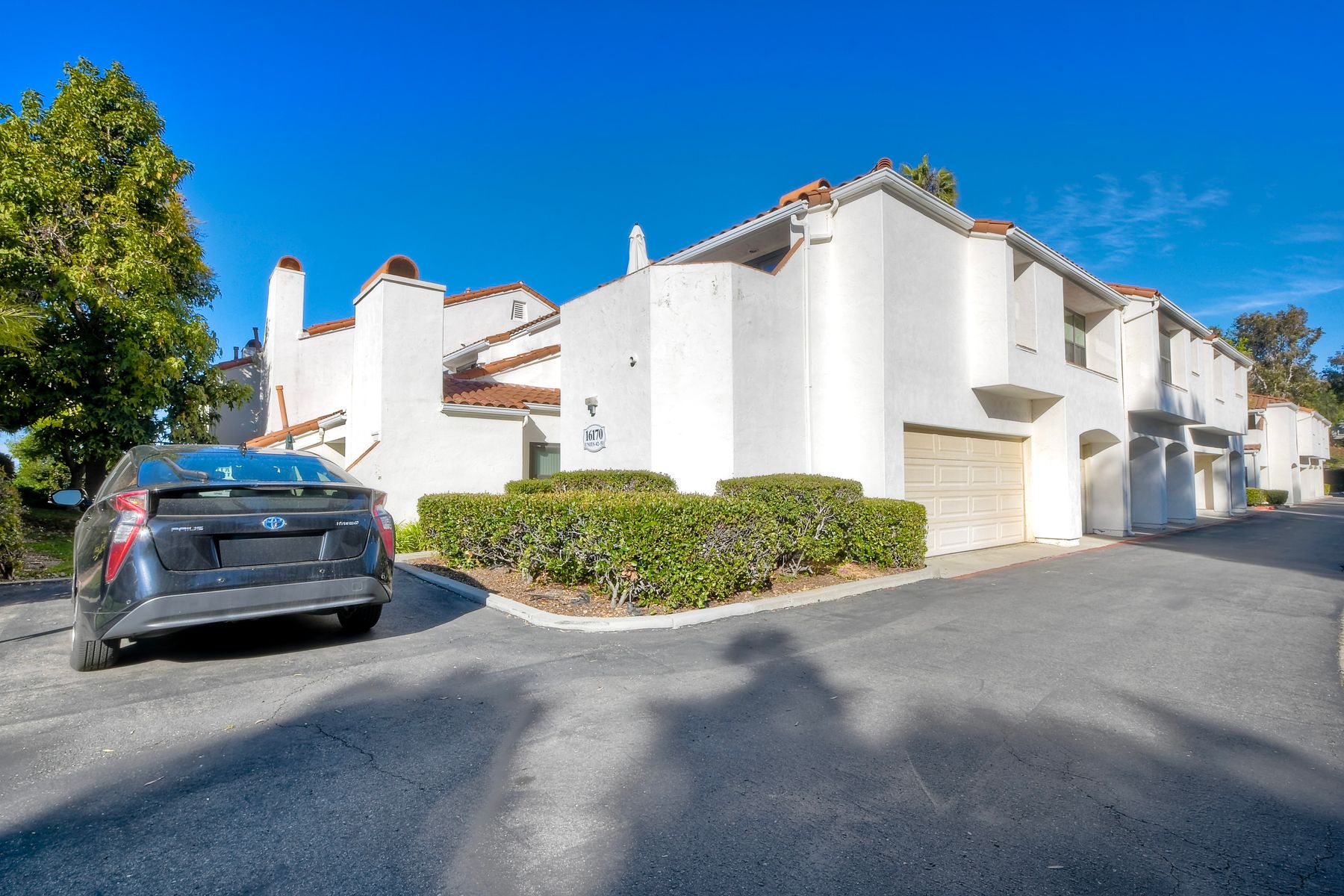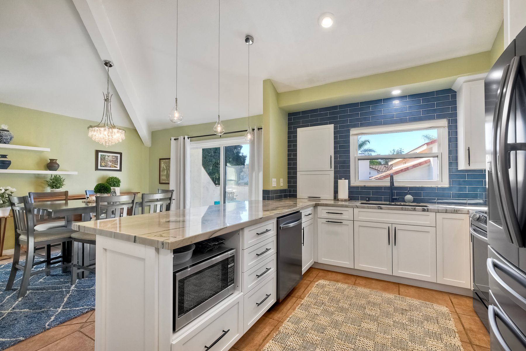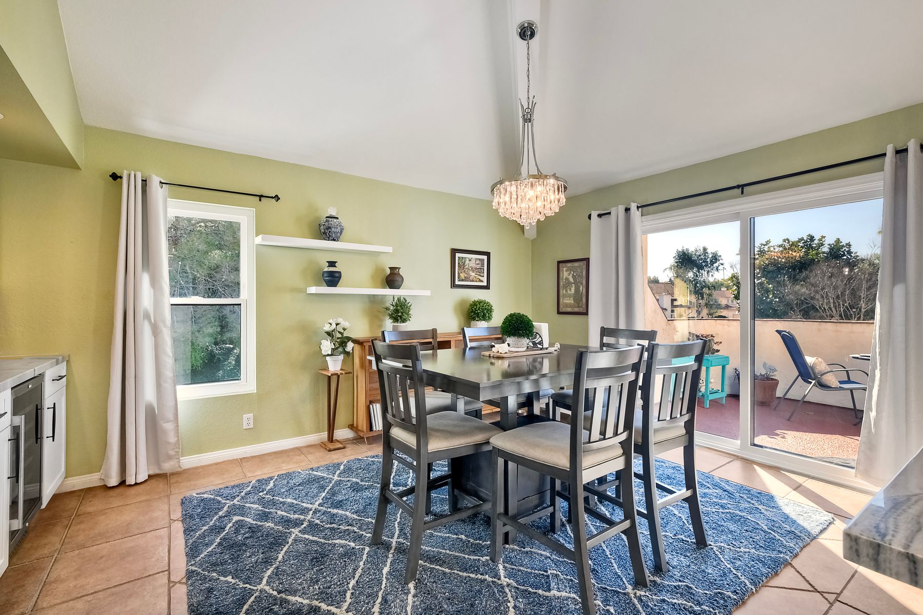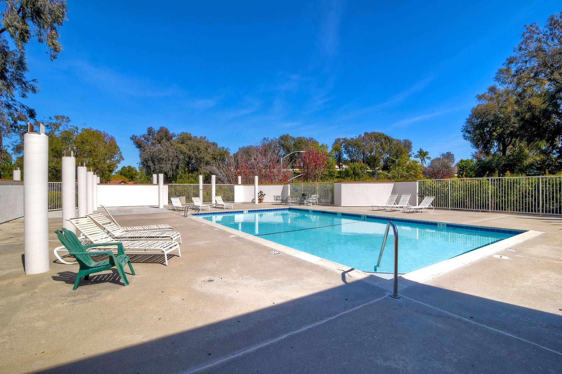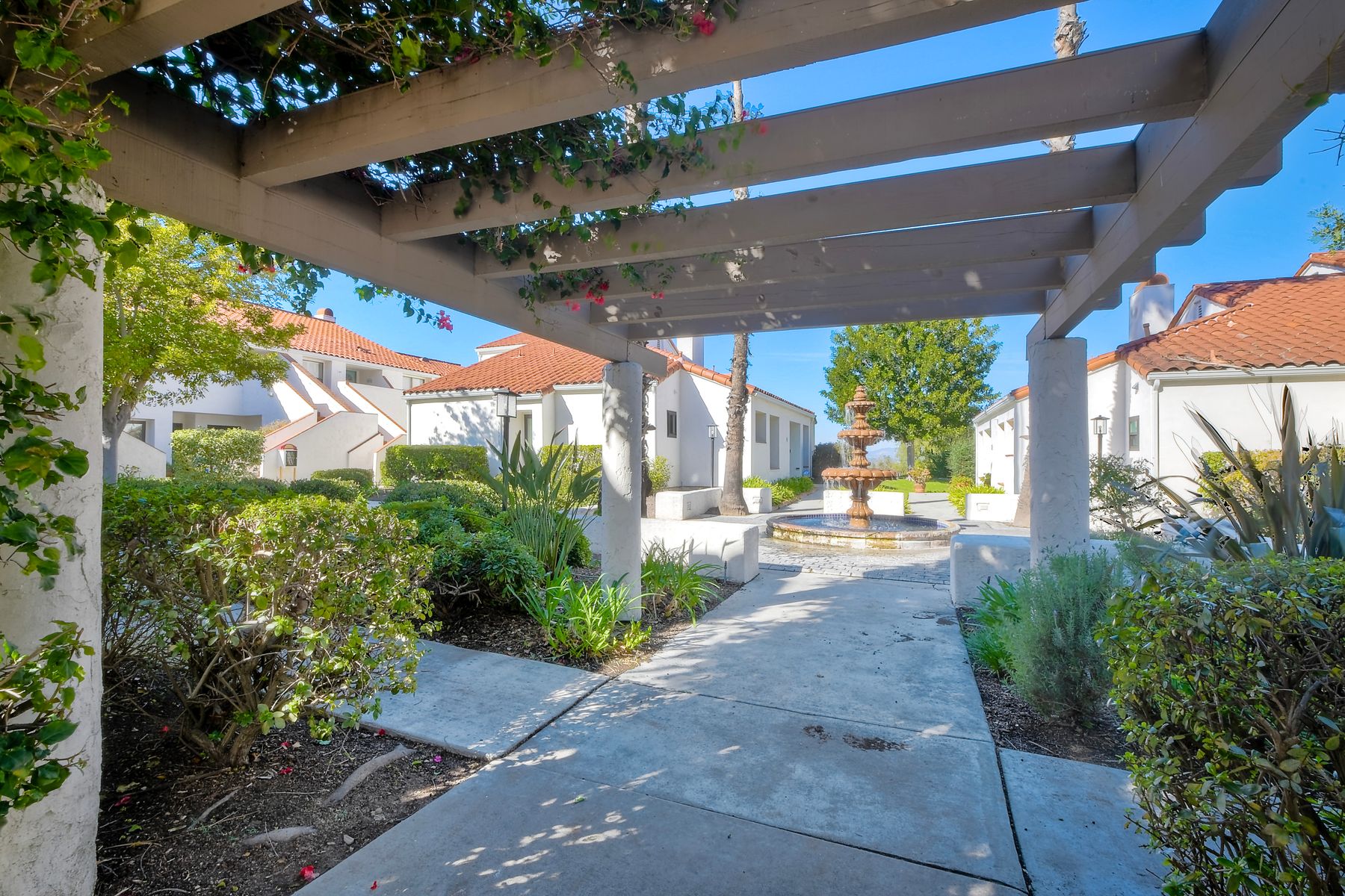 Stunning 3 bedroom, 2.5 bath condo in the coveted Rancho Bernardo gated community of Palazzo Bernardo. Walking past the fountain in the beautifully landscaped courtyard, up the private stairway to this corner unit, you reach the entry of this fabulously updated home. Entering the living room, you experience the light, open floor plan. The living rooms vaulted ceiling, vinyl plank flooring, large windows, statement tiled gas fireplace and easy flow to the dining room create a welcoming gathering place. The kitchen combines the vaulted ceiling, recessed lighting, stainless steel appliances, custom white cabinets, expansive back splash, peninsula seating for 4, pendant lighting and open shelving to compliment the dramatic Quartzite counter tops. The generous eat in area offers a beverage fridge, open shelving and sliding glass door to a private balcony. Walking through the double doors of the primary retreat you appreciate the calming colors, vinyl plank flooring, chandelier and sliding glass doors to another private balcony. The lovely bathroom has separate vanities complimented by framed mirrors, a walk in closet and exquisitely tiled shower. A list of amenities is attached so you can appreciate the scope of upgrades to this lovely home. HOA fee includes the communities private pool/jacuzzi and the Bernardo Heights Recreation Club with its incredible amenities. Includes fire and exterior insurance, gate, water, trash, insurance, common area and exterior building maintenance.