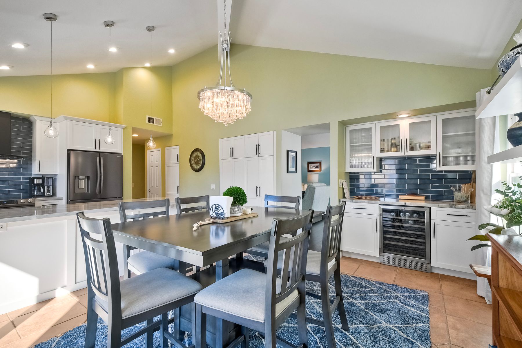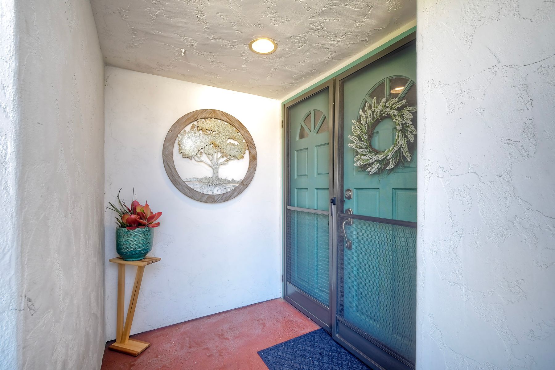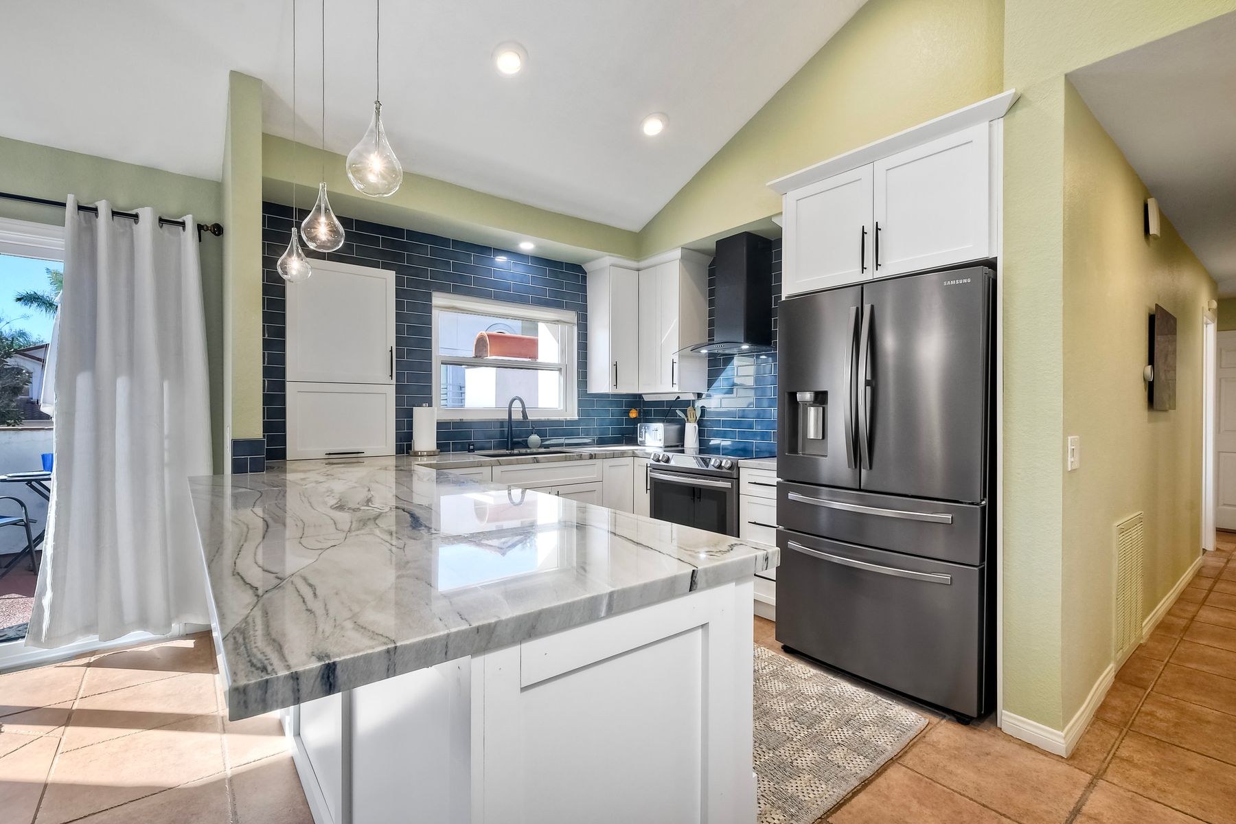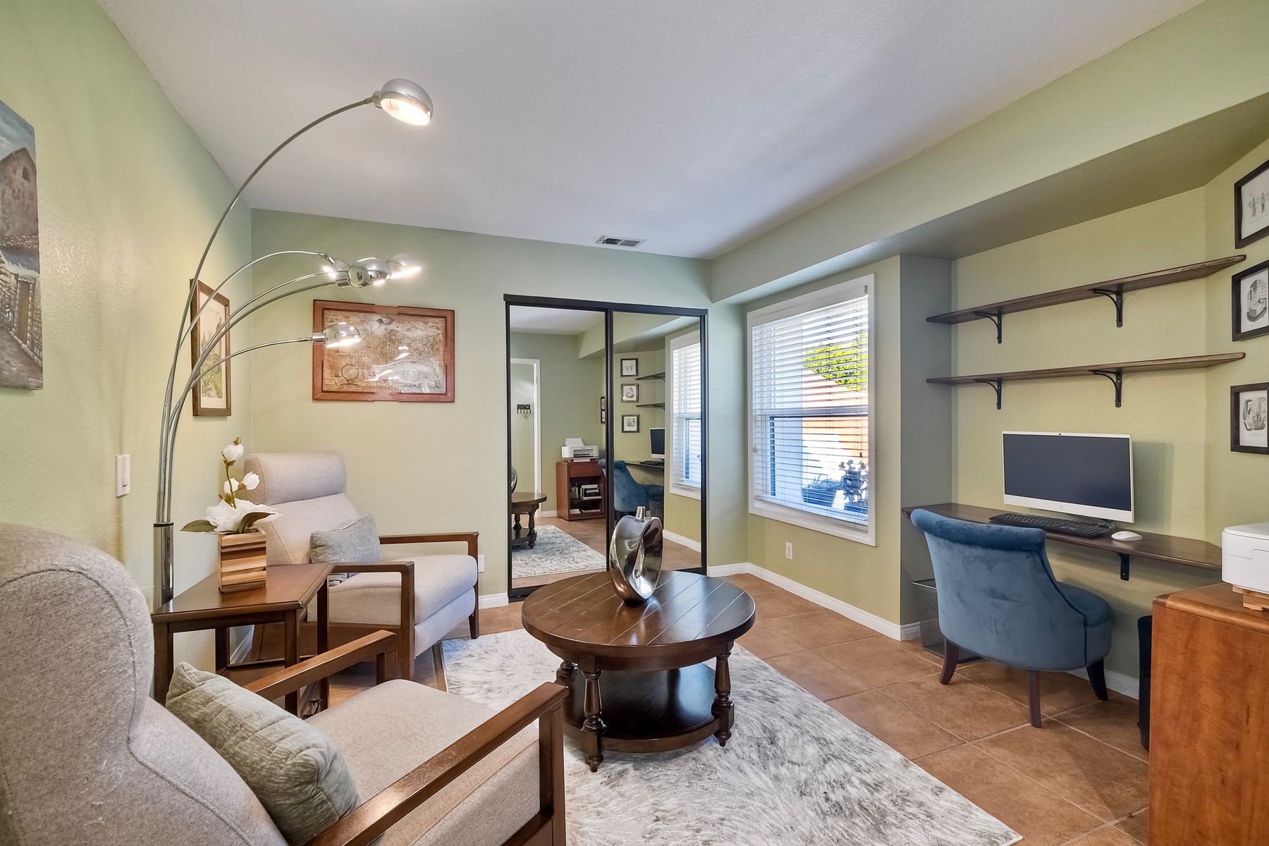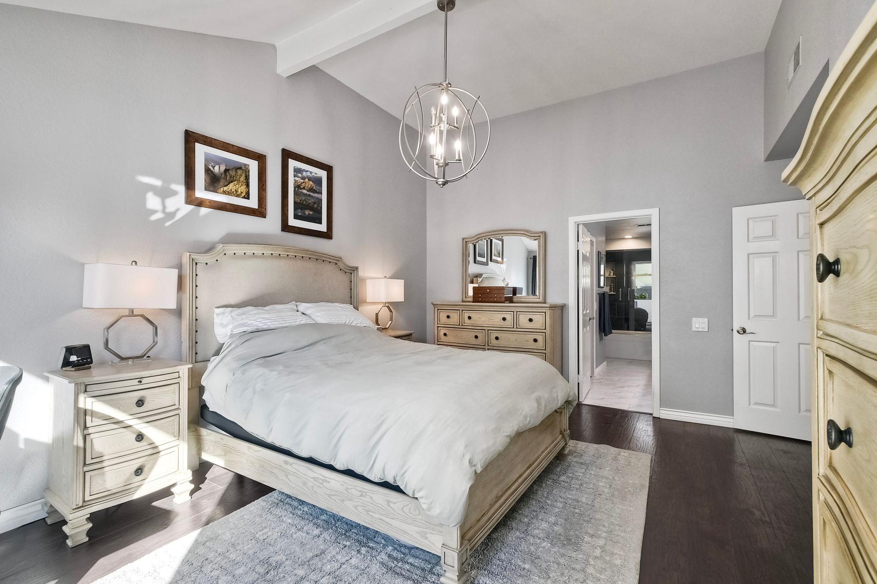 Stunning 3 bedroom, 2.5 bath condo in the coveted Rancho Bernardo gated community of Palazzo Bernardo. Walking past the fountain in the beautifully landscaped courtyard, up the private stairway to this corner unit, you reach the entry of this fabulously updated home. Entering the living room, you experience the light, open floor plan. The living rooms vaulted ceiling, vinyl plank flooring, large windows, statement tiled gas fireplace and easy flow to the dining room create a welcoming gathering place. The kitchen combines the vaulted ceiling, recessed lighting, stainless steel appliances, custom white cabinets, expansive back splash, peninsula seating for 4, pendant lighting and open shelving to compliment the dramatic Quartzite counter tops. The generous eat in area offers a beverage fridge, open shelving and sliding glass door to a private balcony. Walking through the double doors of the primary retreat you appreciate the calming colors, vinyl plank flooring, chandelier and sliding glass doors to another private balcony. The lovely bathroom has separate vanities complimented by framed mirrors, a walk in closet and exquisitely tiled shower. A list of amenities is attached so you can appreciate the scope of upgrades to this lovely home. HOA fee includes the communities private pool/jacuzzi and the Bernardo Heights Recreation Club with its incredible amenities. Includes fire and exterior insurance, gate, water, trash, insurance, common area and exterior building maintenance.