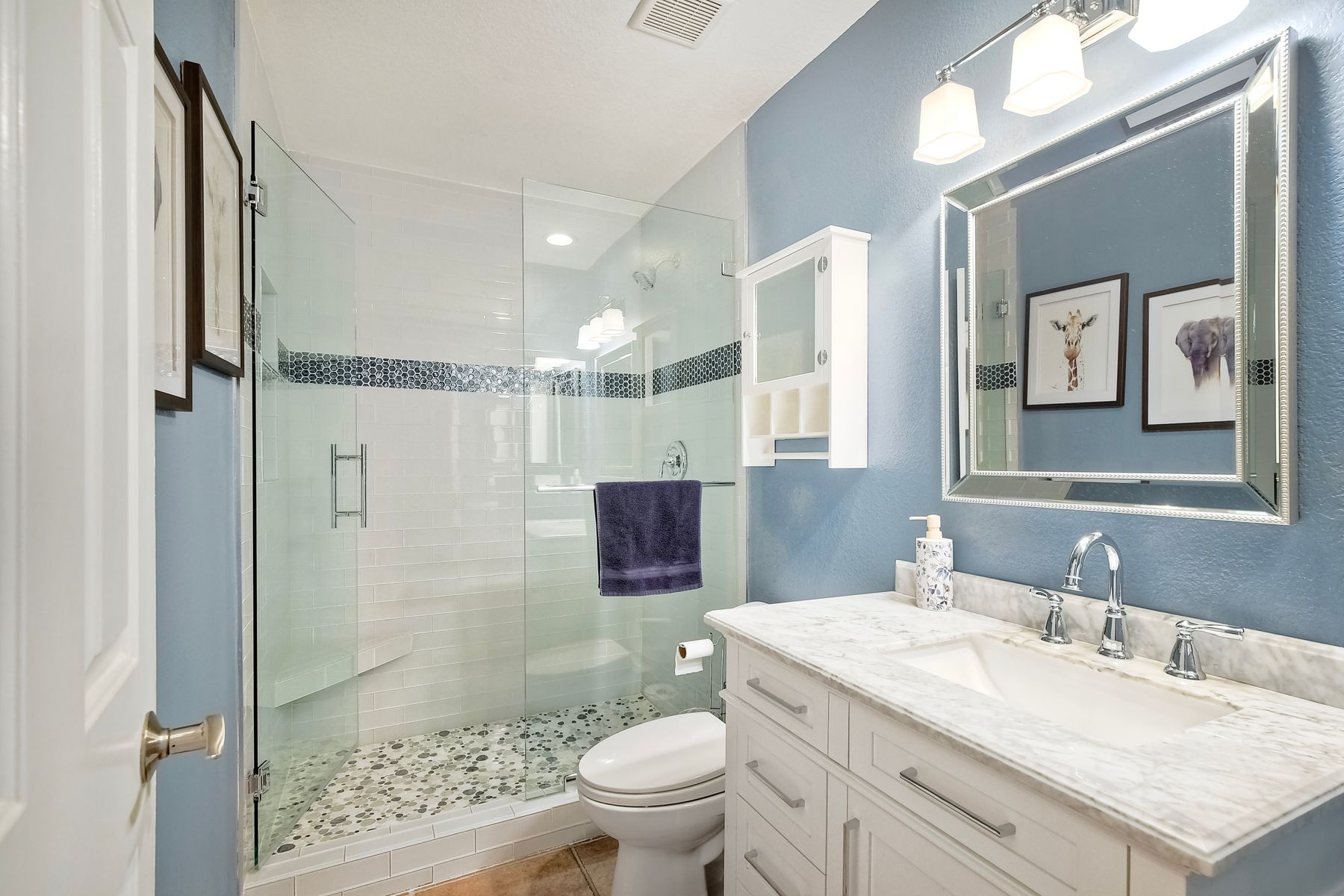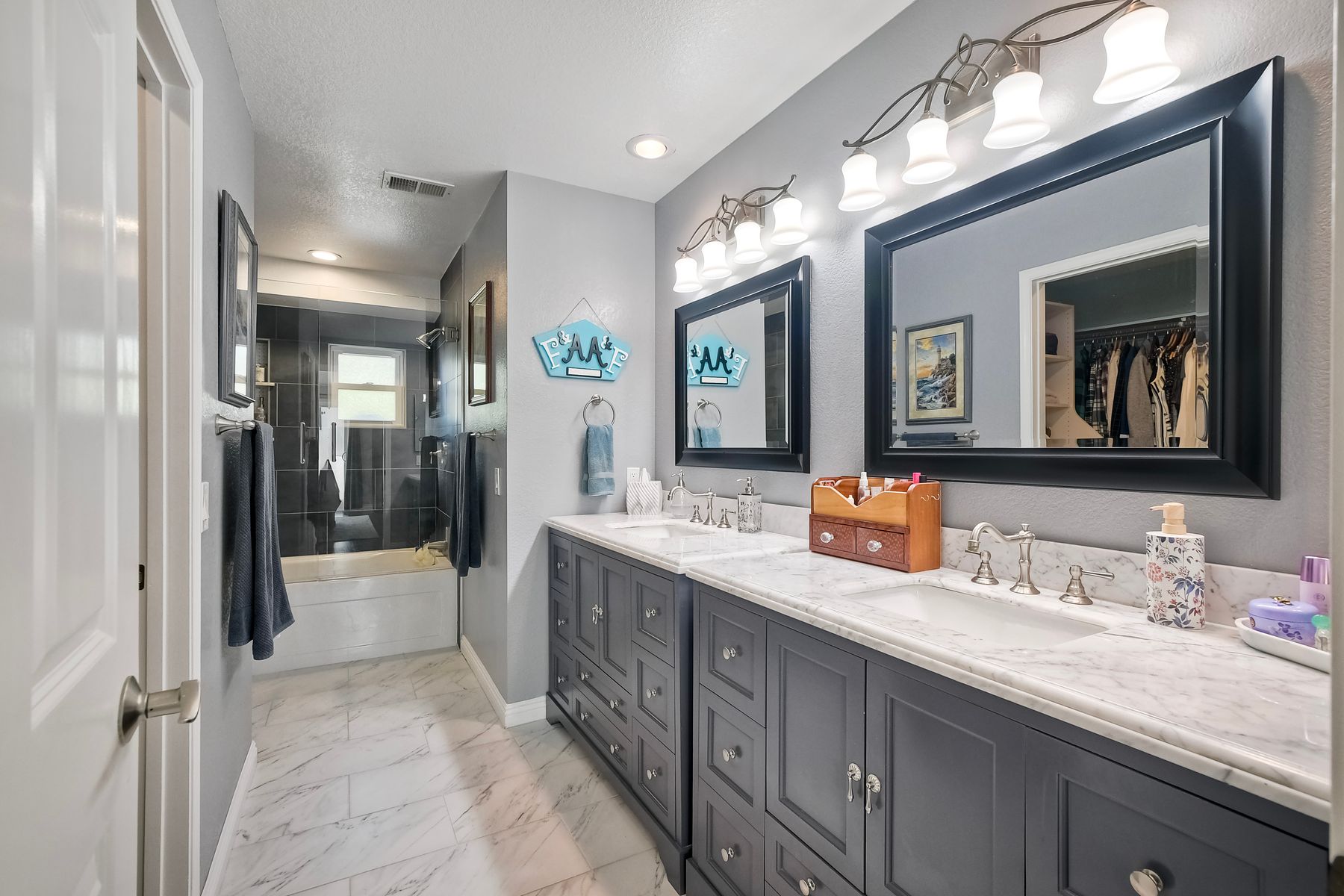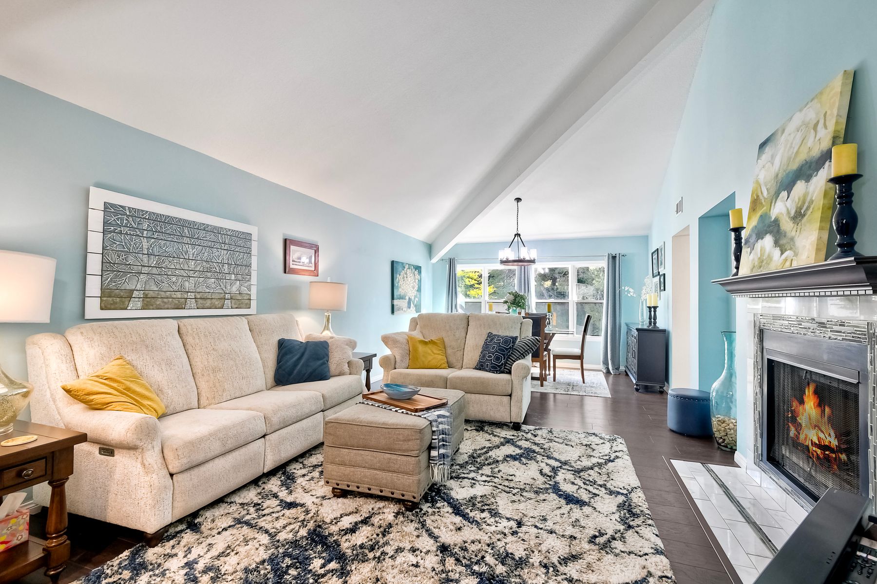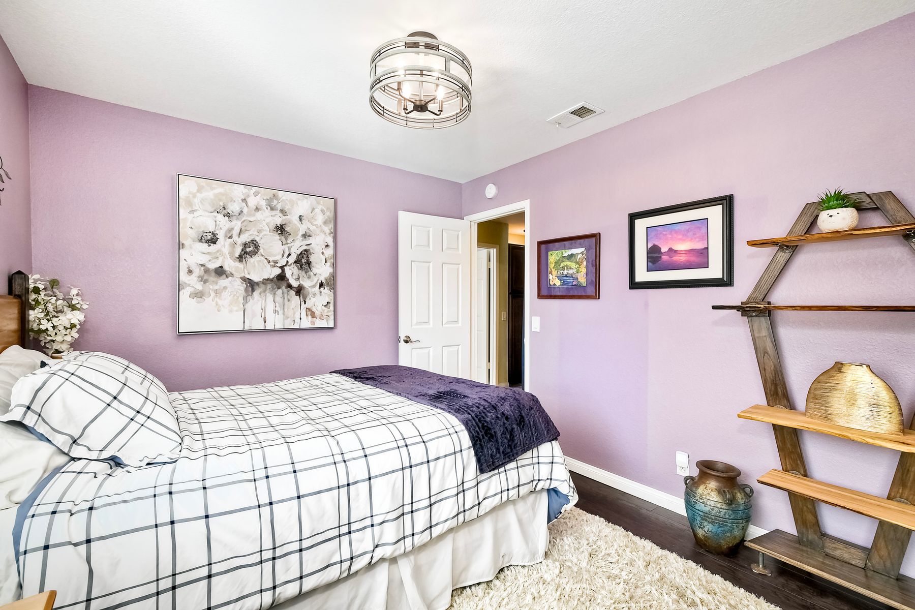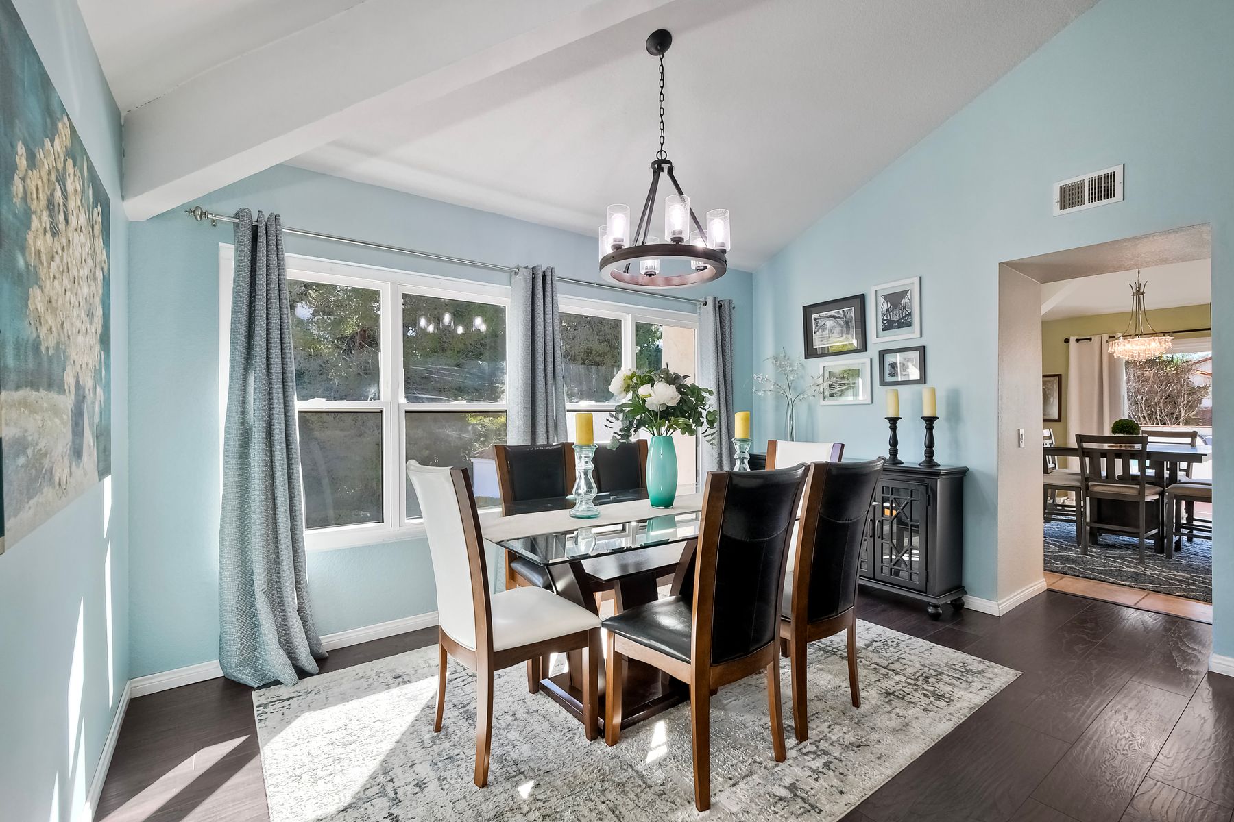 Stunning 3 bedroom, 2.5 bath condo in the coveted Rancho Bernardo gated community of Palazzo Bernardo. Walking past the fountain in the beautifully landscaped courtyard, up the private stairway to this corner unit, you reach the entry of this fabulously updated home. Entering the living room, you experience the light, open floor plan. The living rooms vaulted ceiling, vinyl plank flooring, large windows, statement tiled gas fireplace and easy flow to the dining room create a welcoming gathering place. The kitchen combines the vaulted ceiling, recessed lighting, stainless steel appliances, custom white cabinets, expansive back splash, peninsula seating for 4, pendant lighting and open shelving to compliment the dramatic Quartzite counter tops. The generous eat in area offers a beverage fridge, open shelving and sliding glass door to a private balcony. Walking through the double doors of the primary retreat you appreciate the calming colors, vinyl plank flooring, chandelier and sliding glass doors to another private balcony. The lovely bathroom has separate vanities complimented by framed mirrors, a walk in closet and exquisitely tiled shower. A list of amenities is attached so you can appreciate the scope of upgrades to this lovely home. HOA fee includes the communities private pool/jacuzzi and the Bernardo Heights Recreation Club with its incredible amenities. Includes fire and exterior insurance, gate, water, trash, insurance, common area and exterior building maintenance.