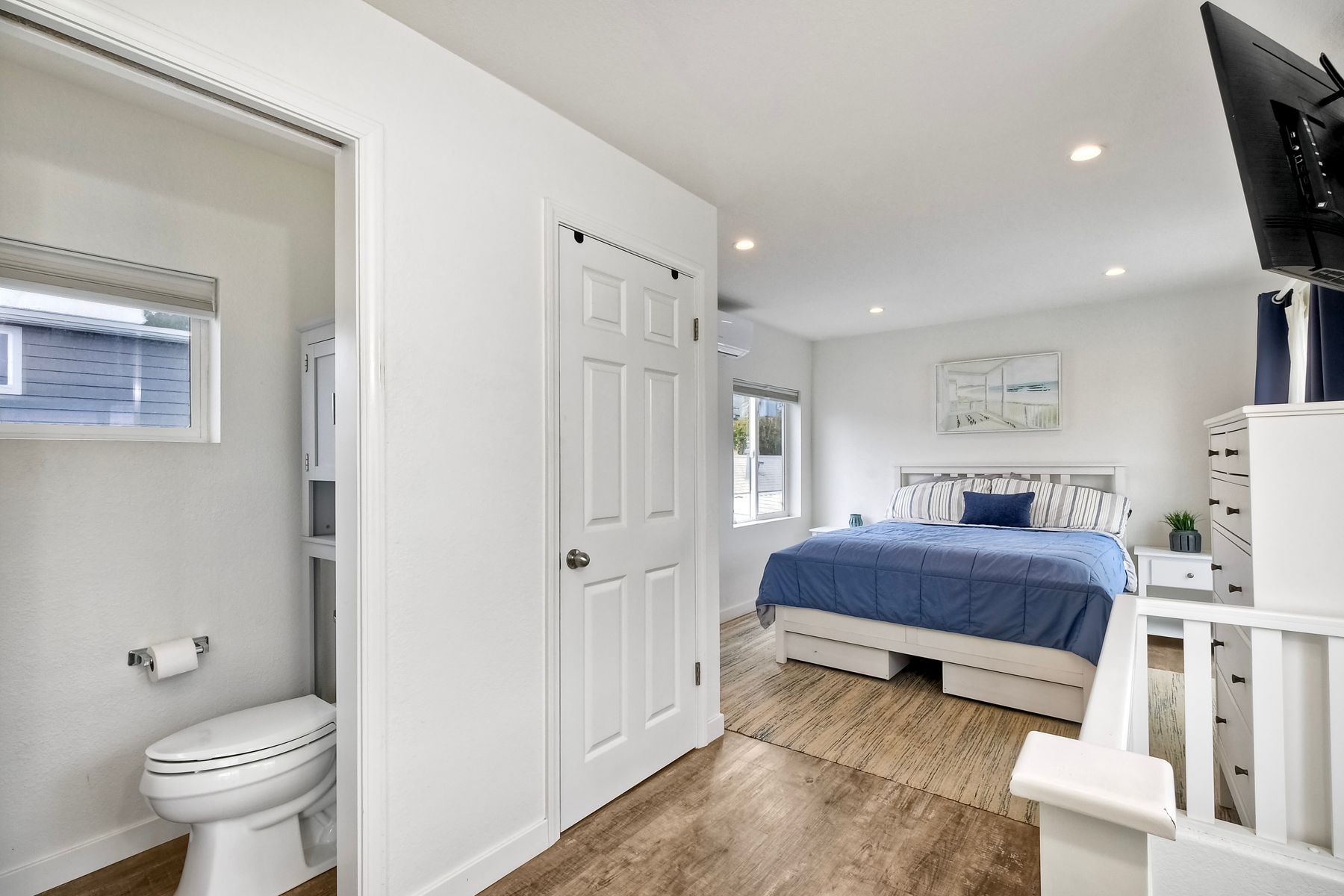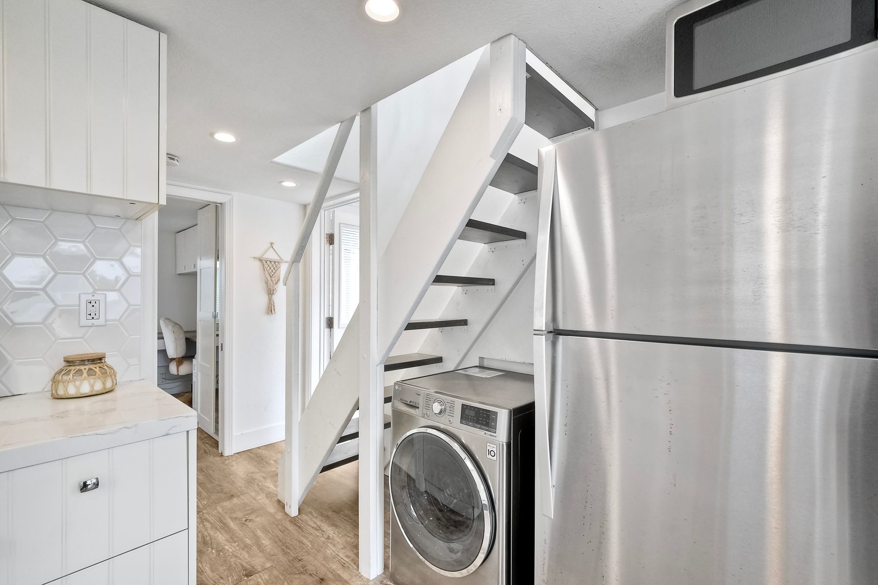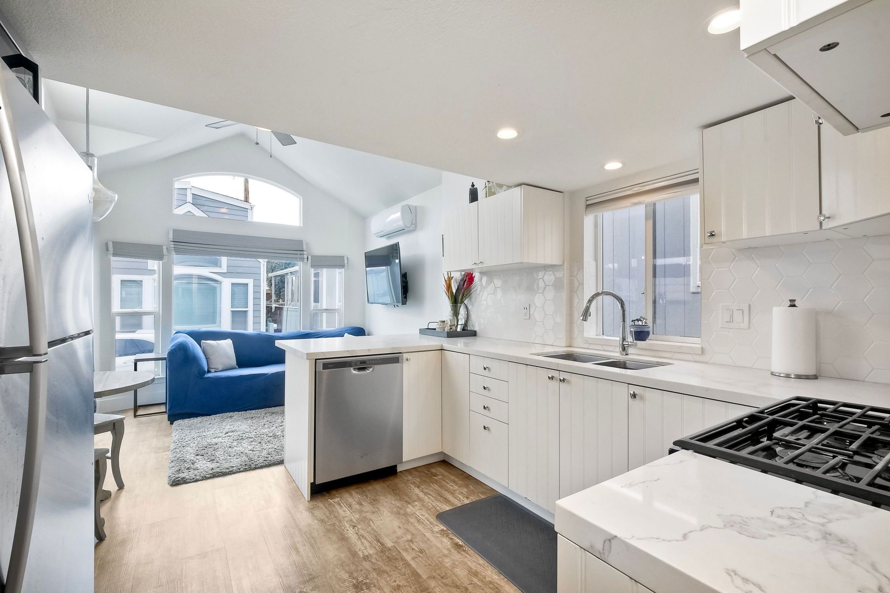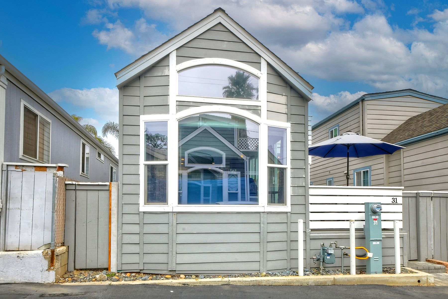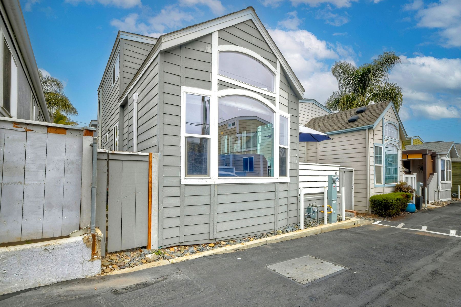 This is definitely a one-of-a-kind home! Nestled amongst multi-million dollar homes and just a few blocks to the beach, this home is something extra special! With lots of light, neutral colors and updates throughout. This home boasts 2 bed/1.5bath, air-conditioning, a large porch downstairs as well as a deck off upstairs bedroom which is extra spacious and offers a 1/2 bath. With lots of storage and fully fenced, this is just a GEM! Walking distance to shopping, restaurants, coffee shops, surf shops, breweries and all that Leucadia has to offer! NO traditional property tax or HOA and rentals are allowed so this could be perfect spot for a primary, vacation, or investment home. Space lease $2,200/month.