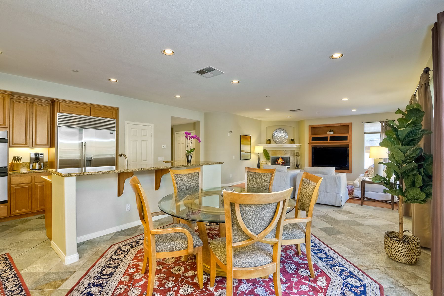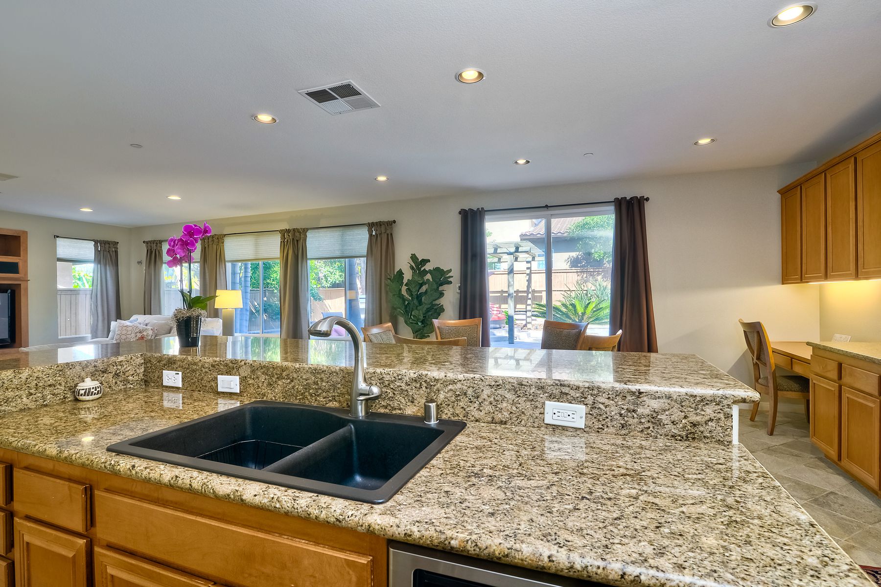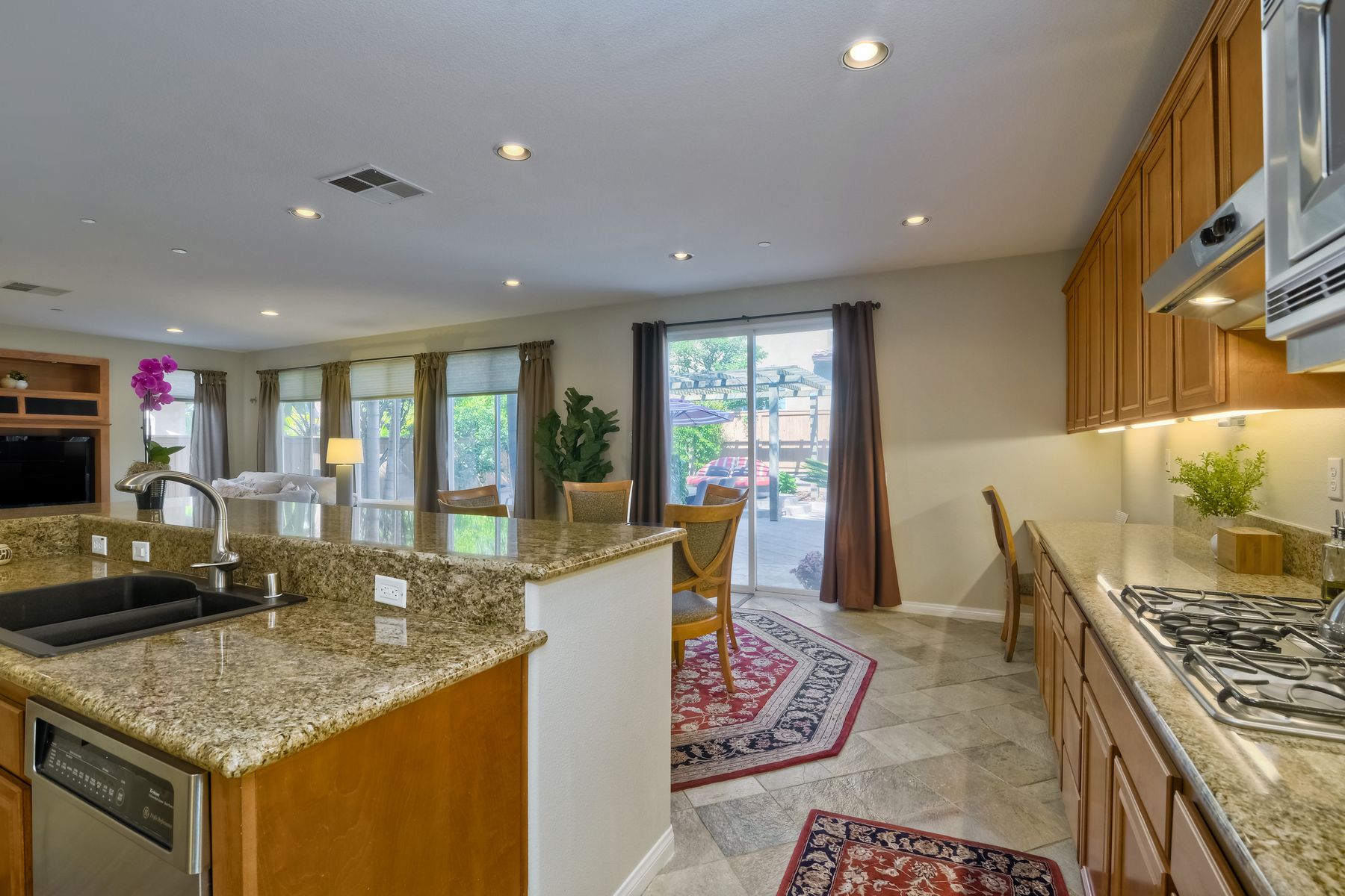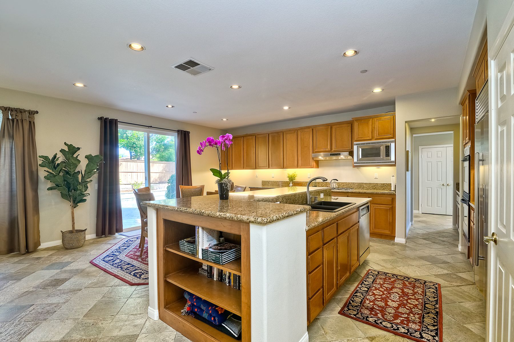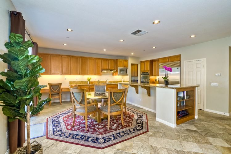 Granite Counters, Kitchen Island, Cathedral-Vaulted Ceiling, Kitchen Open to Family Rm