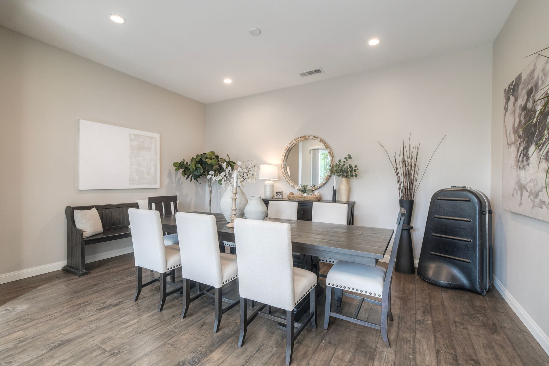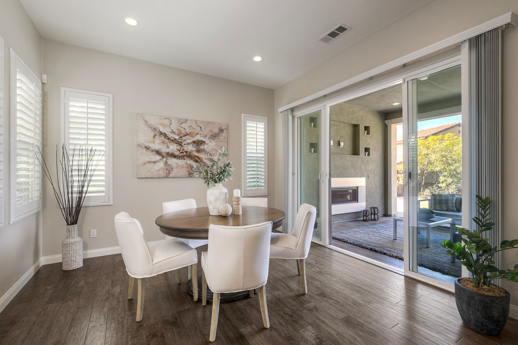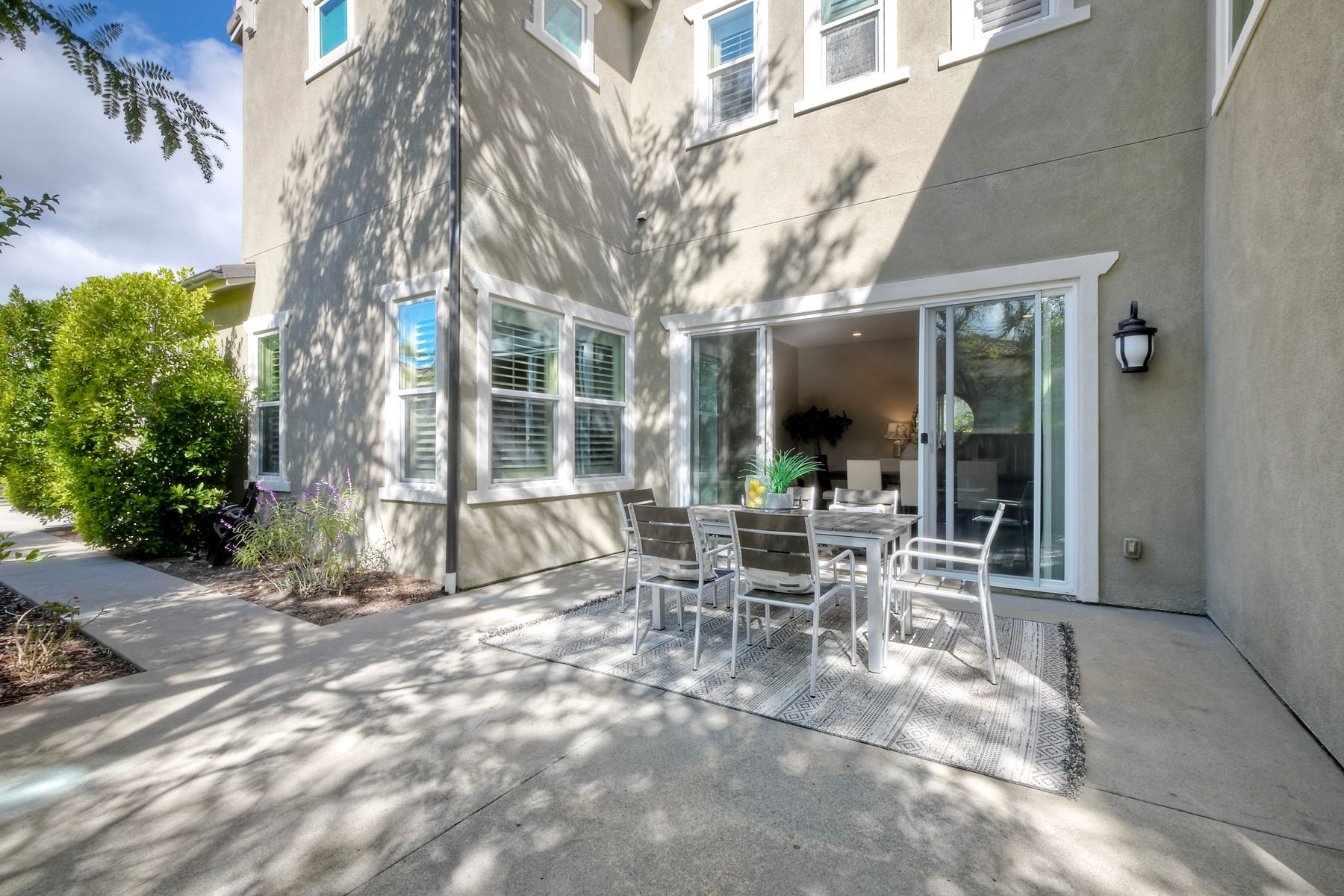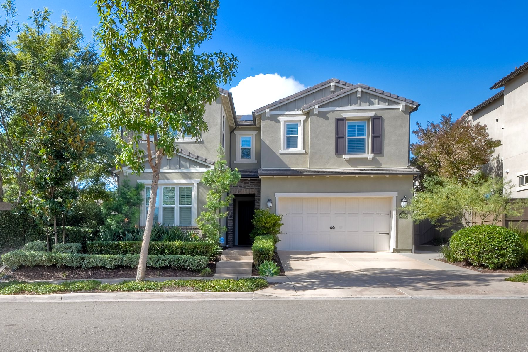 Welcome home! This beautifully designed home in Del Sur community offers an inviting blend of open-concept living and timeless style. The heart of the home is the stunning kitchen, complete with granite countertops, ample cabinetry, and a large island that flows effortlessly into the living room with custom built-ins and engineered hardwood floors. A spacious formal dining room sets the stage for memorable gatherings—and just beyond, an outdoor dining space creates seamless indoor-outdoor living, perfect for San Diego evenings. A convenient main-floor bedroom and full bath add flexibility for guests or multigenerational living. Step inside to appreciate the soaring 10-foot ceilings on the main level and 9-foot ceilings upstairs, creating a bright and airy feel throughout. The upper level includes a versatile loft, a generous primary suite retreat with a spa-inspired ensuite, and an additional bedroom featuring its own private bath. Set on one of the largest lots in the community, the backyard is designed for effortless entertaining and everyday relaxation. With owned solar for energy efficiency and a prime location within highly rated school districts—close to parks, shopping, dining, and freeway access—this home perfectly balances style, space, and convenience.
