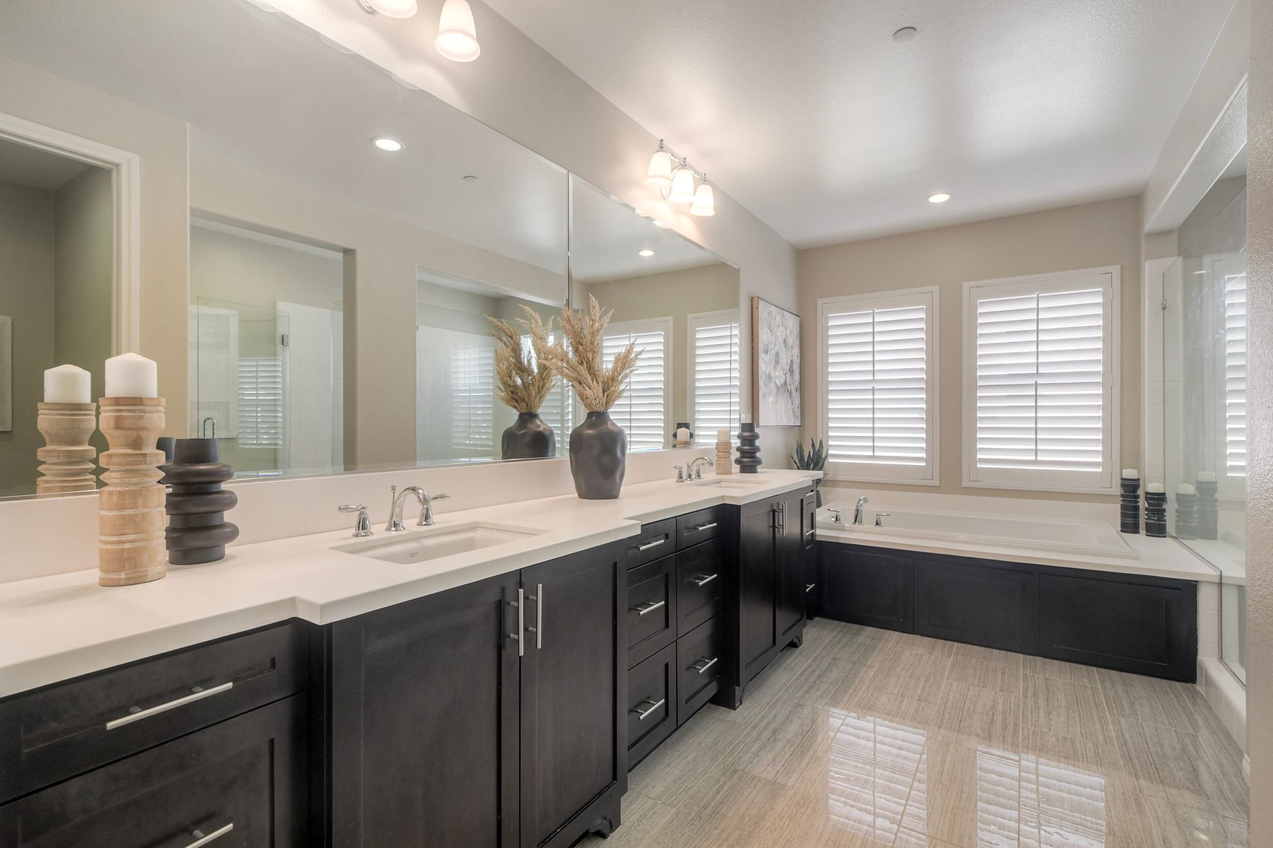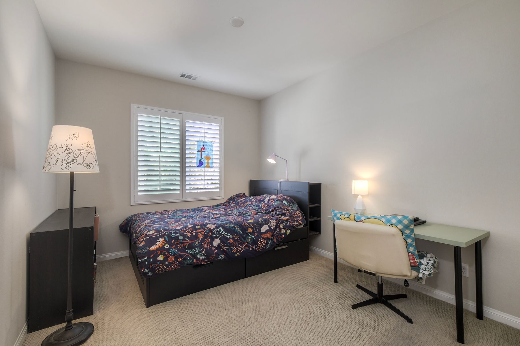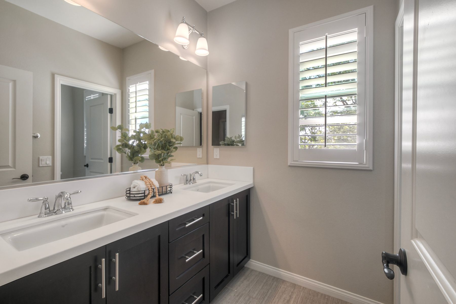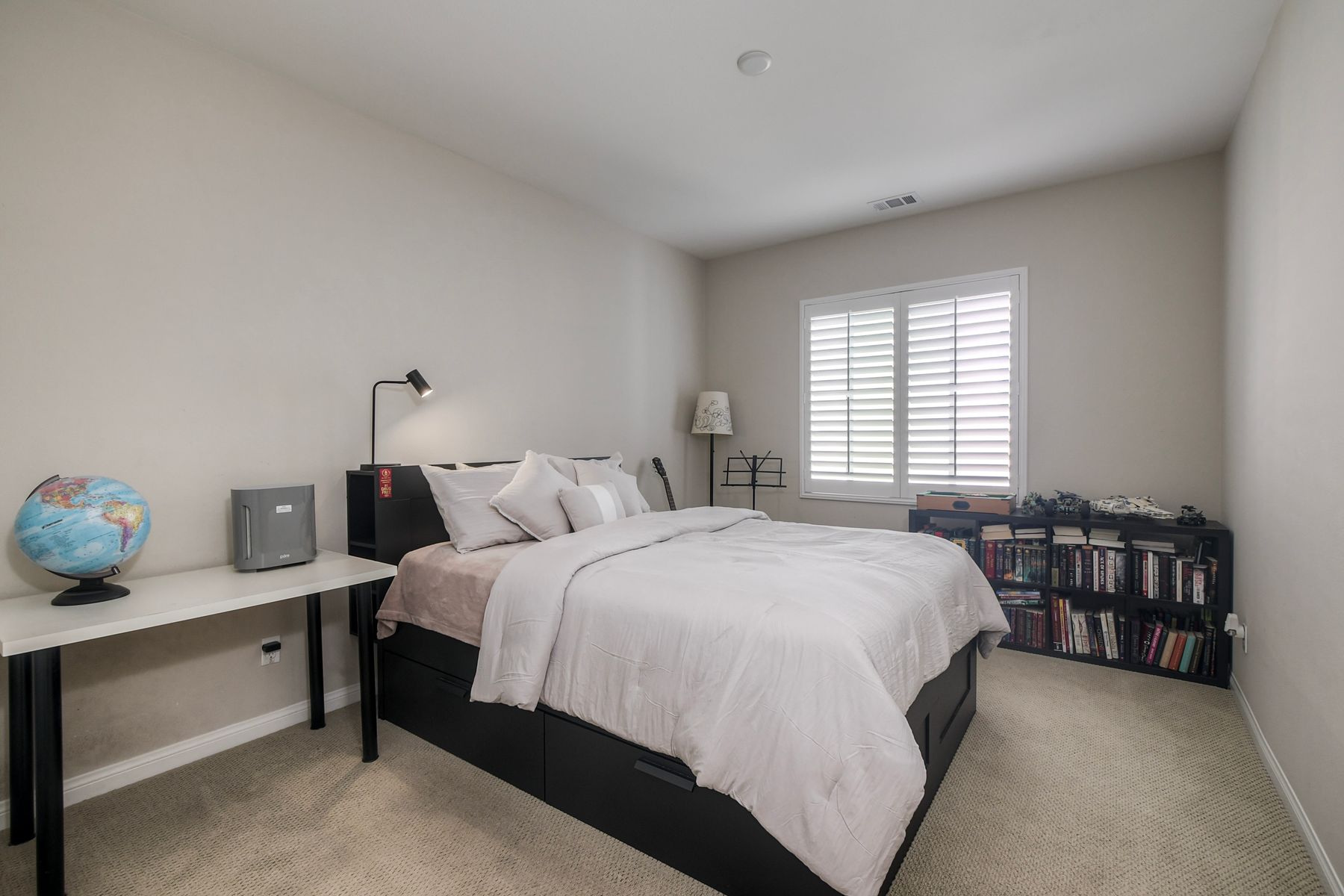 Welcome home! This beautifully designed home in Del Sur community offers an inviting blend of open-concept living and timeless style. The heart of the home is the stunning kitchen, complete with granite countertops, ample cabinetry, and a large island that flows effortlessly into the living room with custom built-ins and engineered hardwood floors. A spacious formal dining room sets the stage for memorable gatherings—and just beyond, an outdoor dining space creates seamless indoor-outdoor living, perfect for San Diego evenings. A convenient main-floor bedroom and full bath add flexibility for guests or multigenerational living. Step inside to appreciate the soaring 10-foot ceilings on the main level and 9-foot ceilings upstairs, creating a bright and airy feel throughout. The upper level includes a versatile loft, a generous primary suite retreat with a spa-inspired ensuite, and an additional bedroom featuring its own private bath. Set on one of the largest lots in the community, the backyard is designed for effortless entertaining and everyday relaxation. With owned solar for energy efficiency and a prime location within highly rated school districts—close to parks, shopping, dining, and freeway access—this home perfectly balances style, space, and convenience.
