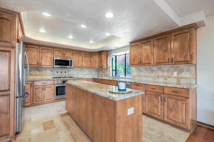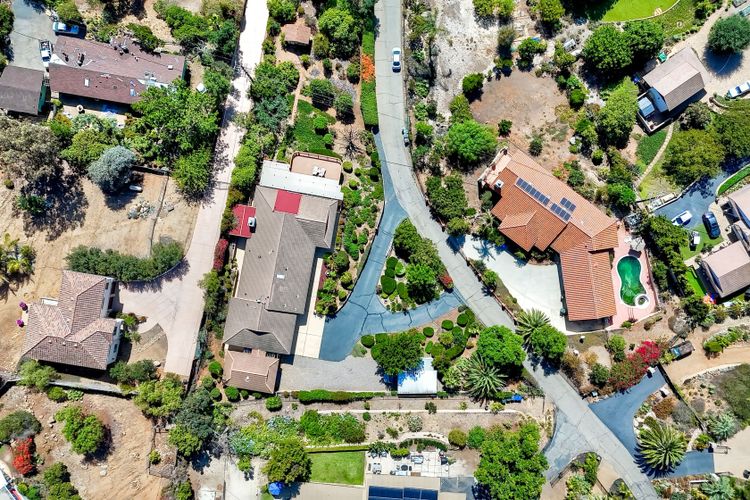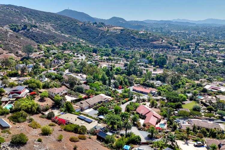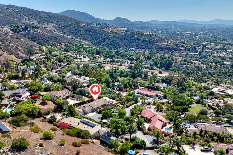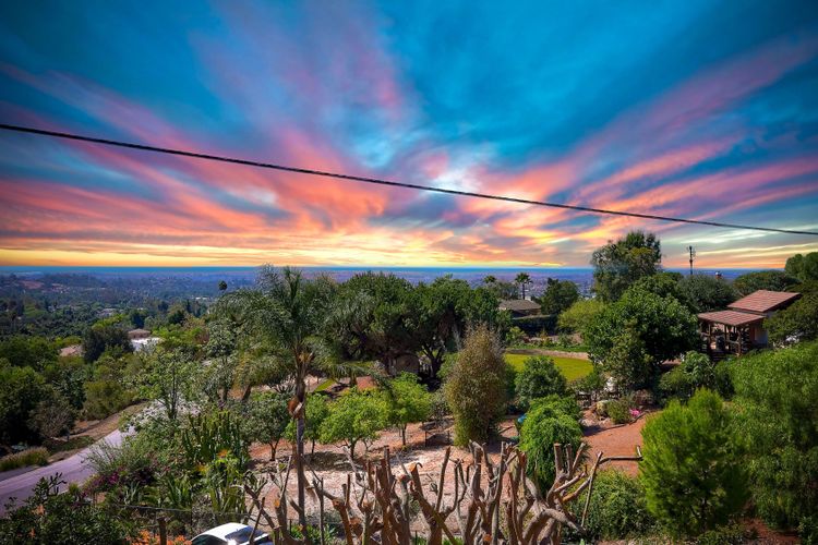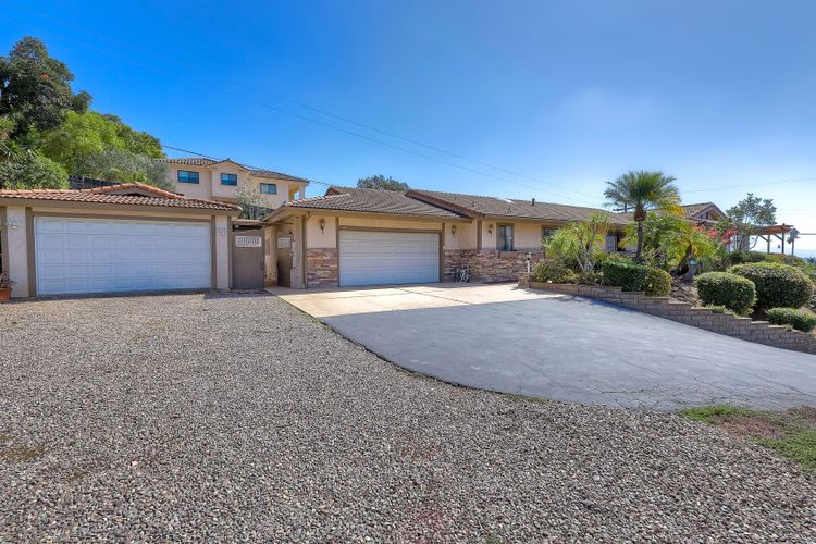 Welcome to your private hilltop retreat in Vista’s scenic Elevado Hills! Tucked away on the shared private road of Aloha Lane, this beautifully landscaped property offers nearly one acre of fully fenced land with dual gated entry for easy ingress & egress. Enjoy breathtaking panoramic views of the ocean, mountains, valleys, city lights, sunsets, & seasonal fireworks from the expansive ~1,250 sq. ft. custom view deck—an entertainer’s dream! The deck flows effortlessly from the spacious living room with a wet bar, fireplace-warmed dining room, & an open-concept kitchen featuring an island & walk-in pantry. This sprawling single-story ranch home features 3 bedrooms in the main residence, including 2 with direct bathroom access, & a 4th private bedroom & full bath located off the back side of the attached 2-car garage—ideal for guests, home office, or multigenerational living. A second detached 2-car garage/workshop, complete with air compressor, is perfect for hobbyists or car enthusiasts The lush, mature landscaping includes citrus trees, macadamia nut trees, & more, creating a peaceful, park-like setting with room to grow. Located in one of Vista’s most sought-after neighborhoods, you’re just minutes from Moonlight Amphitheater, excellent dining, shopping, & wineries, golf courses, hiking, & beaches, plus quick access to highways 76, 78, 5, & 15. Recent upgrades include mostly newer plumbing, brand new septic tanks, Section 1 termite clearance, & available property inspections & seller disclosures for peace of mind. This is more than a home—it’s a lifestyle. Come experience the magic of Elevado Hills!