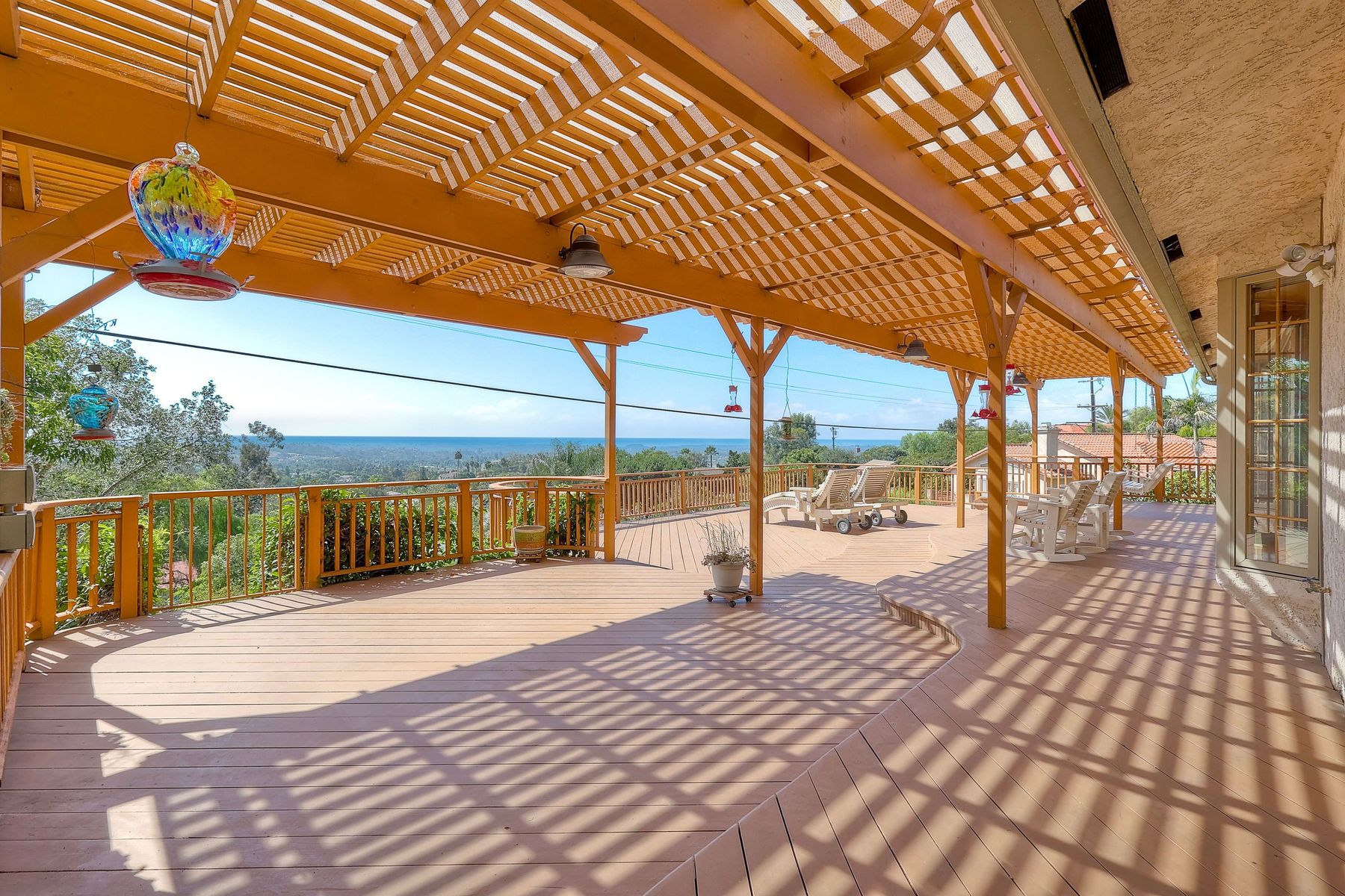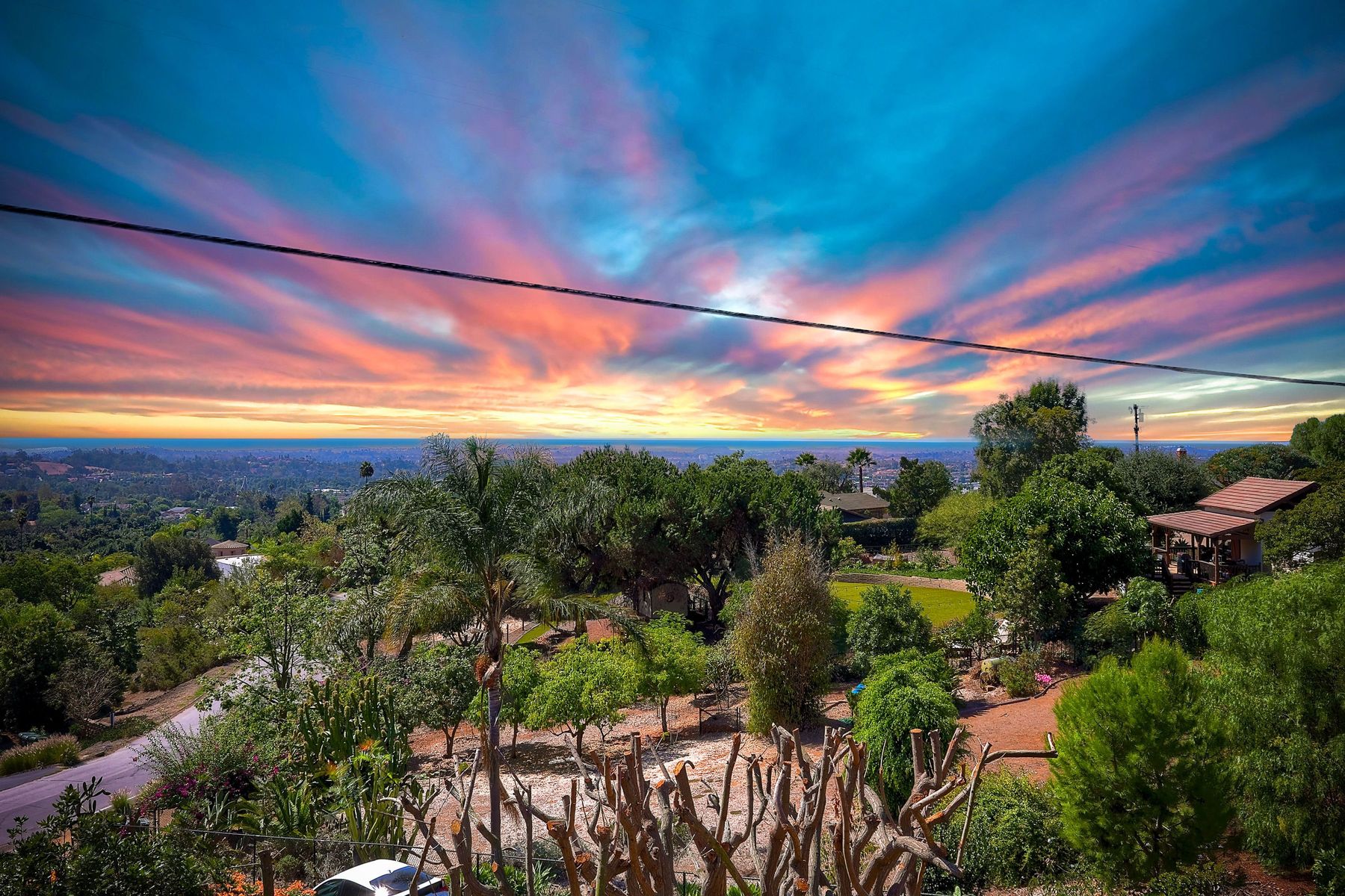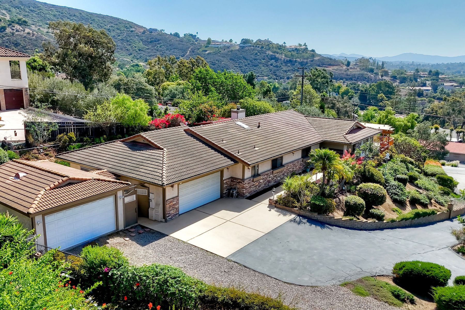 Welcome to your private hilltop retreat in Vista’s scenic Elevado Hills! Seller willing to do 1 point (1%) rate buydown to help lower Buyer's monthly mortgage payment. Full interior walls just professionally painted white & old drapes & valences removed. 2 new septic tanks installed with septic certifications & Section 1 Termite Clearance ready to go! Over $20k in new plumbing done! Tucked away on the shared private road of Aloha Lane, this beautifully landscaped property offers nearly one acre of fully fenced land with dual gated entry for easy ingress & egress. Enjoy breathtaking panoramic views of the ocean, mountains, valleys, city lights, sunsets, & seasonal fireworks from the expansive ~1,250 sq. ft. custom view deck—an entertainer’s dream! The deck flows effortlessly from the spacious living room with a wet bar, fireplace-warmed dining room, & an open-concept kitchen featuring an island & walk-in pantry. This sprawling single-story ranch home features 3 bedrooms in the main residence, including 2 with direct bathroom access, & a 4th private bedroom & full bath located off the back side of the attached 2-car garage—ideal for guests, home office, or multigenerational living. A second detached 2-car garage/workshop, complete with air compressor, is perfect for hobbyists or car enthusiasts The lush, mature landscaping includes citrus trees, macadamia nut trees, & more, creating a peaceful, park-like setting with room to grow. Located in one of Vista’s most sought-after neighborhoods, you’re just minutes from Moonlight Amphitheater, excellent dining, shopping, & wineries, golf courses, hiking, & beaches, plus quick access to highways 76, 78, 5, & 15. Available property inspections & seller disclosures for peace of mind. This is more than a home—it’s a lifestyle. Come experience the magic of Elevado Hills!