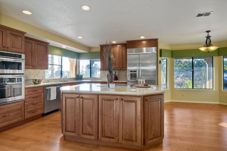 Don't miss this one story ranch style home on half acre with westerly views. Spacious rooms. Master bedrm has retreat with upgraded bathrm that includes walk in shower, soaking tub, dual sinks & walk in closet. Kitchen has been remodeled to include granite counters, lots of storage, island with cooktop, travertine backsplash, recessed lighting, nook & custom fridge conveys. Brand new roof installed May 2019. Office has French doors, built in bookcase/shelving but could be converted to a 4th bedrm. RV/Boat parking & toys allowed. Lots of natural light throughout the home. Plantation shutters & crown moulding installed throughout the property. Second full bathroom has been updated with granite counters, dual sinks, flooring & lighting. French doors lead from family room to large outdoor patio with cover & built in BBQ. Great for entertaining. Backyard boasts pear, plum, 3 lemon, 2 orange, lime & fig trees. Gazebo offers views, large side yard. Two A/C units with separate controls. ADT alarm system installed in 2019 & owned. 3 car garage with new doors & workshop area. Close to Brengle Terrace Park, Moonlight Theatre, new Sprouts, shopping, schools, golf courses, gyms, Dr's offices & hospital. About 20 miles to ocean. Easy access to 5, 15 & 78 freeways.. Neighborhoods: Vista Tract 77-36 Equipment: Garage Door Opener, Washer Other Fees: 0 Sewer: Sewer Connected Topography: LL