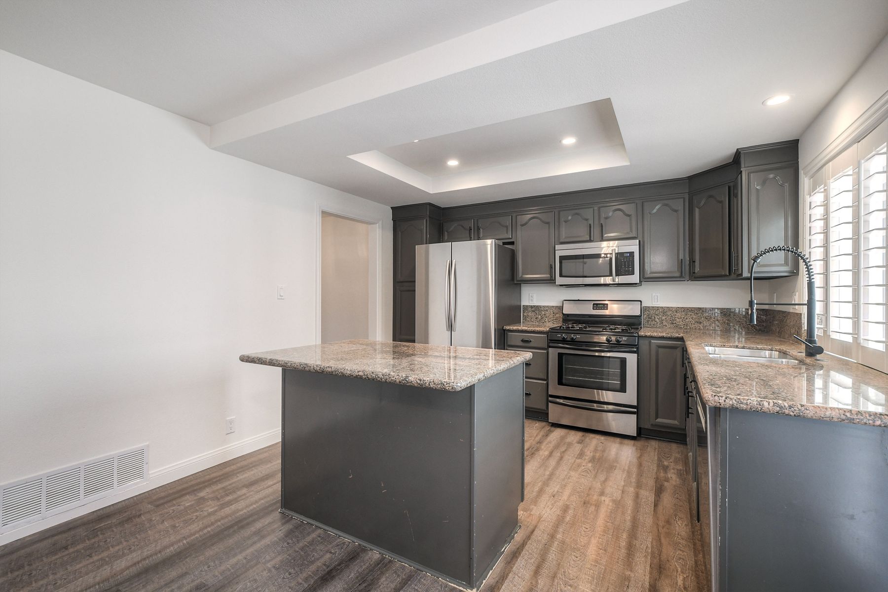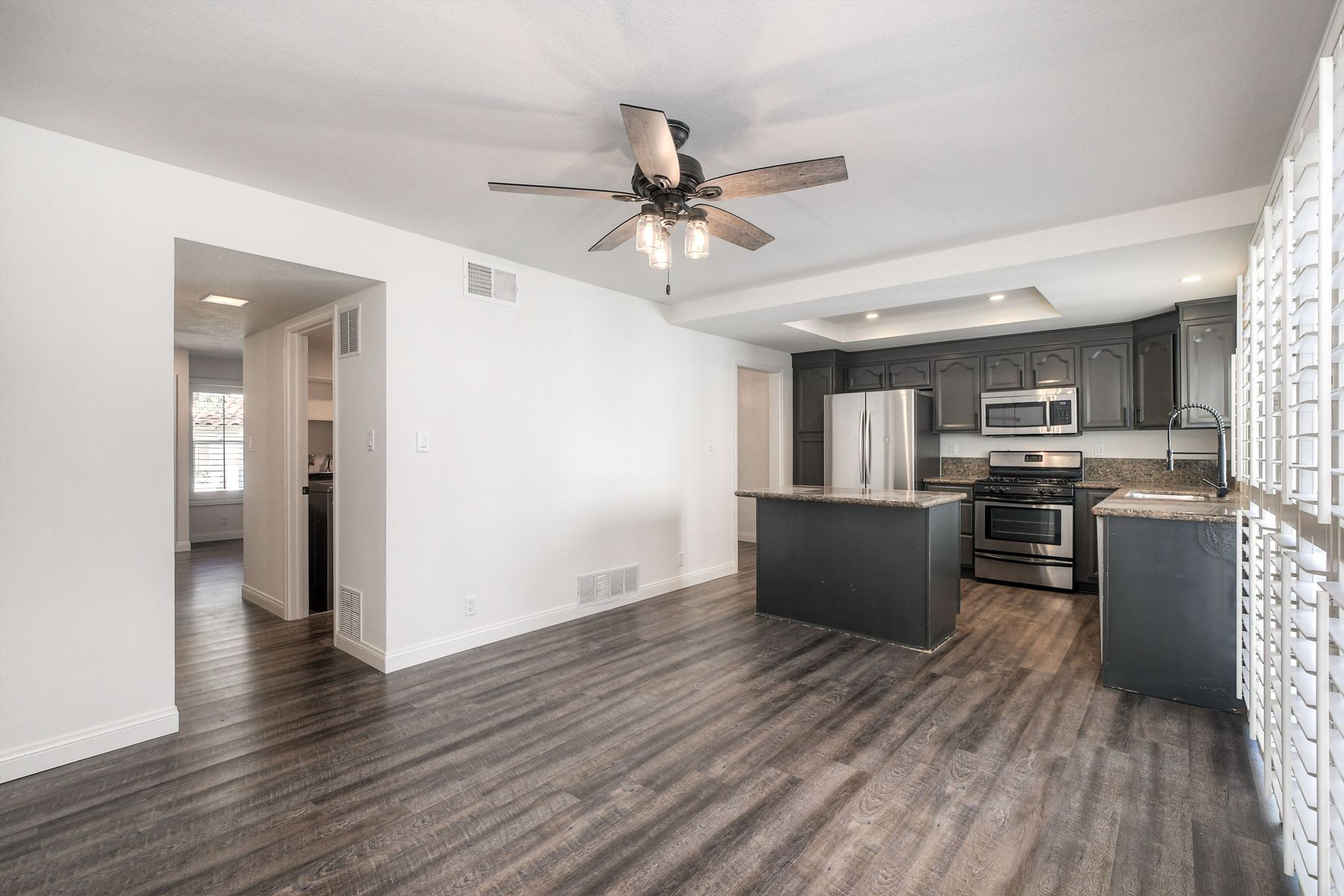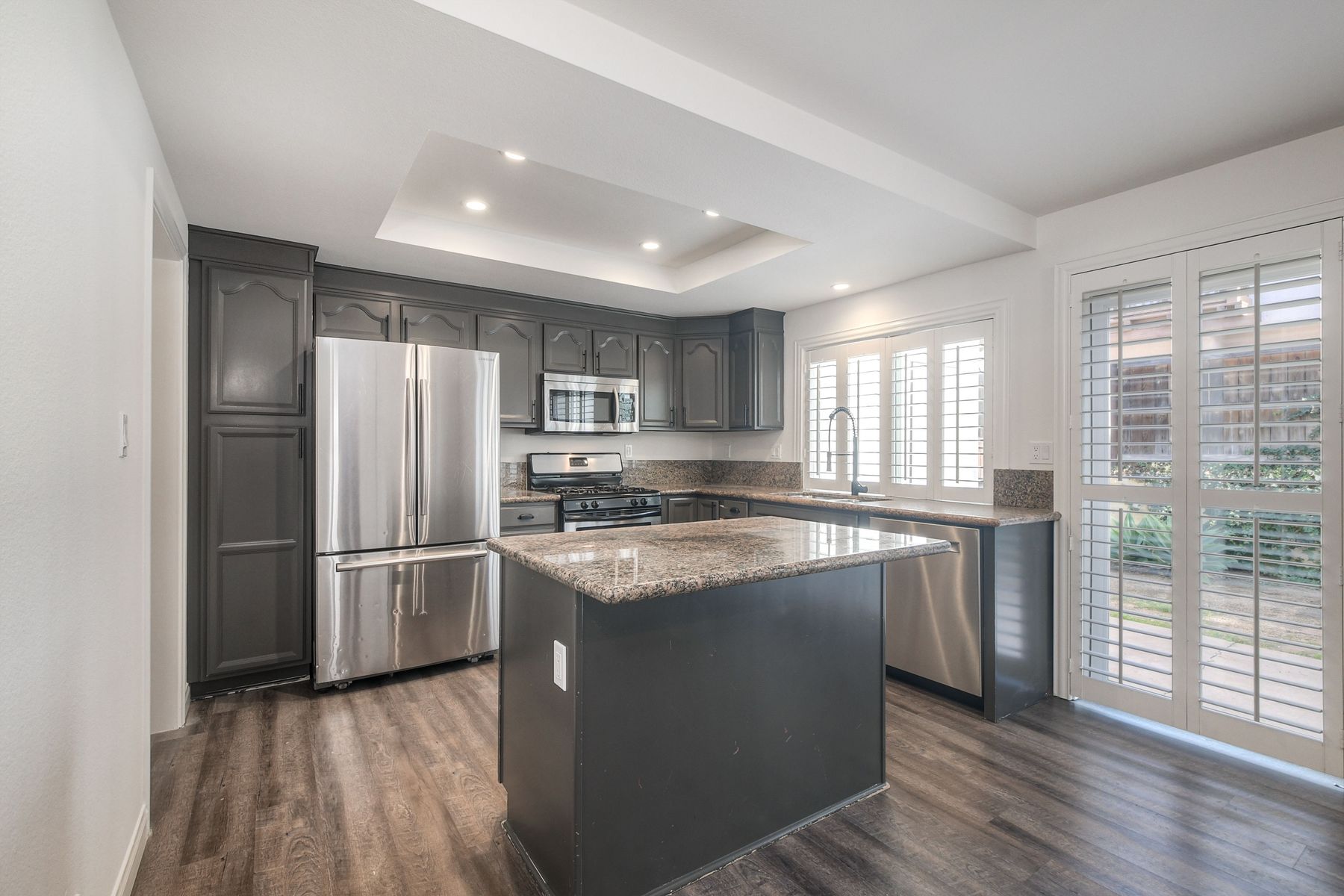 Range price: $500-600K. Affordable and Adorable! This Felicita Villas condo delivers three standout features seldom found at this price point: three true bedrooms, a full walk-in laundry room, and a private fenced patio and spacious yard area—perfect for outdoor dining, gardening, or pets. Fresh interior paint completed in November 2025 brightens the home, while the beautifully updated kitchen and bathrooms add a modern, move-in-ready appeal. Ideally positioned at the interior of the gated community, set away from busy streets, you also have a lush greenbelt right outside your door. The complex offers a sparkling pool and multiple spas, along with well-maintained grounds. The highly convenient location is close to shopping, dining, parks, and easy freeway access for commuting.