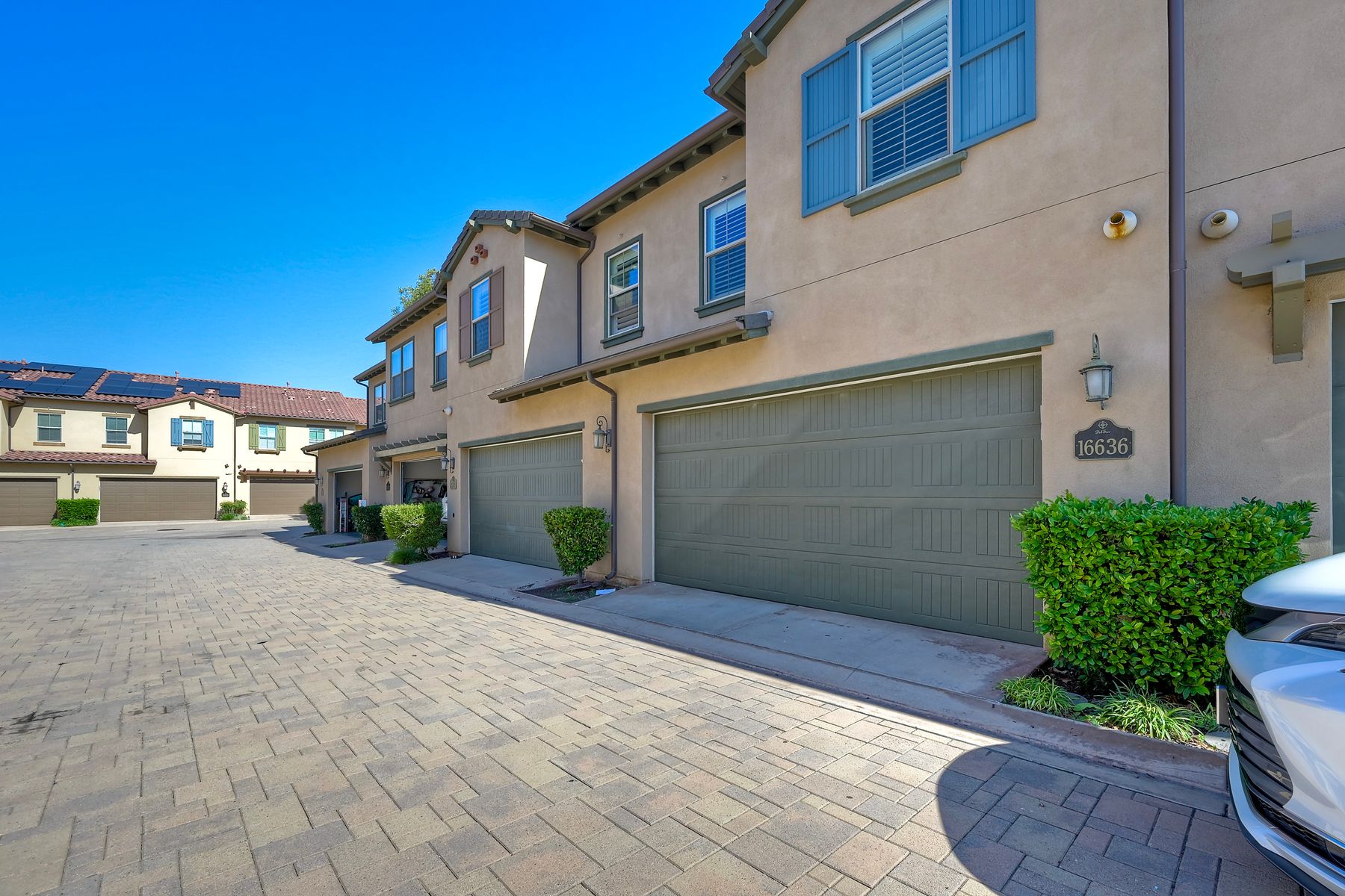 Beautifully maintained 3bd/2.5ba home in the Garretson community of Del Sur. Featuring owned SOLAR, fresh interior paint & updated powder room. Light & bright kitchen boasts a center island, double oven range, & plenty of space for both prep & entertaining. Upstairs has versatile loft area, laundry rm, 2 secondary bdrms that share a hall bath & a spacious primary suite w/ensuite bath. Additional highlights incl a garage w/custom built-in storage & a charming front courtyard that opens to a peaceful, park-like walkway. Must-see! First time on the market! Seller has added nice features such as whole house water softener, plantations shutters throughout, tankless water heater and newer refrigerator. Located in the Award Winning Poway Unified School District. Del Sur is a vibrant San Diego master-planned community where the homes and parks were inspired by historic San Diego neighborhoods. Del Sur boasts 18 miles of shared trails, 11 solar heated pools within the community's 14 parks, and is close to shopping, restaurants, & professional services in Del Sur Town Center. This home is ideally located just blocks from top-rated PUSD schools.